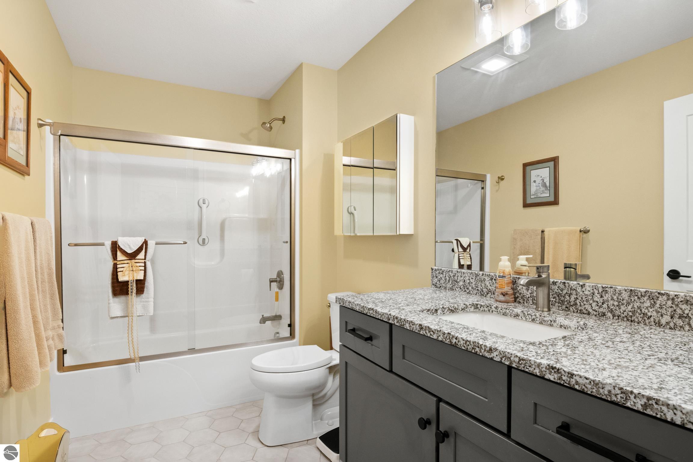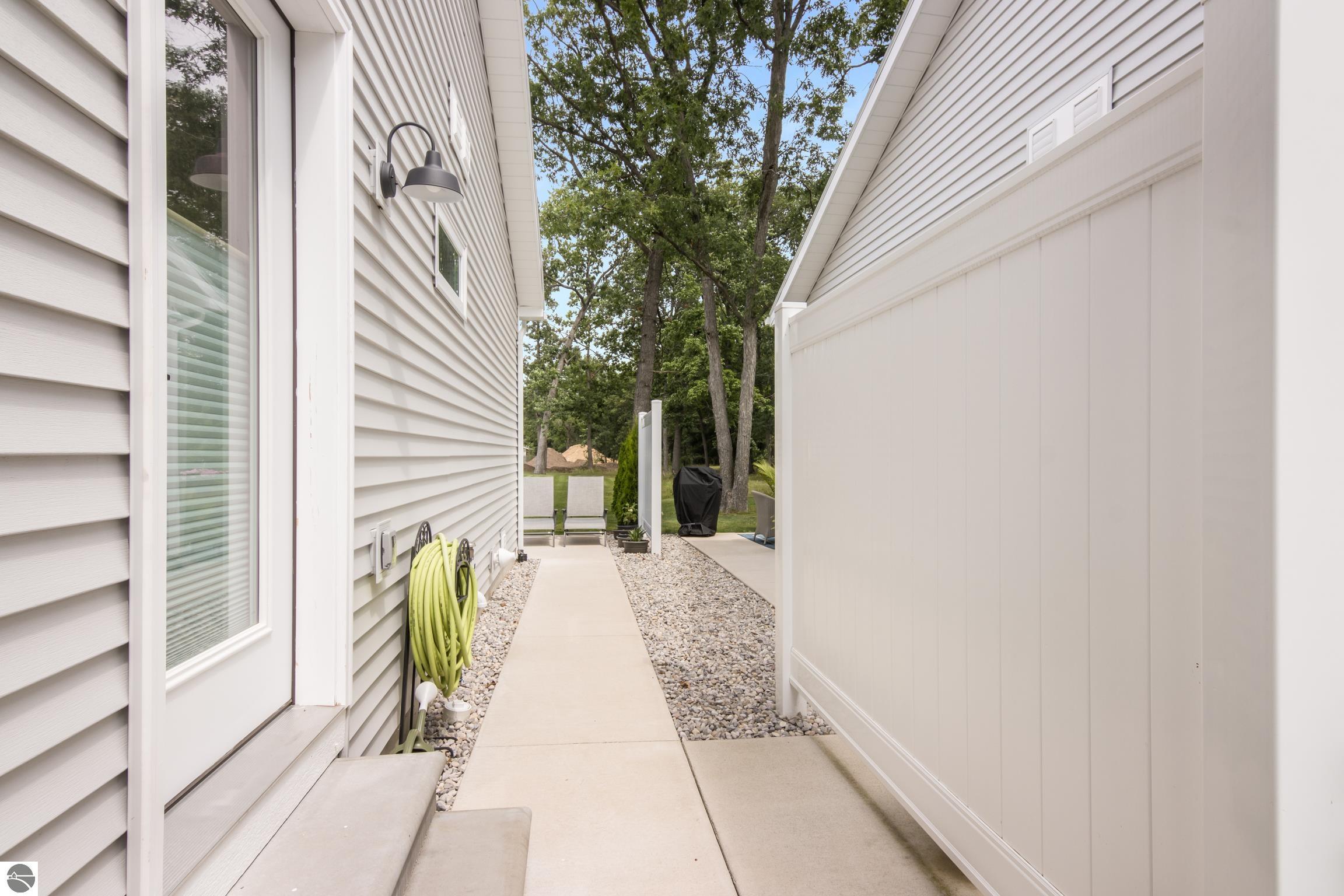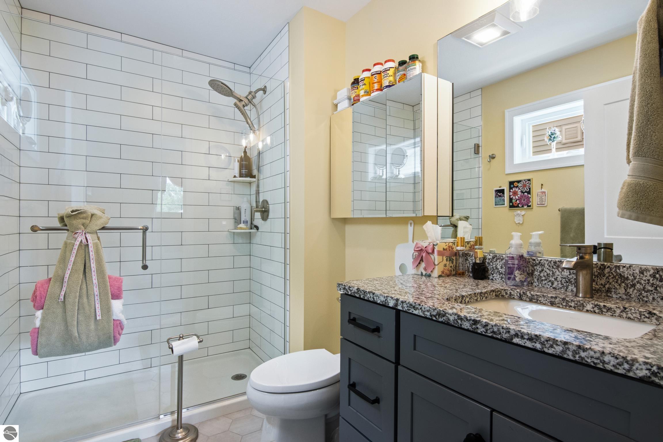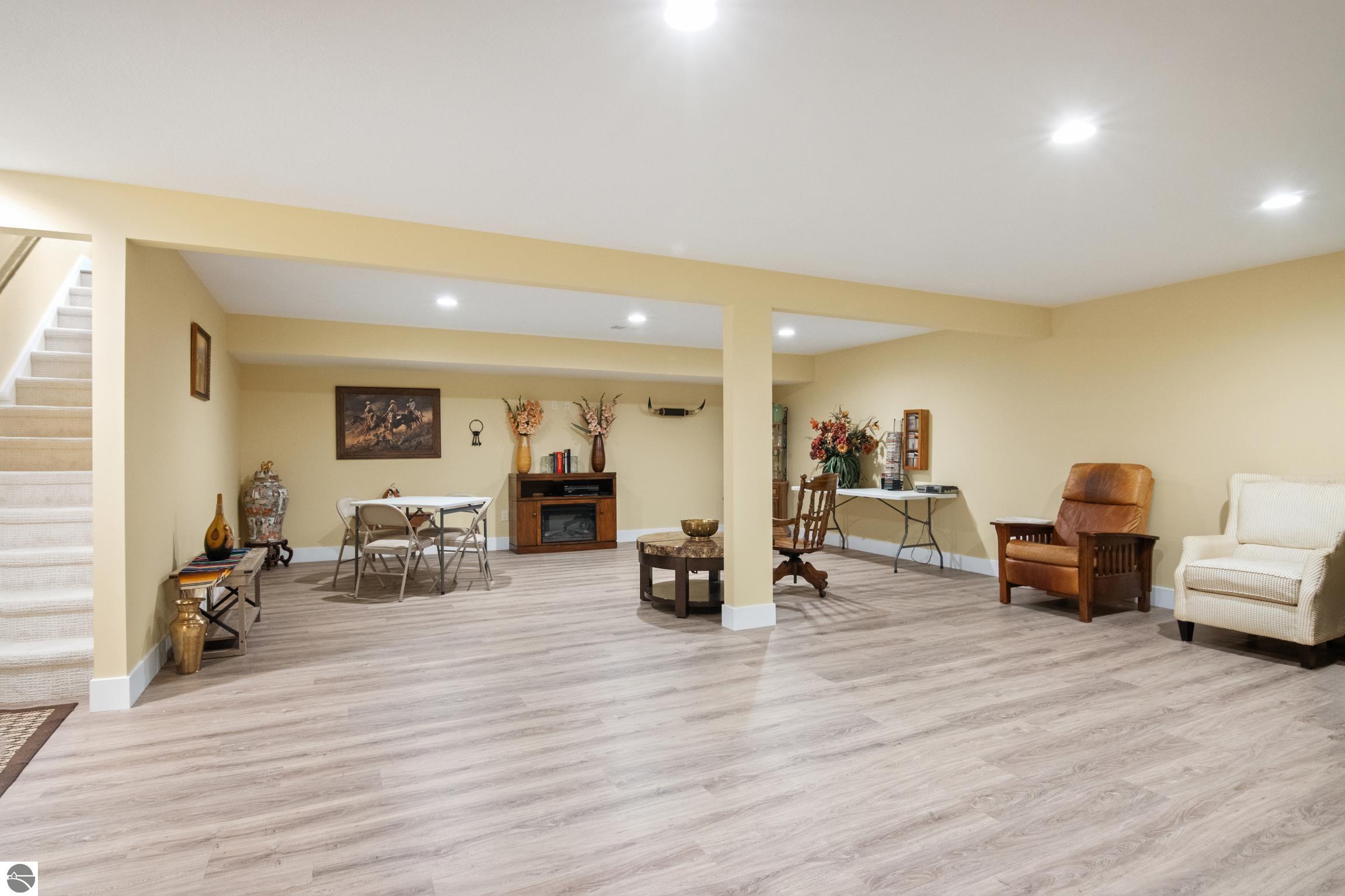 Experience modern living in this 2023-built condo, ideally located minutes from downtown Traverse City, the airport, beaches, and the public library. The light-filled, open floor plan showcases vaulted ceilings, engineered hardwood flooring on the main level and luxury vinyl in the lower level along with a welcoming gas fireplace in the living area on the main level. The main level features two bedrooms—including a private primary suite with a spa-inspired en-suite bath featuring high-end glass shower doors—plus convenient main-floor laundry. The spacious kitchen shines with custom pull-out cabinetry and upgraded appliances, seamlessly connecting to the living and dining areas for easy entertaining. A finished lower level adds a spacious multi-use room and an additional bedroom, perfect for guests or a home office. Many more upgrades & custom materials added by seller during construction. Enjoy the attached two-car garage and beautifully landscaped private courtyard park, or stroll to nearby restaurants, amenities, and the TC Curling Club.