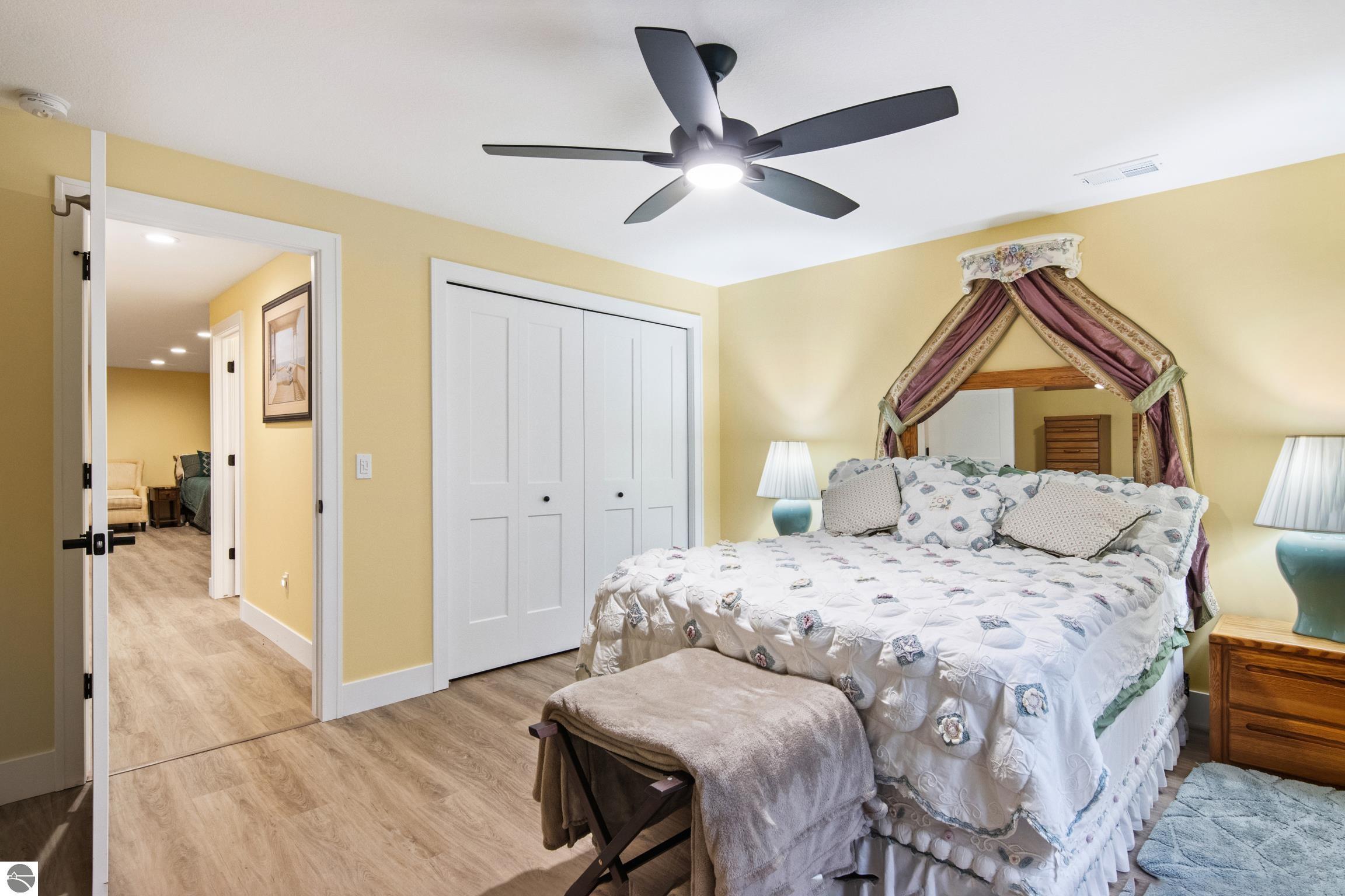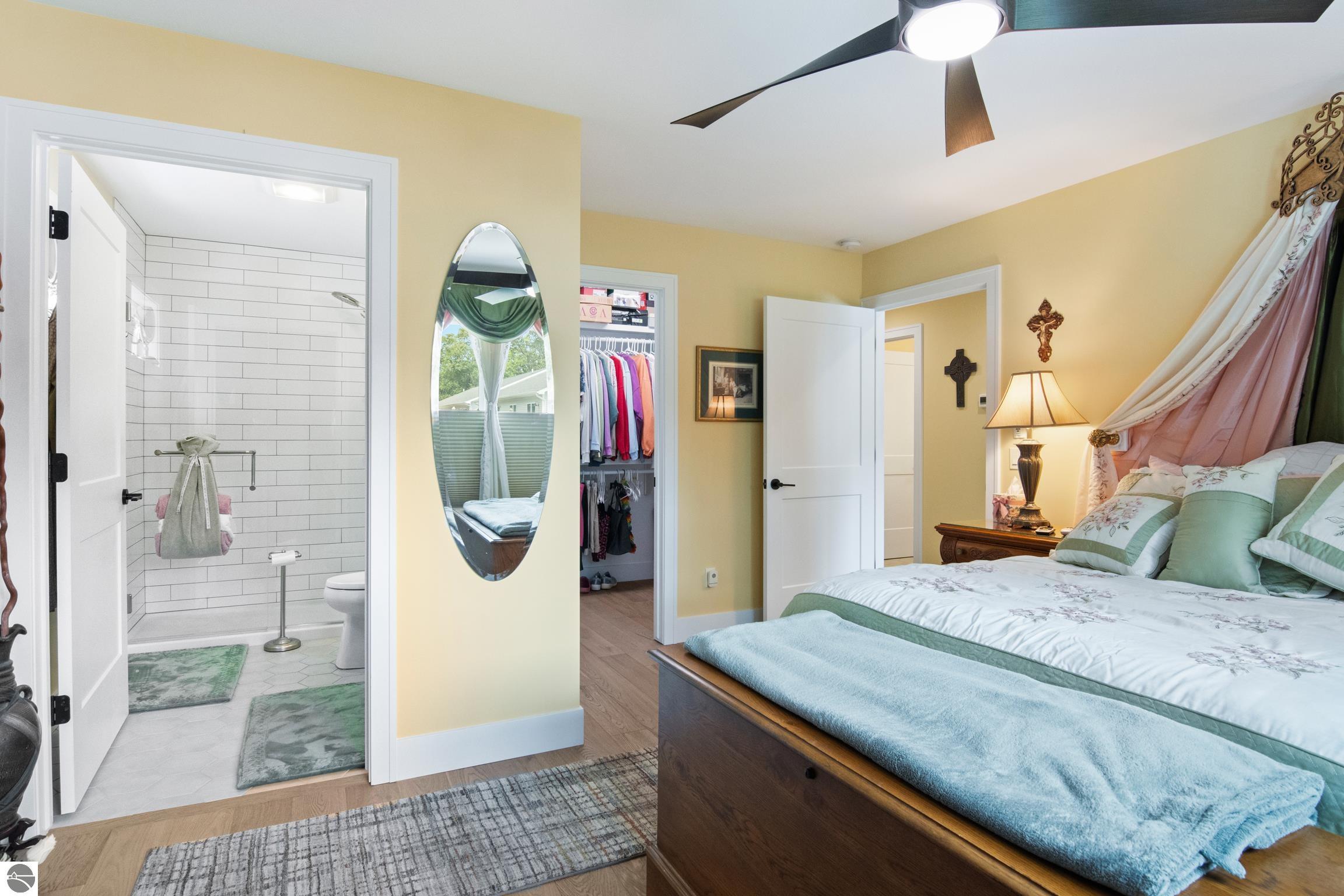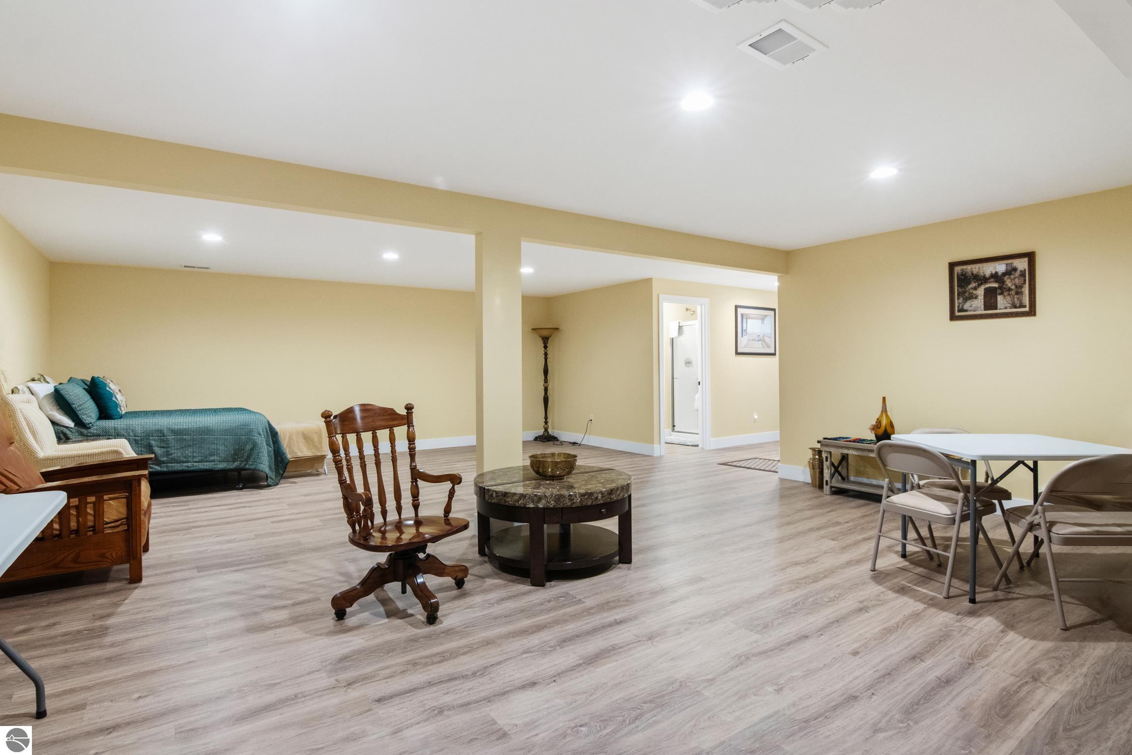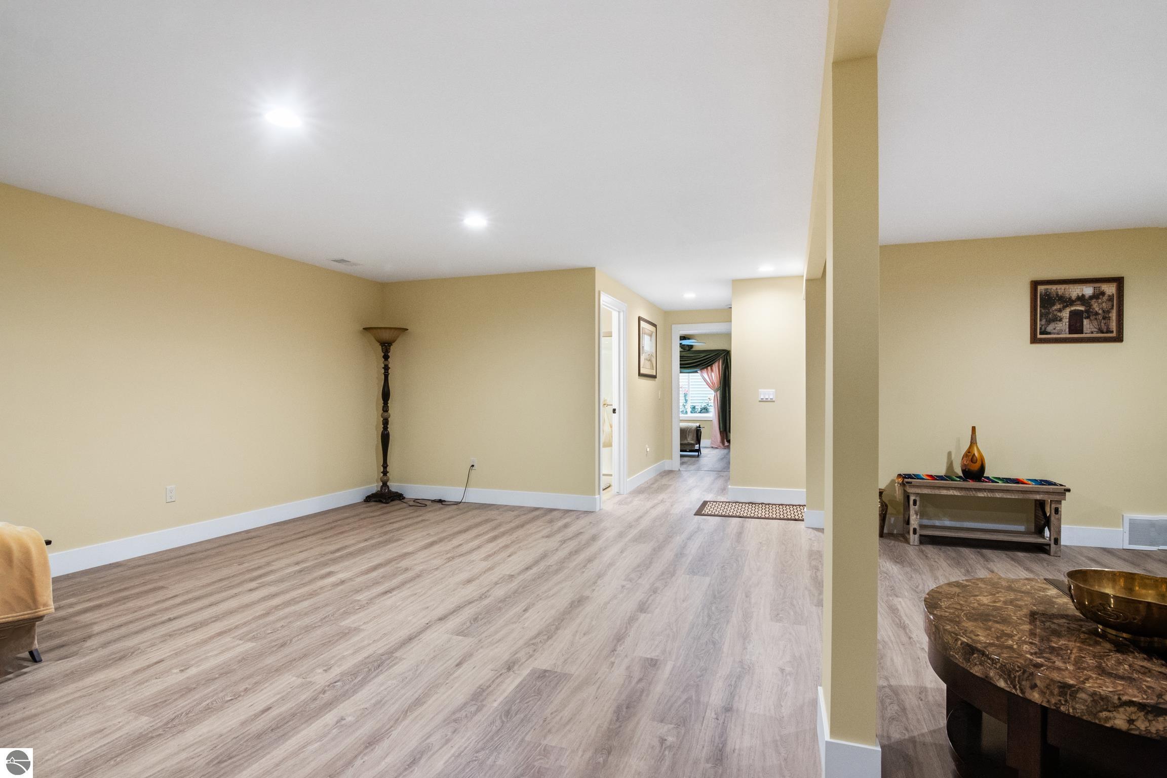 Experience modern living in this 2023-built condo, ideally located minutes from downtown Traverse City, the airport, beaches, and the public library. The light-filled, open floor plan showcases vaulted ceilings, engineered hardwood flooring on the main level and luxury vinyl in the lower level along with a welcoming gas fireplace in the living area on the main level. The main level features two bedrooms—including a private primary suite with a spa-inspired en-suite bath featuring high-end glass shower doors—plus convenient main-floor laundry. The spacious kitchen shines with custom pull-out cabinetry and upgraded appliances, seamlessly connecting to the living and dining areas for easy entertaining. A finished lower level adds a spacious multi-use room and an additional bedroom, perfect for guests or a home office. Many more upgrades & custom materials added by seller during construction. Enjoy the attached two-car garage and beautifully landscaped private courtyard park, or stroll to nearby restaurants, amenities, and the TC Curling Club.