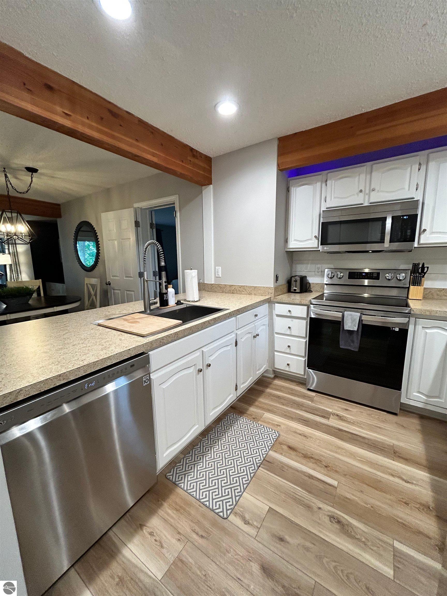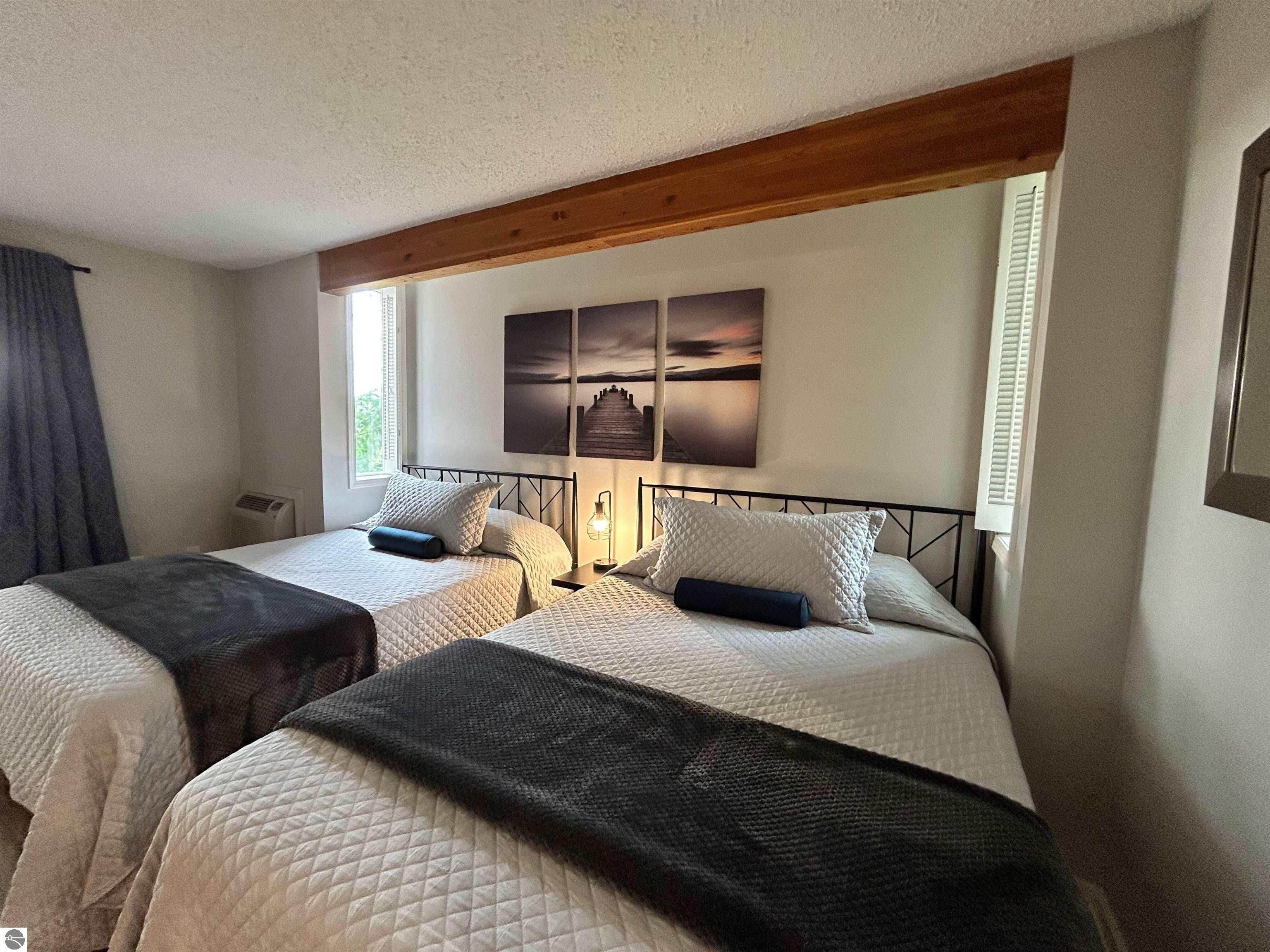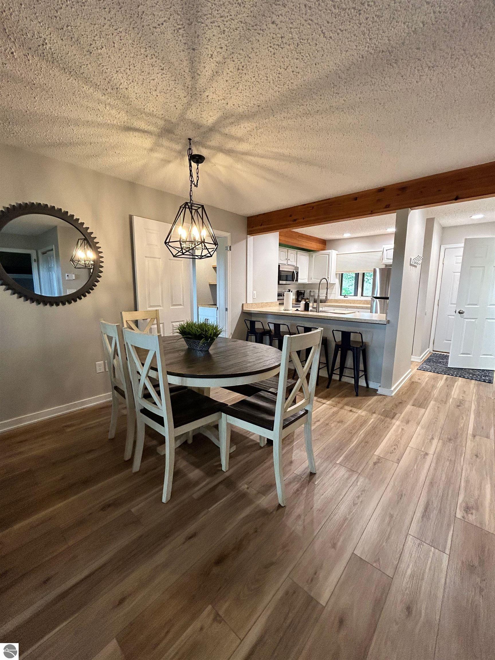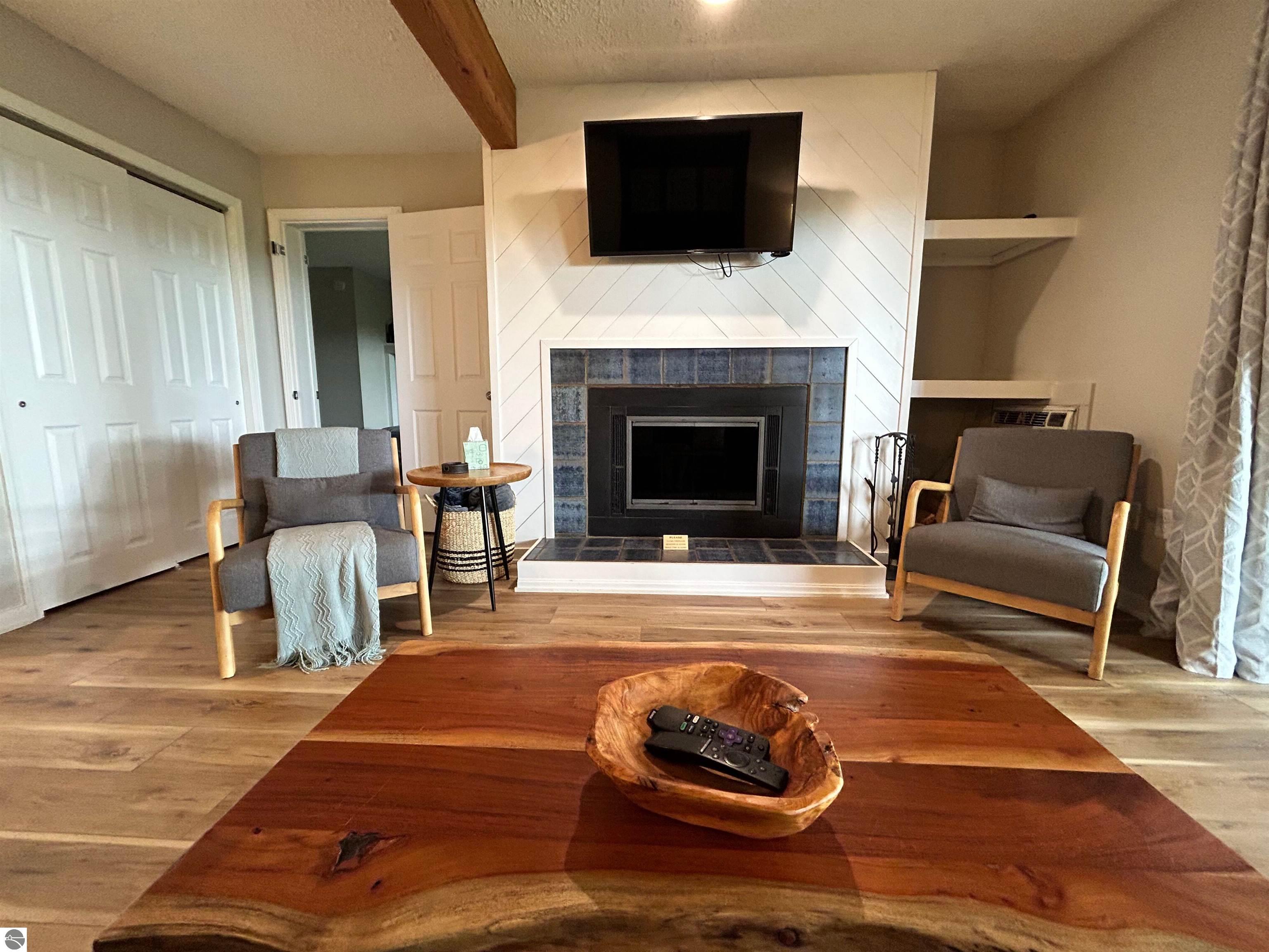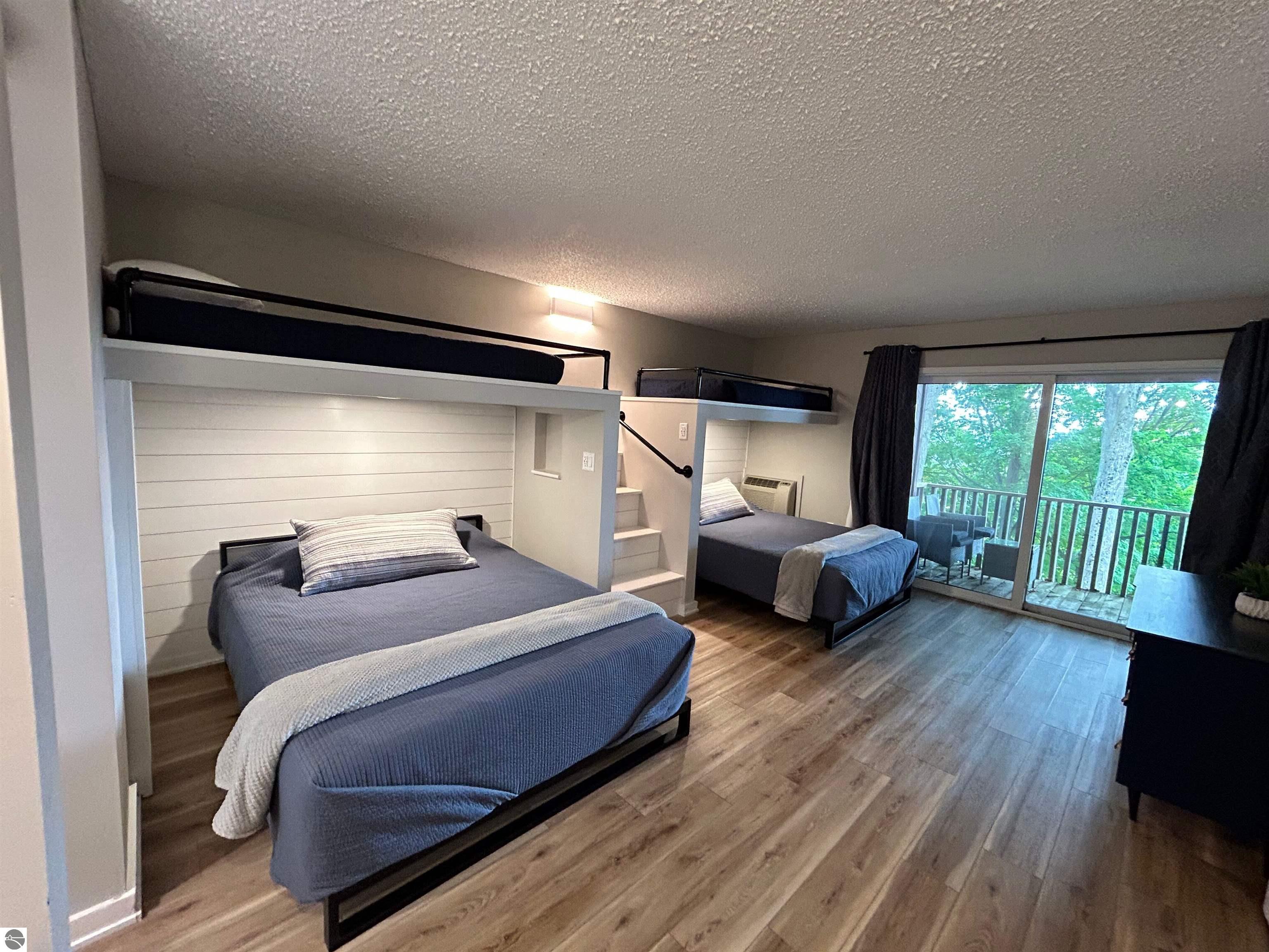 Discover your perfect getaway at Shanty Creek Resort with this newly updated 2-bedroom, 3-bathroom condo that's ready to welcome guests and generate rental income. This spacious retreat features a custom-built bunkroom, full kitchen with brand-new appliances, and a generous living room with dining area anchored by a cozy wood-burning fireplace. Step onto any of the three decks to enjoy stunning views of nearby Lake Bellaire while sipping your morning coffee or evening wine. The 2023 renovations include updated plumbing, flooring, paint, fixtures, and more, ensuring everything feels fresh and modern. Your investment includes access to an indoor pool and hot tub attached to buildings 3 and 4, plus membership to the Summit Village Association Beach Club on Lake Bellaire. Located just minutes from world-class skiing, championship golf courses, tubing, and the charming village of Bellaire, this condo offers year-round appeal for both owners and renters seeking the ultimate Michigan resort experience.