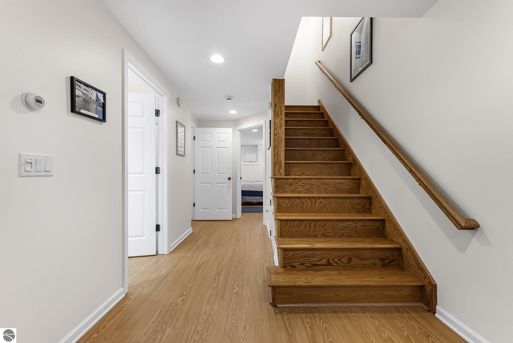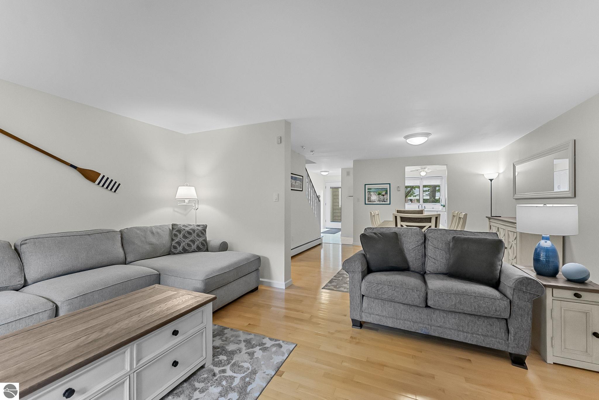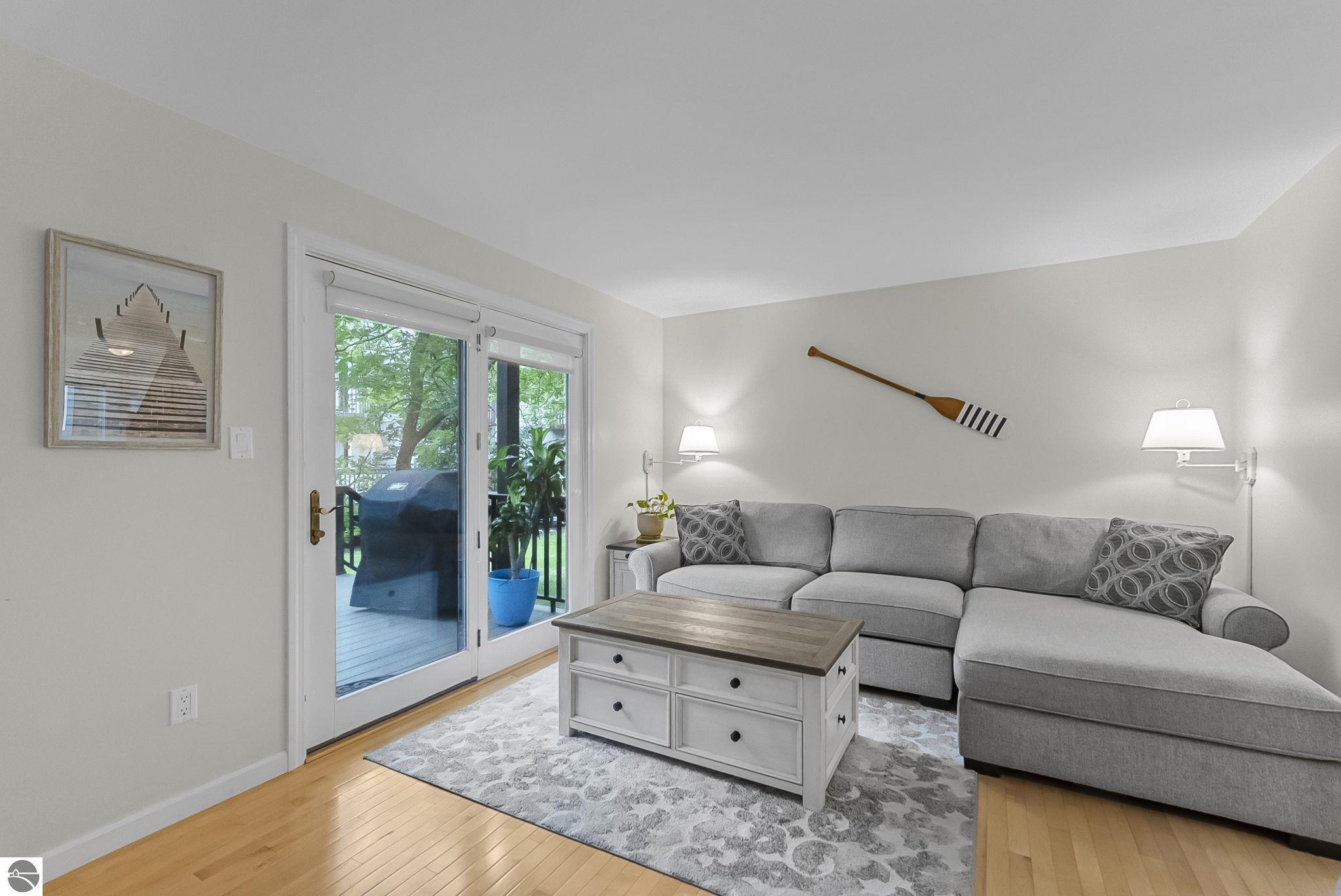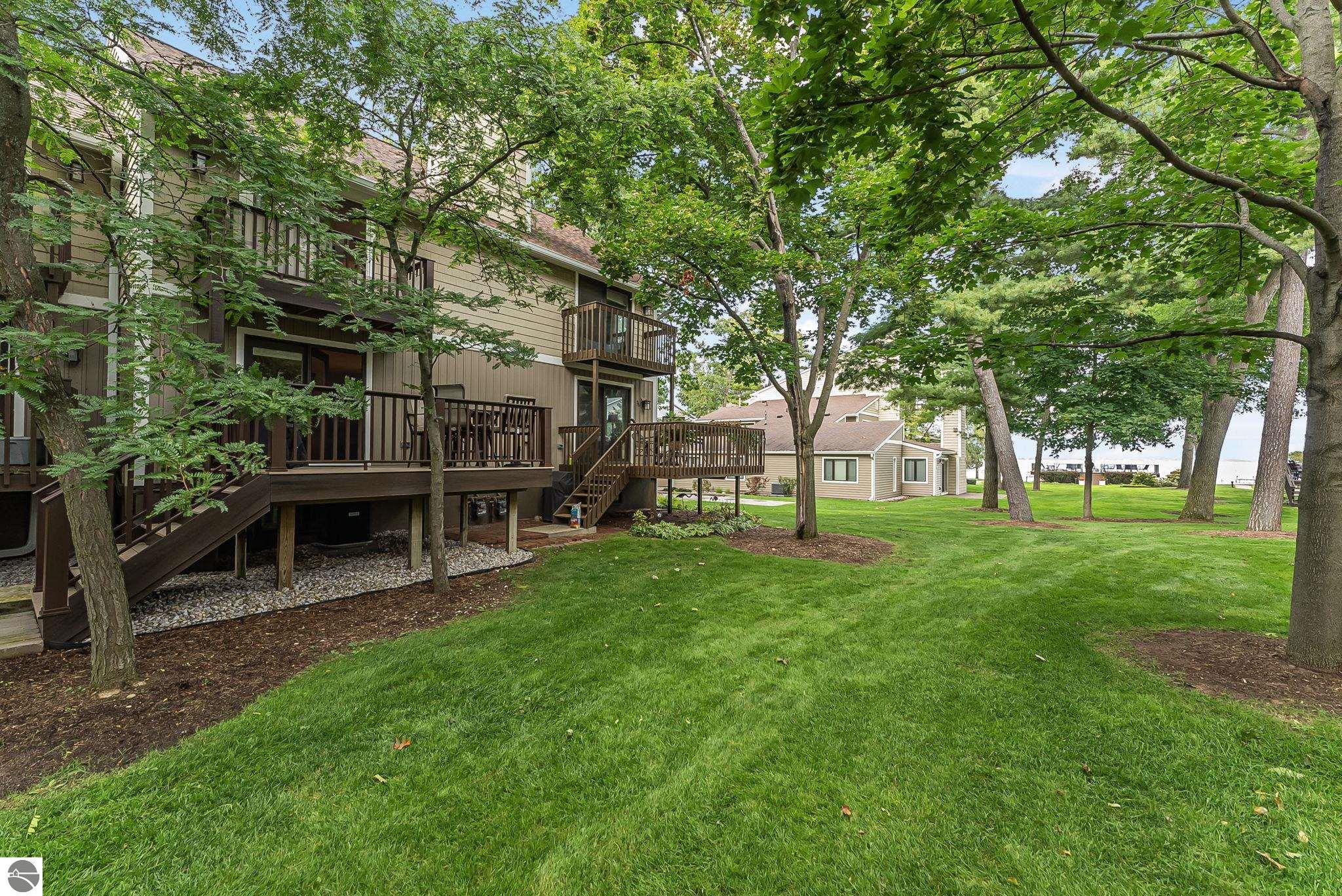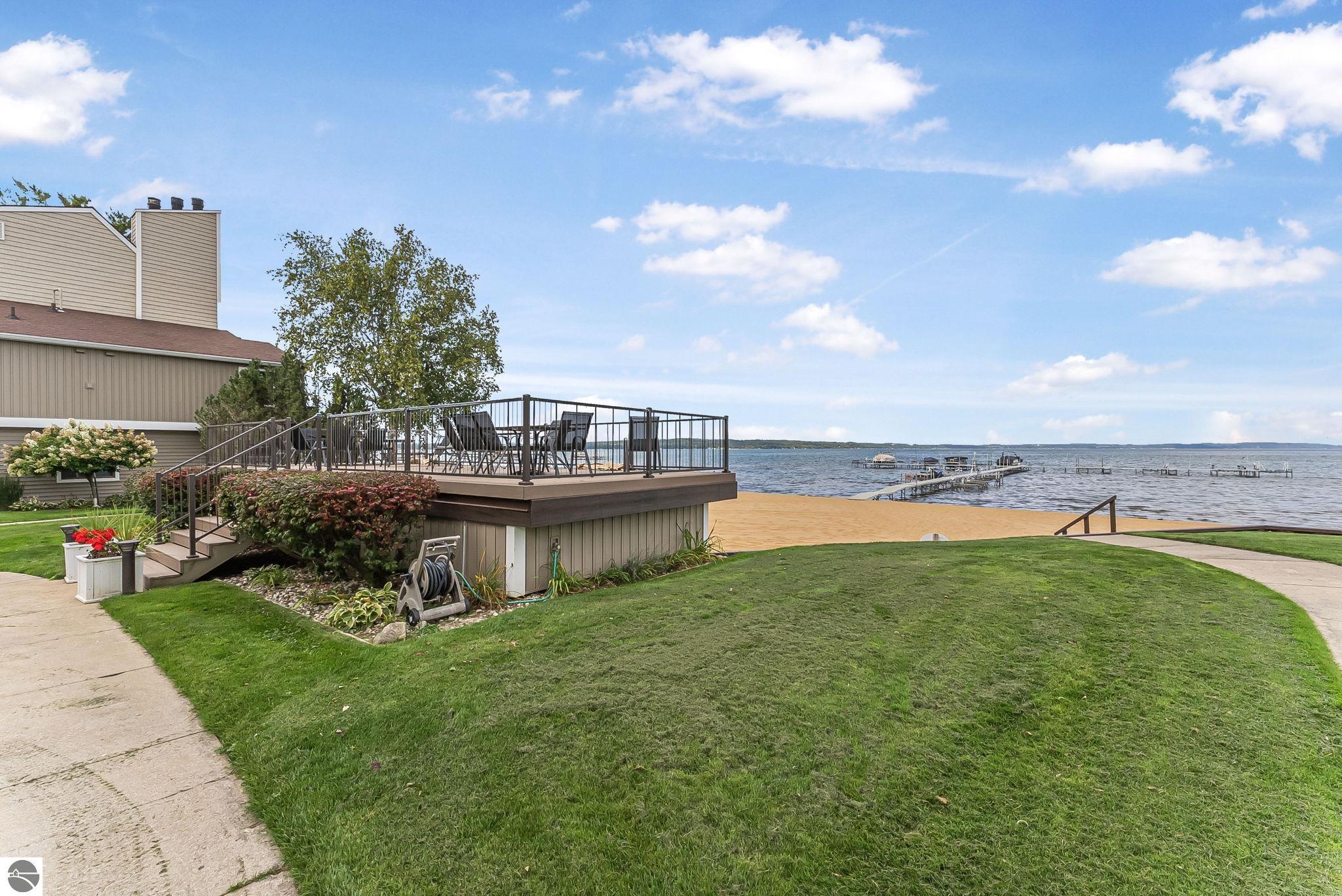 This is a truly special offering in one of East Bay’s most coveted communities. With 330 feet of pristine, sandy shared frontage, you’ll enjoy wide open shoreline, an entertainment-style deck for entertaining guests or visiting with neighbors, and the possibility of dock and hoist privileges—perfect for making the most of summer days on the water. The residence itself offers over 1,800 square feet of well-designed living space, featuring three bedrooms and three-and-a-half baths, a private office space and 2 family living areas. A private, assigned garage is included, along with all the conveniences of low-maintenance condo living. Whether you’re looking for a lock-and-leave lifestyle or a year-round residence, this home delivers comfort and ease. Step outside and you’re minutes from everything Traverse City has to offer. Catch the bus downtown, hop on the TART Trail for a bike ride to Suttons Bay, or simply walk to nearby restaurants. With direct access to East Bay, you can launch your boat or water toys without the hassle of trailering. Few opportunities arise in this community—making this an exceptional chance to secure a slice of East Bay luxury living.