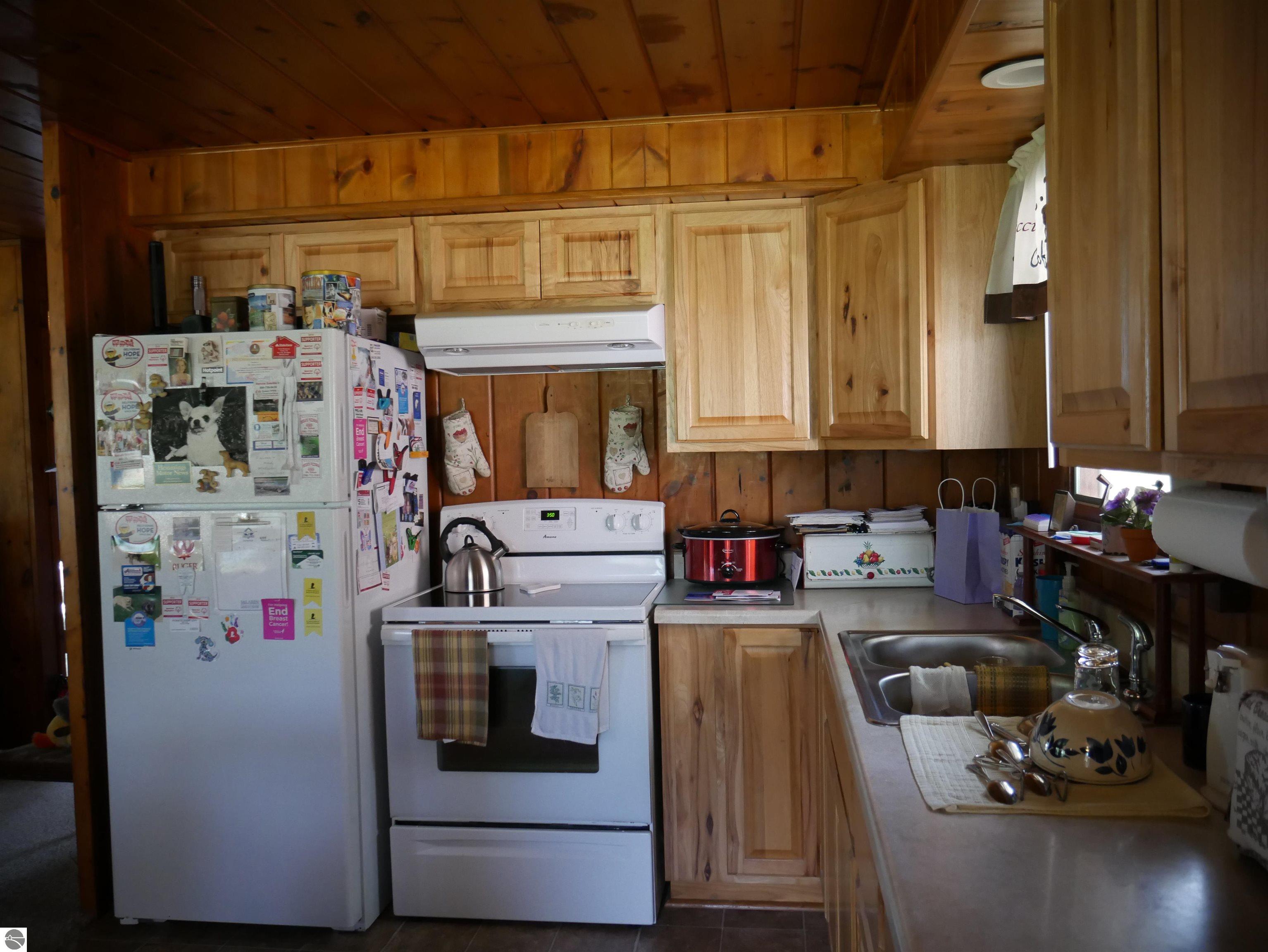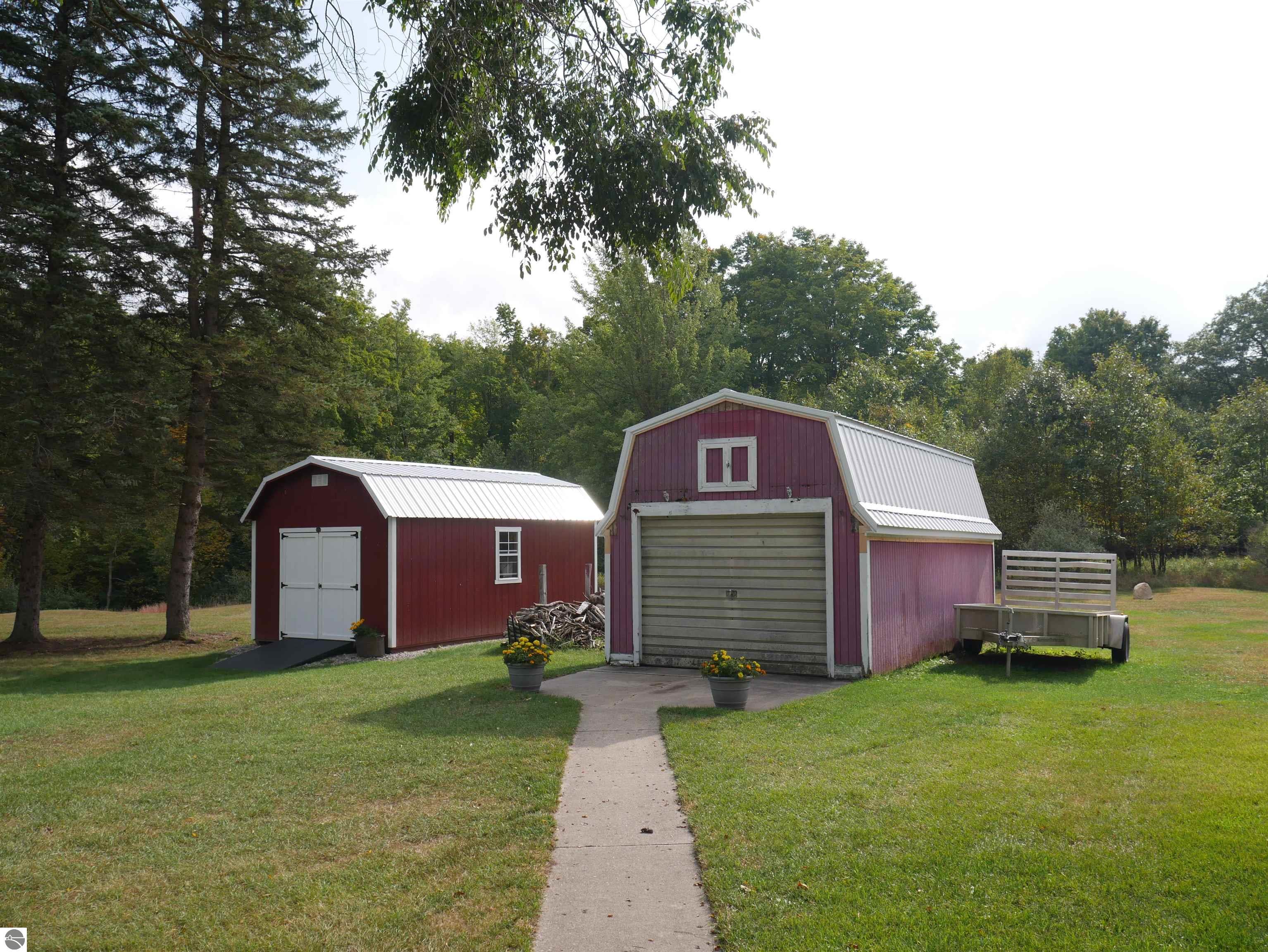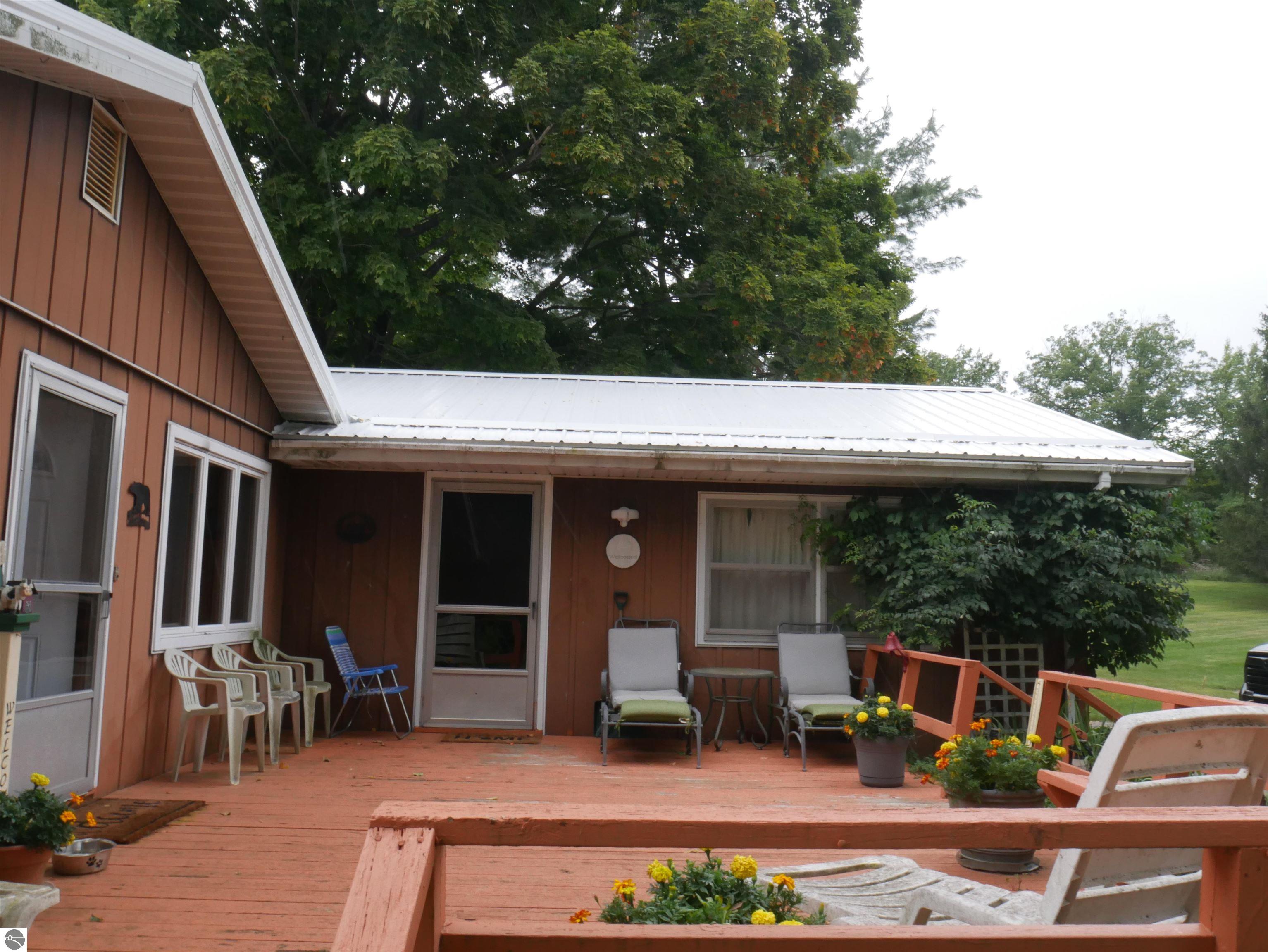 Move right into this well-kept 2-bedroom, 2-bath home set on 3 beautiful peaceful acres with a large yard, apple trees, and abundant wildlife. Inside you’ll find inviting knotty pine walls, hickory cabinets, and a cozy wood-burning fireplace. A spacious front deck is perfect for relaxing and enjoying the peaceful surroundings. Close to thousands of acres of Huron National Forest and endless snowmobile and ATV trails! Updates include a new roof and electric panel (2024) new bladder tank and pump (2022). Property features an attached 2-car garage plus two storage sheds (24x26 and 12x20 both with electric) for all your equipment and toys. This home combines rustic charm with modern updates—ready for you to enjoy!