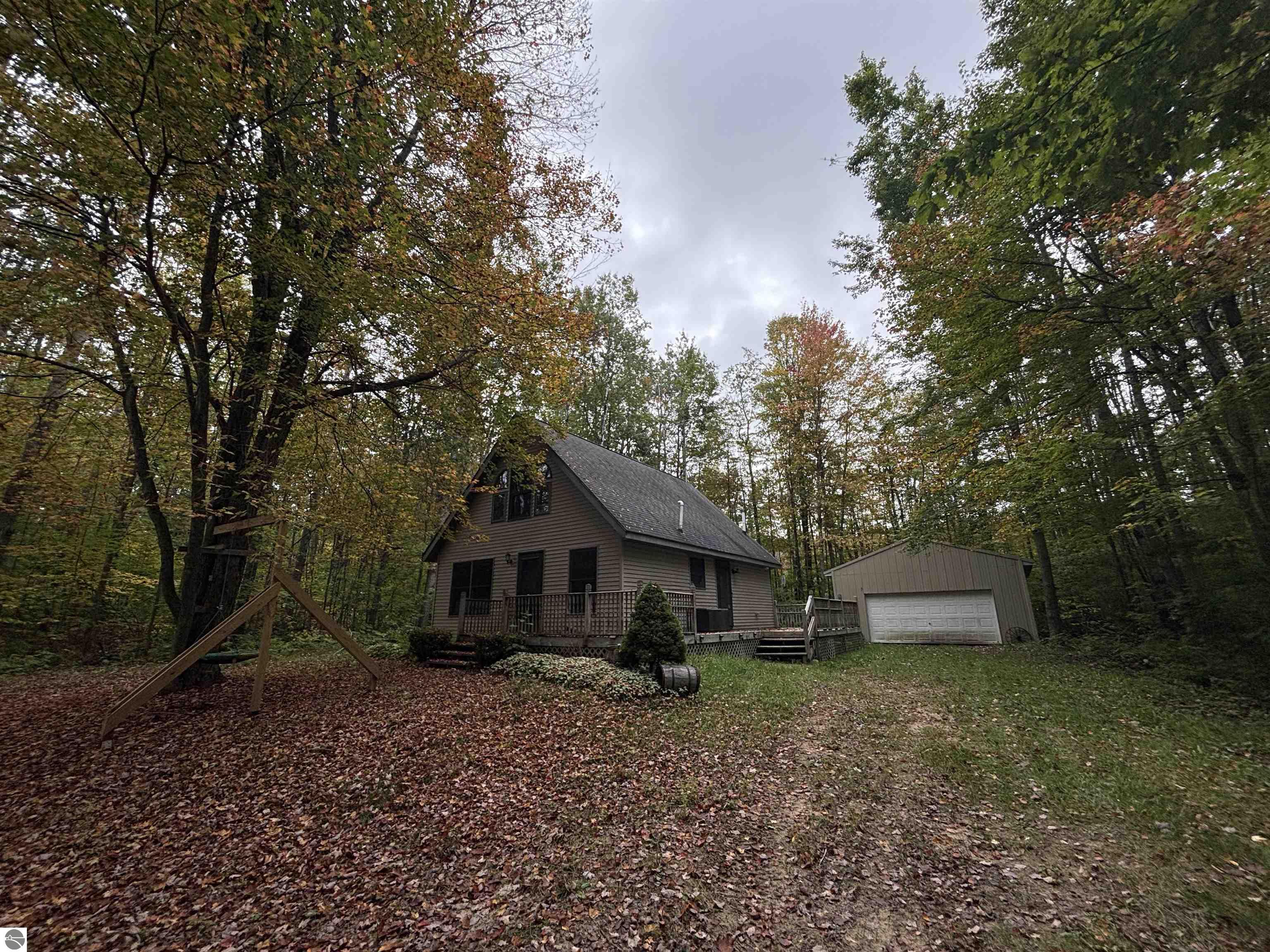 ORV PARADISE! So many possibilities with this secluded property use as an up north getaway retreat, forever home and so much more. The home features 1,216 sq. ft. of living space; a living room; kitchen; dining room; 3 bedrooms; 1 bath; and a large wraparound deck. The 30' x 24' garage is ideal for your workshop, hobbies, cars and toys. Wildlife abounds in this private, wooded setting. Surrounded by some of the best ORV and snowmobile trails in northern Michigan.