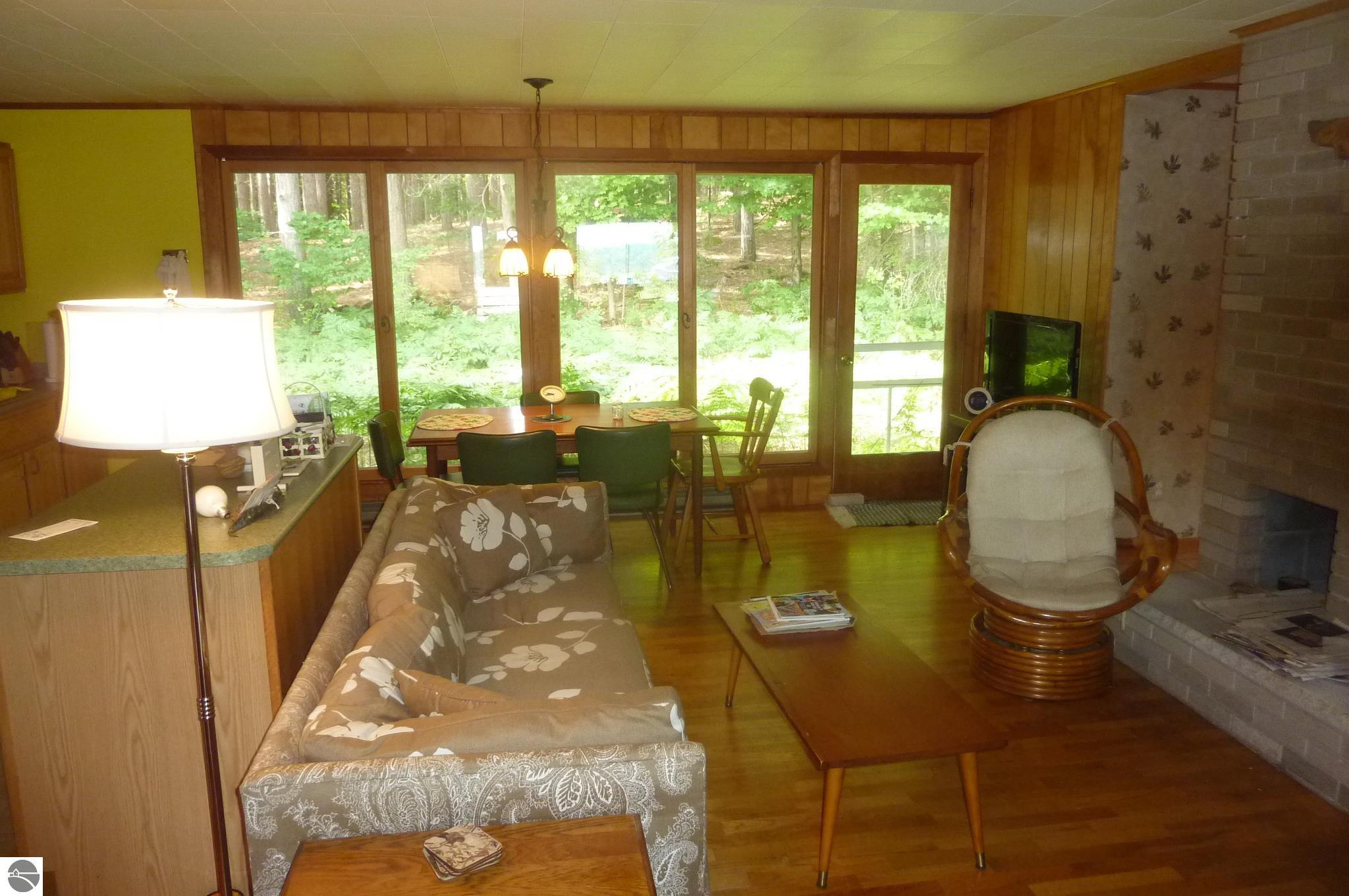 A 3 bedroom, 2 bath ranch home located on a private 1.3 acre parcel at the end of Glory Road just northeast of downtown Frankfort in a partially wooded area and overlooking Crystal Lake. The home has an open floor plan with hardwood floors in the main living area, and a natural fireplace in the living room. A large master bedroom and bath are at one end of the house, and the other bedrooms are opposite the living area at the other end. There is a small den which could be a 4th bedroom. There is also a large screened in sunroom across the front on the lake side, and even though the home has primarily been used as a seasonal summer cottage, there is electric baseboard zoned heating in every room for year-round use. The location is perfect with a short drive into town, and a 2 minute drive down to public access on Crystal Lake.