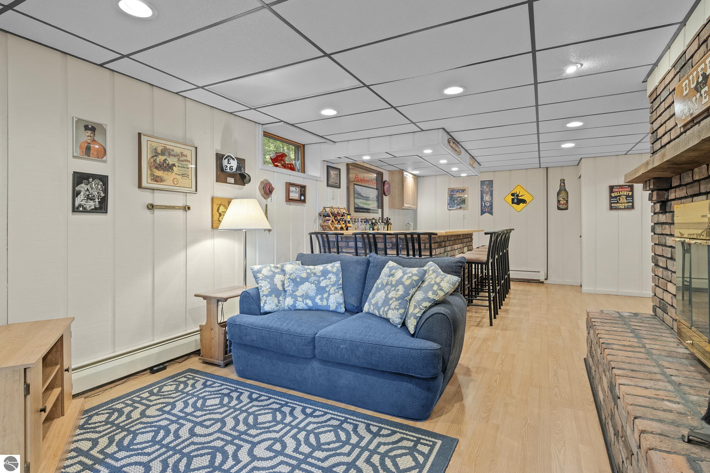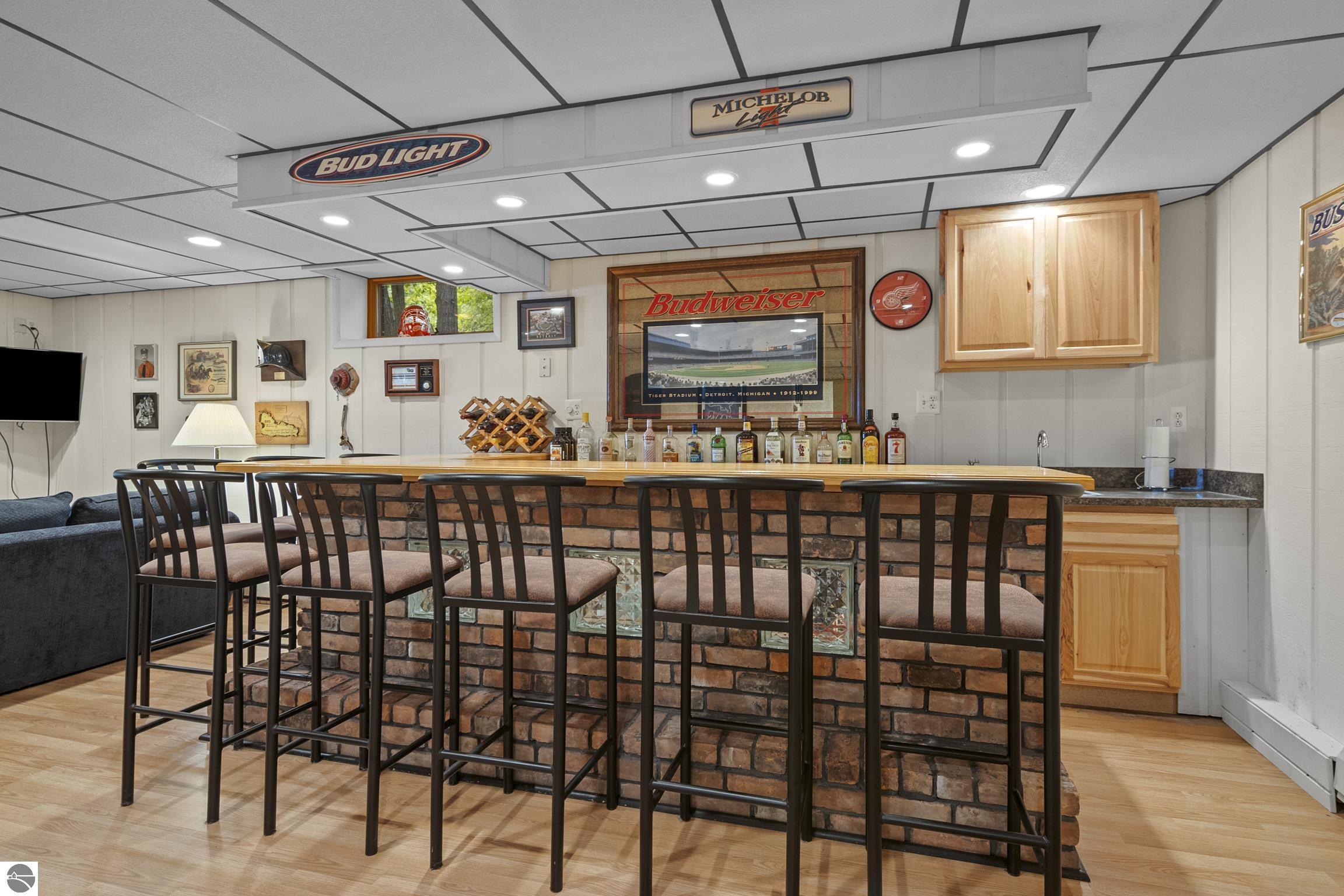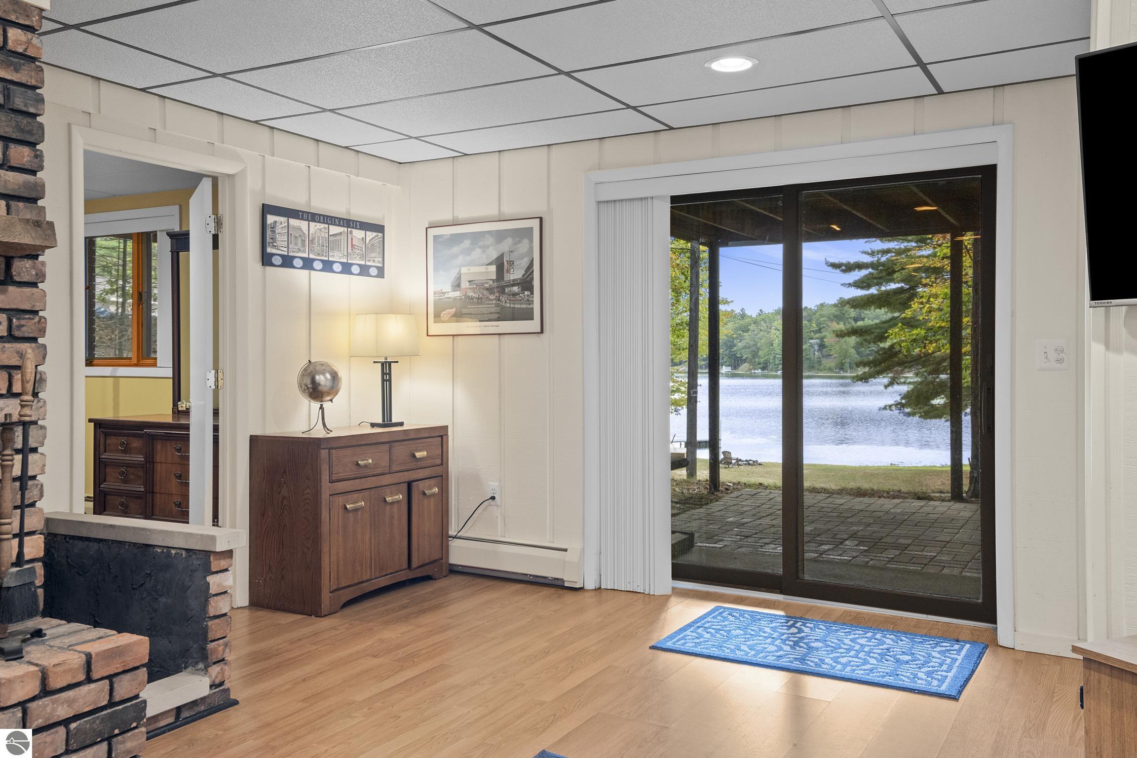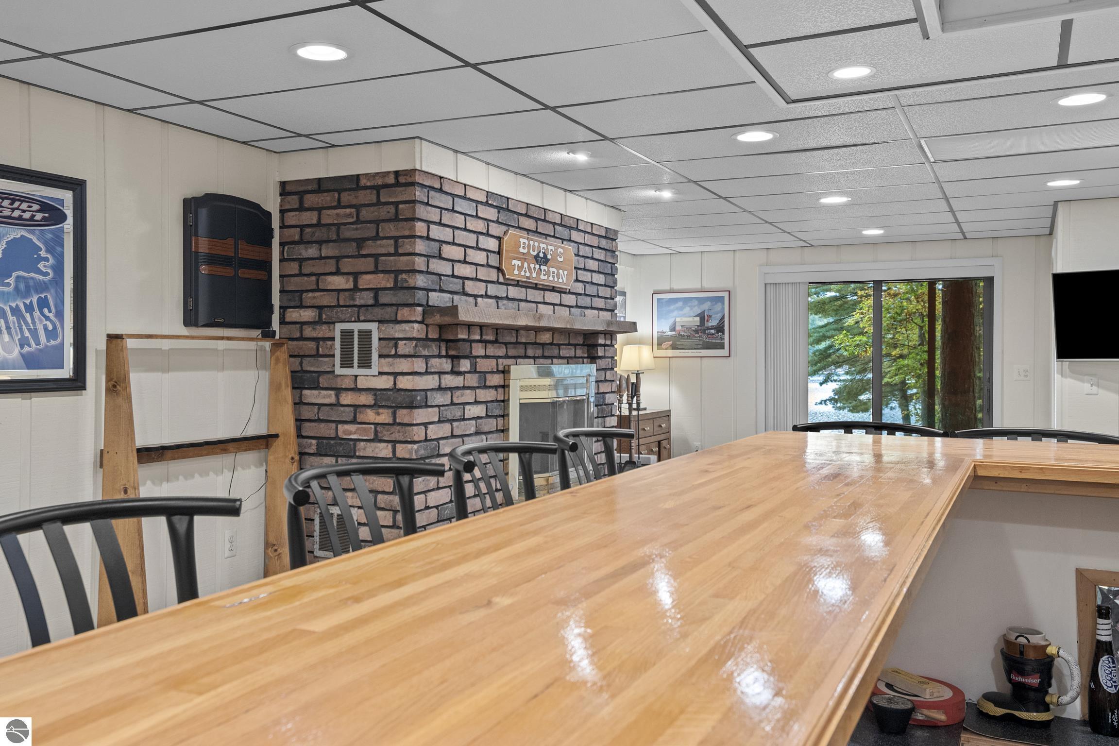 This well maintained lake home offers so many great features! Upon entering the home, the open concept island kitchen, dining & living room with walk out deck invites family & friends to fully enjoy time together on the Lake! Listen to the loons while enjoying a coffee or meal on the deck. The private setting is beautiful, serene & peaceful. There is plenty of storage including a pantry, deep closets, plenty of garage storage space with more storage in the laundry room in the lower level. The garage has a sink and workshop space. Natural gas and new hot water heater installed in 2024. Internet is available at home. There is plenty of parking areas to accommodate company. The large lower level wet bar hosts get togethers spaciously. The lake is seen from both the main level & lower level walk outs. Both fireplaces have blower fans. Closer to the lake, you will be able to easily store & access beach & boating supplies from the 10x12 shed. Shed has concrete floor, patio & electricity. There is also a 12'x12' deck by lake (great for enjoying on the water entertaining & dining).