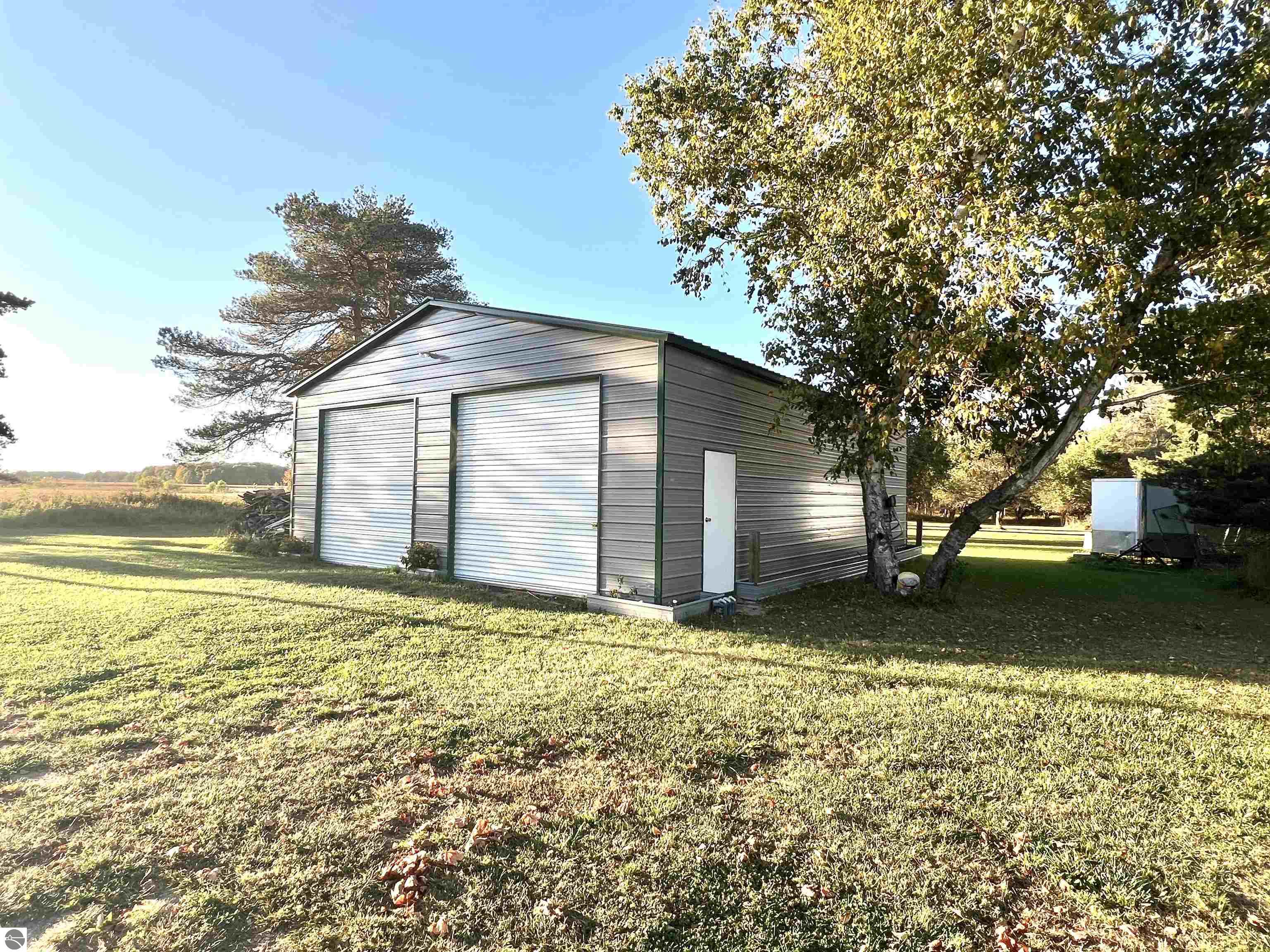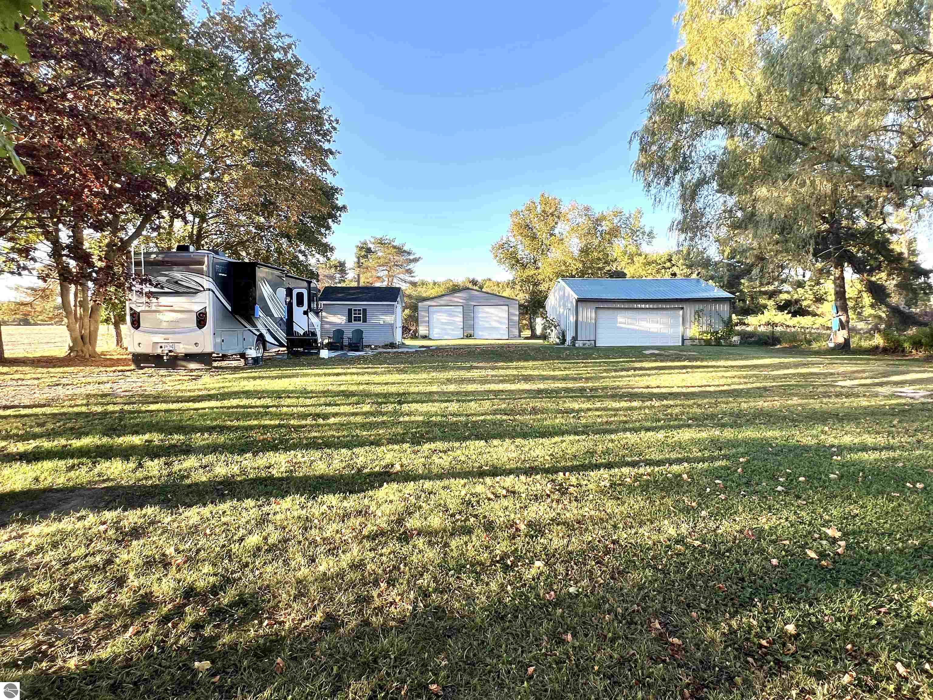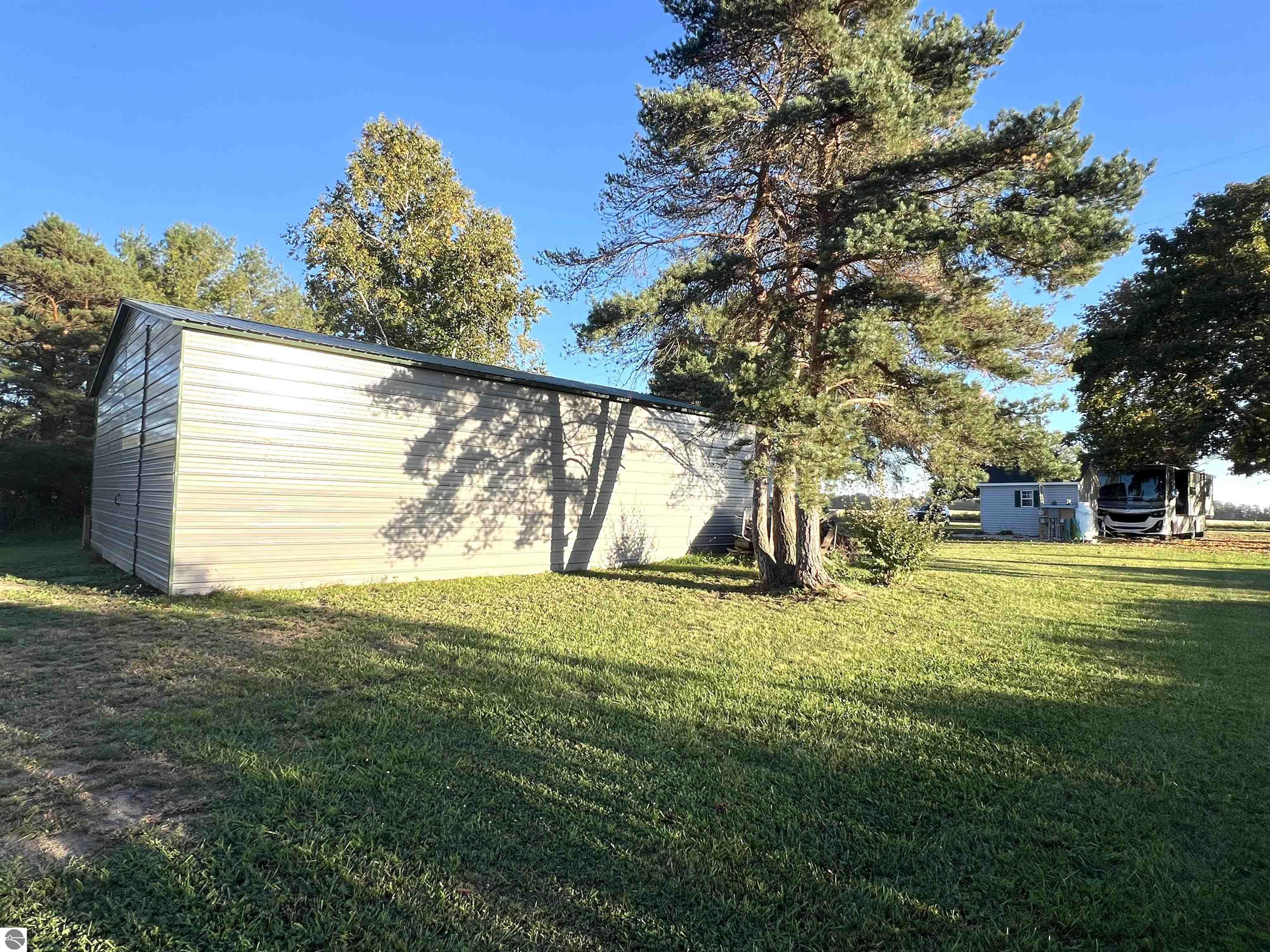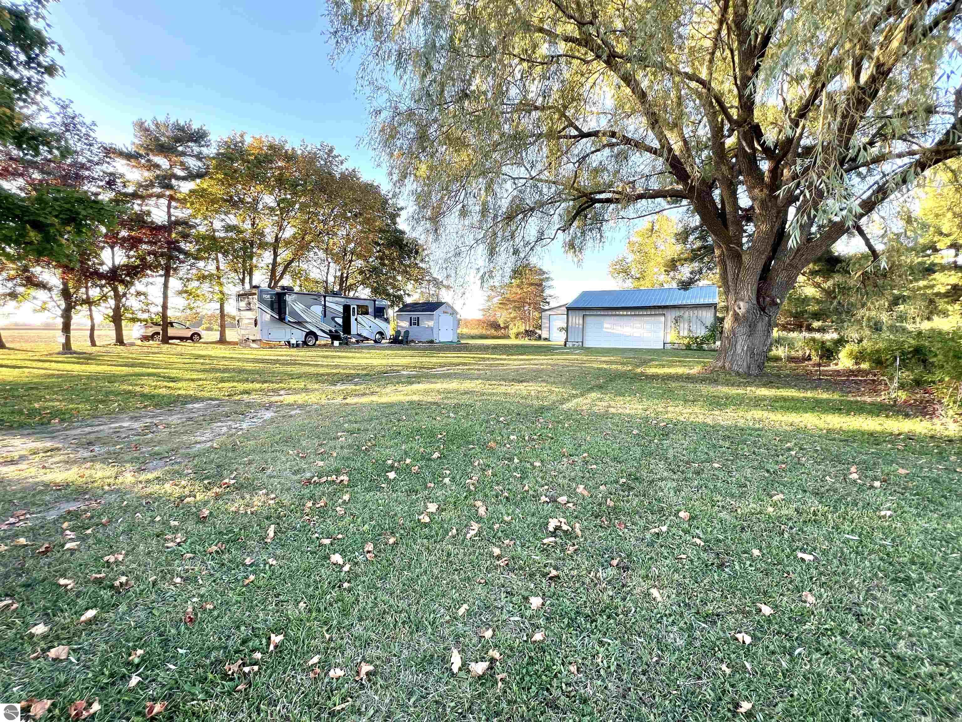 Check out this 1.06 acre parcel located on a quiet country road! A bougie OUTHOUSE is on the property, with full septic, water, and laundry hook ups! A 2 car detached garage, a large 30x40 pole barn with 10 ft sidewalls and front AND back doors! Pull up your RV, hook it up to the existing hook ups, and you will be ready to live or vacation! A beautiful willow tree, a few apple trees, and many other well established trees adorn this property. Build, or use as it's currently being used(as township rules allow!). Motorhome is NOT included in this sale, but can be purchased separately!