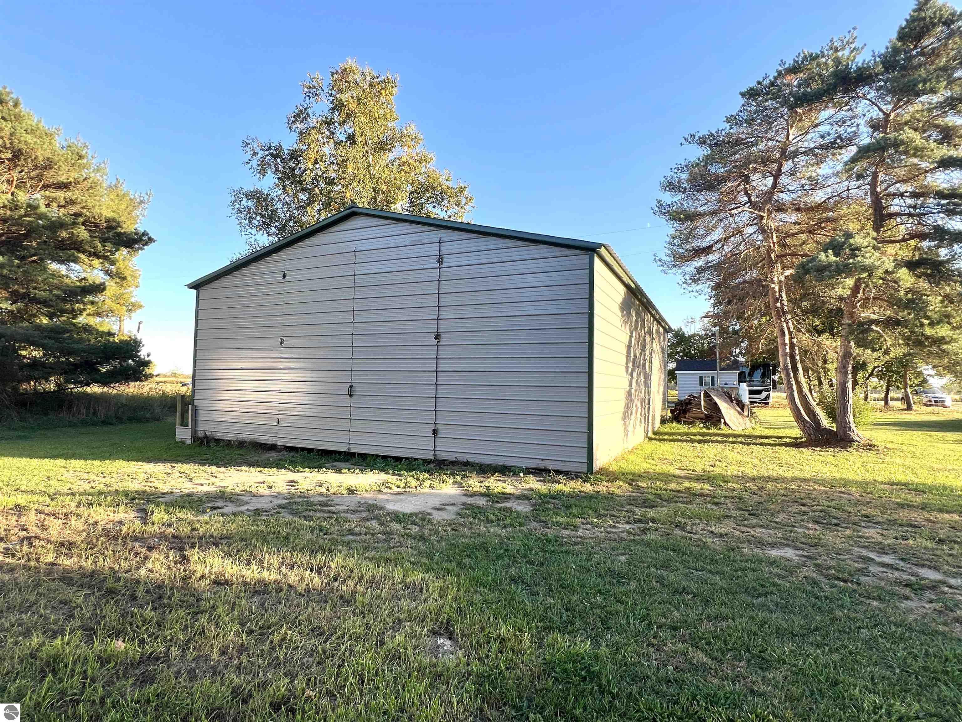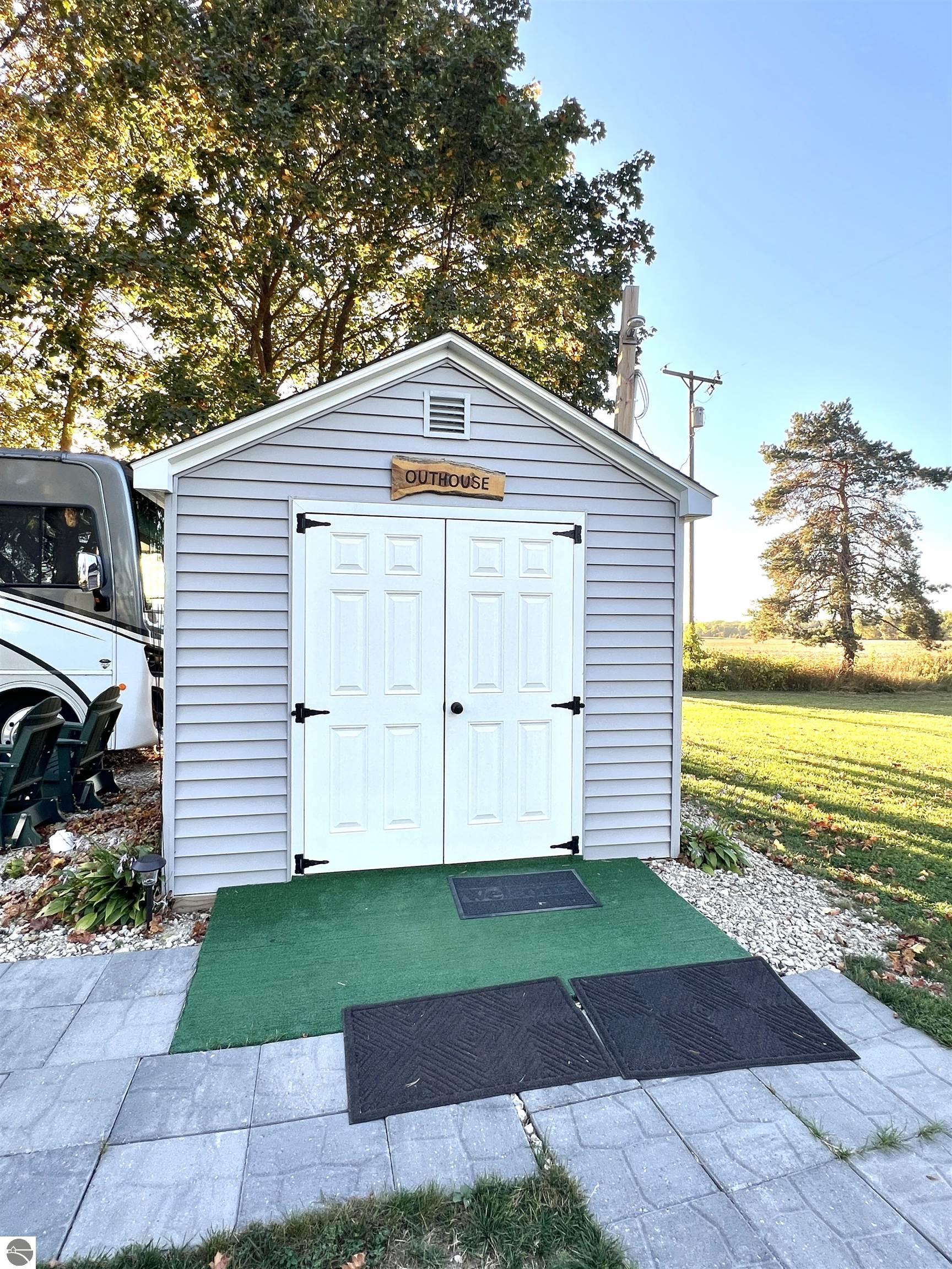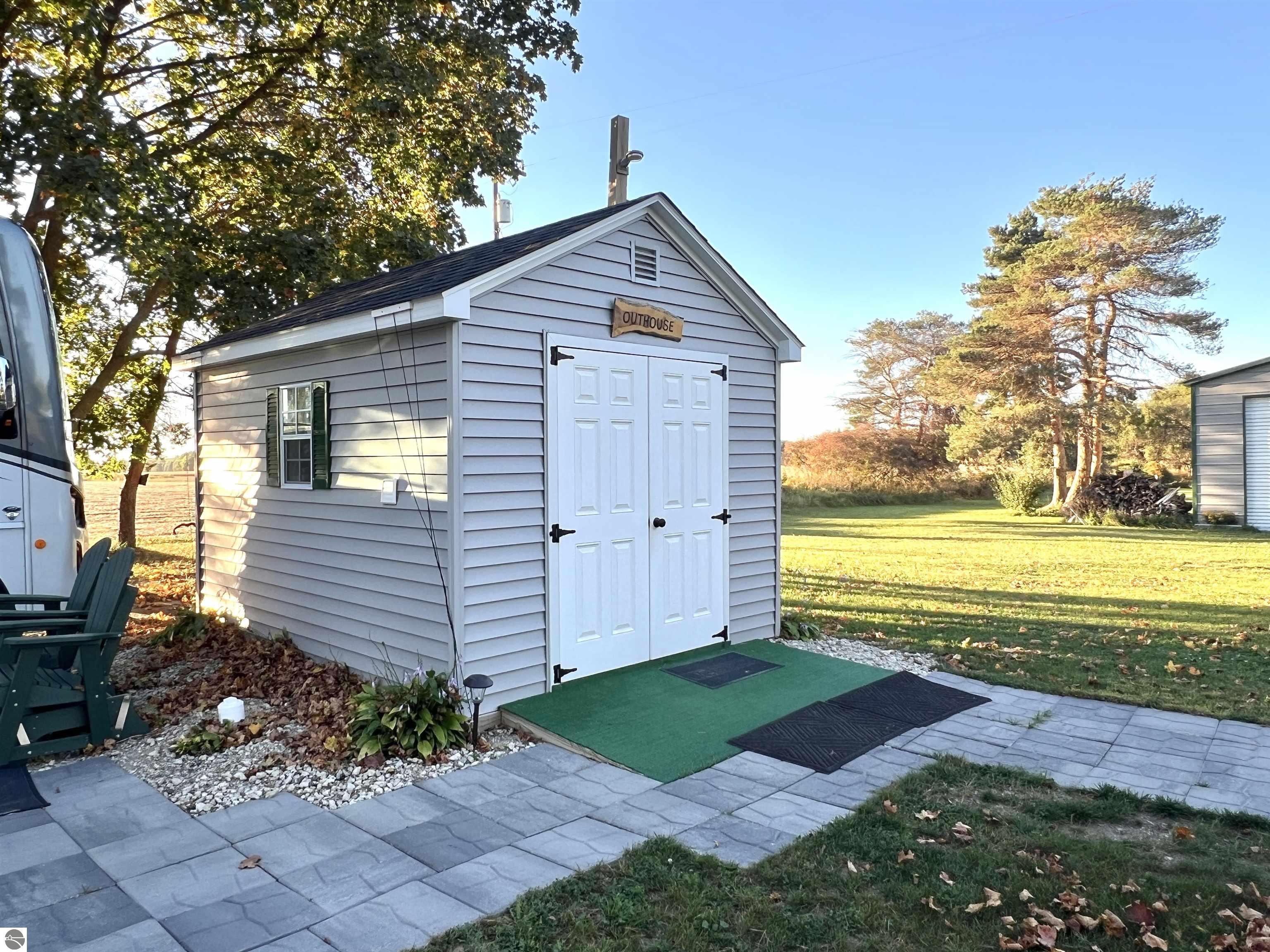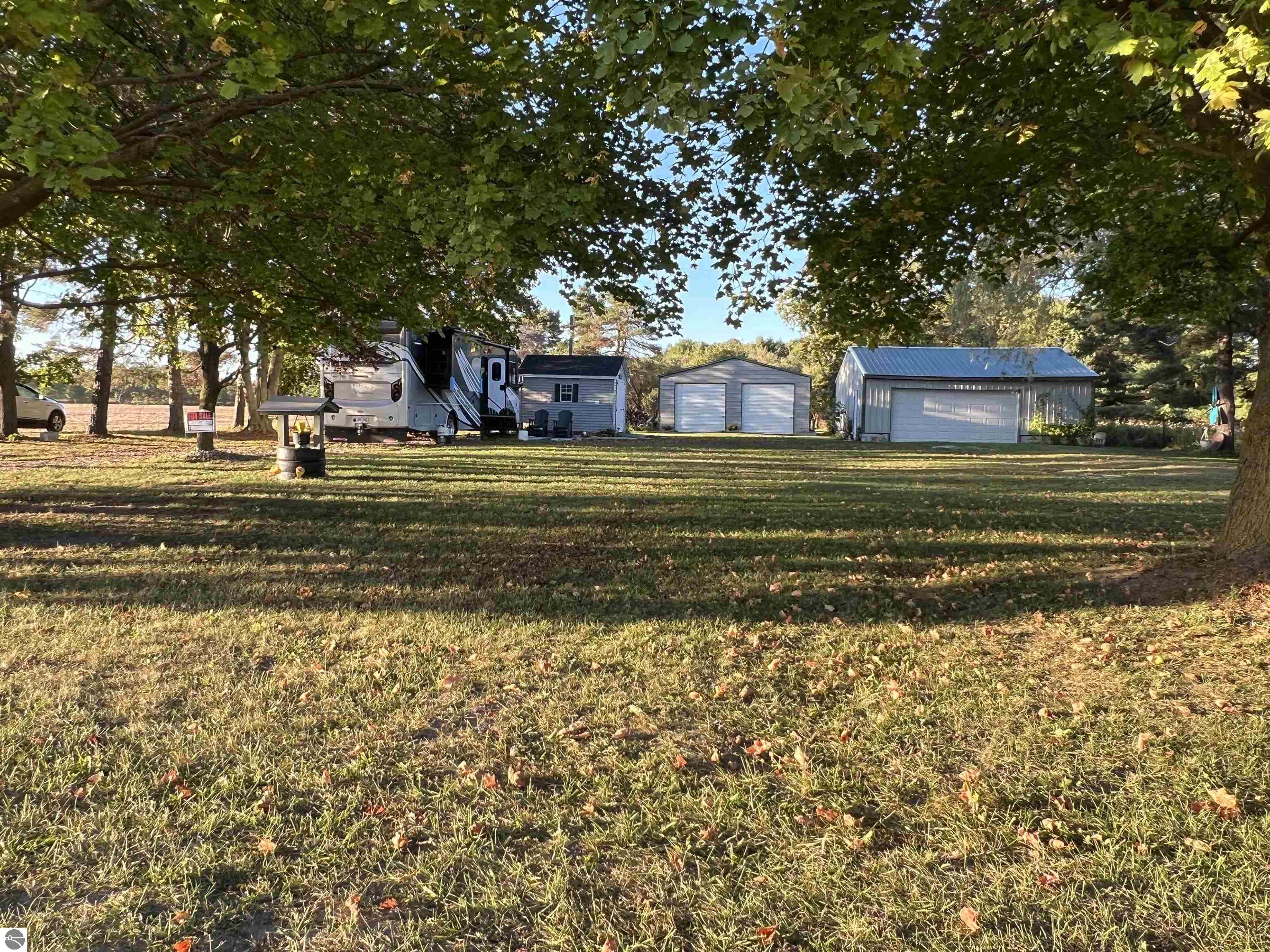 Check out this 1.06 acre parcel located on a quiet country road! A bougie OUTHOUSE is on the property, with full septic, water, and laundry hook ups! A 2 car detached garage, a large 30x40 pole barn with 10 ft sidewalls and front AND back doors! Pull up your RV, hook it up to the existing hook ups, and you will be ready to live or vacation! A beautiful willow tree, a few apple trees, and many other well established trees adorn this property. Build, or use as it's currently being used(as township rules allow!). Motorhome is NOT included in this sale, but can be purchased separately!