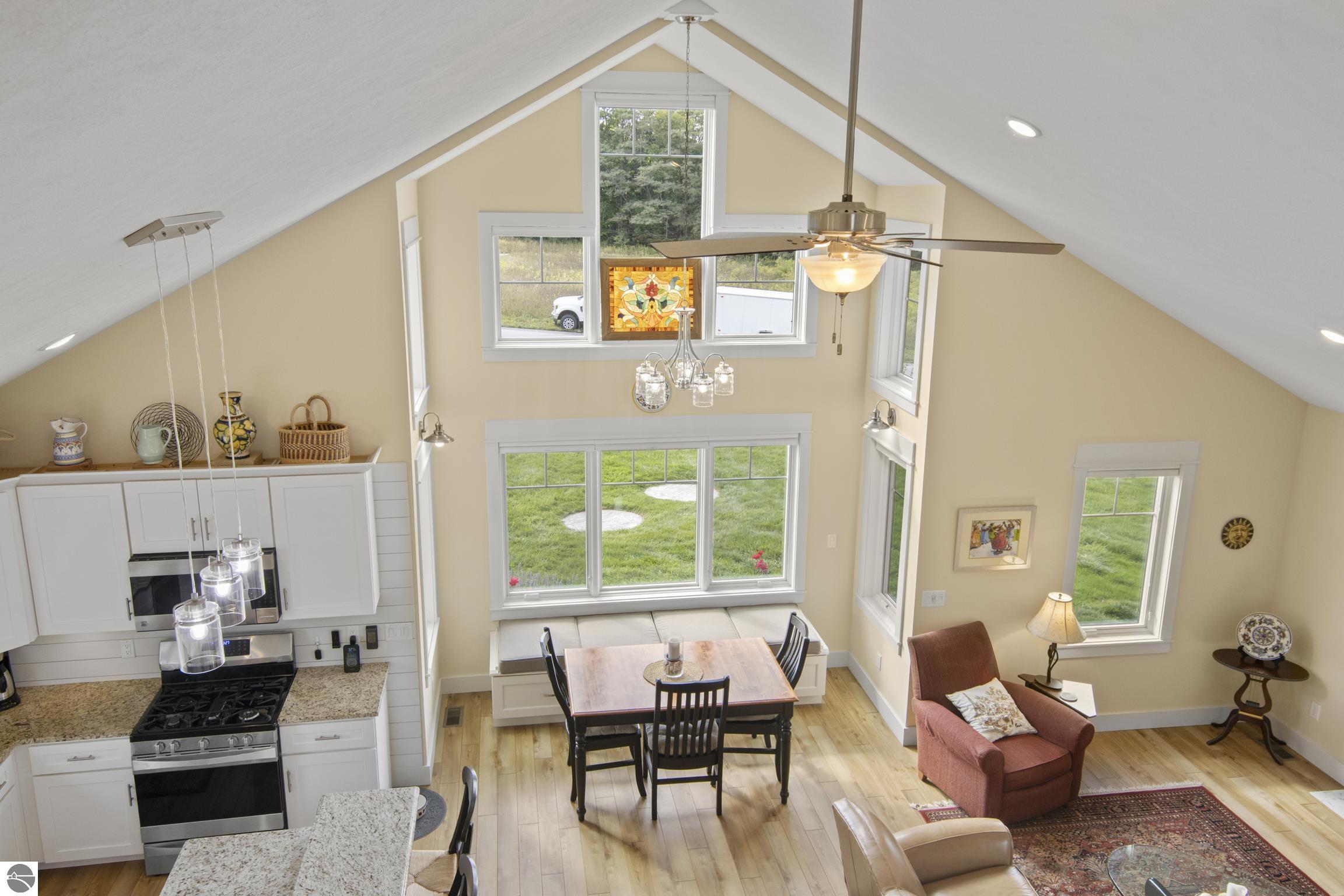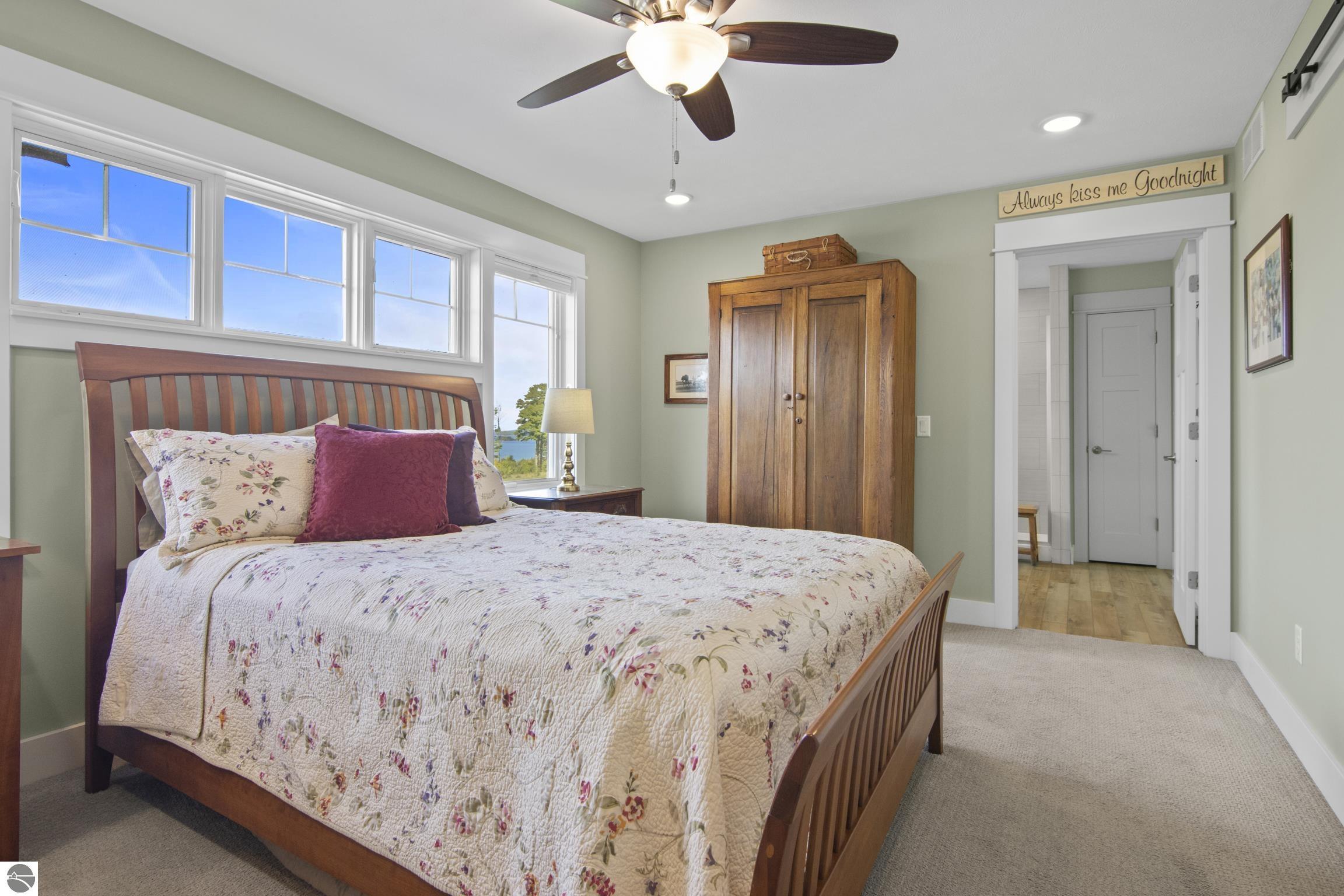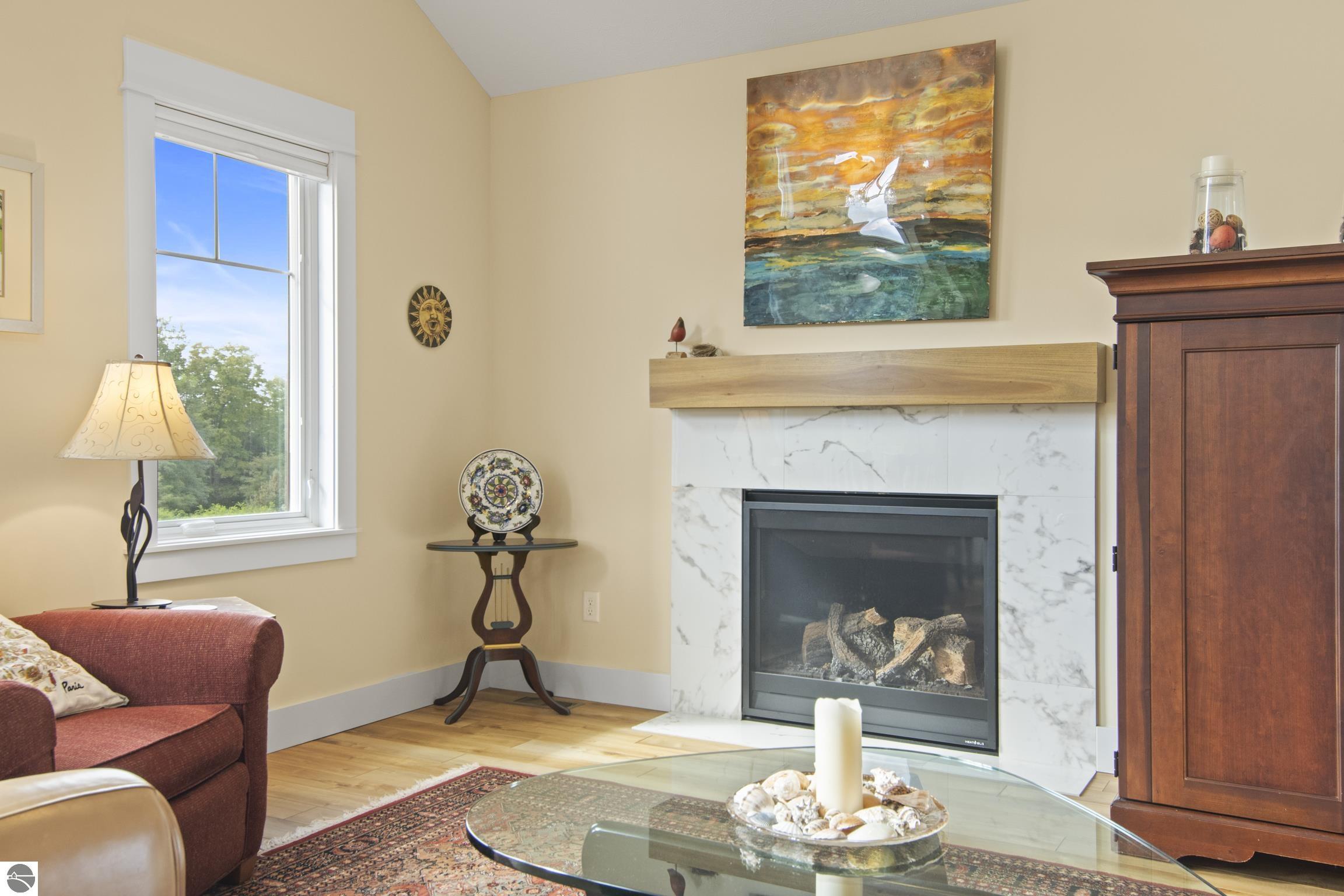 Move in with confidence and start enjoying the Leelanau lifestyle—this practicaly new 2018-built home includes a comprehensive home warranty covering plumbing, electrical, HVAC, appliances, and more. Every detail was designed for peace of mind, comfort, and connection to the beauty that surrounds it. From the moment you step inside, it wraps you in comfort and light. The main level is the heart of the home, with a thoughtfully designed open floor plan where kitchen, dining, and living spaces blend seamlessly. The kitchen showcases granite countertops and a central island, the perfect gathering spot, while the living room’s fireplace invites you to slow down and relax. Step out onto the deck and let the water views set the stage for morning coffee, sun-filled afternoons, or simply catching your breath after a day of adventure. Upstairs, a cozy loft with its own water views offers a versatile retreat—ideal for a home office, reading nook, or quiet getaway. The lower level extends the living space with a family room, another fireplace, full bath, and a Murphy bed perfect for hosting guests. Practical details ensure this home is as functional as it is beautiful: Pella high-performance windows, luxury vinyl flooring, remote-controlled cellular shades, reverse osmosis water system, instant hot water heater, generator wiring, and sprinklers in the front yard. Off the garage, you’ll find a dedicated workshop and storage area, perfect for projects and keeping life organized. Outdoors, enjoy the 20x30 stone patio and, come evening, gather by the firepit beneath a canopy of stars. The HOA covers snow removal, road maintenance, trash, and community septic, adding to the convenience and worry-free lifestyle. Perfectly situated off the scenic M-22 corridor, you're minutes from Good Harbor Beach, wineries, golf, eateries, boating, fishing, and more. Here, peace and comfort meet beauty—and every day feels like a front-row seat to the Up North life you’ve been dreaming of.