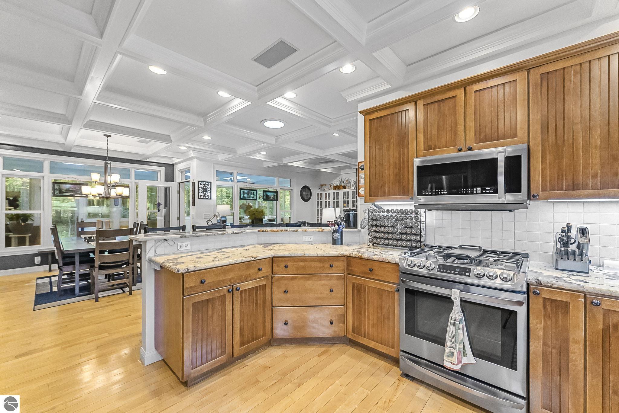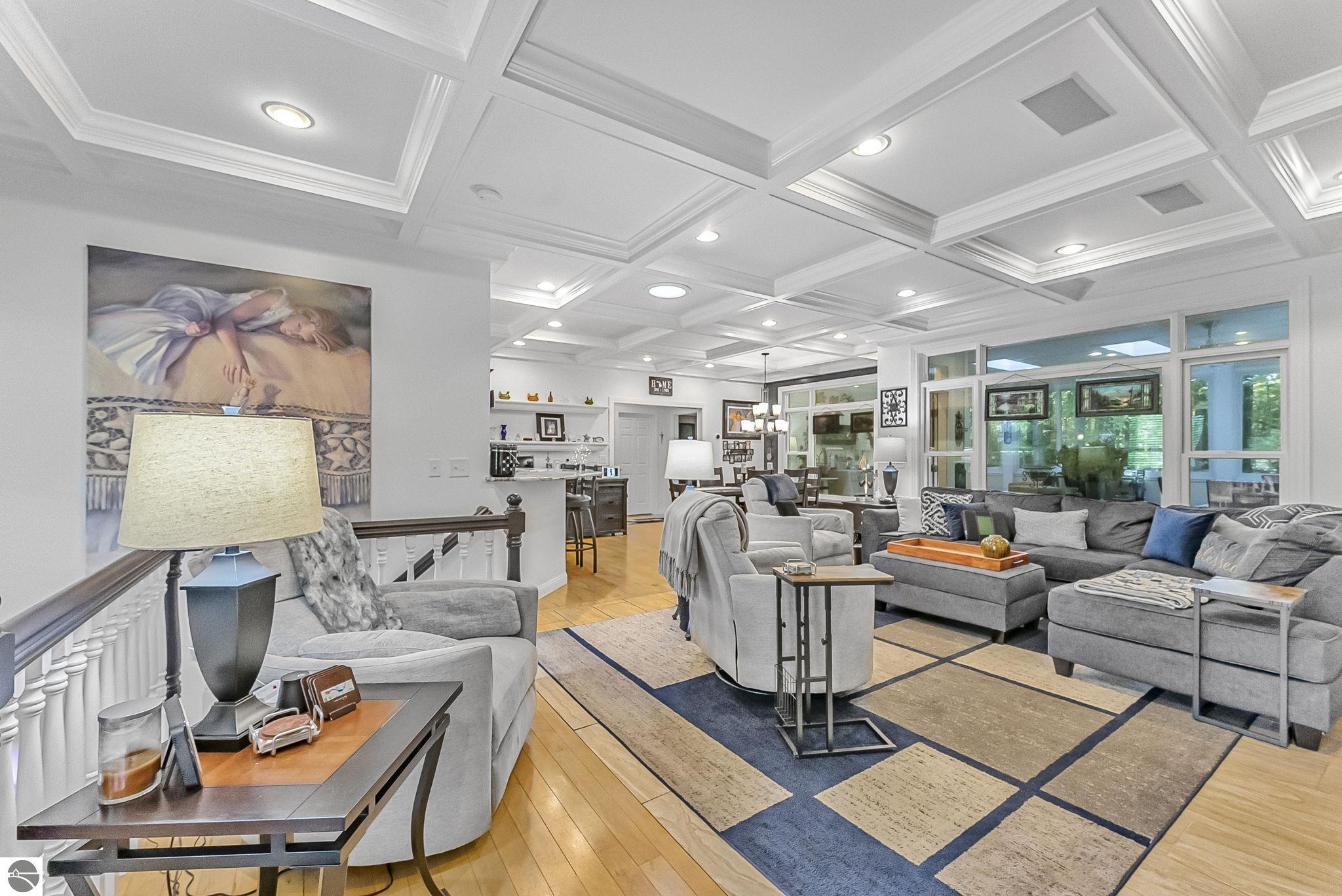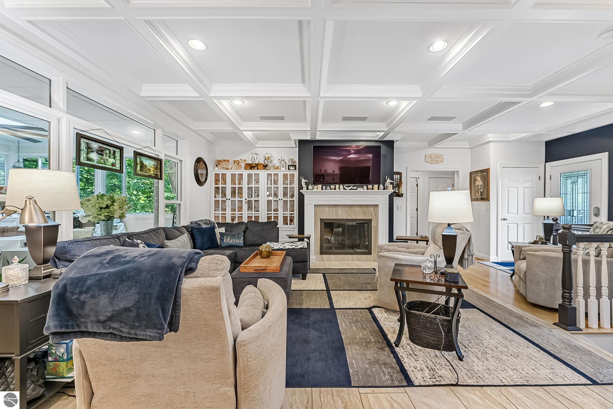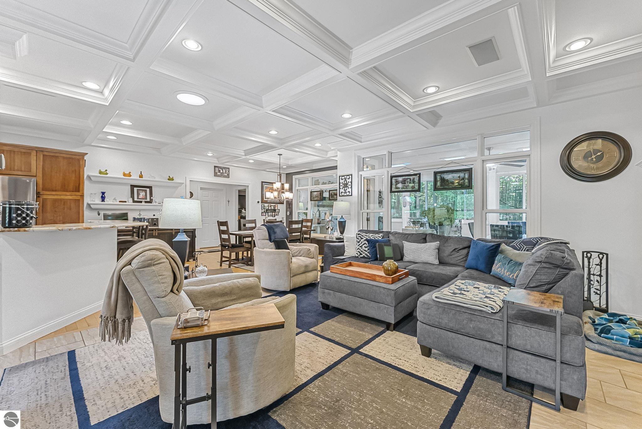 Step into elegance with this 4 bedroom, 3 bath home in Petoskey, set on 2.5 acres of natural beauty and surrounded by a private nature preserve on three sides. The open floor plan flows effortlessly beneath stunning coffered ceilings, while the gourmet kitchen boasts granite countertops and main-floor laundry for convenience. Retreat to the luxurious primary suite featuring a walk-in closet and a spa-like double shower. A bright 3 season room filled with natural light is the perfect spot to relax and take in the views. The finished walkout basement expands your living space, while the 3 car garage with epoxy floors and built-in storage keeps everything organized. A 12x24 shed offers even more space for tools, toys, or hobbies. With countless updates and serene surroundings, this property blends comfort, style, and nature into one perfect package.