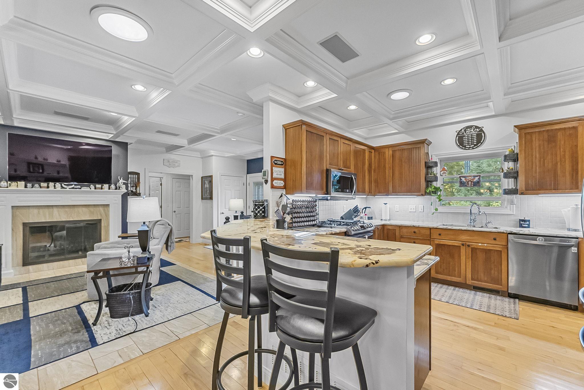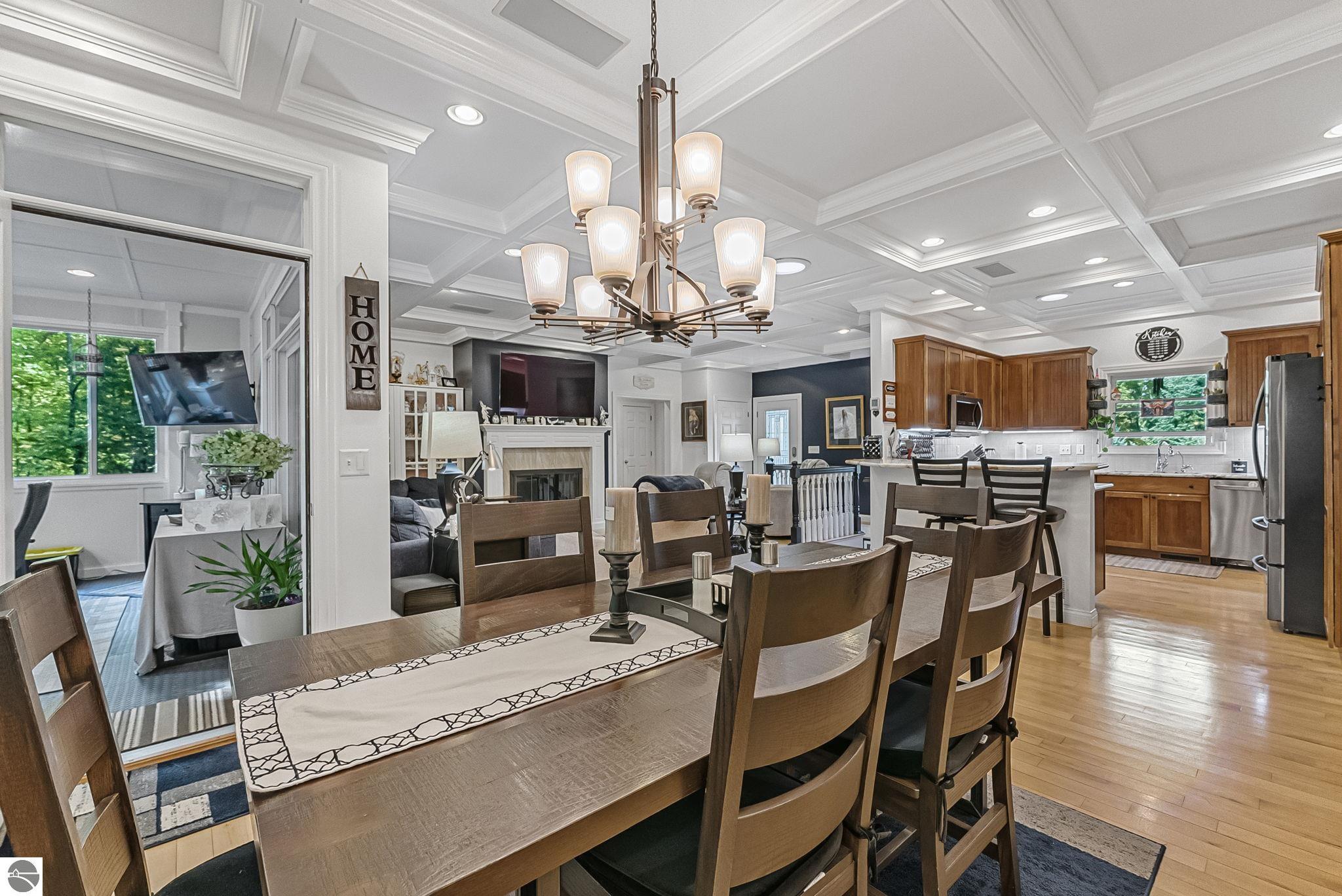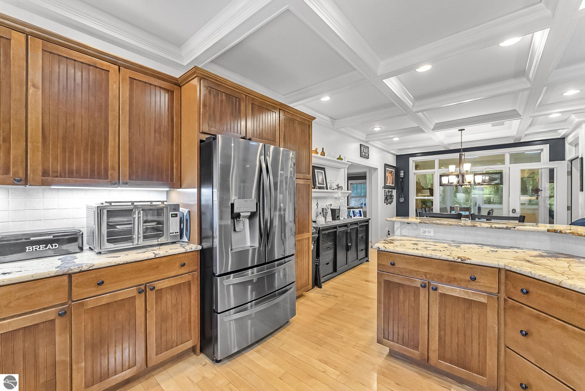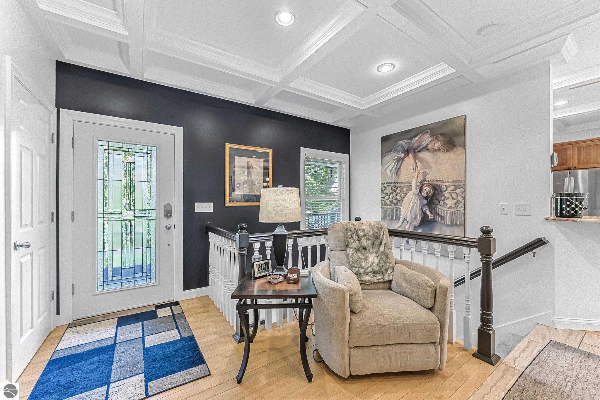 Step into elegance with this 4 bedroom, 3 bath home in Petoskey, set on 2.5 acres of natural beauty and surrounded by a private nature preserve on three sides. The open floor plan flows effortlessly beneath stunning coffered ceilings, while the gourmet kitchen boasts granite countertops and main-floor laundry for convenience. Retreat to the luxurious primary suite featuring a walk-in closet and a spa-like double shower. A bright 3 season room filled with natural light is the perfect spot to relax and take in the views. The finished walkout basement expands your living space, while the 3 car garage with epoxy floors and built-in storage keeps everything organized. A 12x24 shed offers even more space for tools, toys, or hobbies. With countless updates and serene surroundings, this property blends comfort, style, and nature into one perfect package.