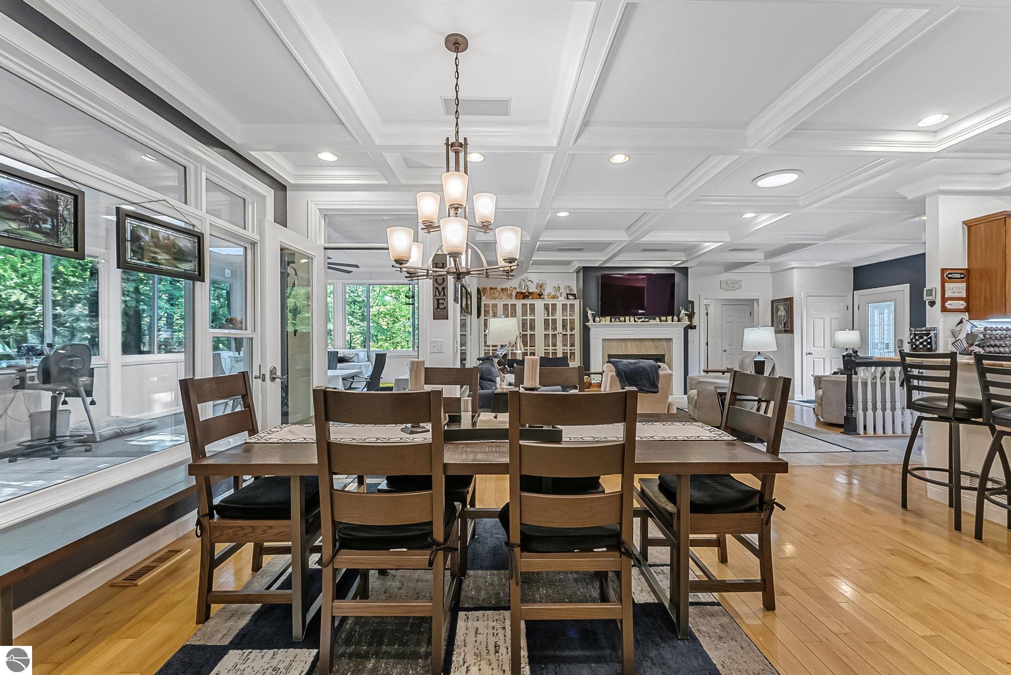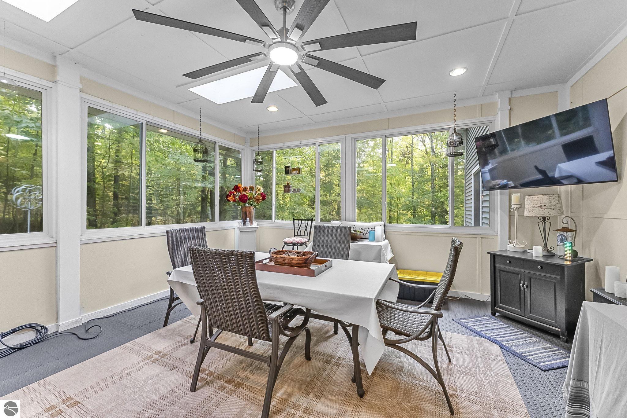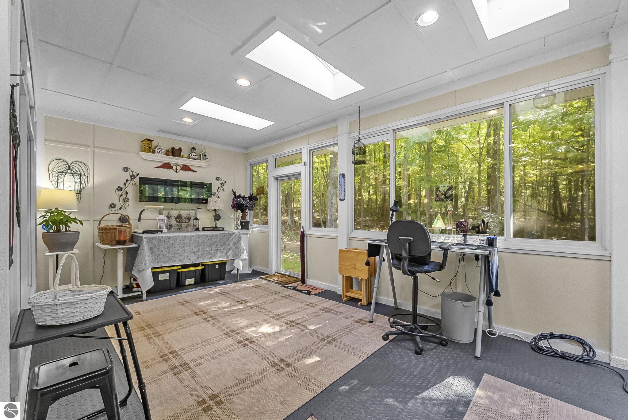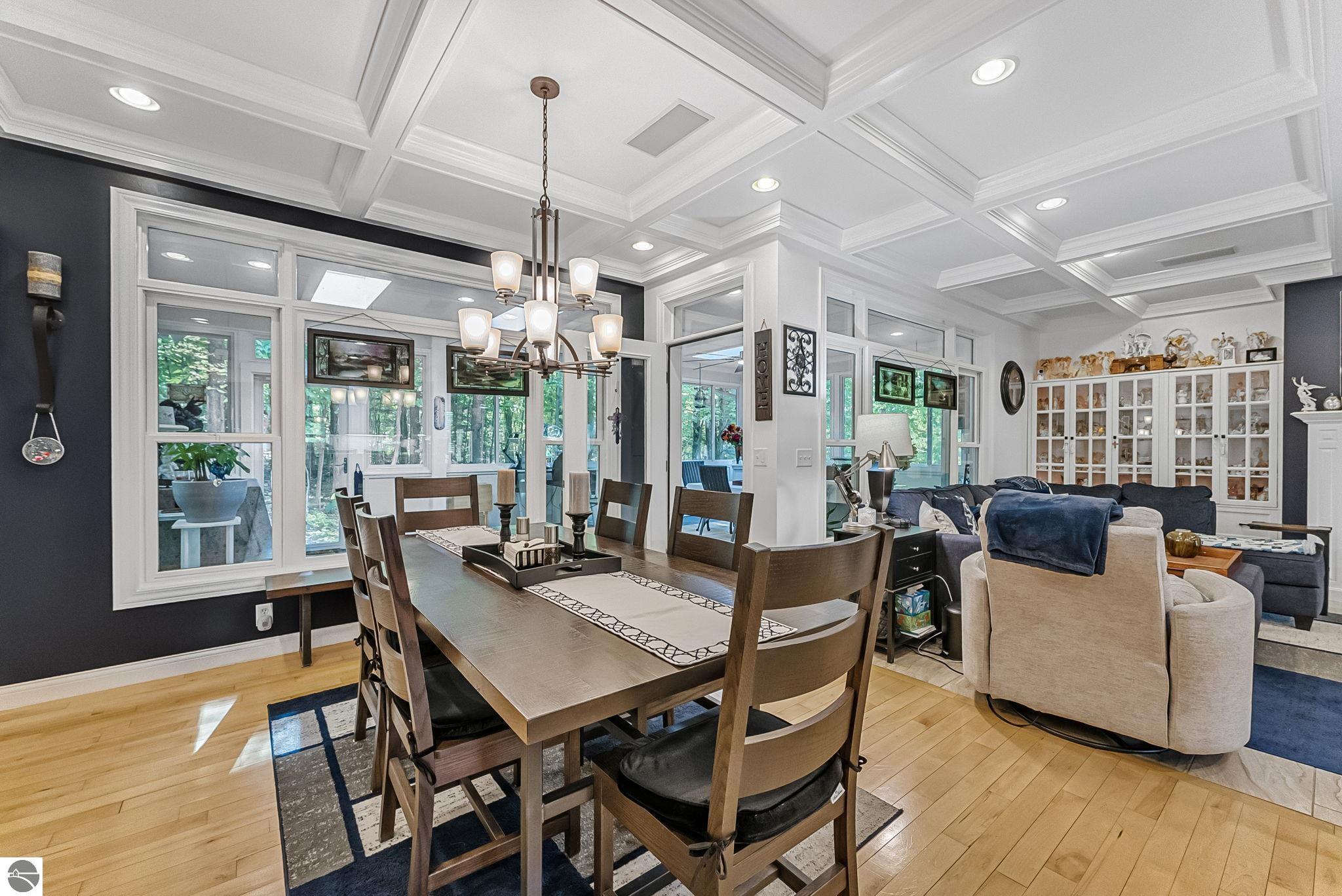Step into elegance with this 4 bedroom, 3 bath home in Petoskey, set on 2.5 acres of natural beauty and surrounded by a private nature preserve on three sides. The open floor plan flows effortlessly beneath stunning coffered ceilings, while the gourmet kitchen boasts granite countertops and main-floor laundry for convenience. Retreat to the luxurious primary suite featuring a walk-in closet and a spa-like double shower. A bright 3 season room filled with natural light is the perfect spot to relax and take in the views. The finished walkout basement expands your living space, while the 3 car garage with epoxy floors and built-in storage keeps everything organized. A 12x24 shed offers even more space for tools, toys, or hobbies. With countless updates and serene surroundings, this property blends comfort, style, and nature into one perfect package.