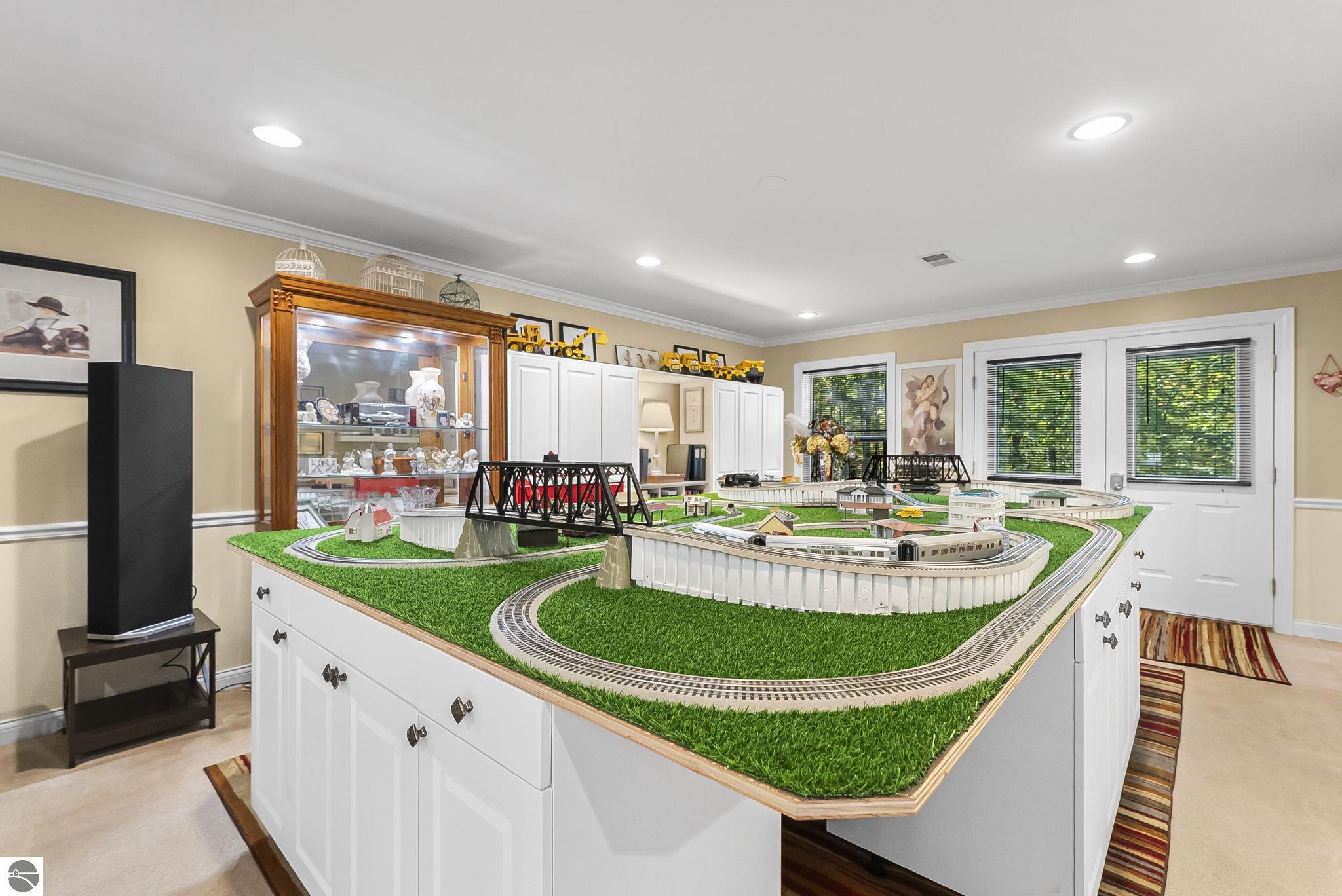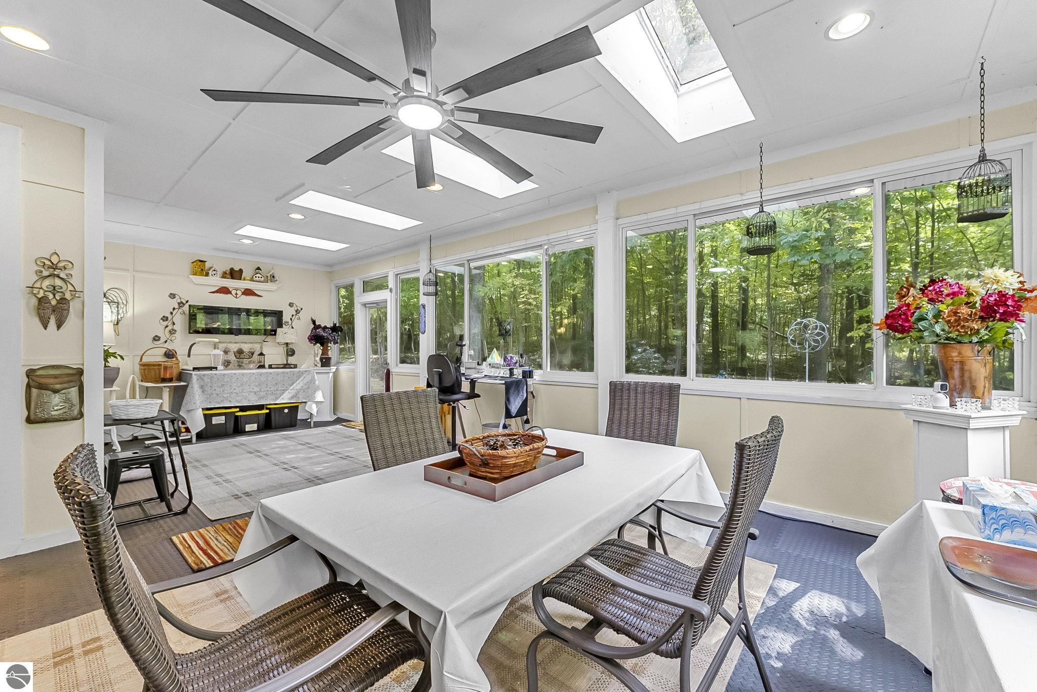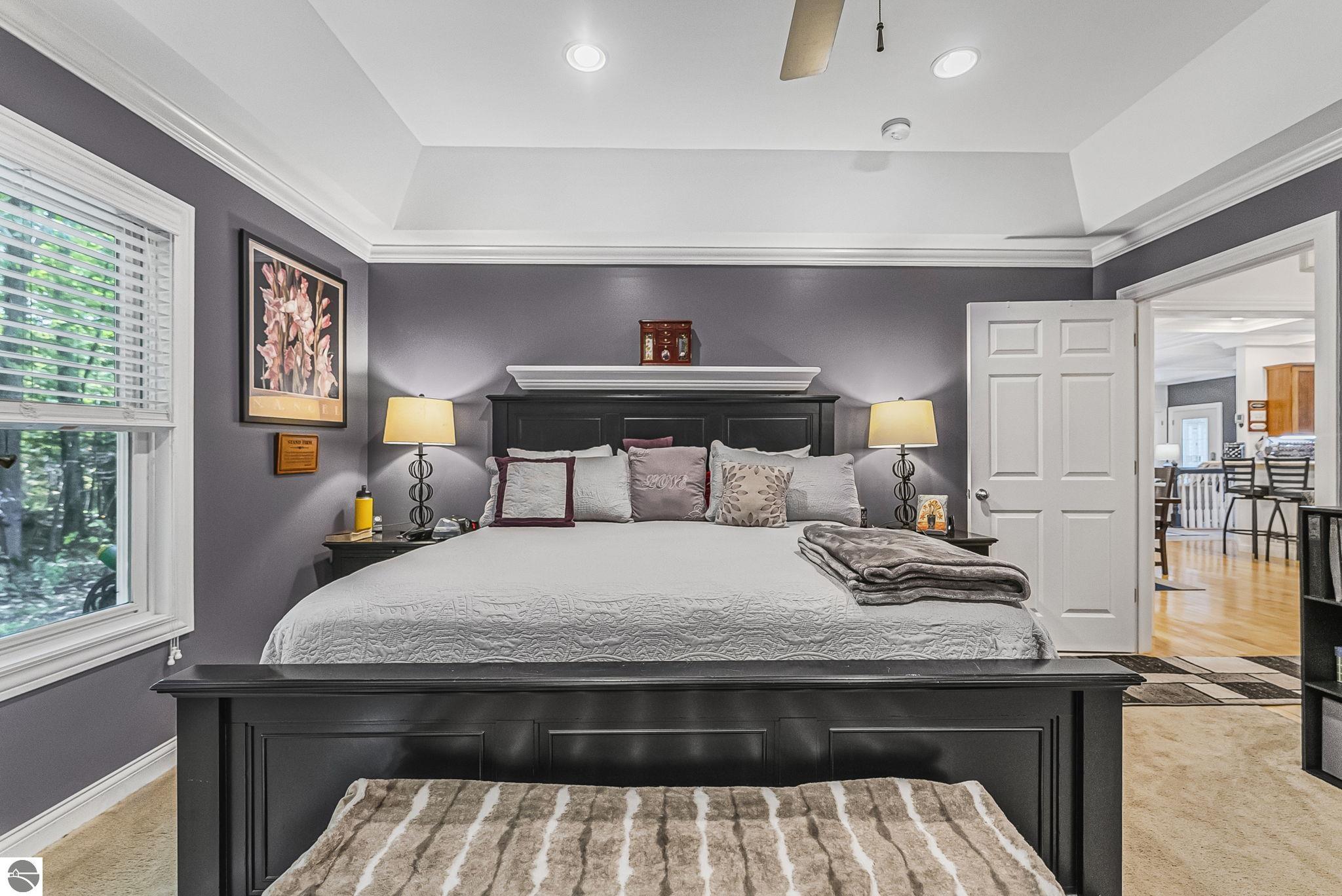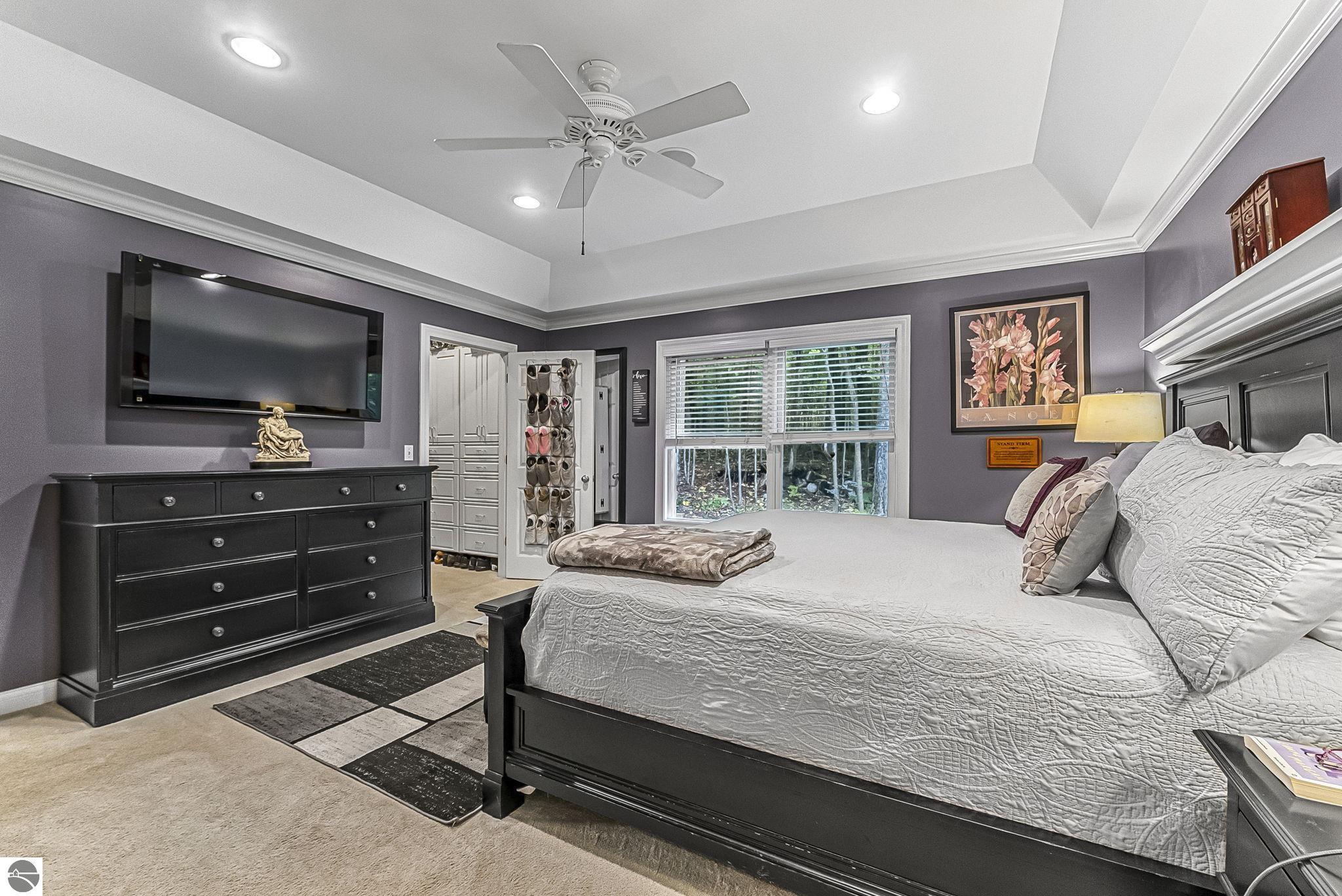 Step into elegance with this 4 bedroom, 3 bath home in Petoskey, set on 2.5 acres of natural beauty and surrounded by a private nature preserve on three sides. The open floor plan flows effortlessly beneath stunning coffered ceilings, while the gourmet kitchen boasts granite countertops and main-floor laundry for convenience. Retreat to the luxurious primary suite featuring a walk-in closet and a spa-like double shower. A bright 3 season room filled with natural light is the perfect spot to relax and take in the views. The finished walkout basement expands your living space, while the 3 car garage with epoxy floors and built-in storage keeps everything organized. A 12x24 shed offers even more space for tools, toys, or hobbies. With countless updates and serene surroundings, this property blends comfort, style, and nature into one perfect package.
