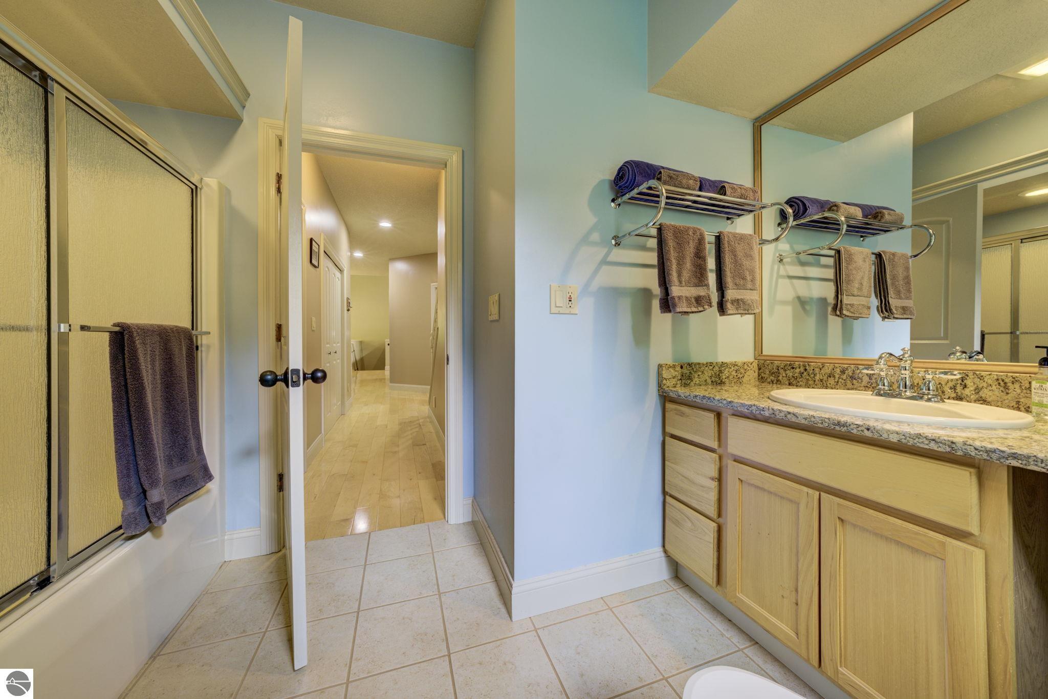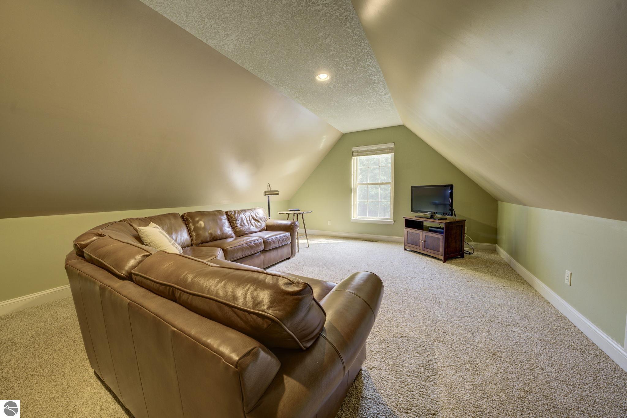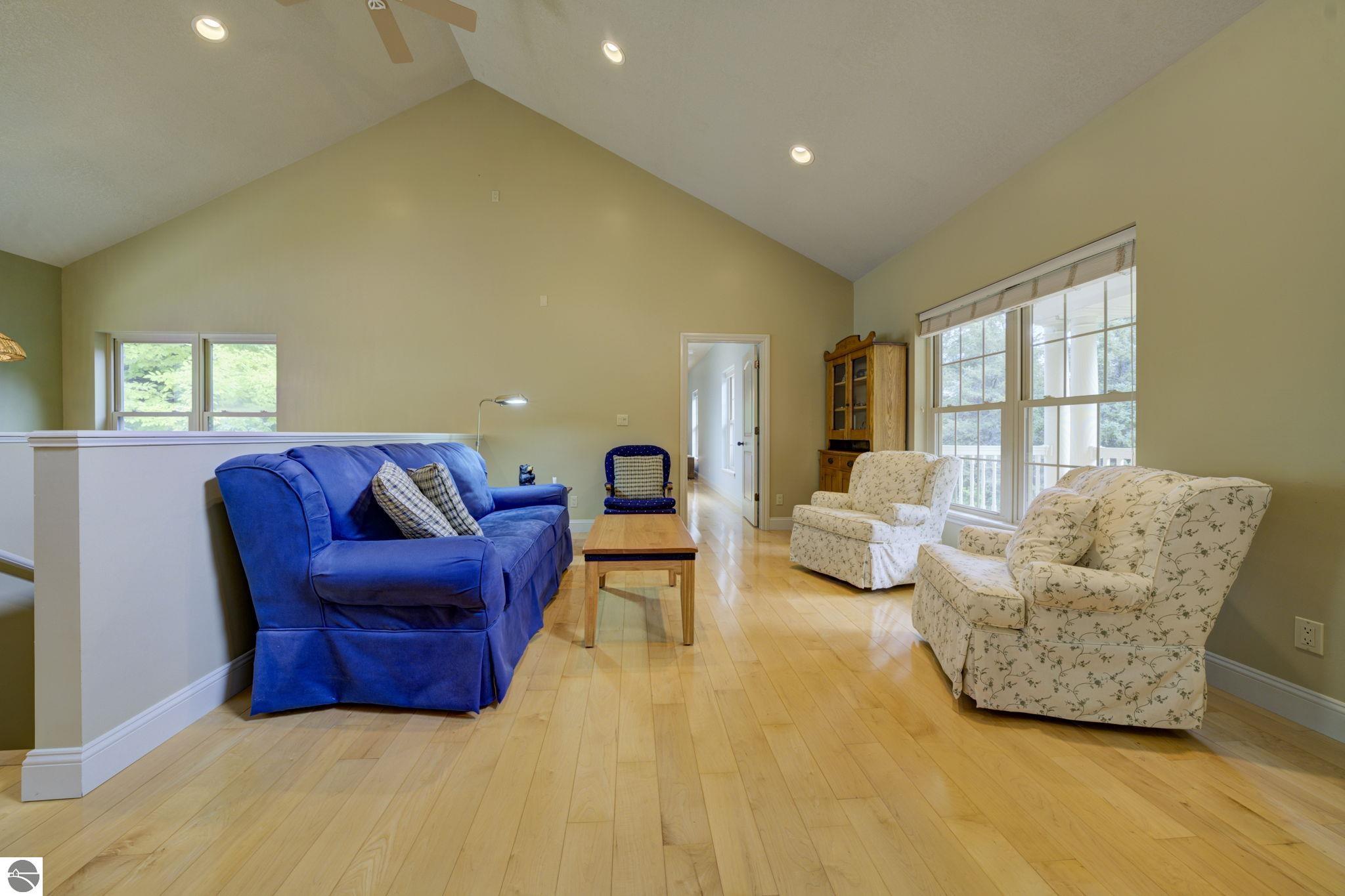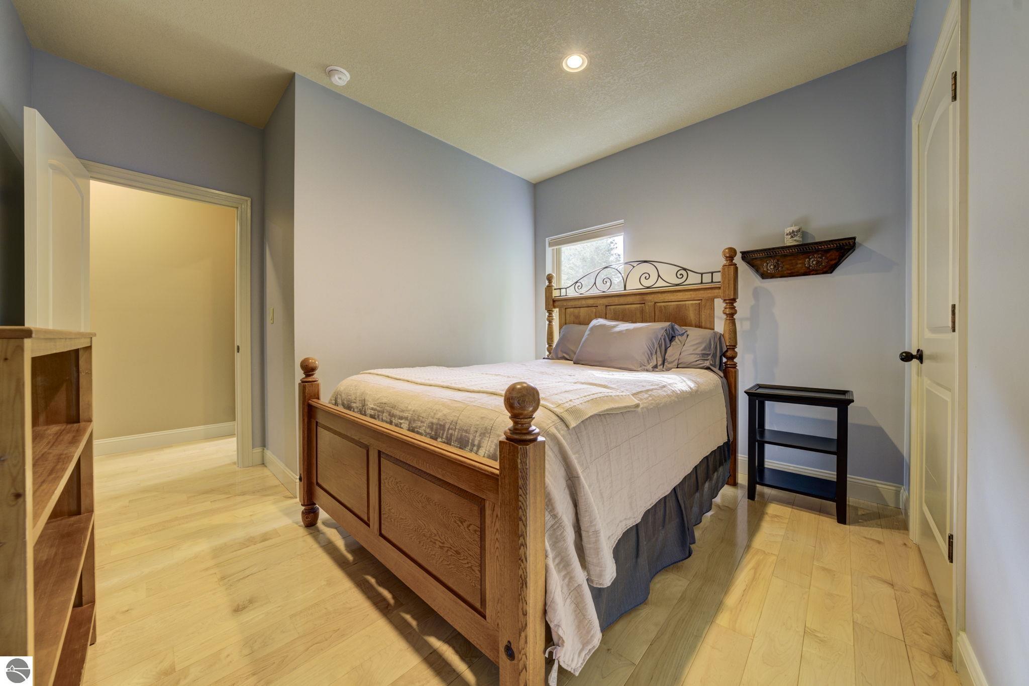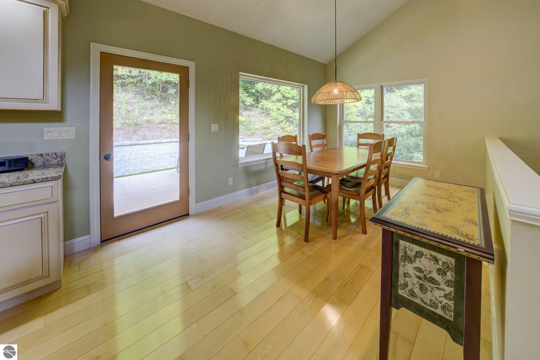 Located just 10 minutes from Traverse City, this well-maintained ranch features nearly 2100 sqft on the main floor with 4 bedrooms (including 2 private suites); 3 full bathrooms with granite; spacious kitchen with maple cabinets, large pantry, 7'x4' granite island; hardwood floors throughout the main level; finished bonus room above garage; covered front porch; composite decking; and 2079 sqft of unfinished space in the basement. Recent updates include furnace, pressure tank, sump pump, water heater, retaining wall. Situated on a 1.5-acre landscaped lot on a peaceful cul-de-sac street with other fine homes, this home offers quality construction, a thoughtfully designed floorplan, plenty of outdoor space, and is just minutes to shopping, schools, trails, restaurants, and beaches.