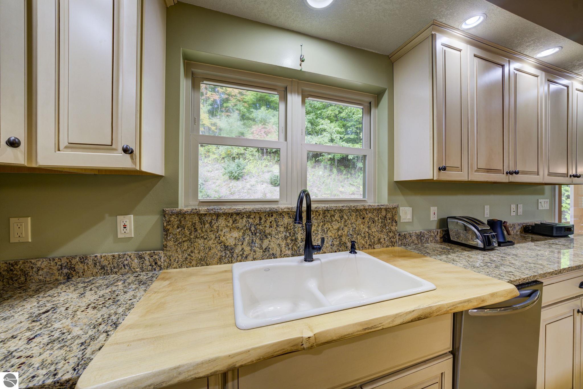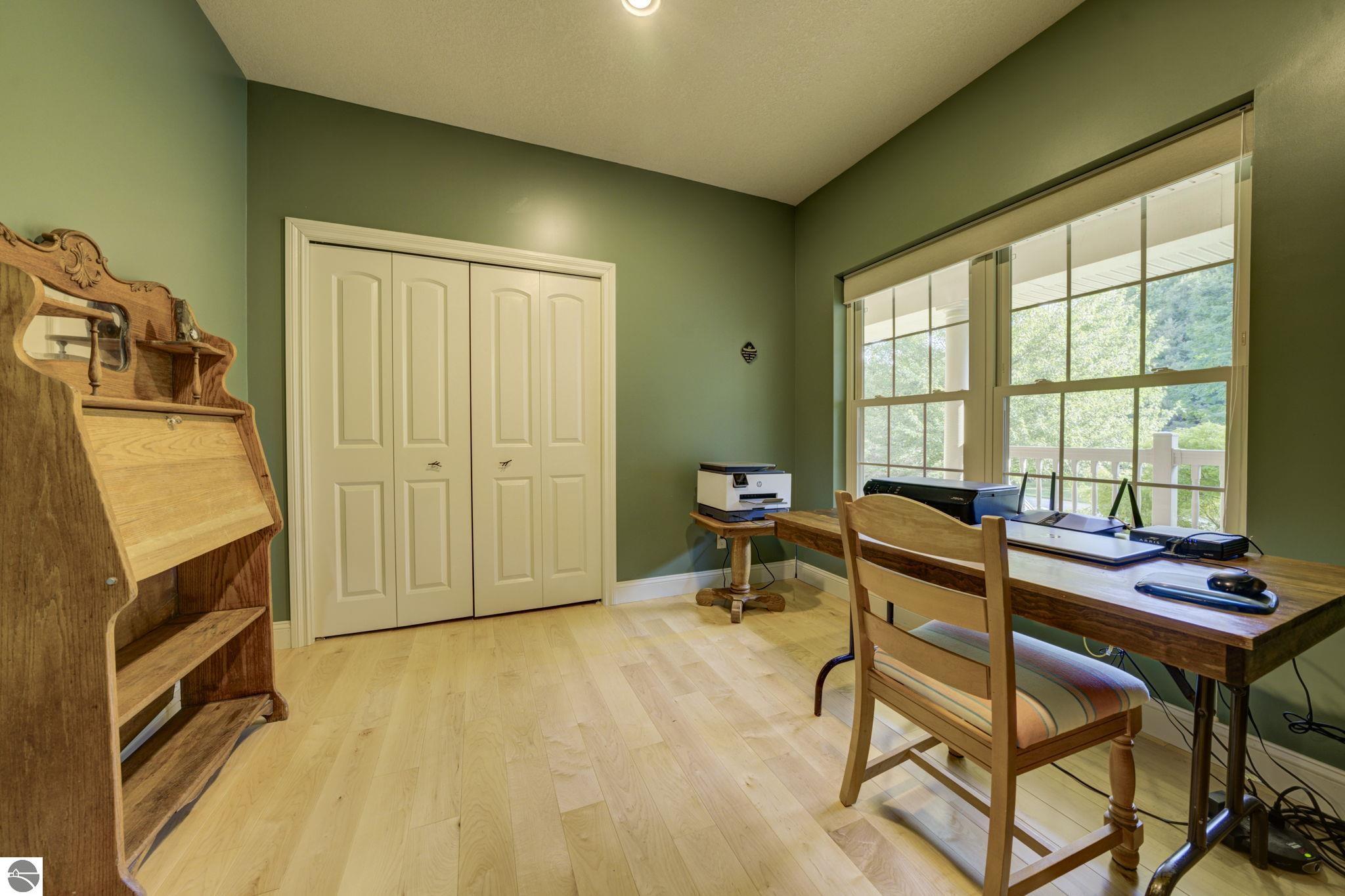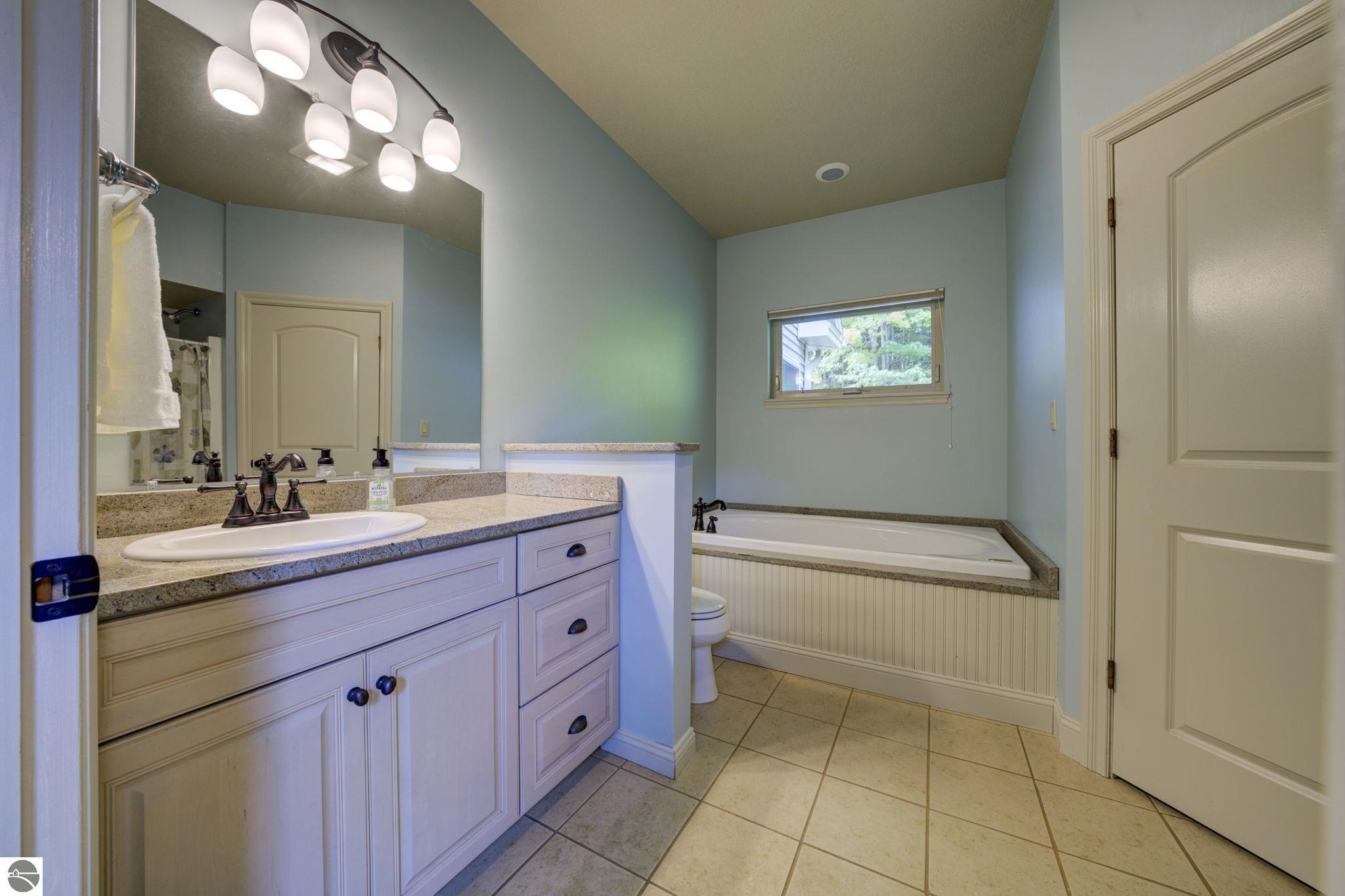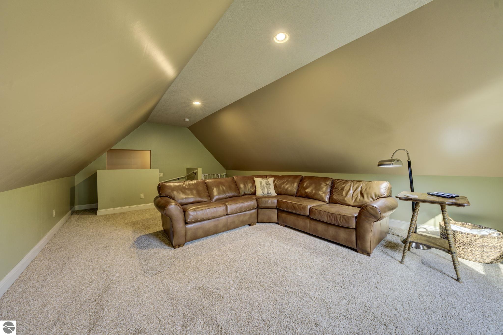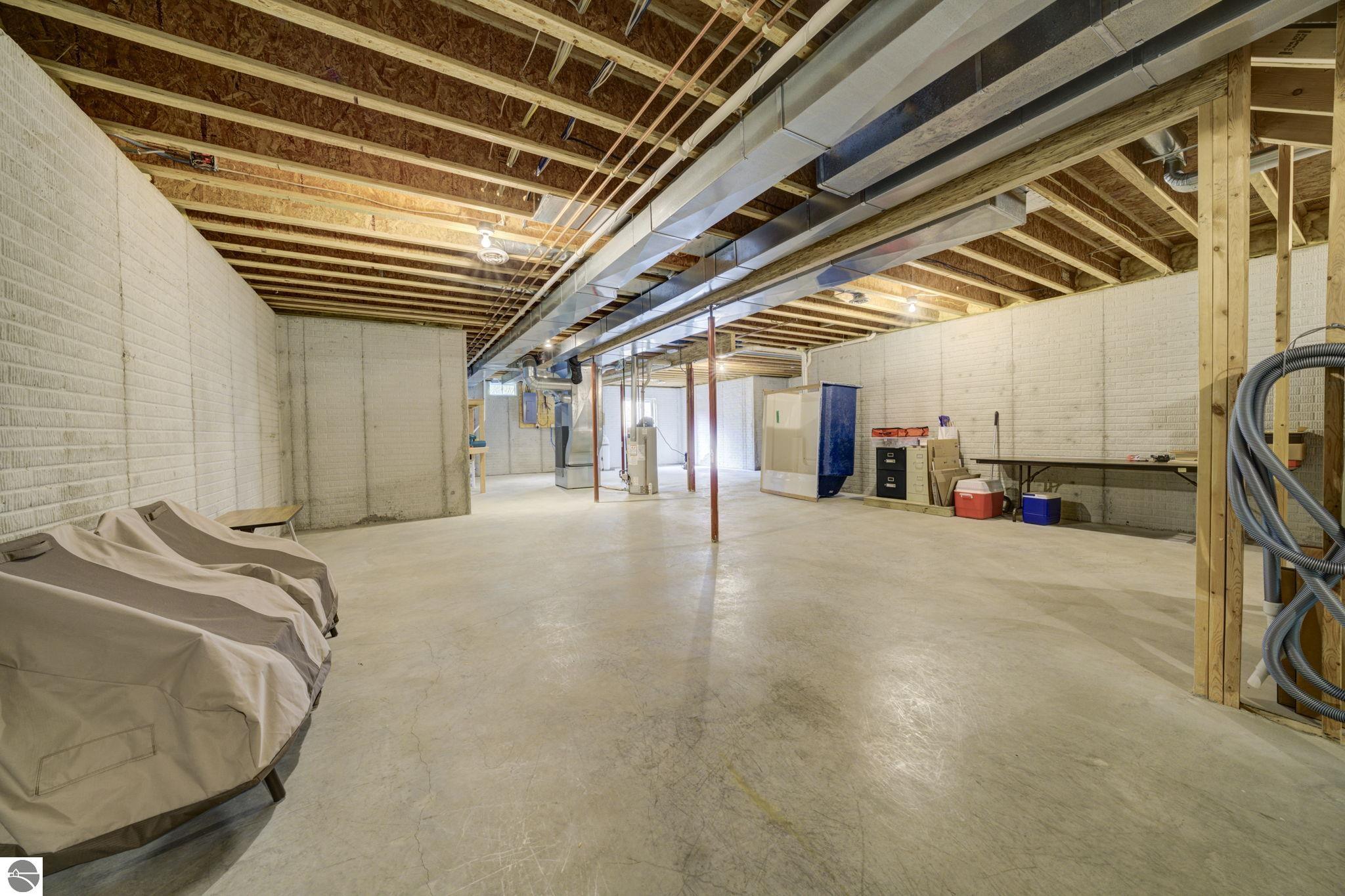 Located just 10 minutes from Traverse City, this well-maintained ranch features nearly 2100 sqft on the main floor with 4 bedrooms (including 2 private suites); 3 full bathrooms with granite; spacious kitchen with maple cabinets, large pantry, 7'x4' granite island; hardwood floors throughout the main level; finished bonus room above garage; covered front porch; composite decking; and 2079 sqft of unfinished space in the basement. Recent updates include furnace, pressure tank, sump pump, water heater, retaining wall. Situated on a 1.5-acre landscaped lot on a peaceful cul-de-sac street with other fine homes, this home offers quality construction, a thoughtfully designed floorplan, plenty of outdoor space, and is just minutes to shopping, schools, trails, restaurants, and beaches.