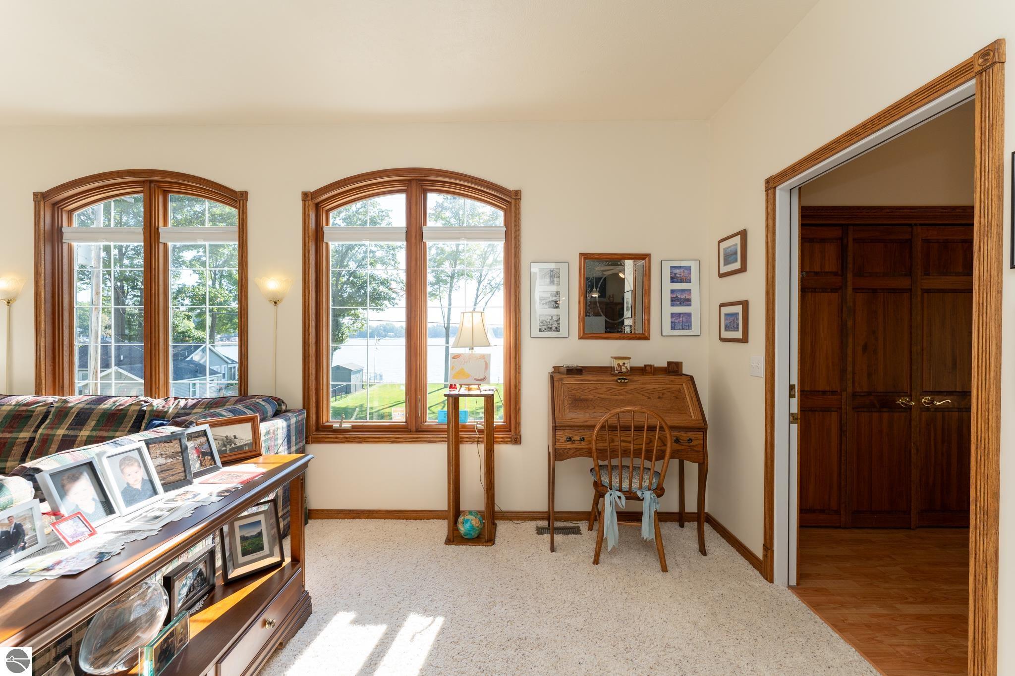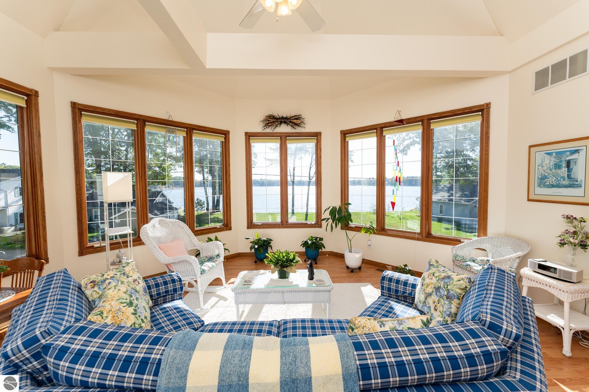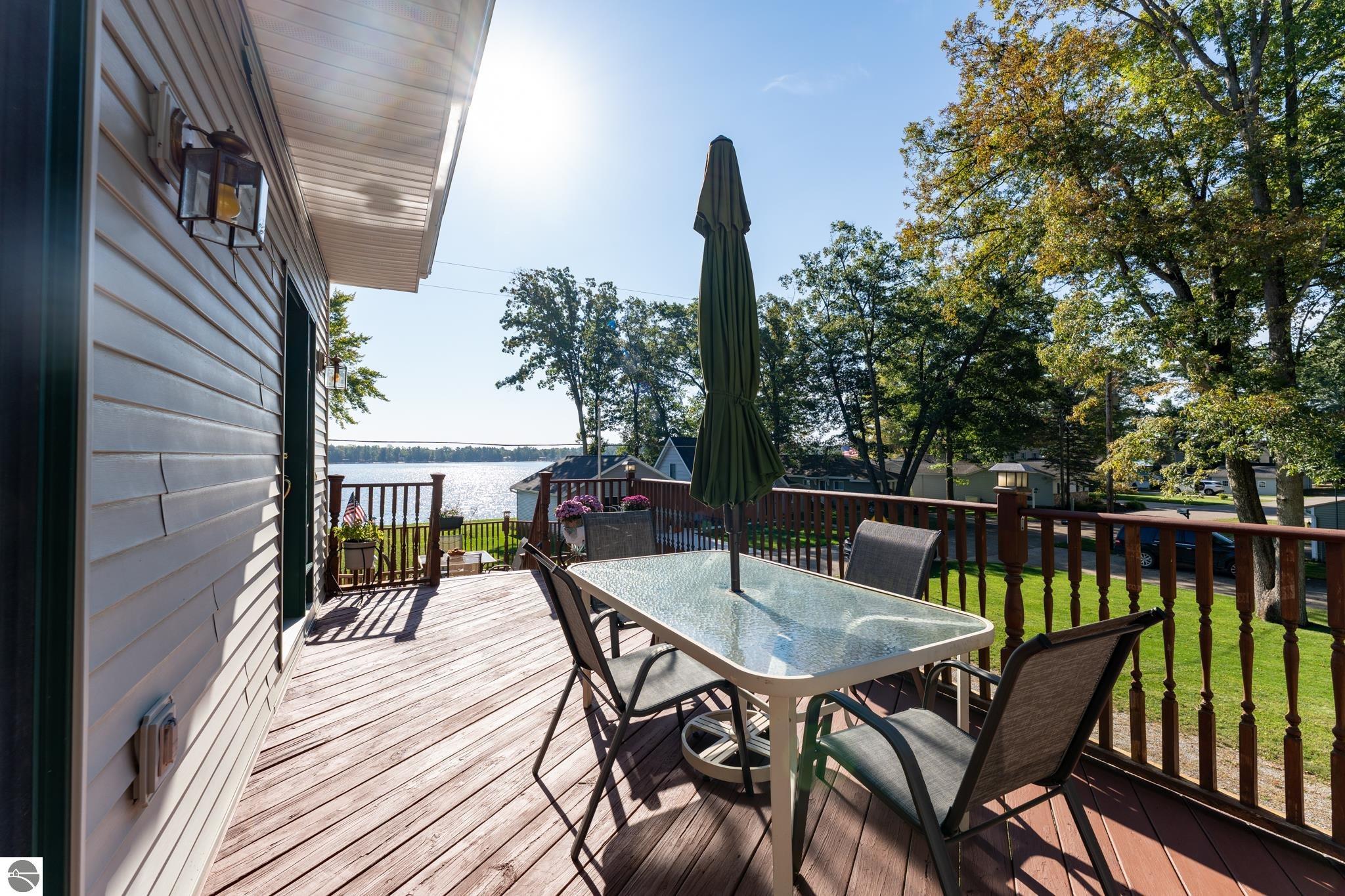 First time offered for sale. Don’t miss this opportunity to own a one-of-a-kind 4+ bedroom, 3-bath home with over 3,000 square feet of living space on beautiful Eight Point Lake. Includes 25x111 of private lake access to design your dream gazebo, outdoor kitchen, or entertaining space. Enjoy off-water taxes while still capturing spectacular lake views! This unique build includes a ground-level, 31x42 two car garage with room for vehicles, storage, and toys, plus mechanical room. A recently installed Generac 24k whole-house generator ensures peace of mind. From the garage, access the home by elevator or take the stairs up freshly stained multi-level decks to the main entry. The main level features a nearly 400 sq ft primary suite, complete with French doors leading into a 300 sq. ft. polygonal bay room where you’ll enjoy breathtaking sunrises and water views. The kitchen and dining areas feature cathedral ceilings, a large island with additional seating for five, and access to the large lake facing deck. The living room includes a natural gas fireplace for winter evenings, and french door access to the bay room. Two additional bedrooms, one with direct access to the back deck, along with a second full bath and large laundry room complete this level. Upstairs offers more cathedral ceilings with space to relax and entertain: an additional bedroom, full bath, wet bar, game room, family room, generous storage areas, and more breathtaking water views. The large lot provides expansive green space along with a 42x32 pole barn featuring 13 ft sidewalls, concrete approach and floors, 8x8 and 10x10 overhead doors, two service doors, and 100-amp panel. Eight Point Lake is known for excellent fishing, water recreation, sandbar gatherings, golf cart rides, summer concerts, and holiday events, including the July 4th 5k and Labor Day fireworks. Whether for seasonal use or year-round living, this home offers a great opportunity to enjoy all that lake living has to offer.
