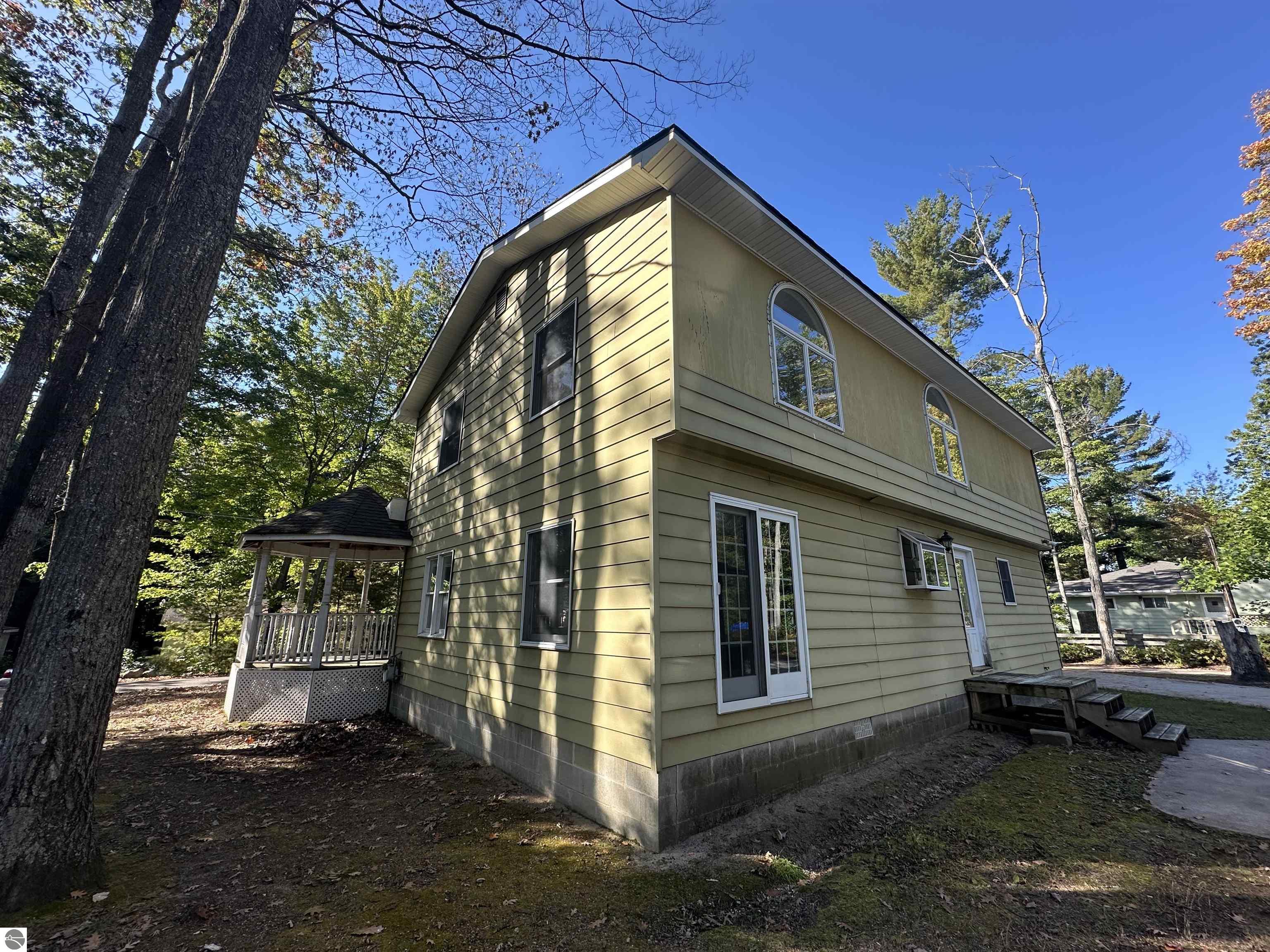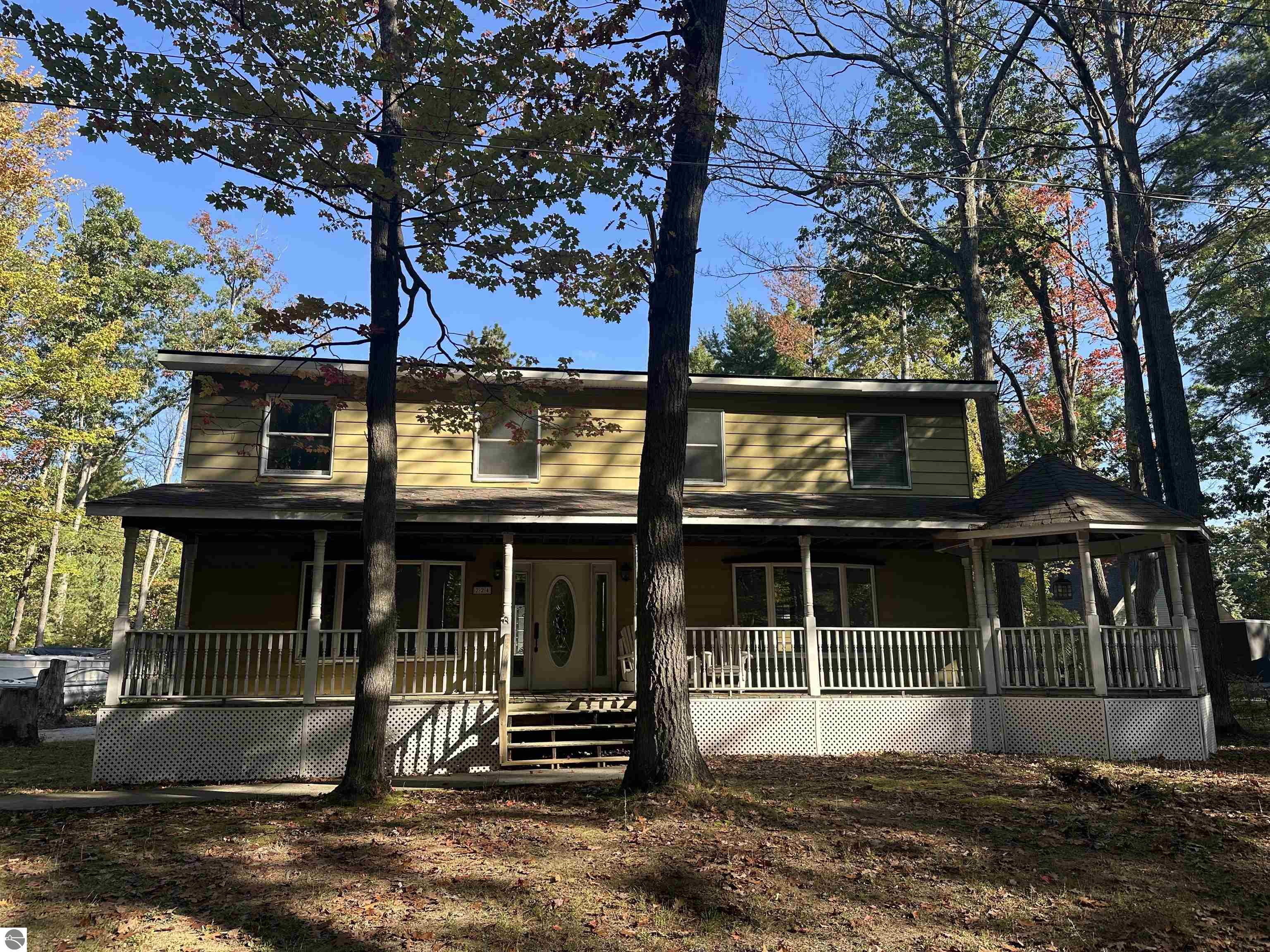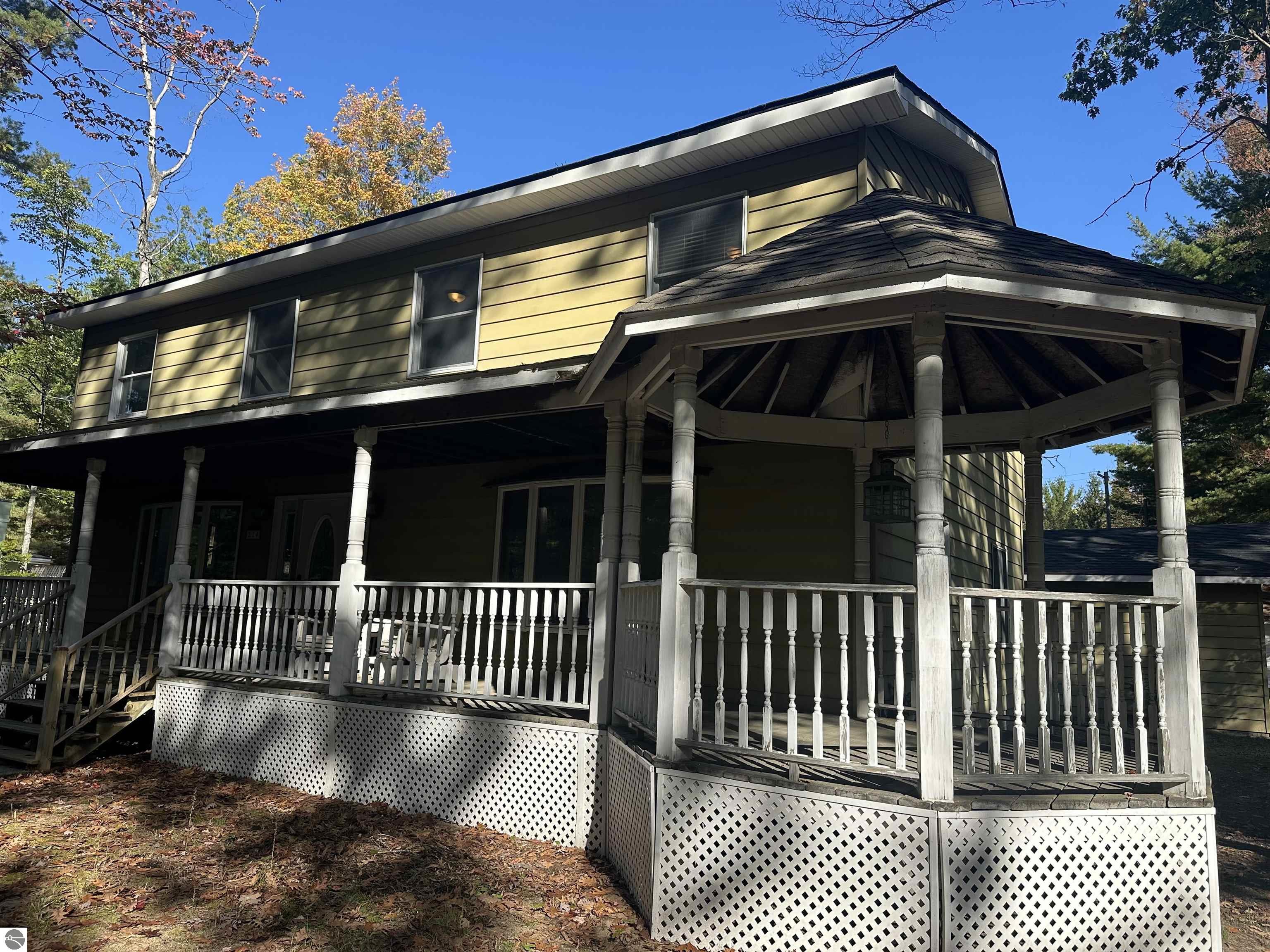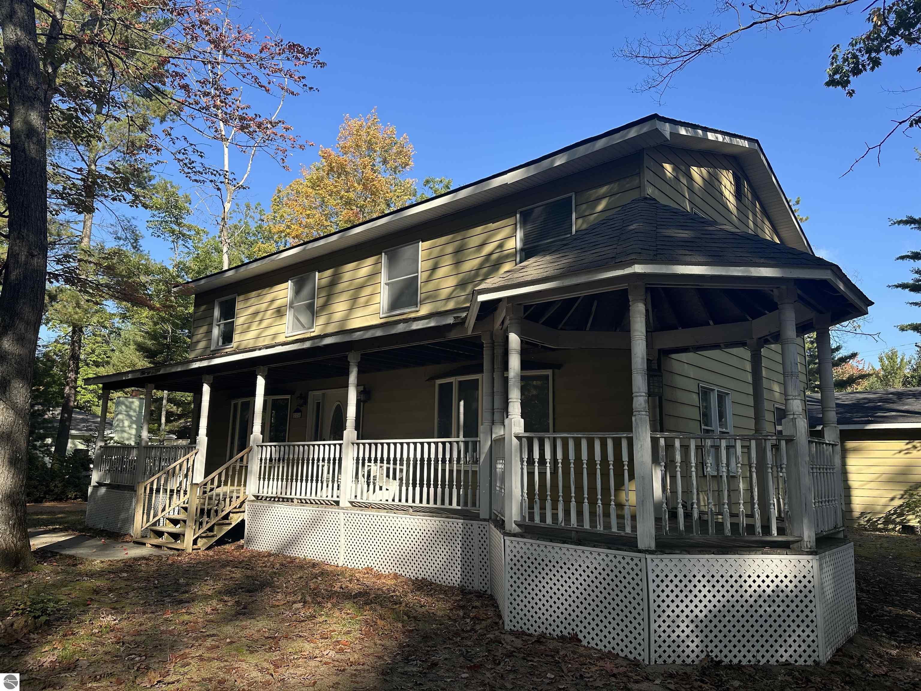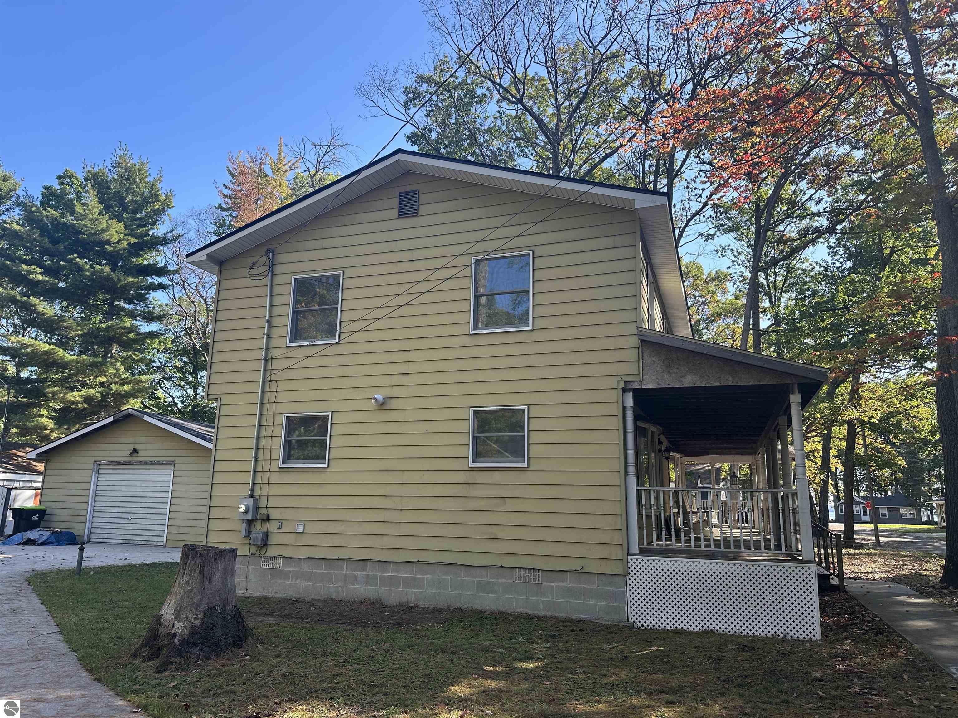 Just 4 houses from the shore of spectacular Higgins Lake is where your investment opportunity awaits! This 2-story spacious (2,016sf) 5-bedroom home is priced to sell with budget remaining to add your style as you envision. When finished, you will have a beautiful Higgins Lake home to share with family and friends or use as an investment property. You will enjoy partial lake views from the covered front porch and can take advantage of a road end dock and nearby beach… just steps away. You can add the finishing touches and truly create your dream house… the subfloor and walls are primed and ready for paint and your style of flooring. Both bathrooms have been tastefully updated already. You’ll be impressed with the solid oak doors on the main floor and solid pine 6 panel doors upstairs as well as a stunning staircase. Additional updates include a high efficiency furnace, with coil for A/C installed this year, the roof is just seven years old, and the garage roof was new in 2022. The property also features a 24x32 garage with ample room for vehicles, water toys, and storage. Schedule a tour and try the water while you’re there… a 100’well supplies fantastic drinking water. There’s also a water filtration system in the crawl space. This is your Higgins Lake dream house!