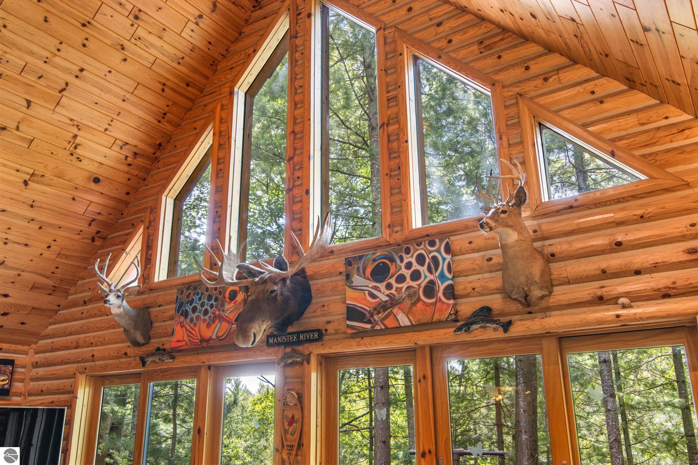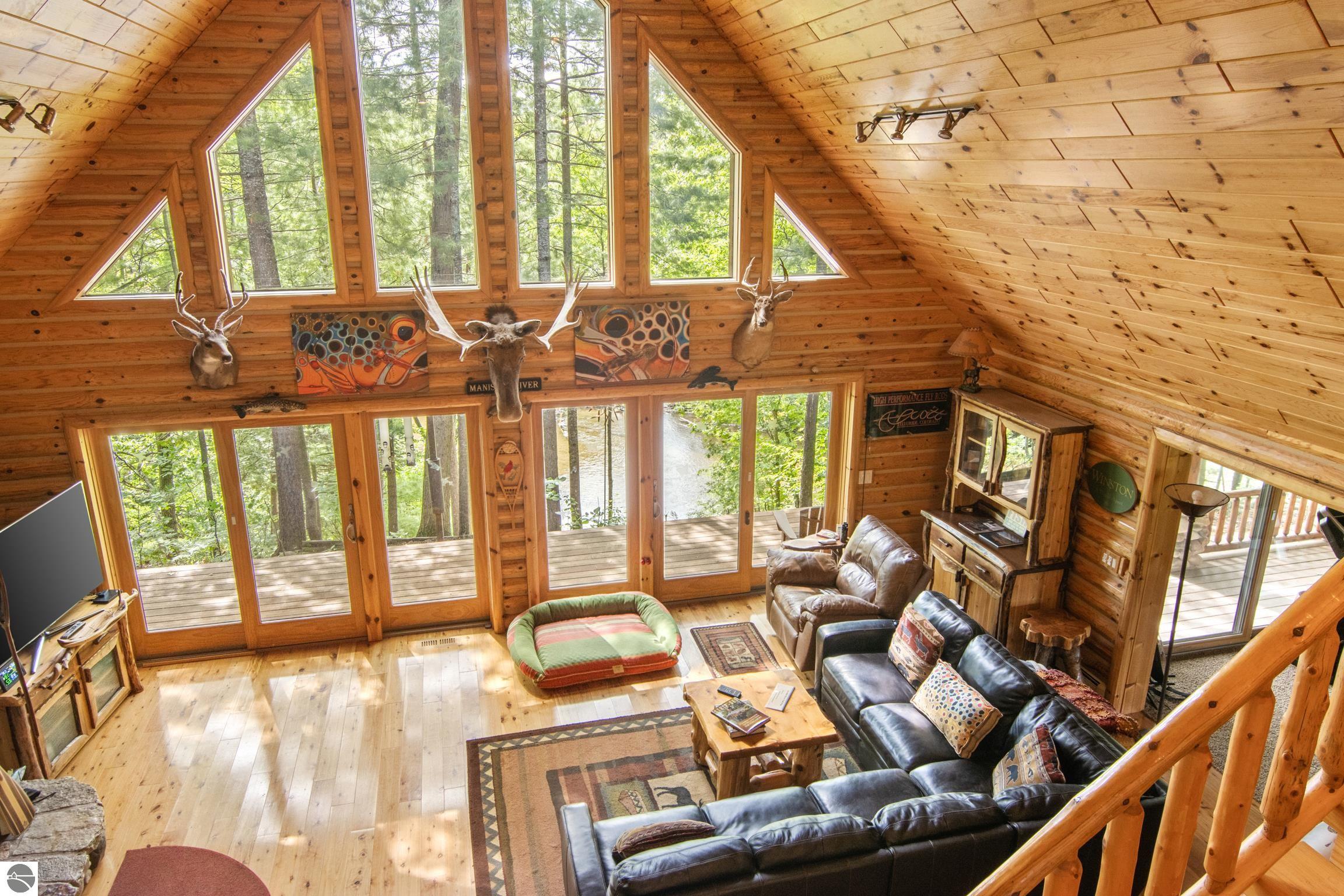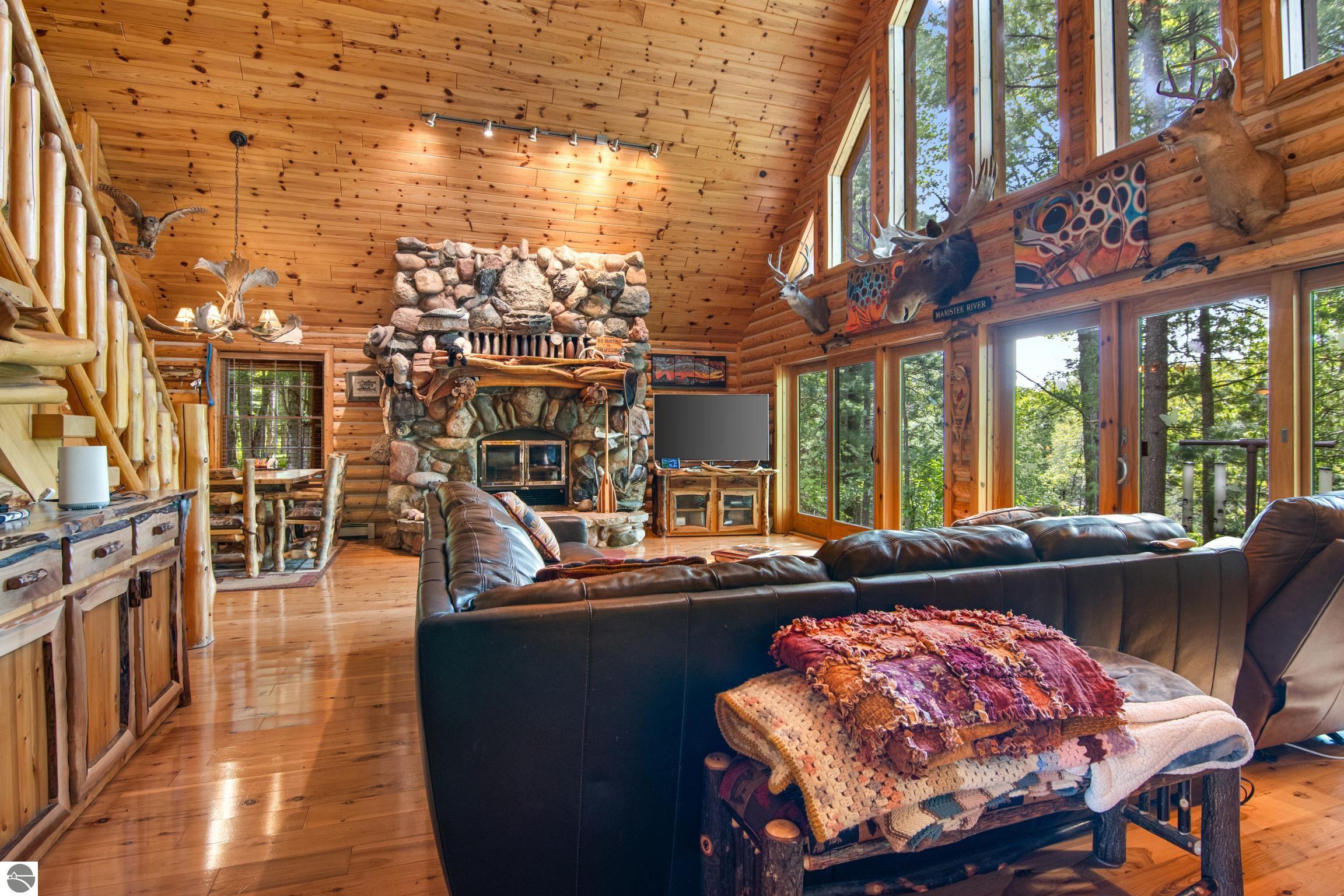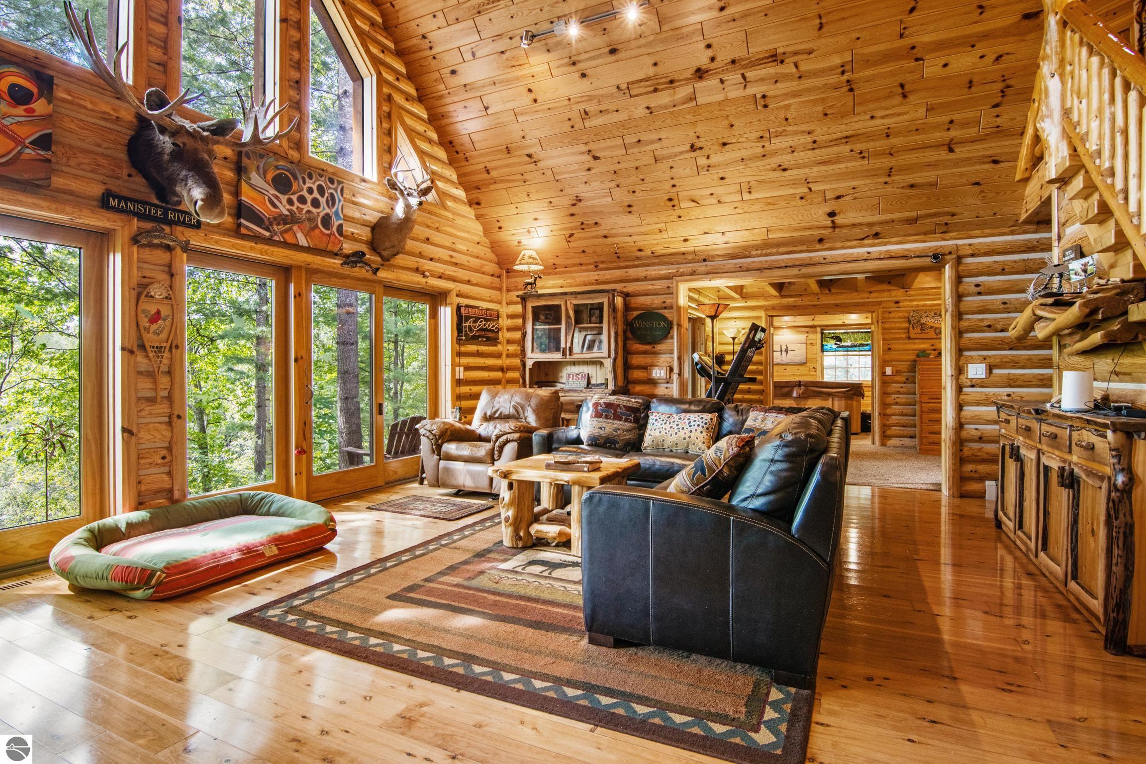 Welcome to your riverfront retreat, nestled on 262 feet of crystal-clear frontage along the scenic Manistee River—renowned for its Blue Ribbon-quality fly fishing. Whether you are casting a line or simply soaking in the serenity, this property offers the perfect blend of natural beauty and comfortable luxury. This beautifully crafted home features 5 spacious bedrooms and 3.5 bathrooms, designed to accommodate large gatherings or multi-generational getaways. The warm and inviting interior boasts Australian cypress hardwood floors, vaulted tongue-and-groove ceilings, and a true masonry stone fireplace complete with a stunning custom juniper mantel—a focal point that brings rustic elegance to the heart of the home. The thoughtful layout provides the perfect balance of open concept living and private spaces, ideal for creating lasting memories with family and friends. Whether you are entertaining indoors or enjoying the outdoors, every detail invites relaxation and connection. Step outside to immerse yourself in nature—kayaking, fishing, wildlife watching, or simply unwinding by the river. With direct access to one of Michigan’s most scenic waterways, this property is a haven for outdoor enthusiasts and nature lovers alike. Do not miss the opportunity to own a rare piece of paradise on the Manistee River—where tranquility, beauty, and adventure meet.
