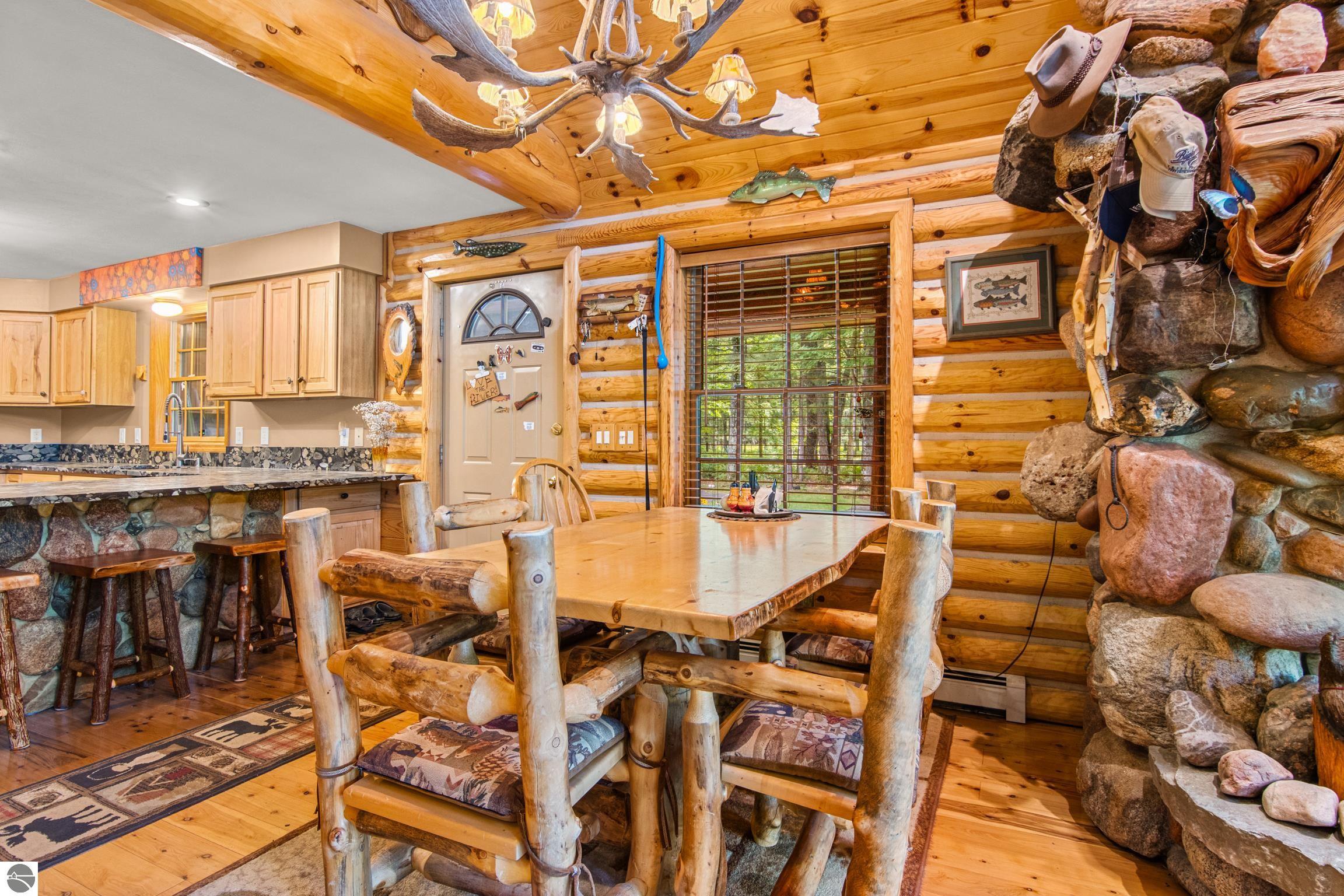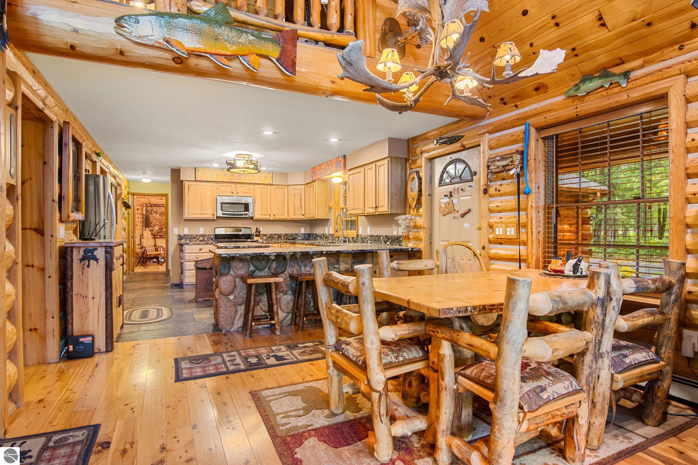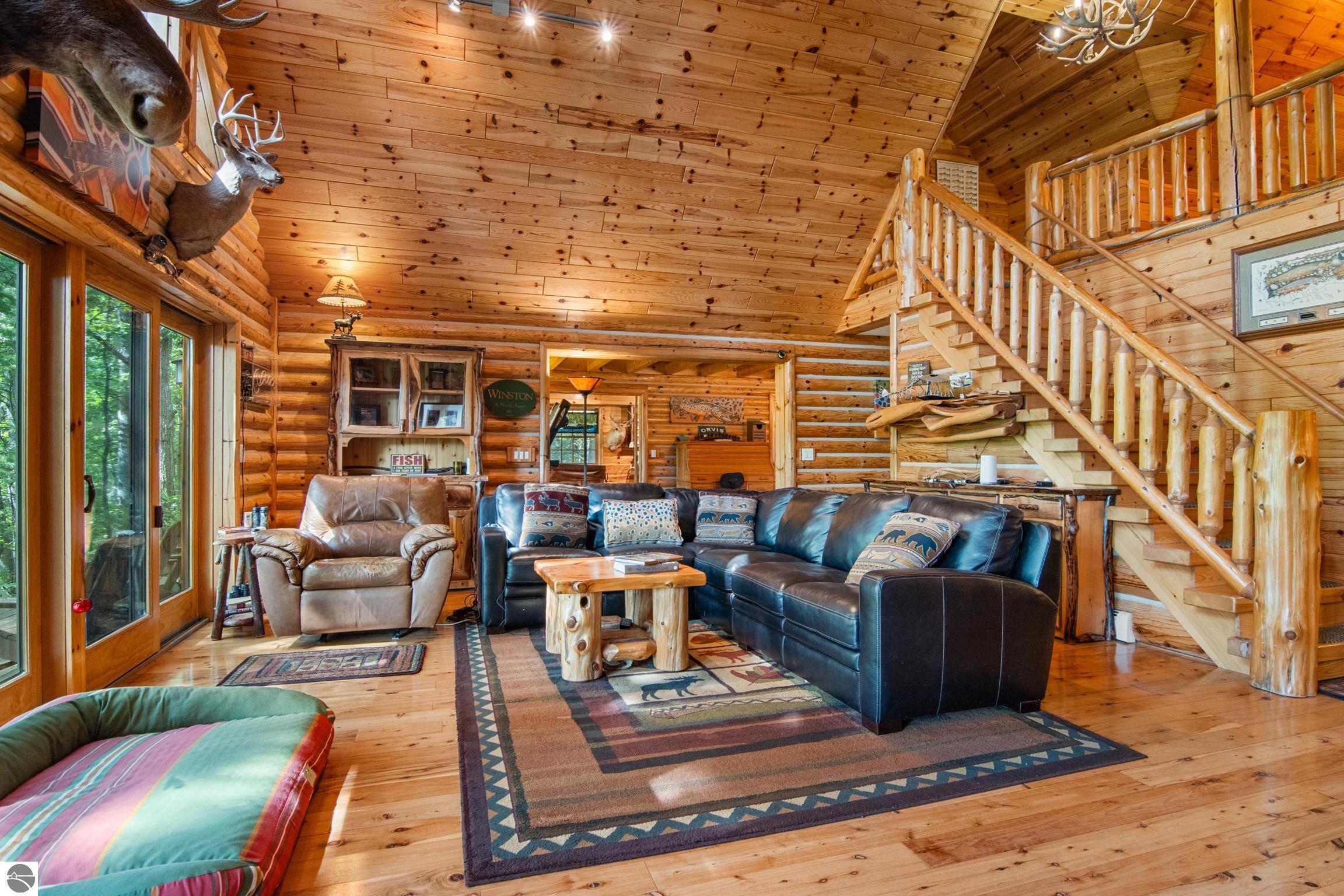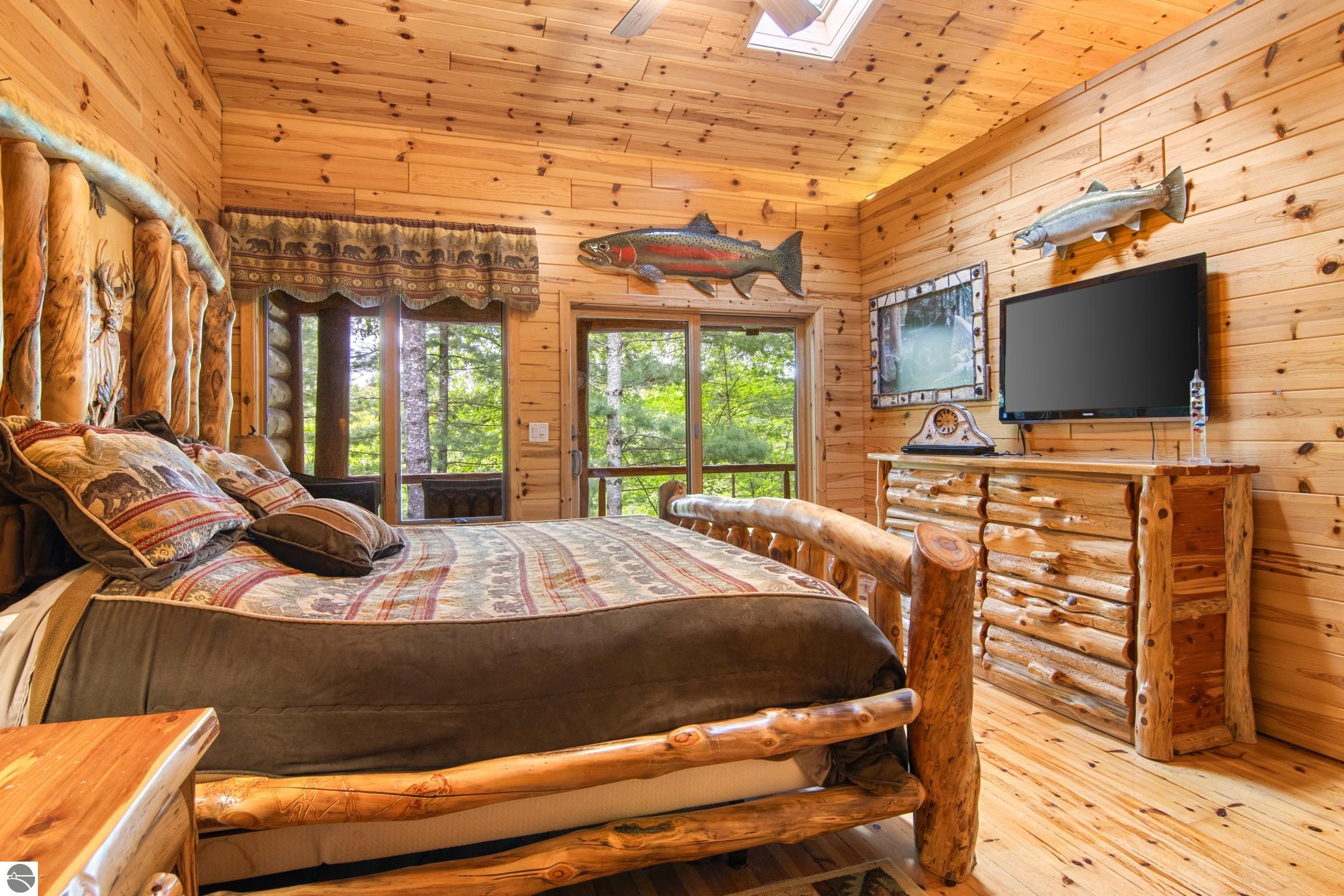 Welcome to your riverfront retreat, nestled on 262 feet of crystal-clear frontage along the scenic Manistee River—renowned for its Blue Ribbon-quality fly fishing. Whether you are casting a line or simply soaking in the serenity, this property offers the perfect blend of natural beauty and comfortable luxury. This beautifully crafted home features 5 spacious bedrooms and 3.5 bathrooms, designed to accommodate large gatherings or multi-generational getaways. The warm and inviting interior boasts Australian cypress hardwood floors, vaulted tongue-and-groove ceilings, and a true masonry stone fireplace complete with a stunning custom juniper mantel—a focal point that brings rustic elegance to the heart of the home. The thoughtful layout provides the perfect balance of open concept living and private spaces, ideal for creating lasting memories with family and friends. Whether you are entertaining indoors or enjoying the outdoors, every detail invites relaxation and connection. Step outside to immerse yourself in nature—kayaking, fishing, wildlife watching, or simply unwinding by the river. With direct access to one of Michigan’s most scenic waterways, this property is a haven for outdoor enthusiasts and nature lovers alike. Do not miss the opportunity to own a rare piece of paradise on the Manistee River—where tranquility, beauty, and adventure meet.