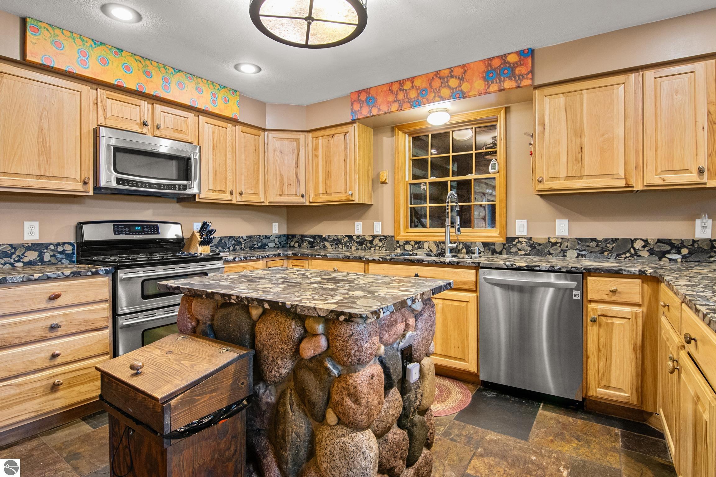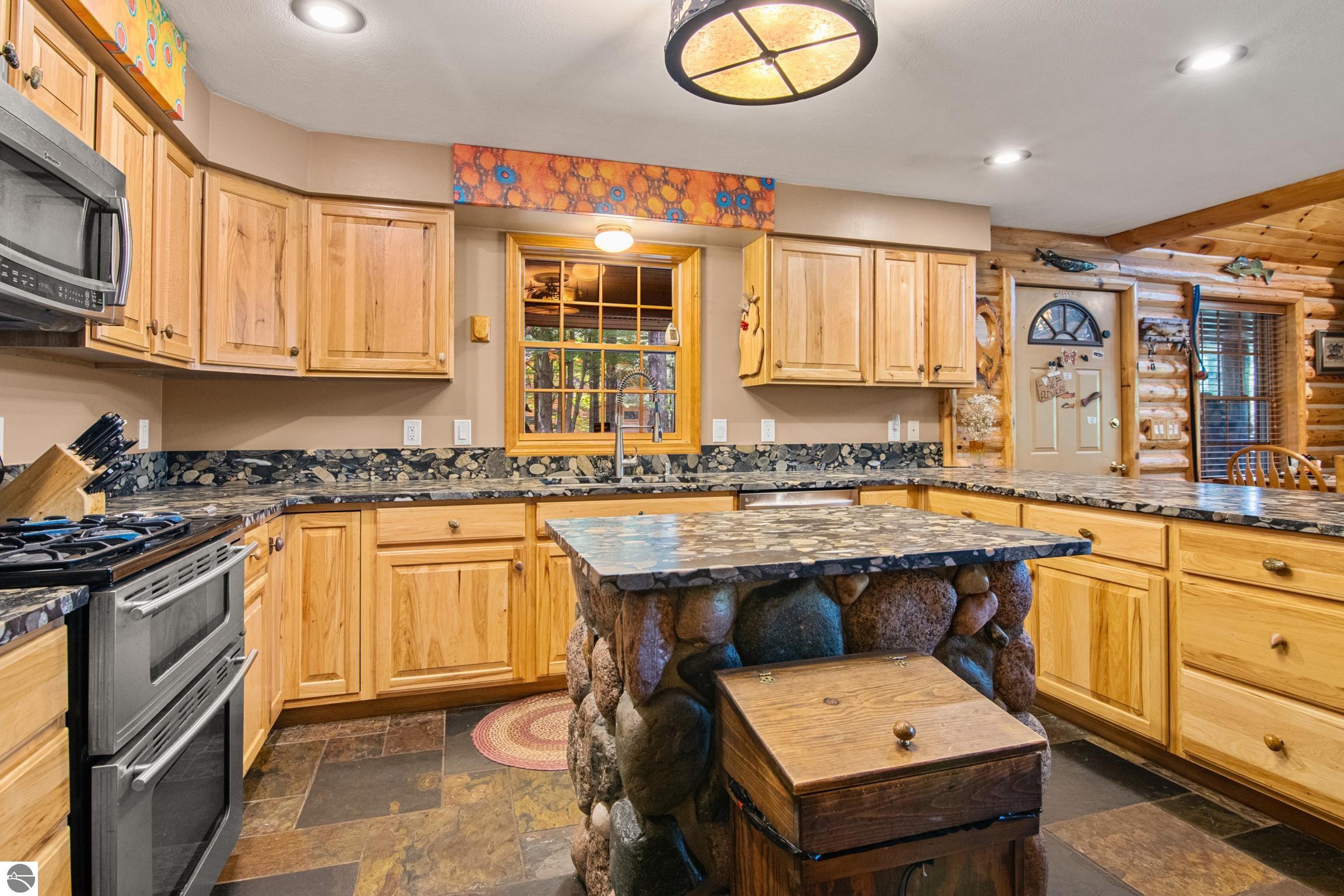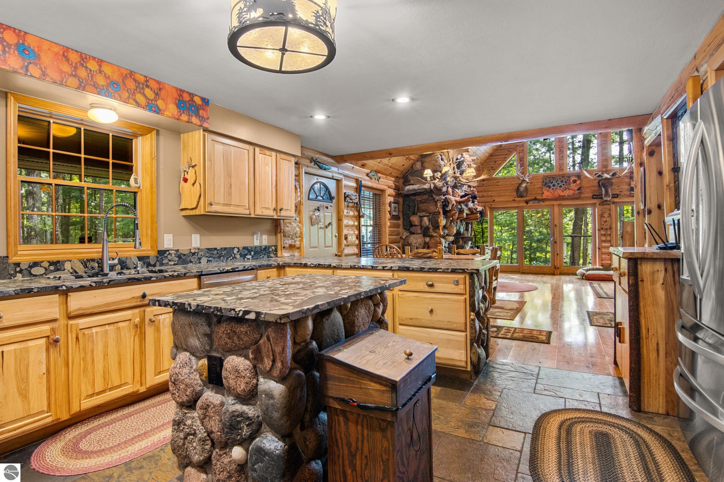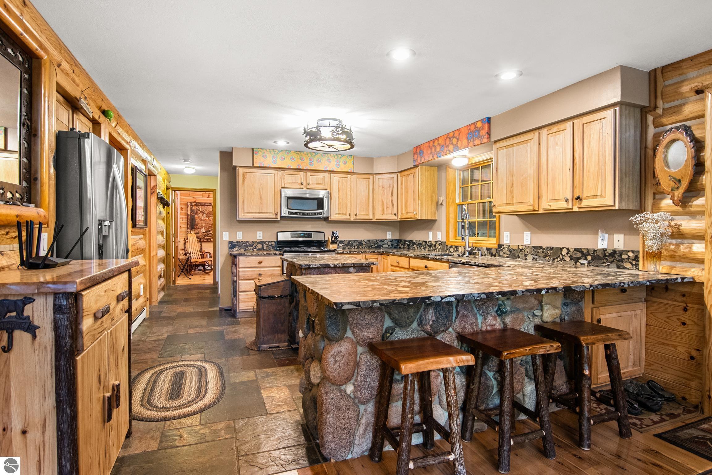 Welcome to your riverfront retreat, nestled on 262 feet of crystal-clear frontage along the scenic Manistee River—renowned for its Blue Ribbon-quality fly fishing. Whether you are casting a line or simply soaking in the serenity, this property offers the perfect blend of natural beauty and comfortable luxury. This beautifully crafted home features 5 spacious bedrooms and 3.5 bathrooms, designed to accommodate large gatherings or multi-generational getaways. The warm and inviting interior boasts Australian cypress hardwood floors, vaulted tongue-and-groove ceilings, and a true masonry stone fireplace complete with a stunning custom juniper mantel—a focal point that brings rustic elegance to the heart of the home. The thoughtful layout provides the perfect balance of open concept living and private spaces, ideal for creating lasting memories with family and friends. Whether you are entertaining indoors or enjoying the outdoors, every detail invites relaxation and connection. Step outside to immerse yourself in nature—kayaking, fishing, wildlife watching, or simply unwinding by the river. With direct access to one of Michigan’s most scenic waterways, this property is a haven for outdoor enthusiasts and nature lovers alike. Do not miss the opportunity to own a rare piece of paradise on the Manistee River—where tranquility, beauty, and adventure meet.