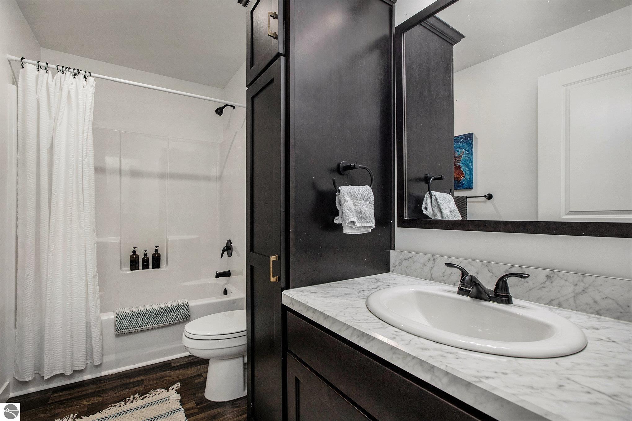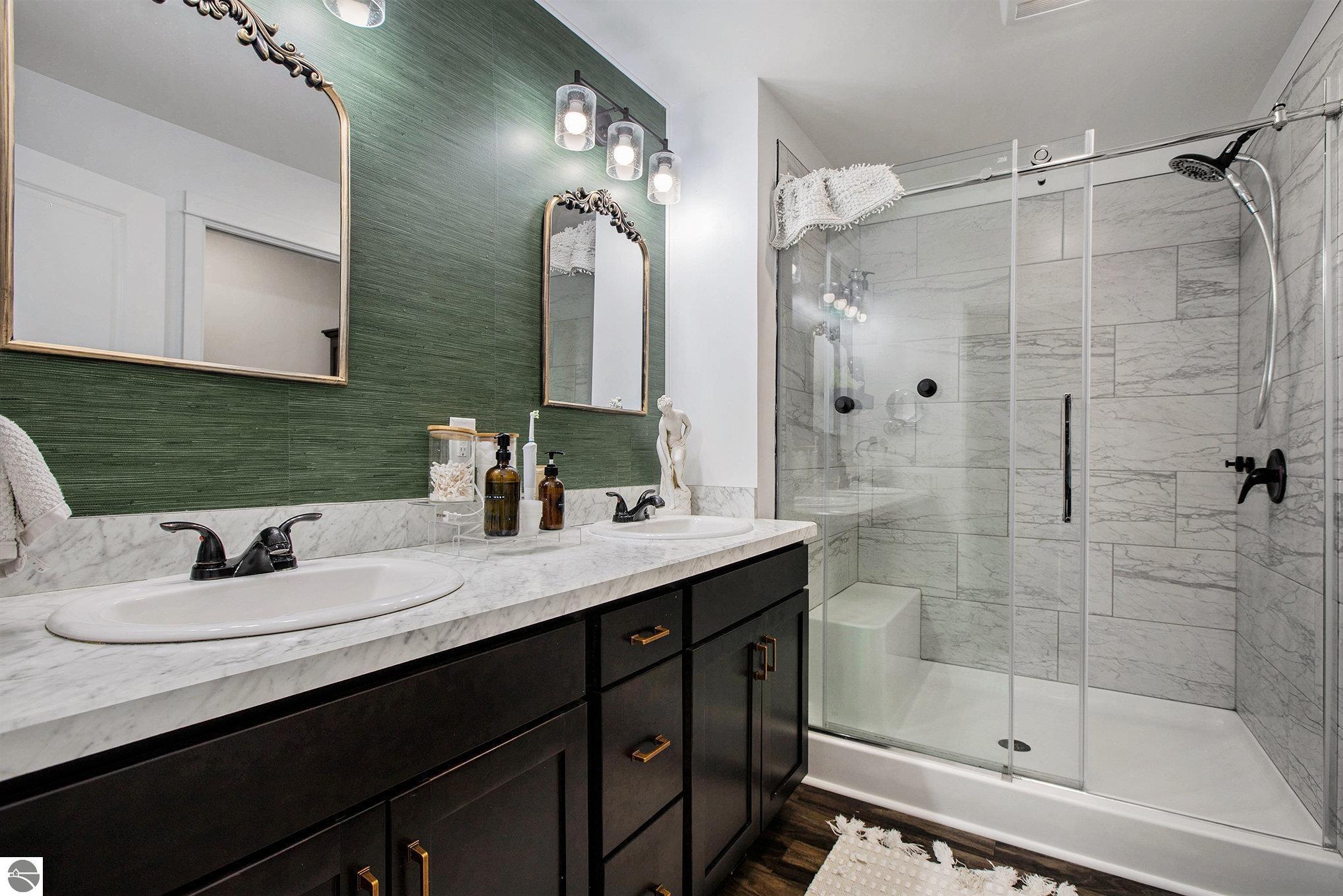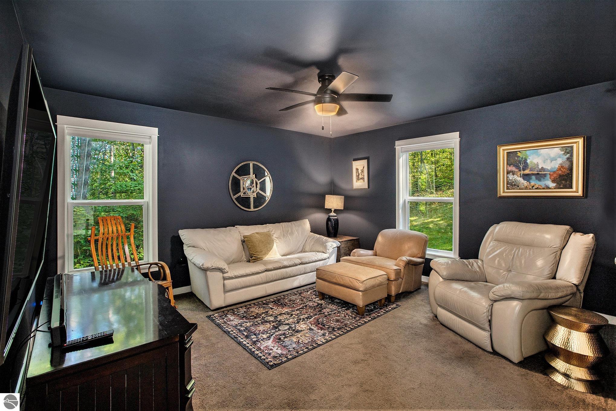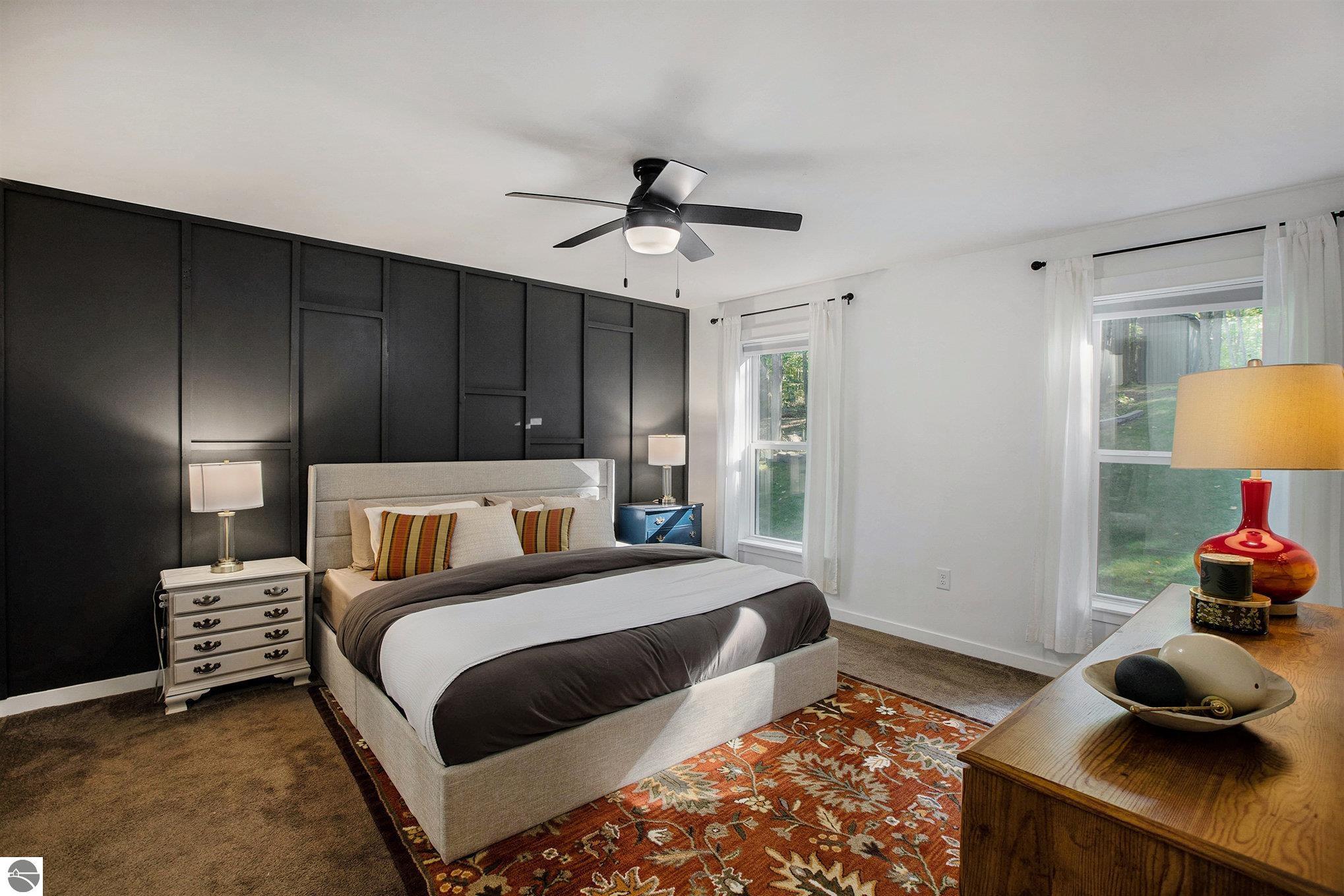 Welcome to modern lakeside living with this beautifully crafted 3-bedroom, 2-bath ranch-style home offers 100 feet of private frontage on the tranquil shores of Turtle Lake. Surrounded by mature hardwoods and offering breathtaking sunset views, this newly constructed home offers modern comfort with natural serenity. Inside, you'll find a thoughtfully designed open-concept floor plan, perfect for entertaining. The beautifully designed kitchen features stainless steel appliances, quartz countertops, a large center island, and an eye-catching tile backsplash. The living room offers tall ceilings and a cozy wood-burning stove, creating a warm, inviting atmosphere year-round. The primary suite is a true retreat, complete with a walk-in closet and spa-like bath featuring a double vanity and tiled walk-in shower. Two additional bedrooms and a full guest bathroom provide ample space for family or visitors. Step outside and immerse yourself in lake life, enjoy your morning coffee on the composite deck, take a soak in the hot tub, or rinse off after a swim in the outdoor shower. The sandy-bottom lakefront is ideal for swimming, kayaking, paddleboarding, and quiet relaxation. A 30x40 pole barn offers abundant storage with full electric service—perfect for your boat, RV, or seasonal toys. Nature lovers will appreciate the setting and Turtle Lake is home to a variety of fish, native birds and abundant wildlife. Best of all, the property backs up to hundreds of acres of adjacent State Land, offering endless opportunities for hiking, snowshoeing, hunting, and year-round adventure. All this in a peaceful, private neighborhood, just 20 minutes from Traverse City and close to Lake Michigan, Crystal Lake, Crystal Mountain Resort, and the iconic M-22 corridor leading to Sleeping Bear Dunes National Lakeshore. Whether you're seeking quiet relaxation, outdoor recreation, or proximity to Northern Michigan’s best attractions, this move-in-ready home delivers the full Up North lifestyle.