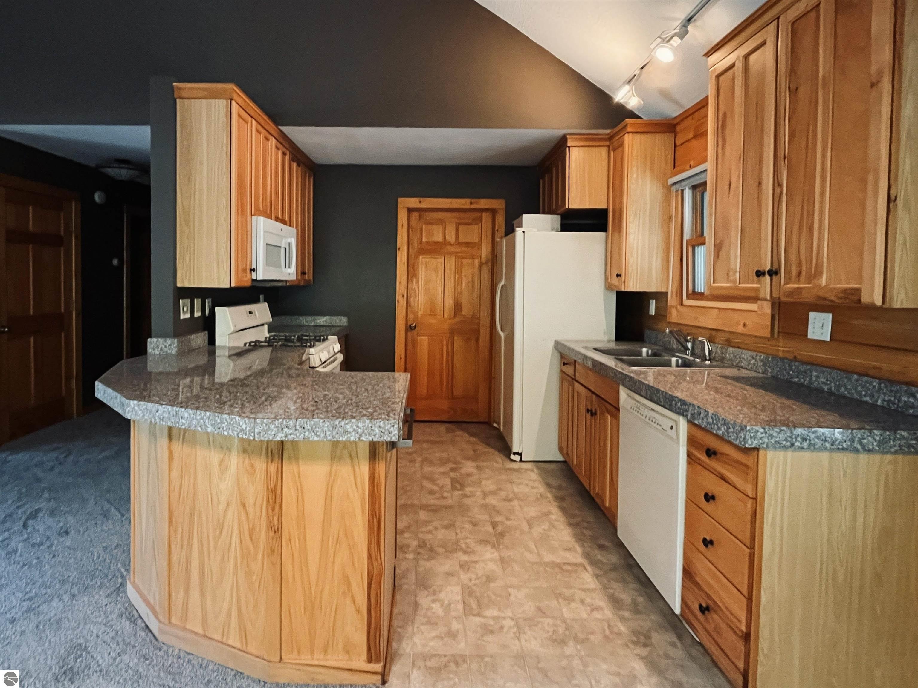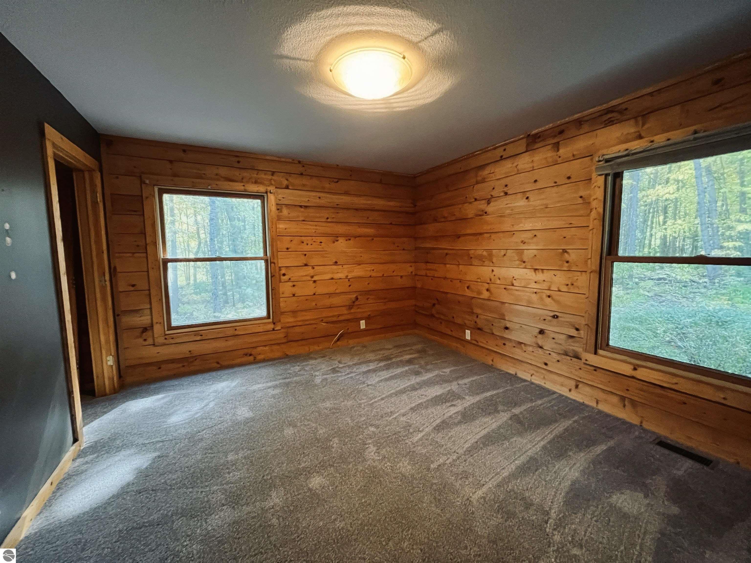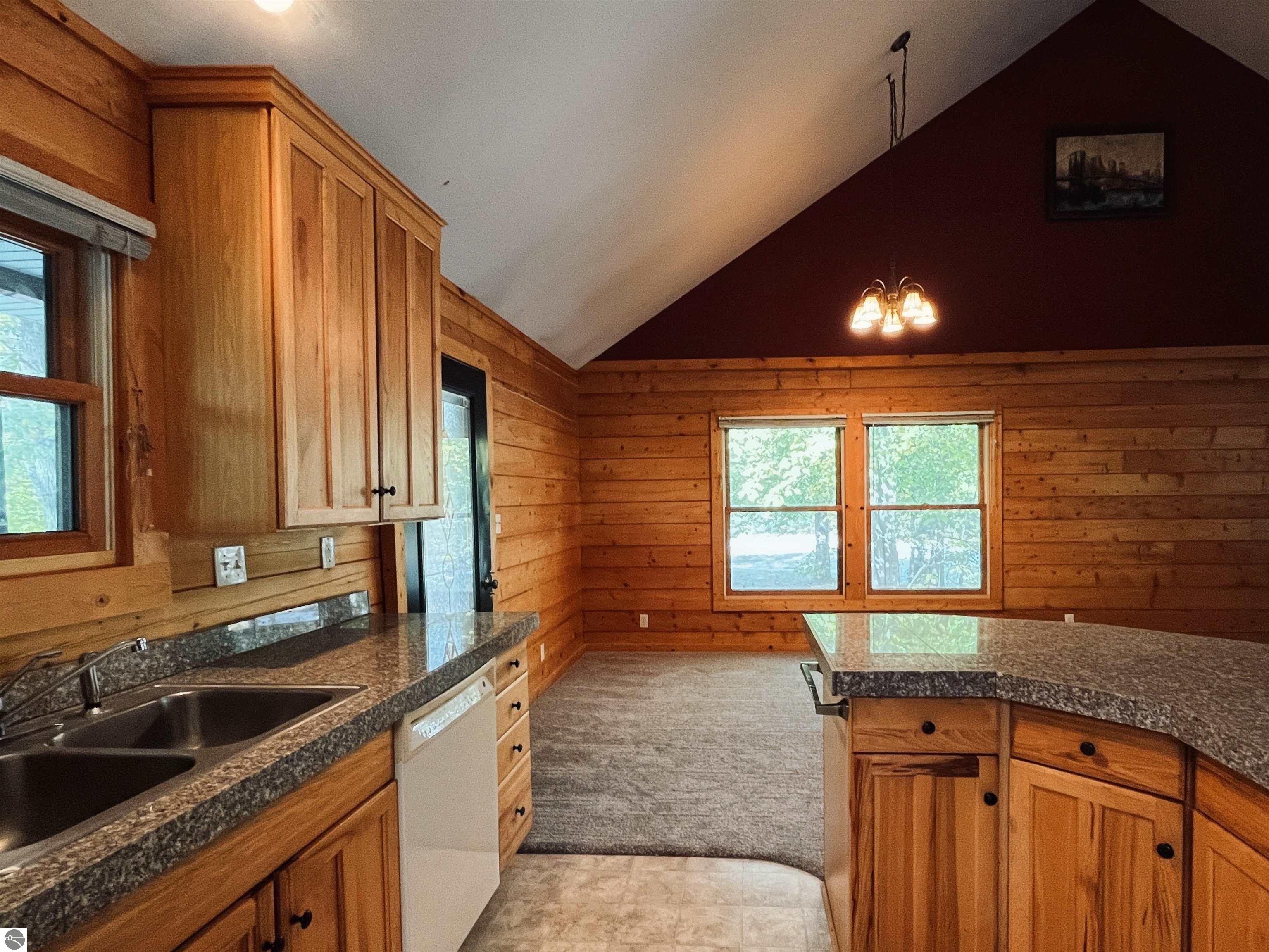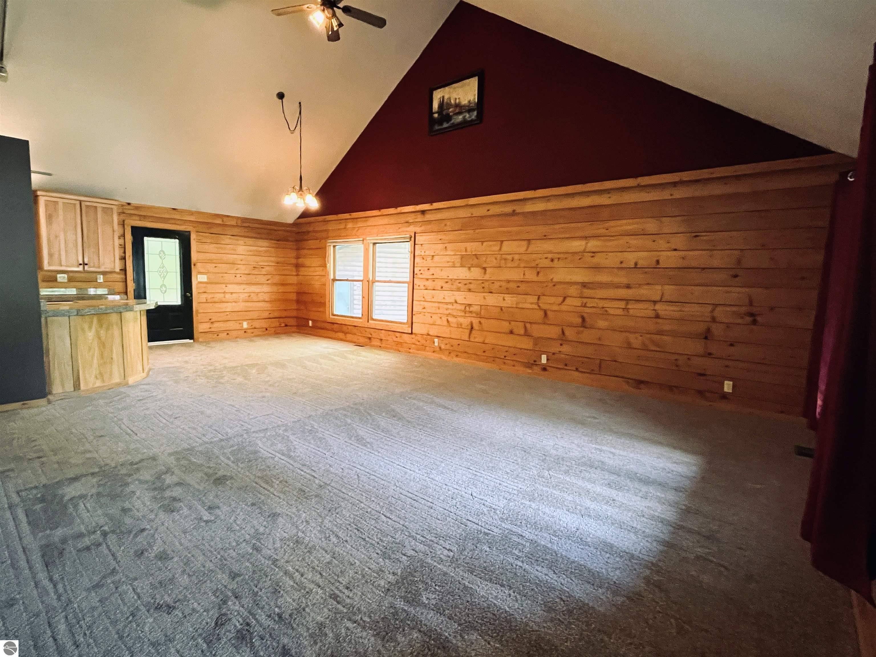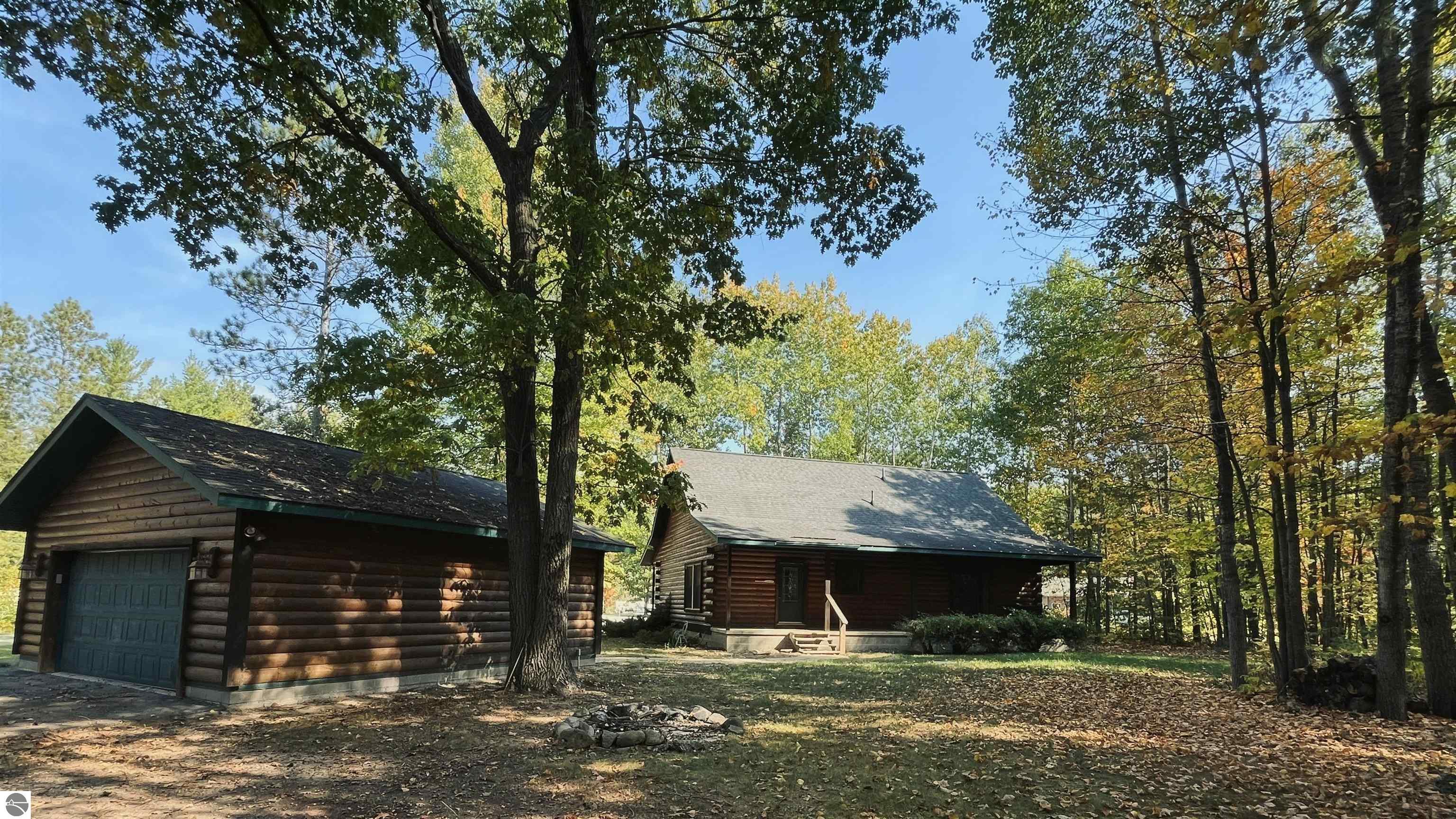 Charming 3-bedroom, 2-bath home tucked into a peaceful, wooded setting in the desirable Fairways subdivision of Kalkaska. This move-in ready home features brand-new carpet, a spacious layout with the primary bedroom upstairs, and all appliances included for added convenience. The full-log exterior offers rustic Northern Michigan appeal, while natural gas heat keeps things efficient year-round. A detached 2-car garage provides extra storage or hobby space. Ideally located just minutes from schools, shopping, Twin Birch Golf Course, and Log Lake, with downtown Kalkaska only 5 minutes away and Traverse City a short 30-minute drive.