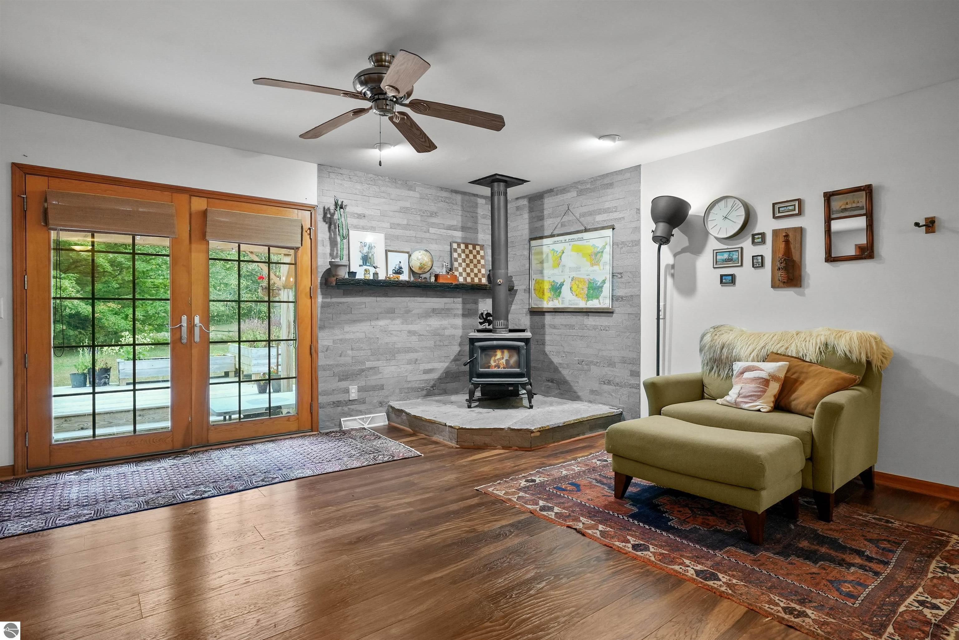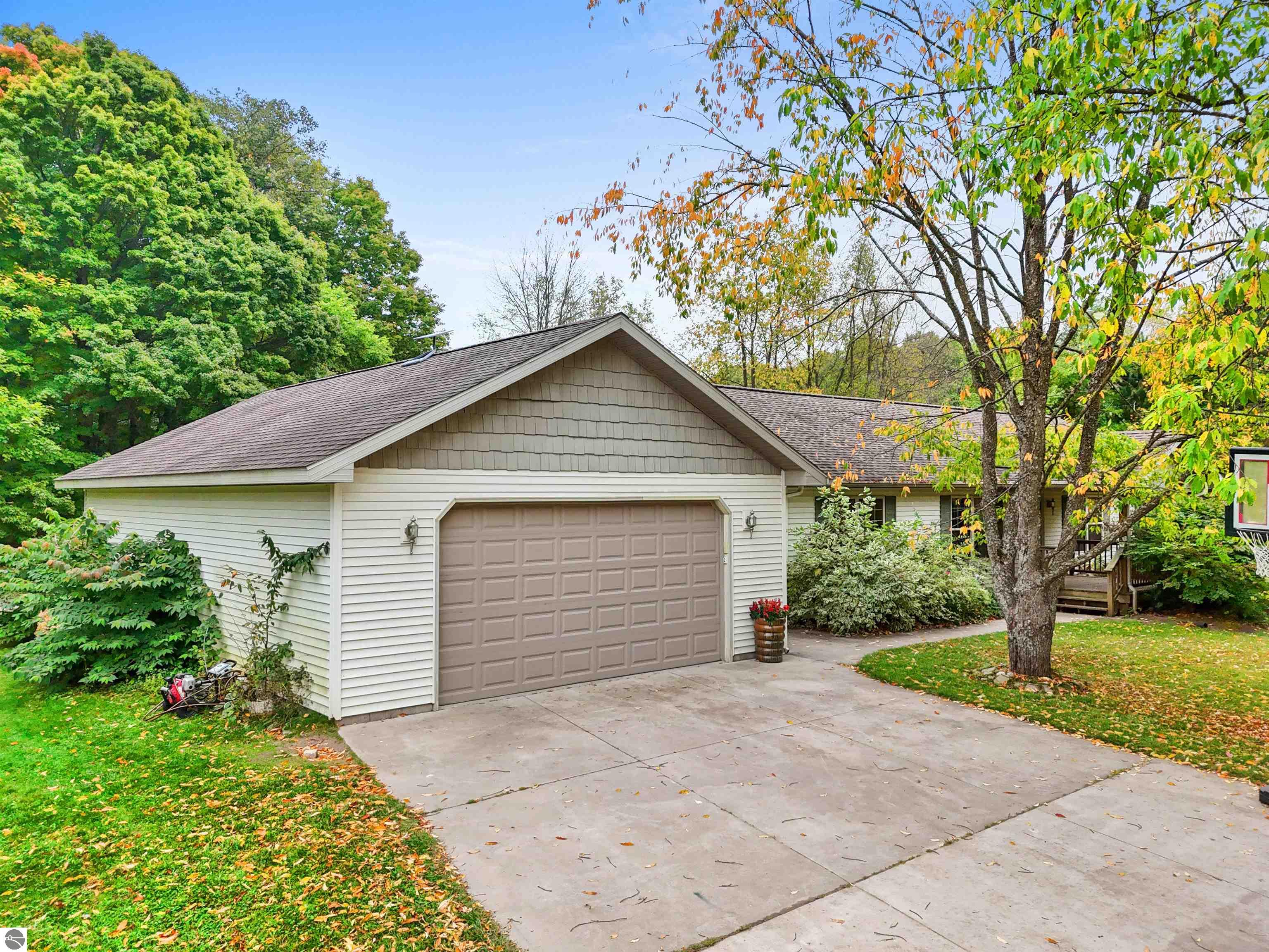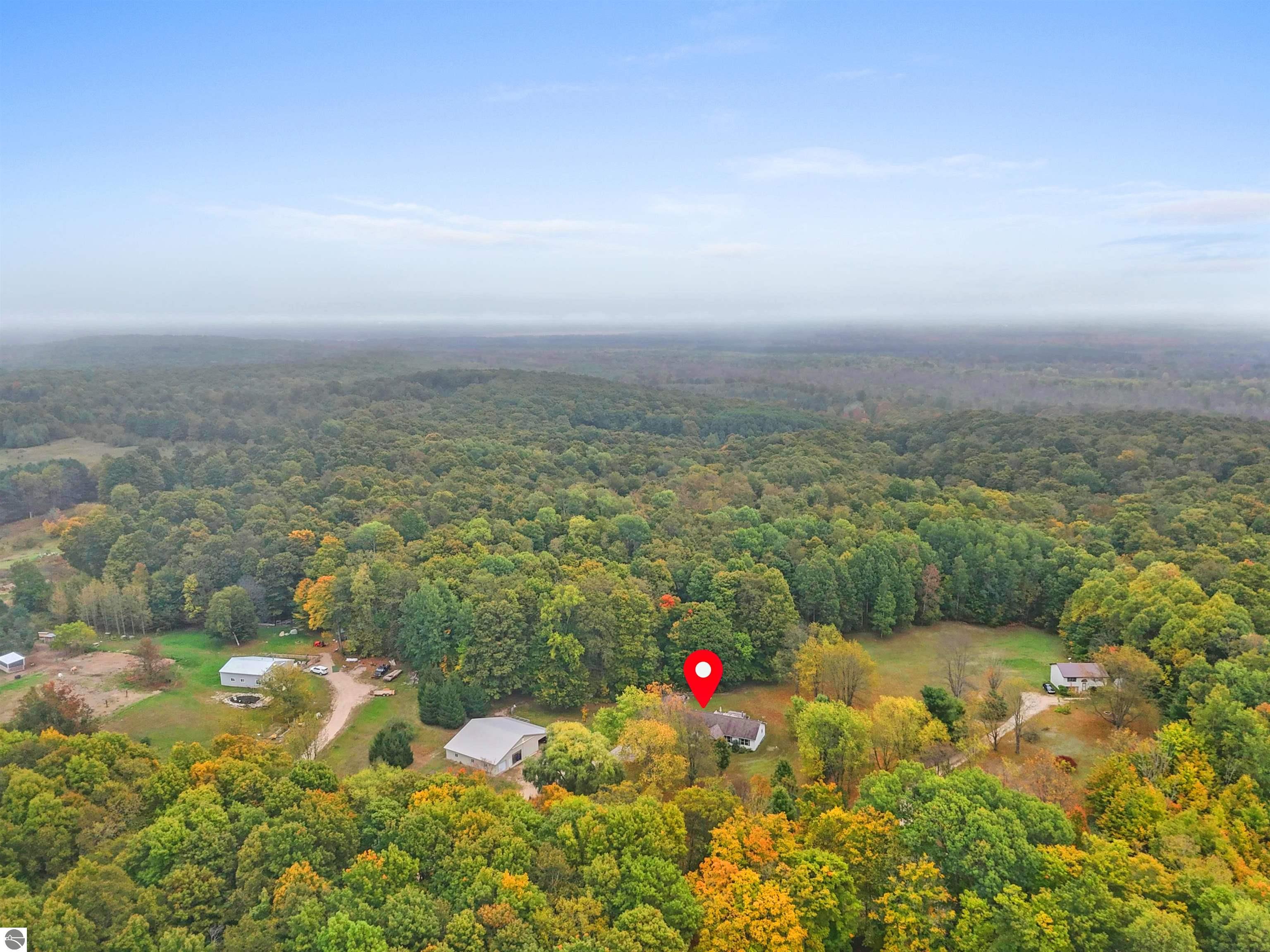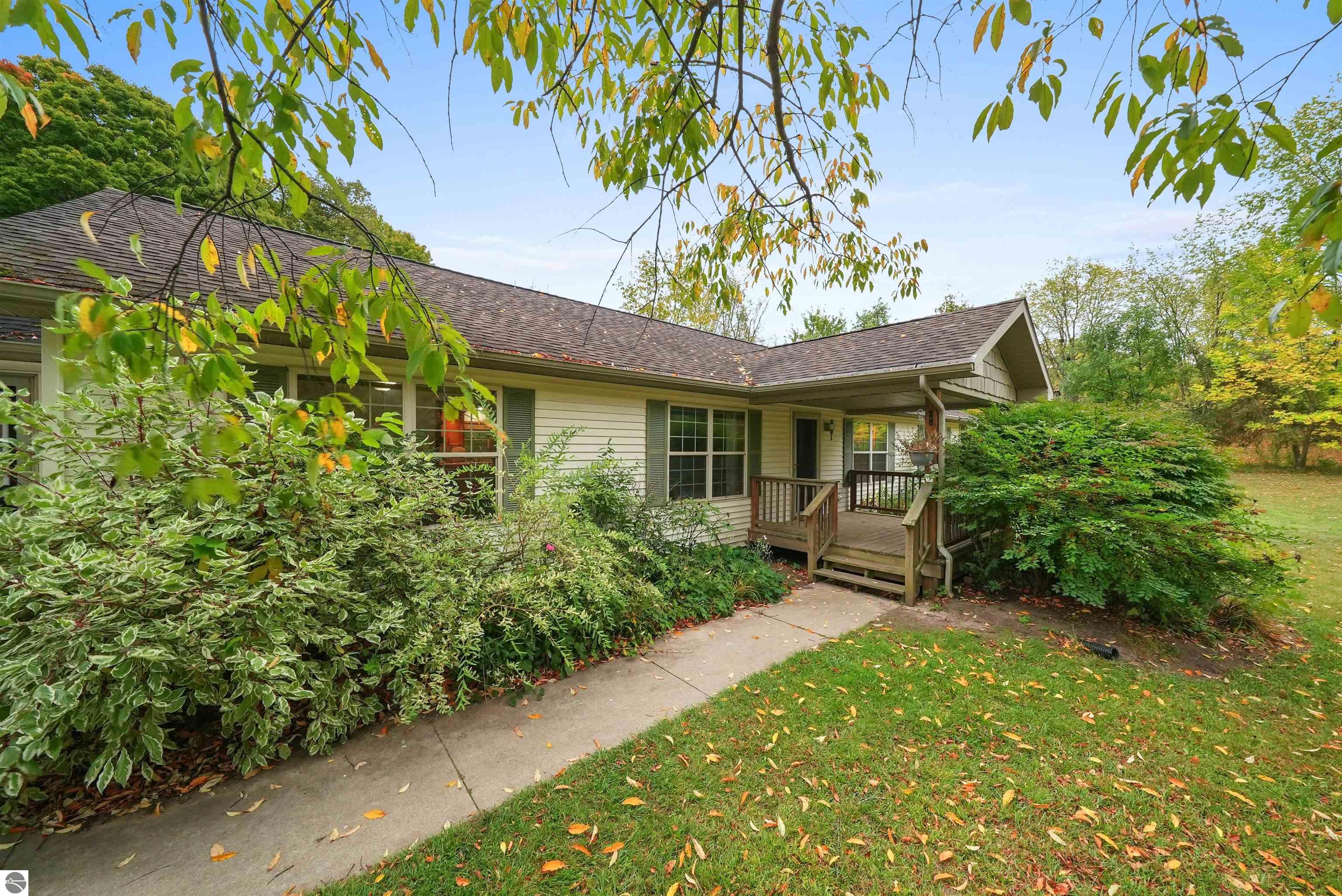 Beautifully updated 3BR/2BA ranch-style home on 10 private acres, located just a short drive from Crystal Mountain, Traverse City, Manistee, Frankfort, and Sleeping Bear Dunes. This 2,056 sq ft home features an open-concept layout, modern finishes, woodstove on flagstone hearth, and a spacious primary suite with custom tile shower. Attached oversized 2-car garage provides ample storage. A 48’x68’ pole building with workshop offers endless possibilities for hobbies, business use, or storage. Enjoy 9 wooded acres with trails for walking, skiing, or snowshoeing. A hunting blind overlooks a food plot, and fenced garden areas are ideal for growing your own produce. Outdoor enthusiast's dream!