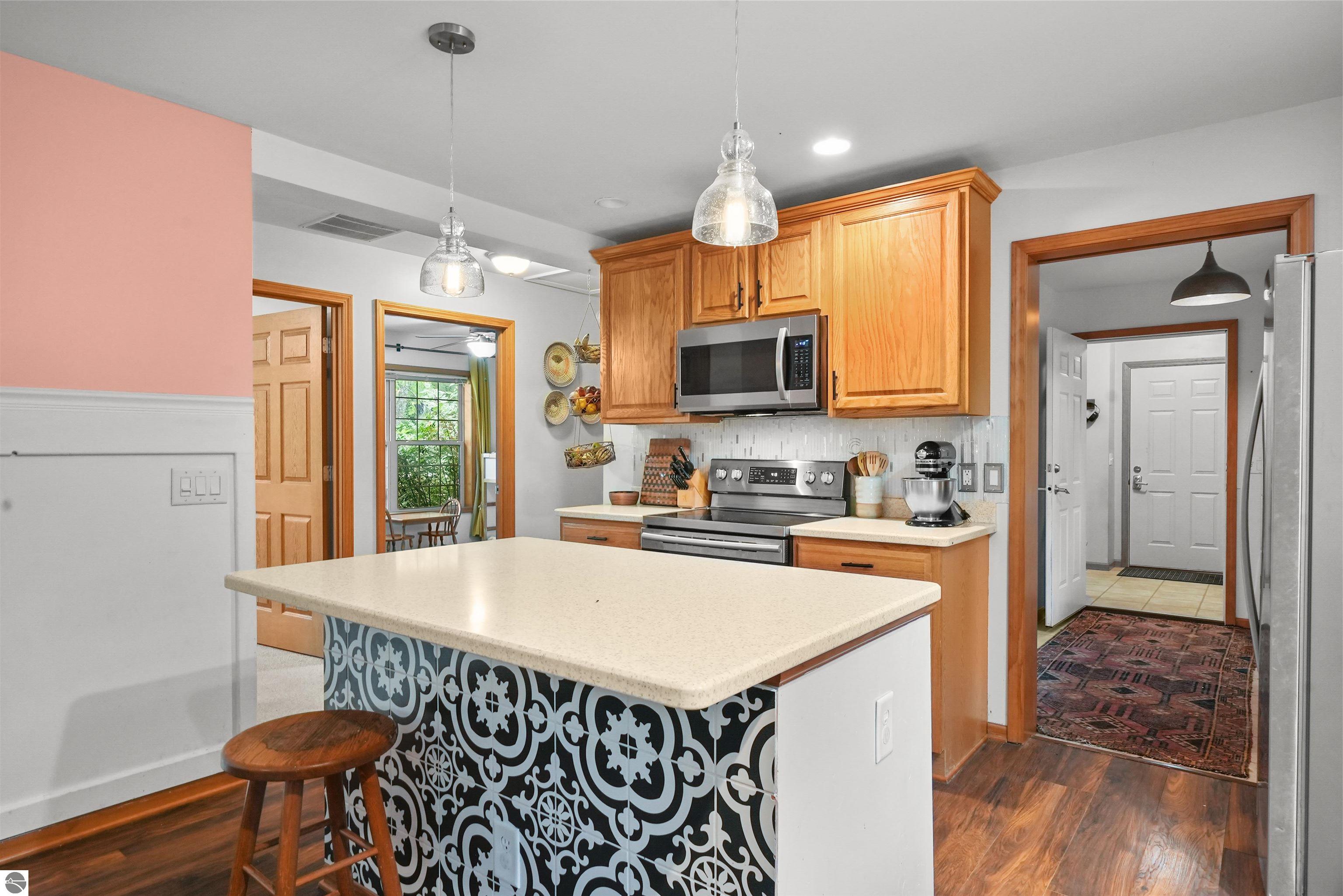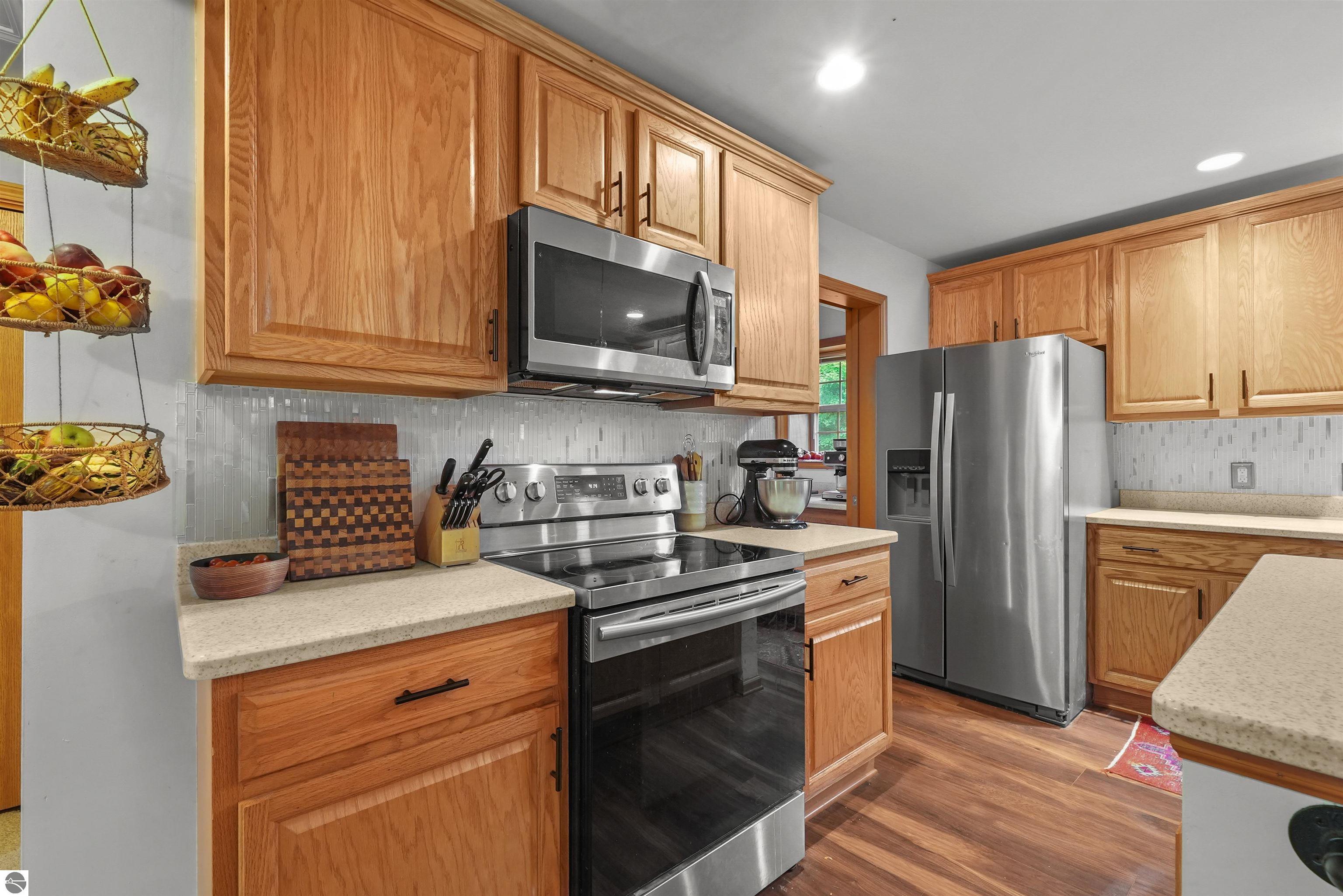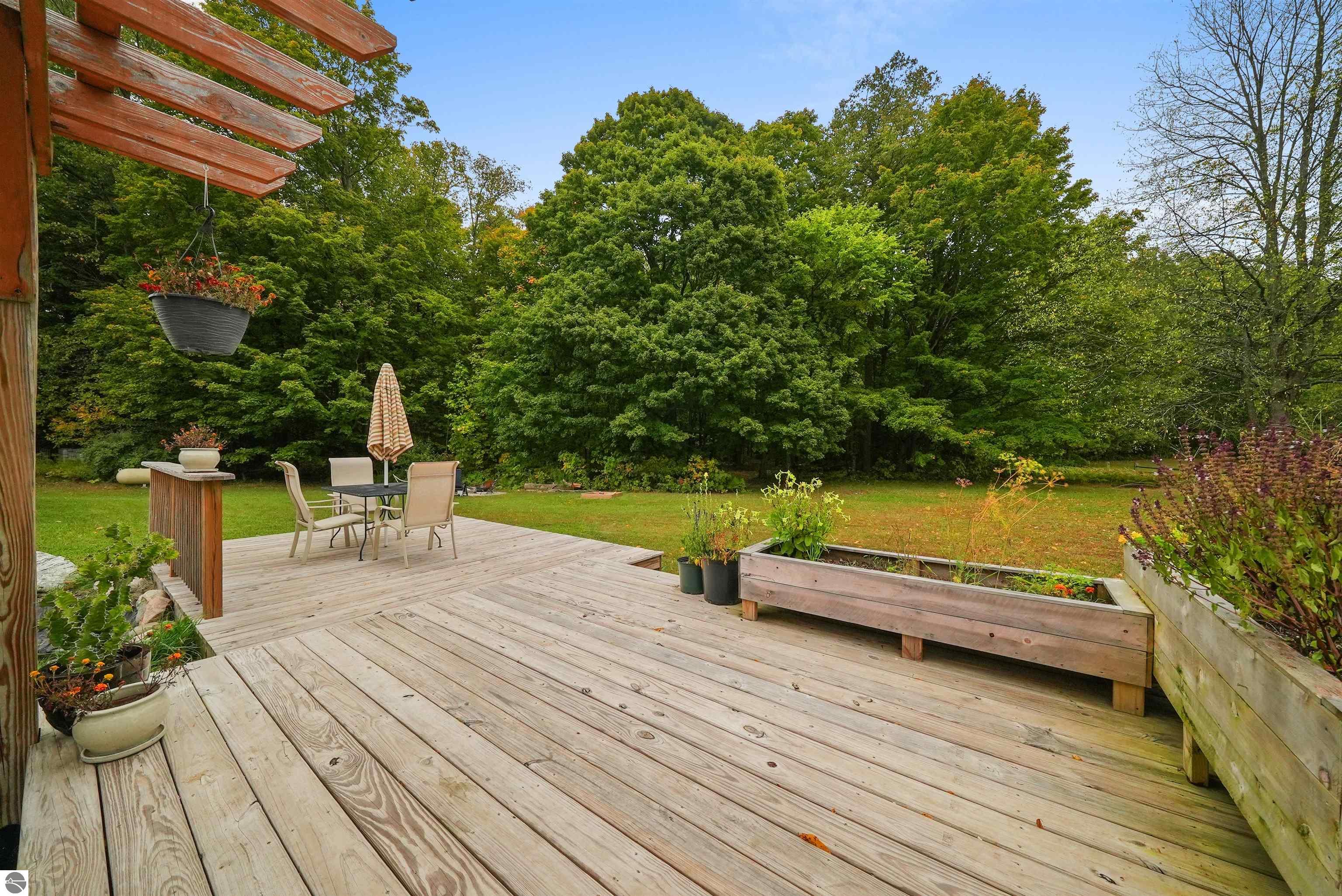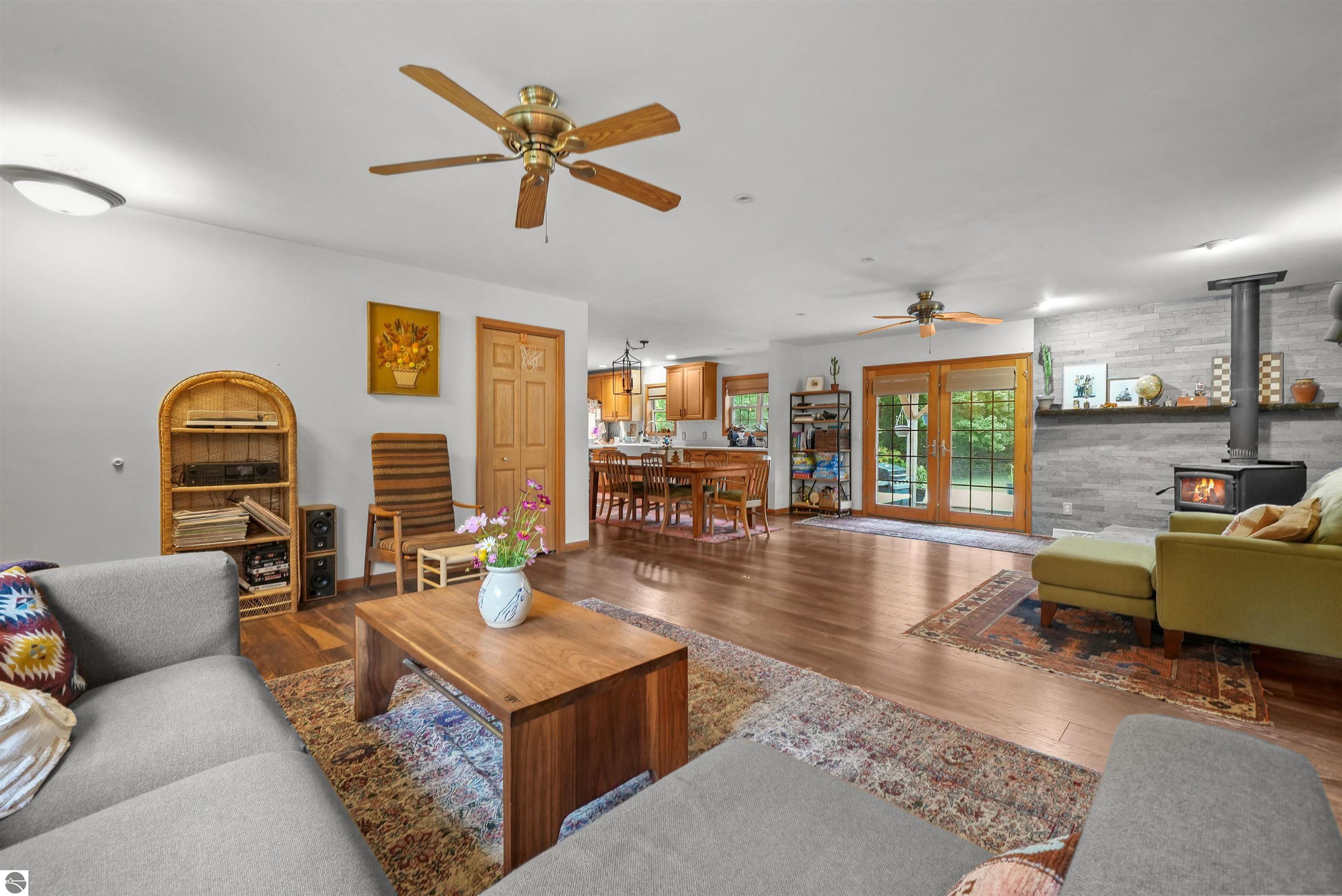 Beautifully updated 3BR/2BA ranch-style home on 10 private acres, located just a short drive from Crystal Mountain, Traverse City, Manistee, Frankfort, and Sleeping Bear Dunes. This 2,056 sq ft home features an open-concept layout, modern finishes, woodstove on flagstone hearth, and a spacious primary suite with custom tile shower. Attached oversized 2-car garage provides ample storage. A 48’x68’ pole building with workshop offers endless possibilities for hobbies, business use, or storage. Enjoy 9 wooded acres with trails for walking, skiing, or snowshoeing. A hunting blind overlooks a food plot, and fenced garden areas are ideal for growing your own produce. Outdoor enthusiast's dream!