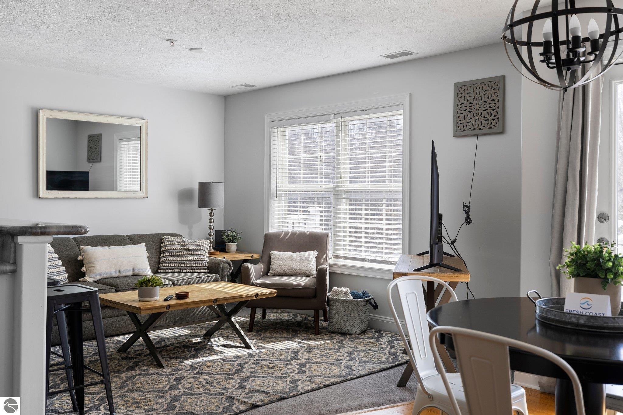Enjoy downtown Traverse City living in this 2 bed/2.5 bath condo, part of the sought-after Bay Park Condominiums I community. With an unbeatable location near F&M Park, the beach, the Delamar Hotel, and downtown dining and shopping, this is the perfect spot to enjoy everything the city has to offer. Inside, the open-concept layout offers comfortable living with plenty of natural light. The kitchen flows seamlessly into the dining and living areas, making it great for everyday life or hosting guests. Both bedrooms have ensuite baths, providing privacy and convenience, while the additional half bath is perfect for visitors. Enjoy low-maintenance living with easy access to parks, trails, and the waterfront—all just steps from your door. Whether you're looking for a full-time residence, a second home, or an investment property, this condo offers the perfect blend of location and modern comforts.