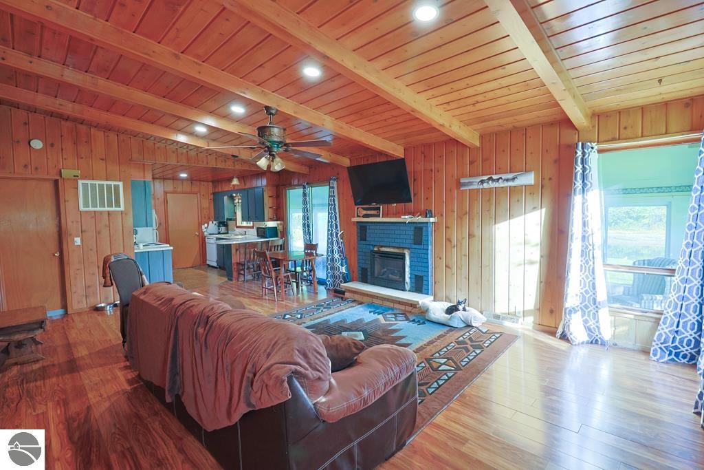 Motivated Seller! This charming 3-bedroom home in Barryton, Michigan is perfectly situated on the 120' scenic North Branch Chippewa River, offering peaceful waterfront living. The open-concept living room and kitchen create a bright and inviting space for everyday living and entertaining. Step into the 3-season room at the back, complete with a fireplace and grilling area, and enjoy views of the backyard and river. Recently completed updates like a newer sewer line and an on demand Generac generator adding peace of mind for years to come! Additional features include a carport for easy parking and a Large 12'x18' shed providing extra storage, making this home as functional as it is picturesque. A cozy retreat with riverfront charm, this property combines comfort, convenience, and outdoor enjoyment.