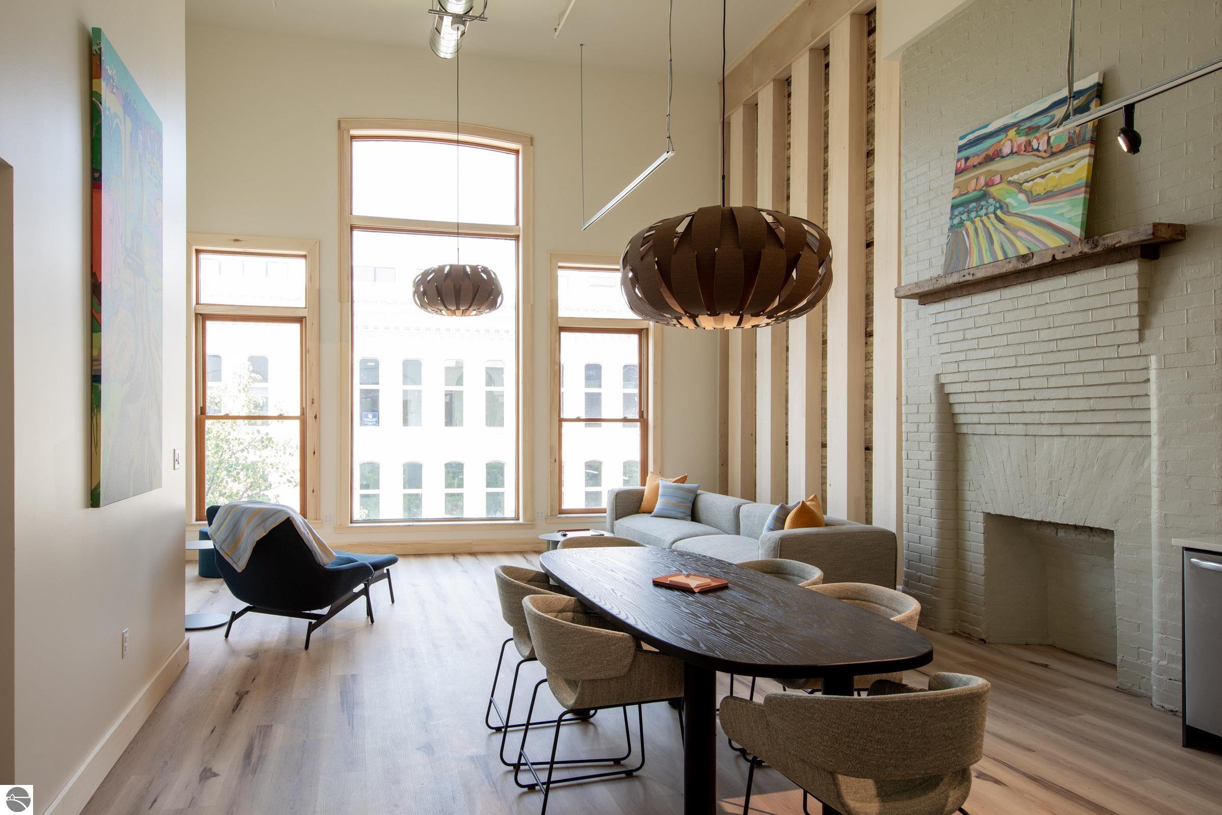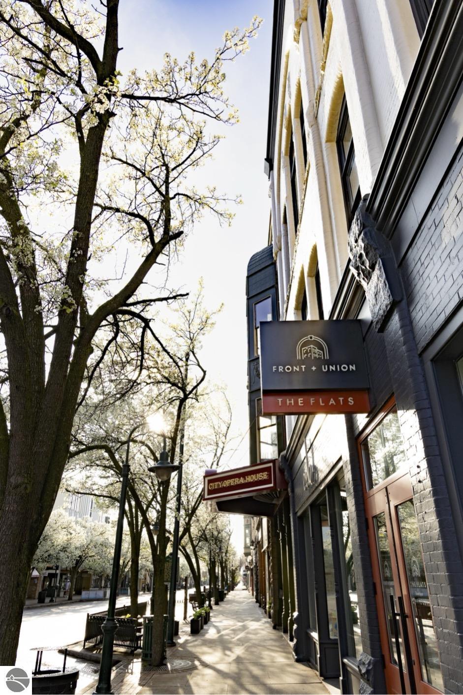 Introducing The Flats at Front + Union, a rare collection of seven residences nestled within the historic building at 100 East Front St, one of Traverse City’s most iconic corners. Each flat has been thoughtfully designed to honor the history and character of the building while blending in the comfort of modern luxury and an unmistakable urban feel. These beautiful flats range from spacious 2-bedroom, 2-bath to 3-bedroom, 3-bath layouts, including two stunning corner signature flats. These special corner flats boast dramatic floor-to-ceiling windows, capturing light and views of west bay and the perfect vantage point to take in the heartbeat of downtown living. This collection is a rare opportunity in Traverse City offering elevator access to your floor, a leased private parking space right outside the building and a "coming soon” rooftop oasis. The over 3,000 square foot rooftop, designed by Environment Architects lead Ray Kendra will have private lounge spaces, an indoor/outdoor entertaining and cocktail kitchen and grilling stations — all designed with unforgettable views. The Flats are modern simplicity at its best, six of the seven appointed spaces are being sold fully furnished — right down to the furniture and bedding — making them an effortless turnkey opportunity. The limited number inside this historic building will keep your investment strong while giving you peace of mind to lock and leave knowing the building is well cared for. Three thoughtfully designed entry points — from the private parking area, Front Street, and Union Street — provide convenient access for owners. Situated in the heart of downtown, The Flats at Front + Union are just steps from everything Traverse City has to offer. This 2023 complete renovation in one of Traverse City’s most historic buildings was curated by a local family, designed by renowned local architect firm, Environment Architects and built to perfection by local contractors.