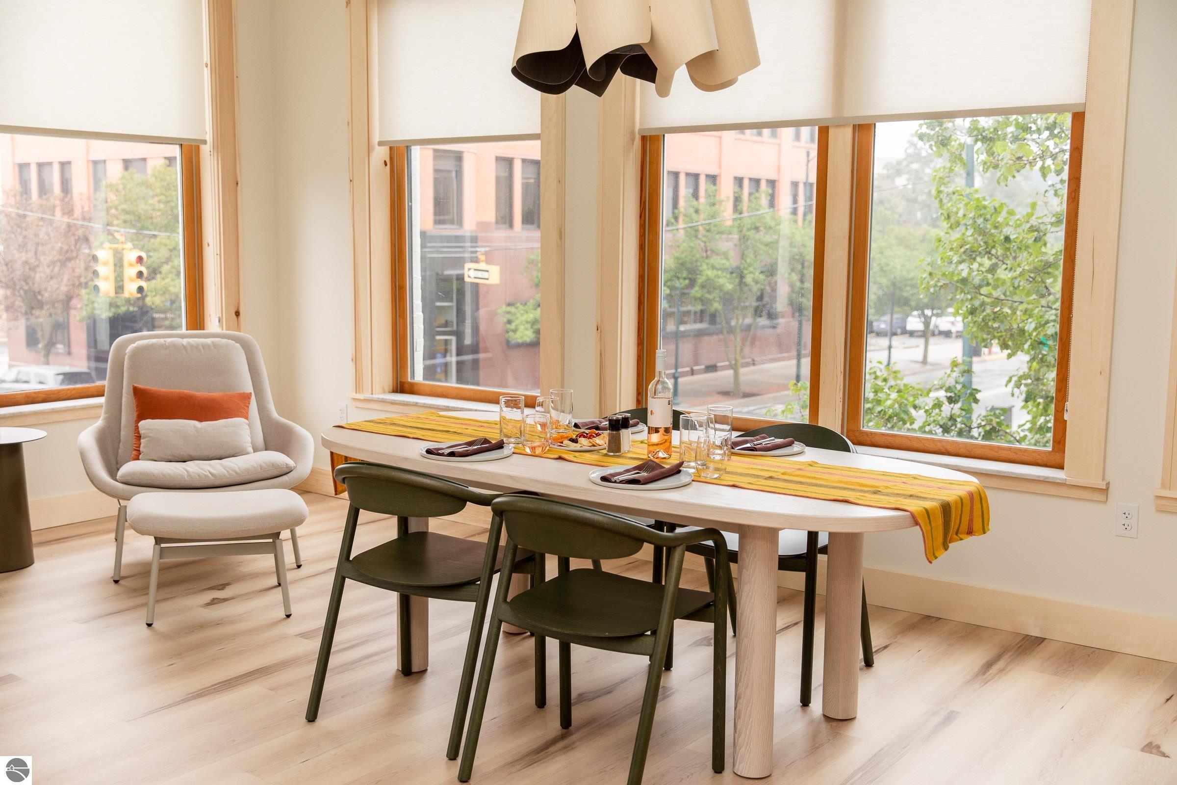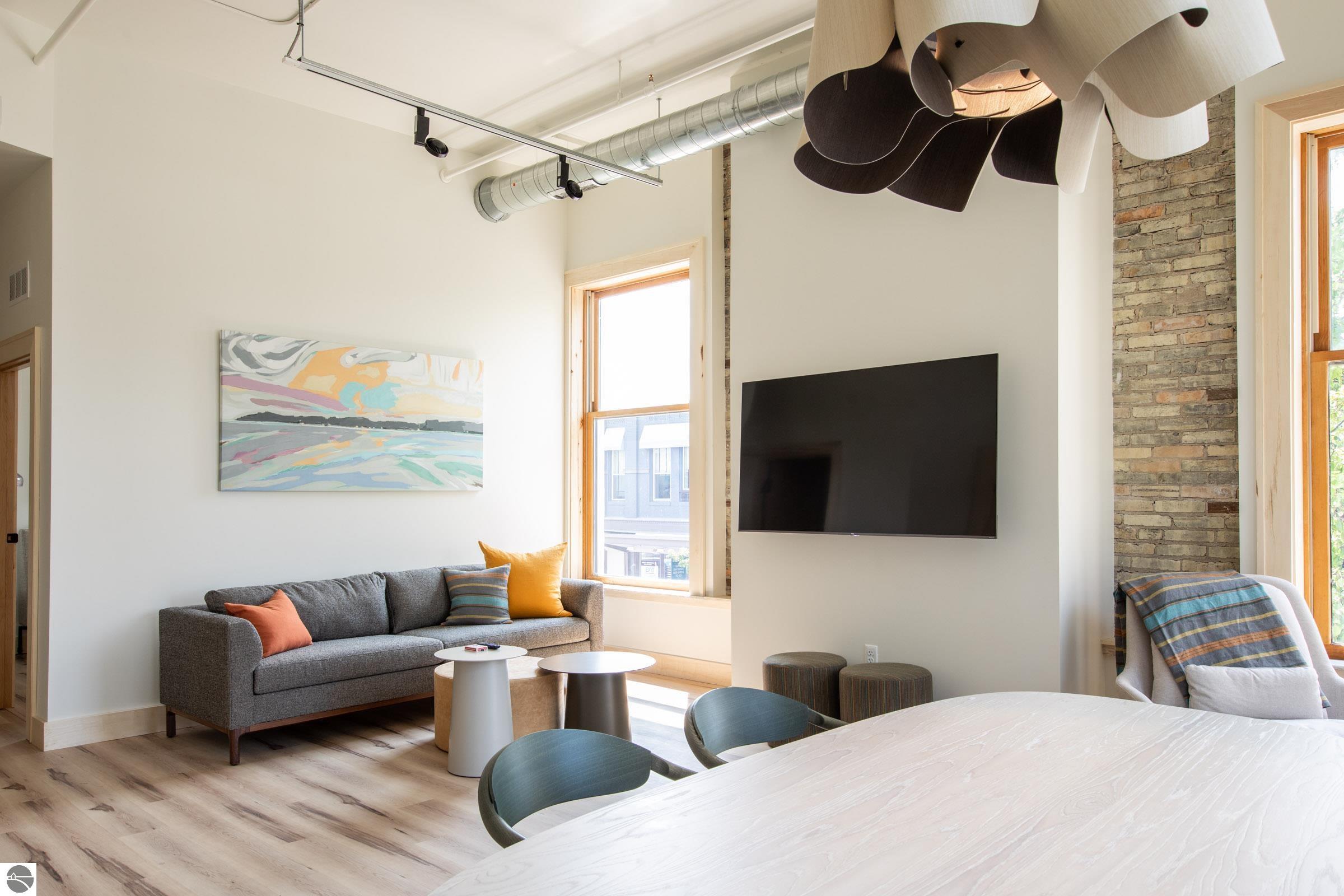 Introducing The Flats at Front + Union, a rare collection of seven residences nestled within the historic building at 100 East Front St, one of Traverse City’s most iconic corners. Each flat has been thoughtfully designed to honor the history and character of the building while blending in the comfort of modern luxury and an unmistakable urban feel. These beautiful flats range from spacious 2-bedroom, 2-bath to 3-bedroom, 3-bath layouts, including two stunning corner signature flats. These special corner flats boast dramatic floor-to-ceiling windows, capturing light and views of west bay and the perfect vantage point to take in the heartbeat of downtown living. This collection is a rare opportunity in Traverse City offering elevator access to your floor, a leased private parking space right outside the building and a "coming soon” rooftop oasis. The over 3,000 square foot rooftop, designed by Environment Architects lead Ray Kendra will have private lounge spaces, an indoor/outdoor entertaining and cocktail kitchen and grilling stations — all designed with unforgettable views. The Flats are modern simplicity at its best, six of the seven appointed spaces are being sold fully furnished — right down to the furniture and bedding — making them an effortless turnkey opportunity. The limited number inside this historic building will keep your investment strong while giving you peace of mind to lock and leave knowing the building is well cared for. Three thoughtfully designed entry points — from the private parking area, Front Street, and Union Street — provide convenient access for owners. Situated in the heart of downtown, The Flats at Front + Union are just steps from everything Traverse City has to offer. This 2023 complete renovation in one of Traverse City’s most historic buildings was curated by a local family, designed by renowned local architect firm, Environment Architects and built to perfection by local contractors.