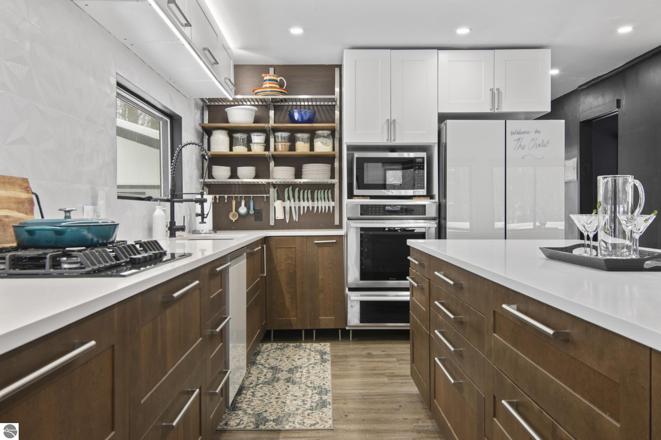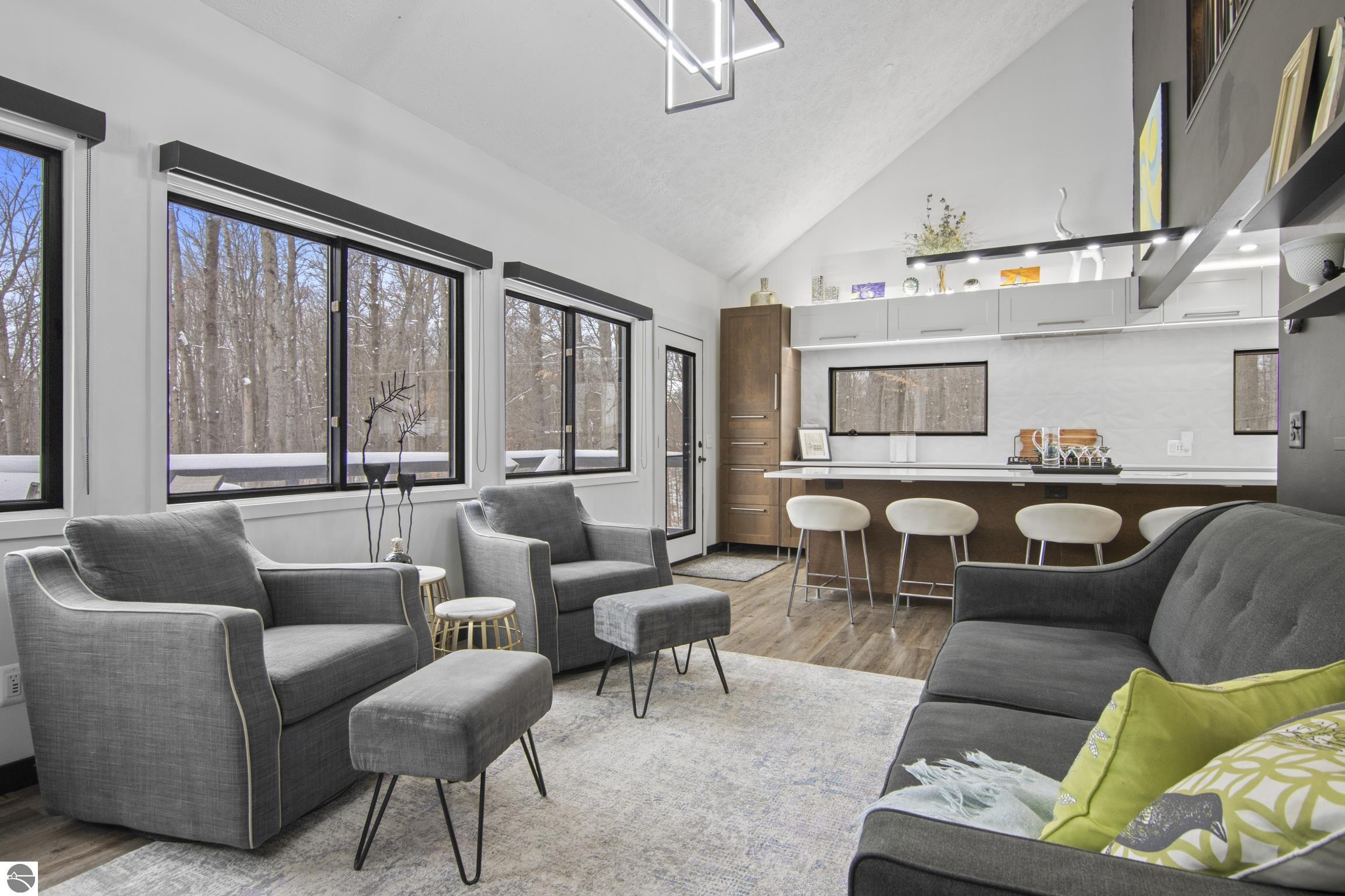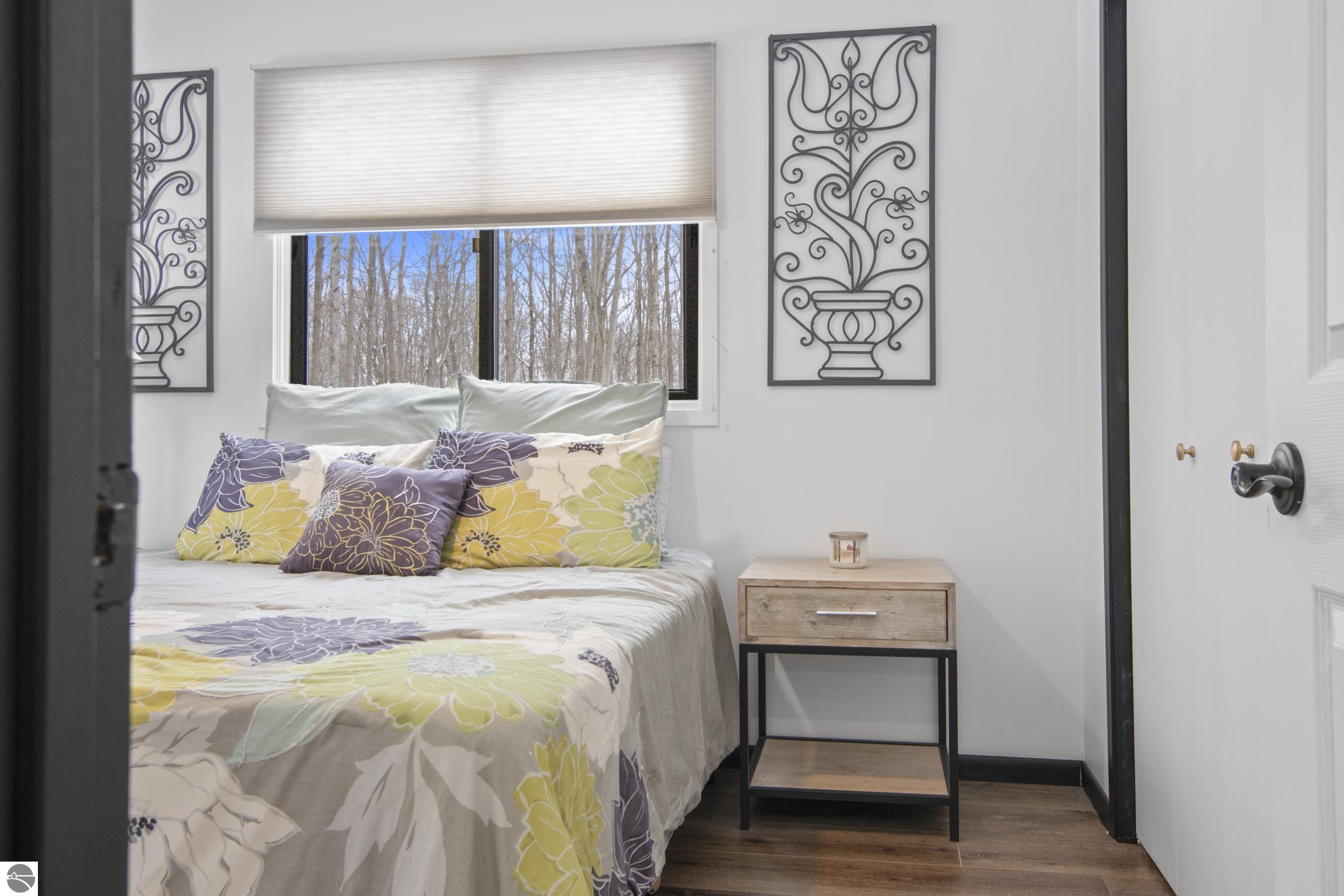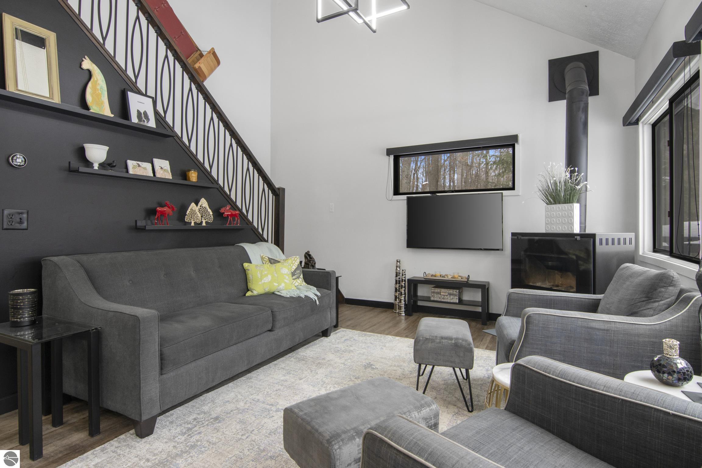 Winter is here, and this furnished, short-term rental-friendly home is just a few minutes' walk from the ski easement at the top of Schuss Mountain. Here you'll find a gorgeous kitchen with 10.5 foot island, new appliances, beverage station w/ dedicated water line plus main floor living room, bedroom, and full bath. Two bedrooms and beautiful new bathroom up stairs. After a long day on the mountain, there's nothing better than a hot shower or a soak in the hot tub, and with the efficient on-demand hot water system, you'll never have to worry about running out. The lower level hosts a fourth non-conforming bedroom, family room, laundry, and plenty of storage. Enjoy your days on the deck and your evenings by the fire pit! Spread over two parcels, the wooded area behind the home is great for exploring and has a forged path to Cedar River Village. You are close to local towns, lakes and all you love about northern Michigan. The northern lights feel closer here, and the ski easement at the top of Schuss Mountain is within walking distance. With convenient access to skiing and five golf courses, this will satisfy your thirst for a cozy northern retreat.