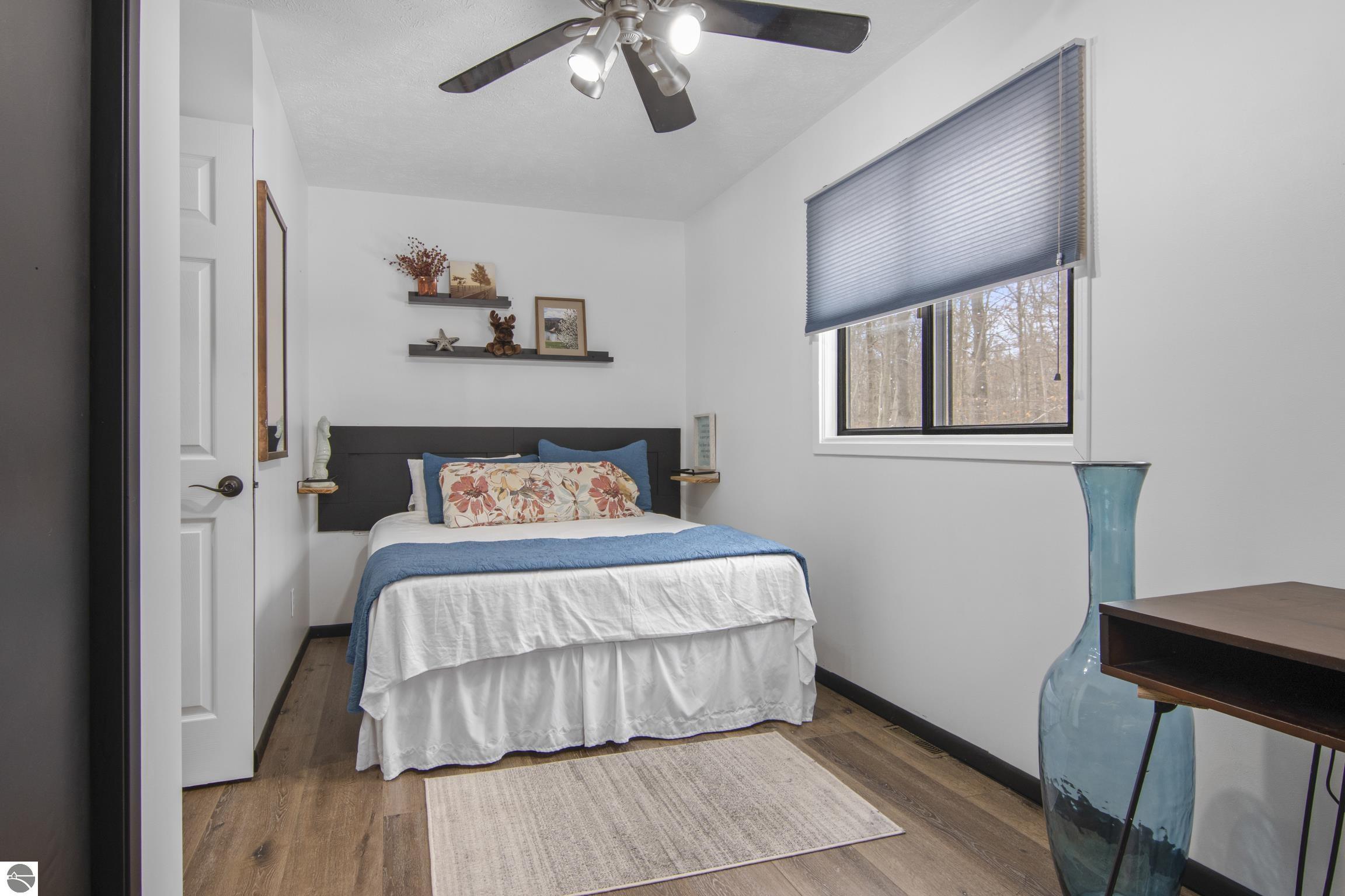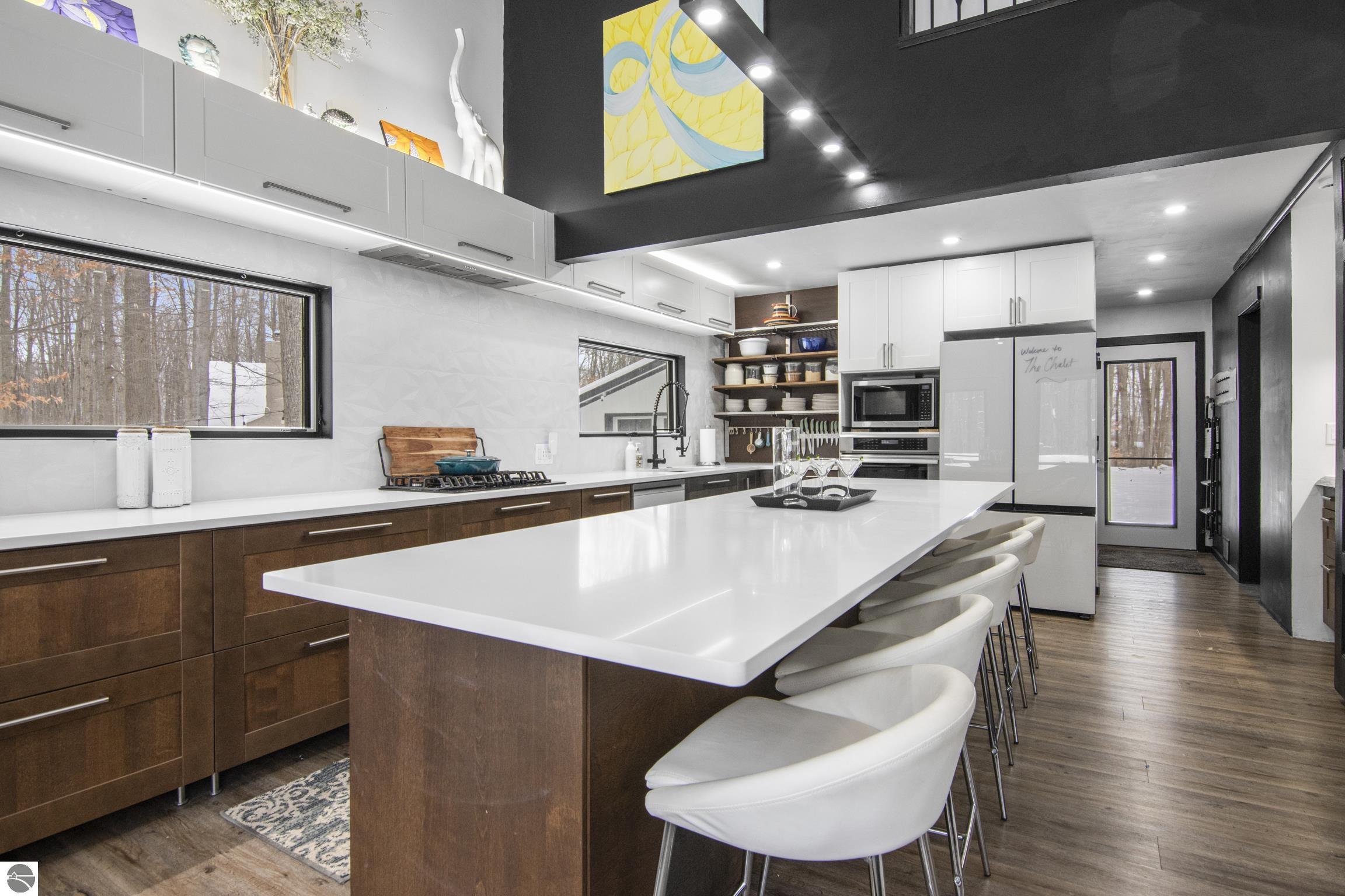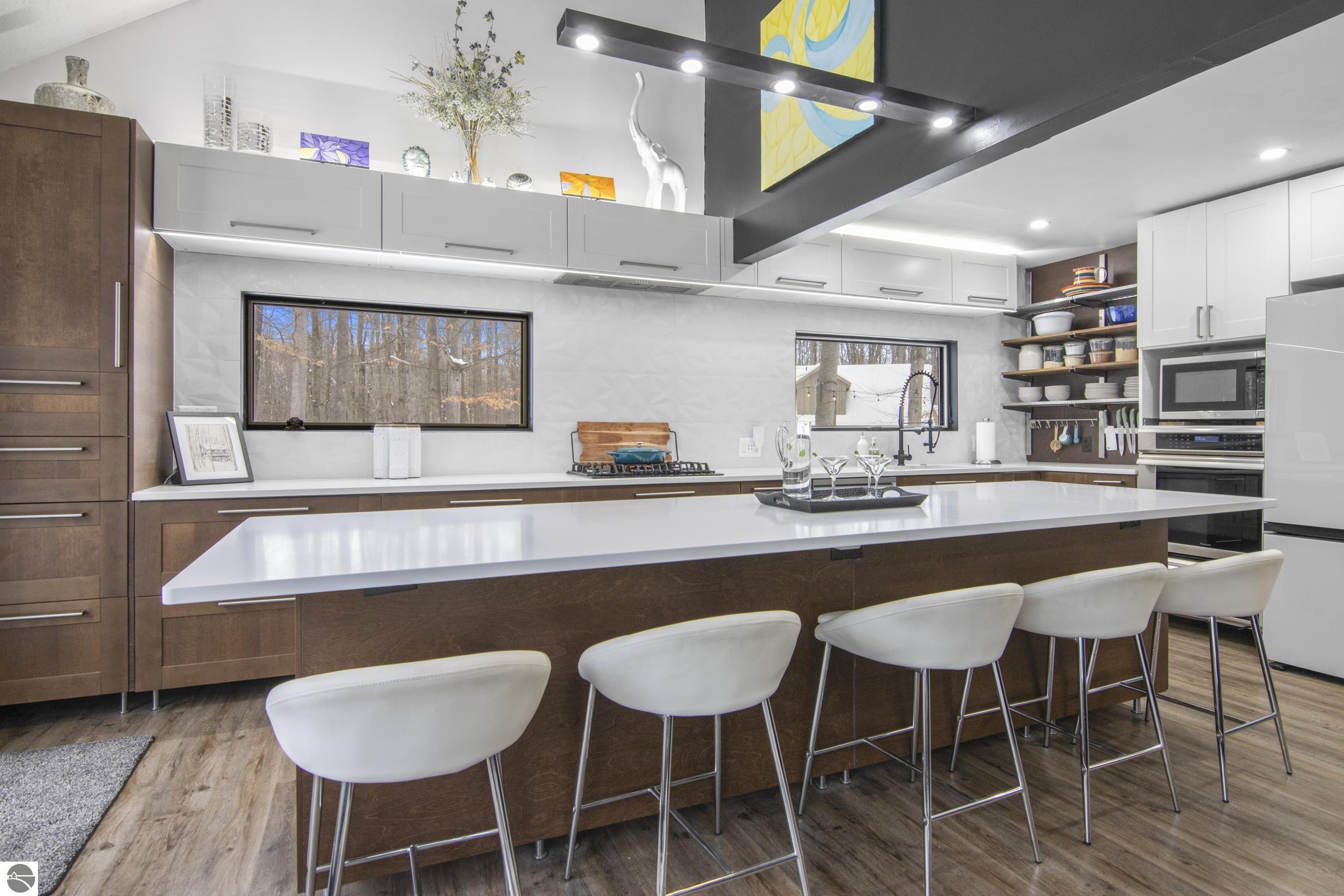 Winter is here, and this furnished, short-term rental-friendly home is just a few minutes' walk from the ski easement at the top of Schuss Mountain. Here you'll find a gorgeous kitchen with 10.5 foot island, new appliances, beverage station w/ dedicated water line plus main floor living room, bedroom, and full bath. Two bedrooms and beautiful new bathroom up stairs. After a long day on the mountain, there's nothing better than a hot shower or a soak in the hot tub, and with the efficient on-demand hot water system, you'll never have to worry about running out. The lower level hosts a fourth non-conforming bedroom, family room, laundry, and plenty of storage. Enjoy your days on the deck and your evenings by the fire pit! Spread over two parcels, the wooded area behind the home is great for exploring and has a forged path to Cedar River Village. You are close to local towns, lakes and all you love about northern Michigan. The northern lights feel closer here, and the ski easement at the top of Schuss Mountain is within walking distance. With convenient access to skiing and five golf courses, this will satisfy your thirst for a cozy northern retreat.