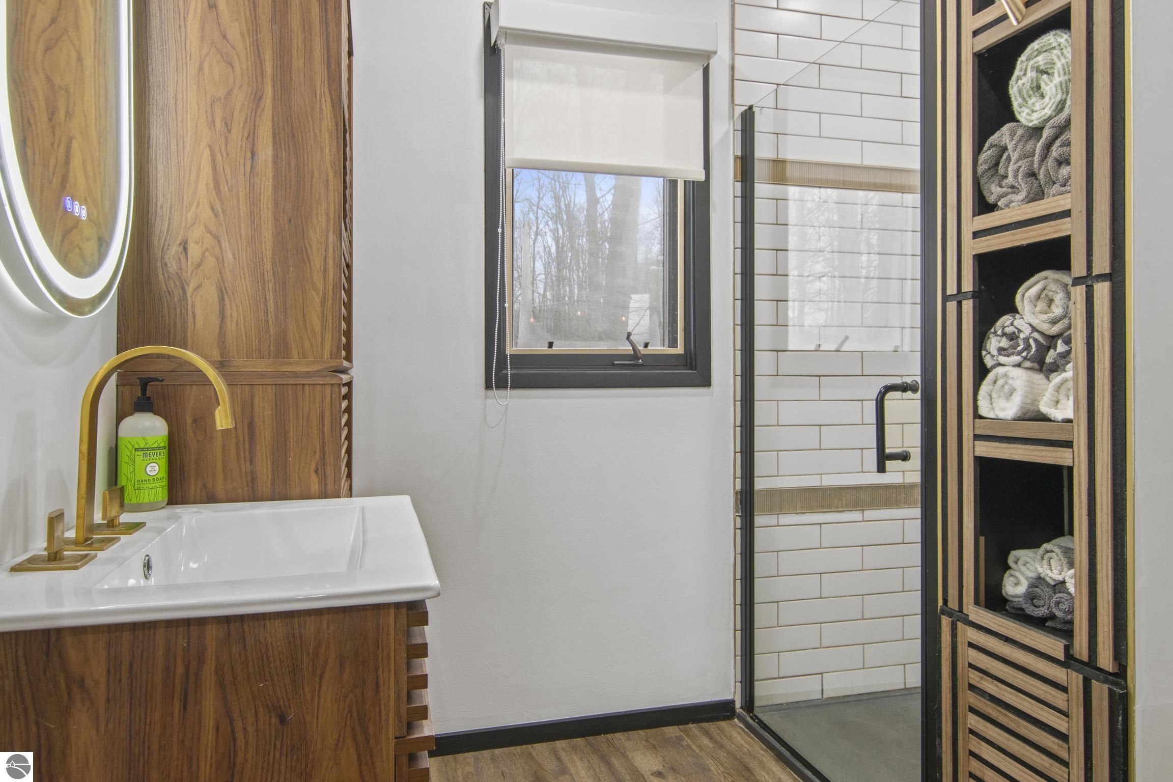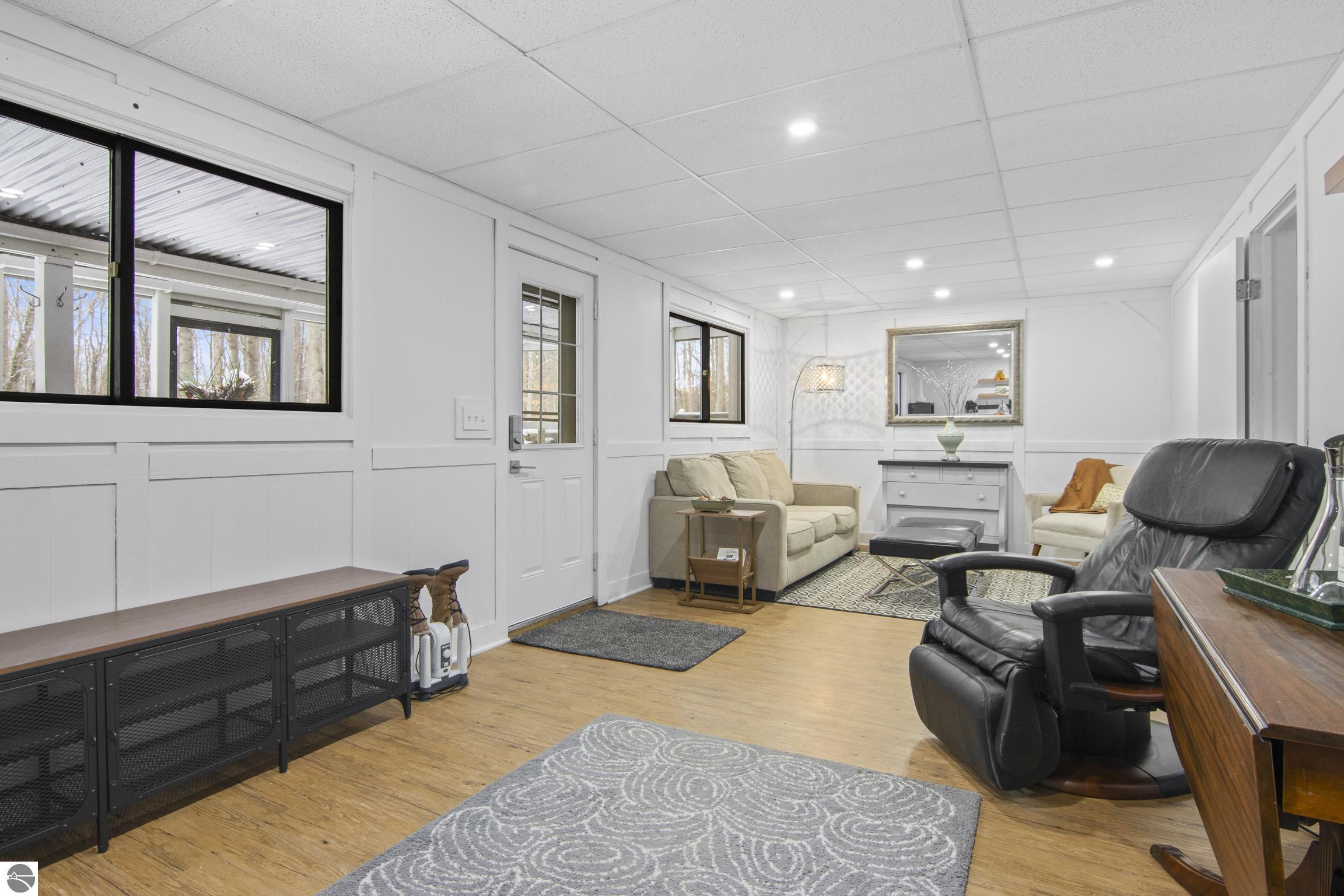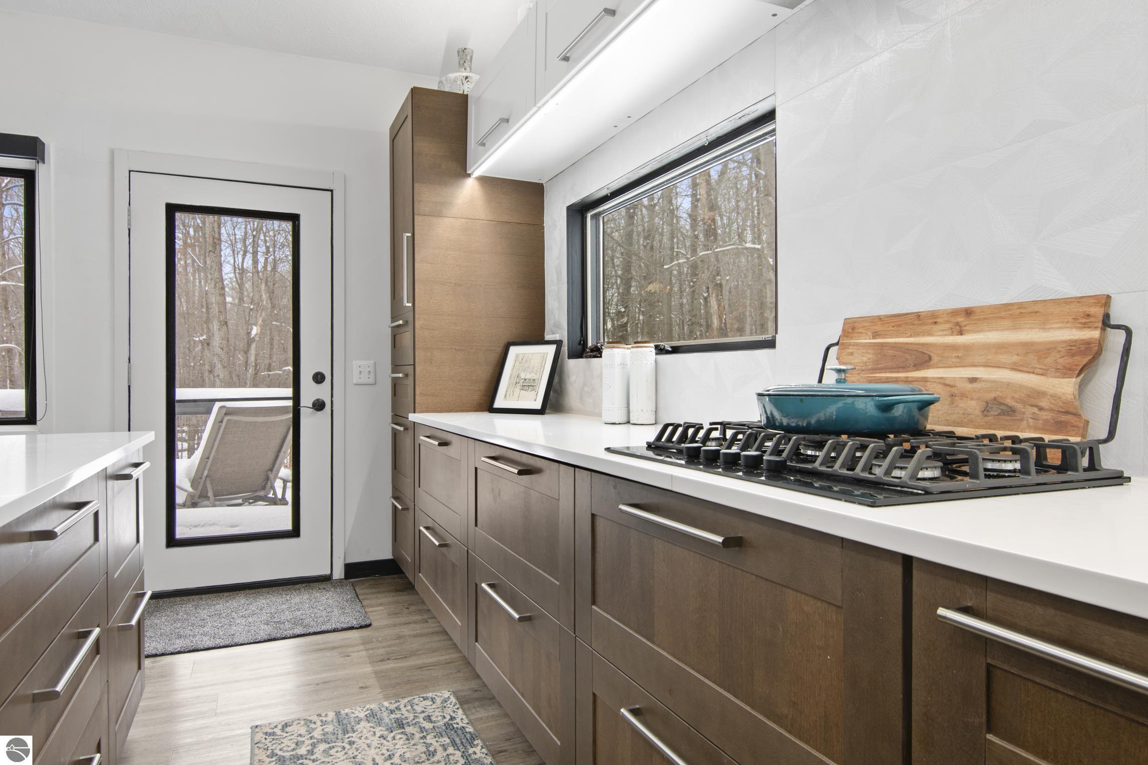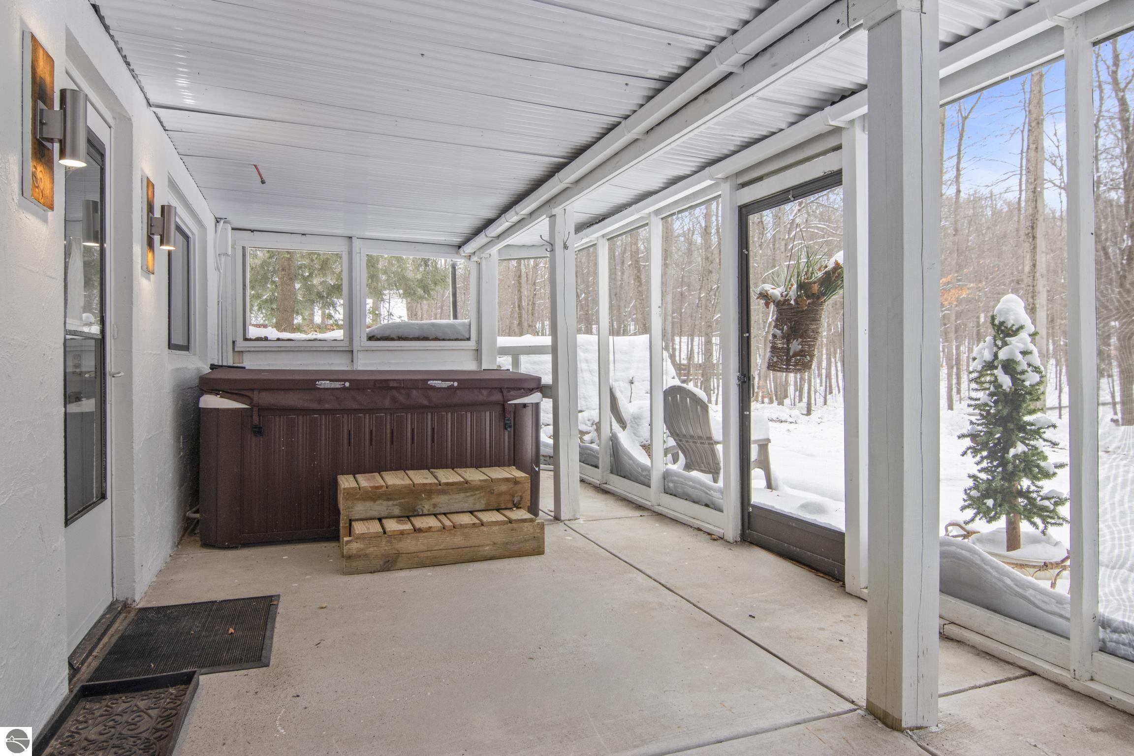Winter is here, and this furnished, short-term rental-friendly home is just a few minutes' walk from the ski easement at the top of Schuss Mountain. Here you'll find a gorgeous kitchen with 10.5 foot island, new appliances, beverage station w/ dedicated water line plus main floor living room, bedroom, and full bath. Two bedrooms and beautiful new bathroom up stairs. After a long day on the mountain, there's nothing better than a hot shower or a soak in the hot tub, and with the efficient on-demand hot water system, you'll never have to worry about running out. The lower level hosts a fourth non-conforming bedroom, family room, laundry, and plenty of storage. Enjoy your days on the deck and your evenings by the fire pit! Spread over two parcels, the wooded area behind the home is great for exploring and has a forged path to Cedar River Village. You are close to local towns, lakes and all you love about northern Michigan. The northern lights feel closer here, and the ski easement at the top of Schuss Mountain is within walking distance. With convenient access to skiing and five golf courses, this will satisfy your thirst for a cozy northern retreat.
