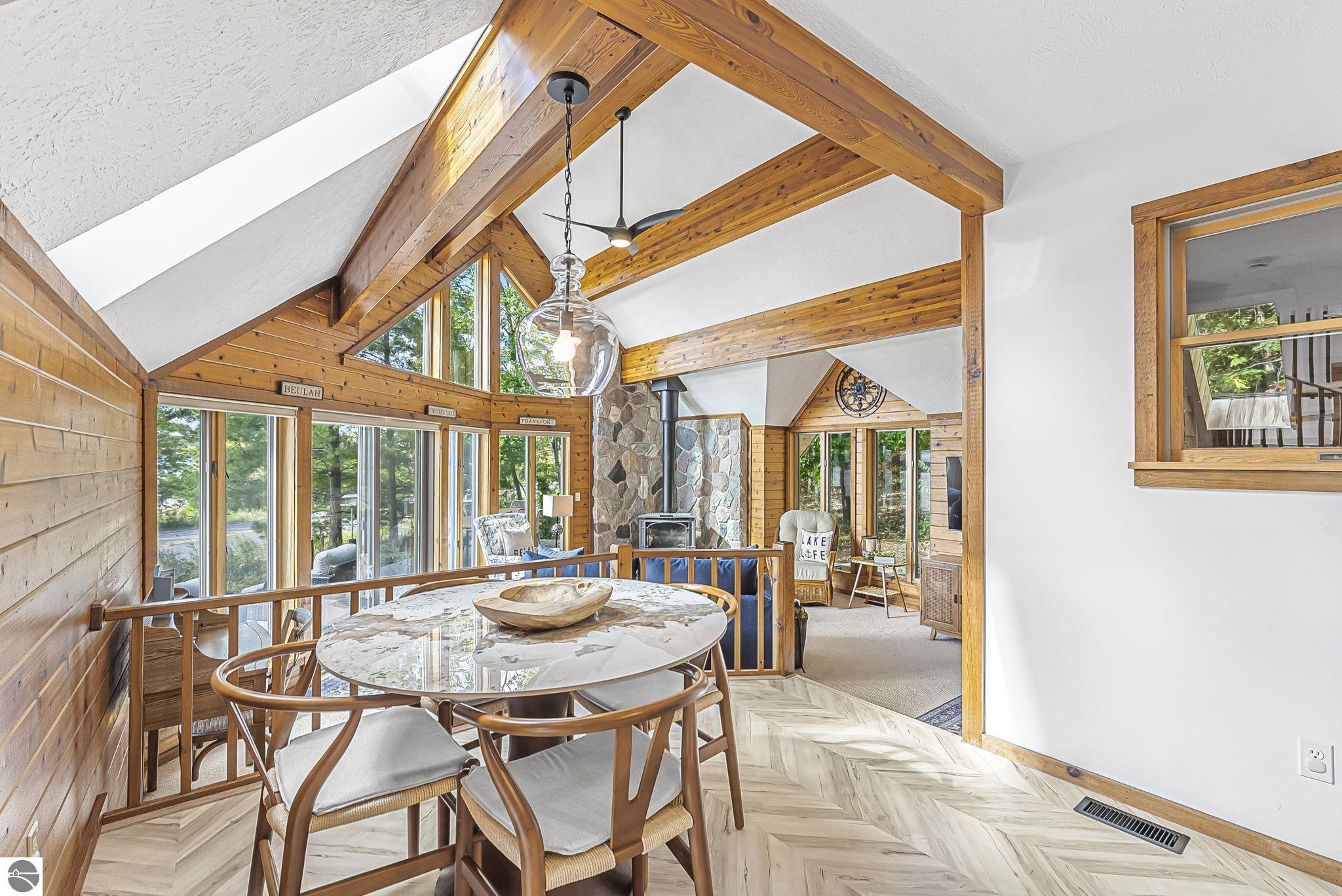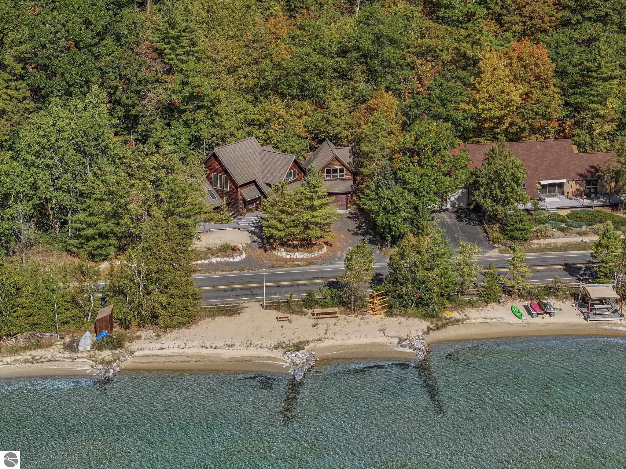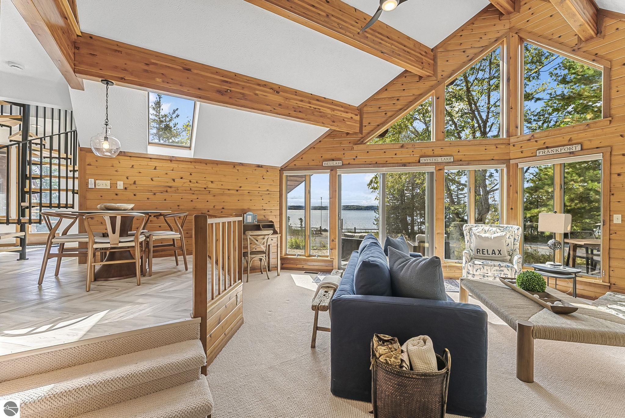 Welcome to 4618 Crystal Drive, your private sandy-shore sanctuary on the coveted North Shore of Crystal Lake. This beautifully updated 4 bedroom (one over the garage), 2.5-bath home offers 106 feet of walk in sandy frontage, a rarity on one of Michigan’s most breathtaking lakes. Wake up to shimmering blue water, step outside for a morning paddle, or spend your evenings gathered along your own stretch of pristine shoreline. Inside, the home feels fresh, bright, and ready to enjoy with new tile showers, new flooring throughout, and a versatile bonus room over the garage. Offered turn-key, it’s fully prepared for effortless lakefront living, whether you plan to enjoy it yourself or capitalize on its strong potential as a luxury short-term rental. The spaces are warm and inviting, designed for gathering, relaxing, and taking in those iconic Crystal Lake views. Properties with this combination of sandy frontage, privacy, updates, and location rarely come to market. If you’ve been waiting for a true Crystal Lake getaway, this is the one.