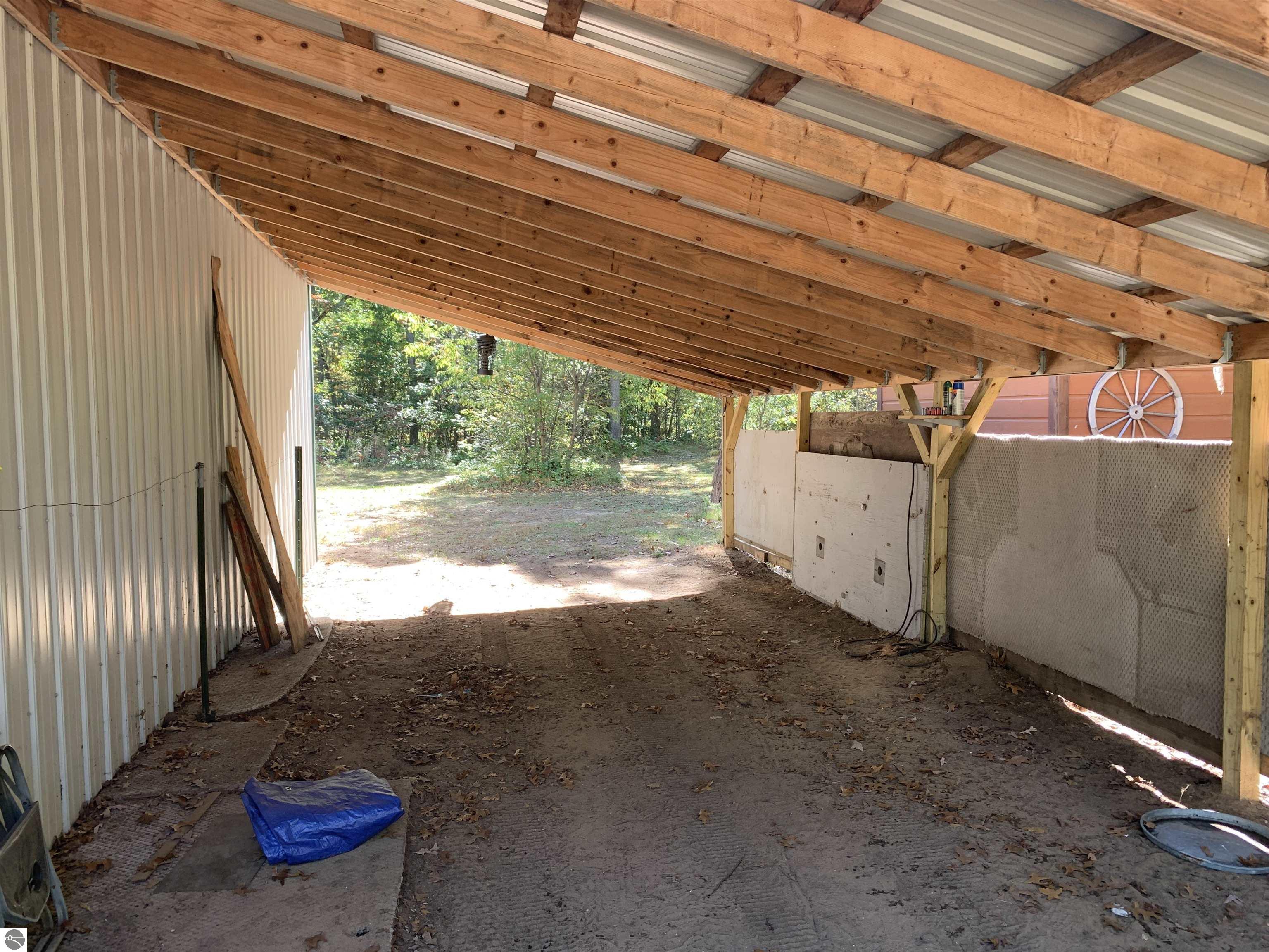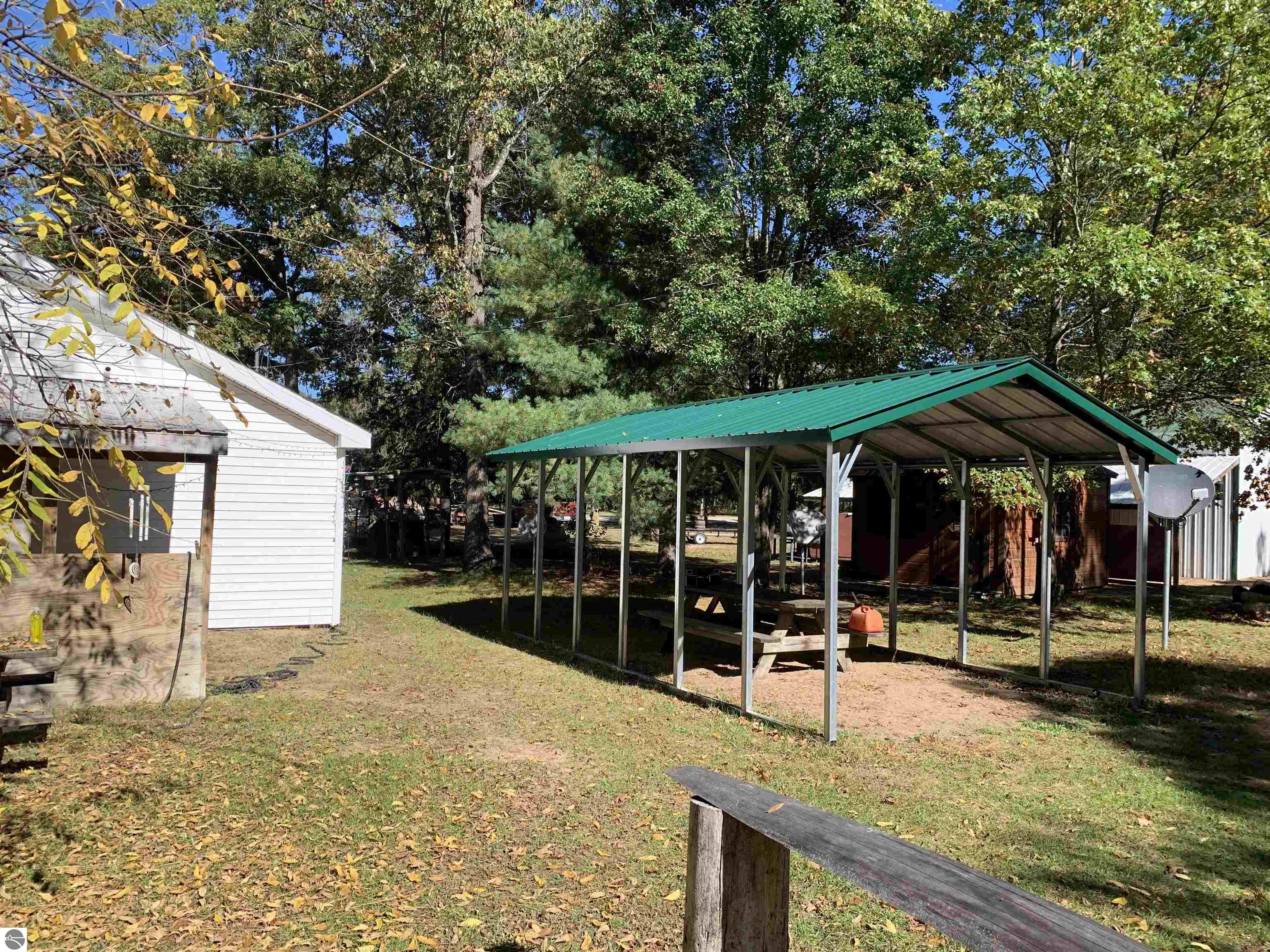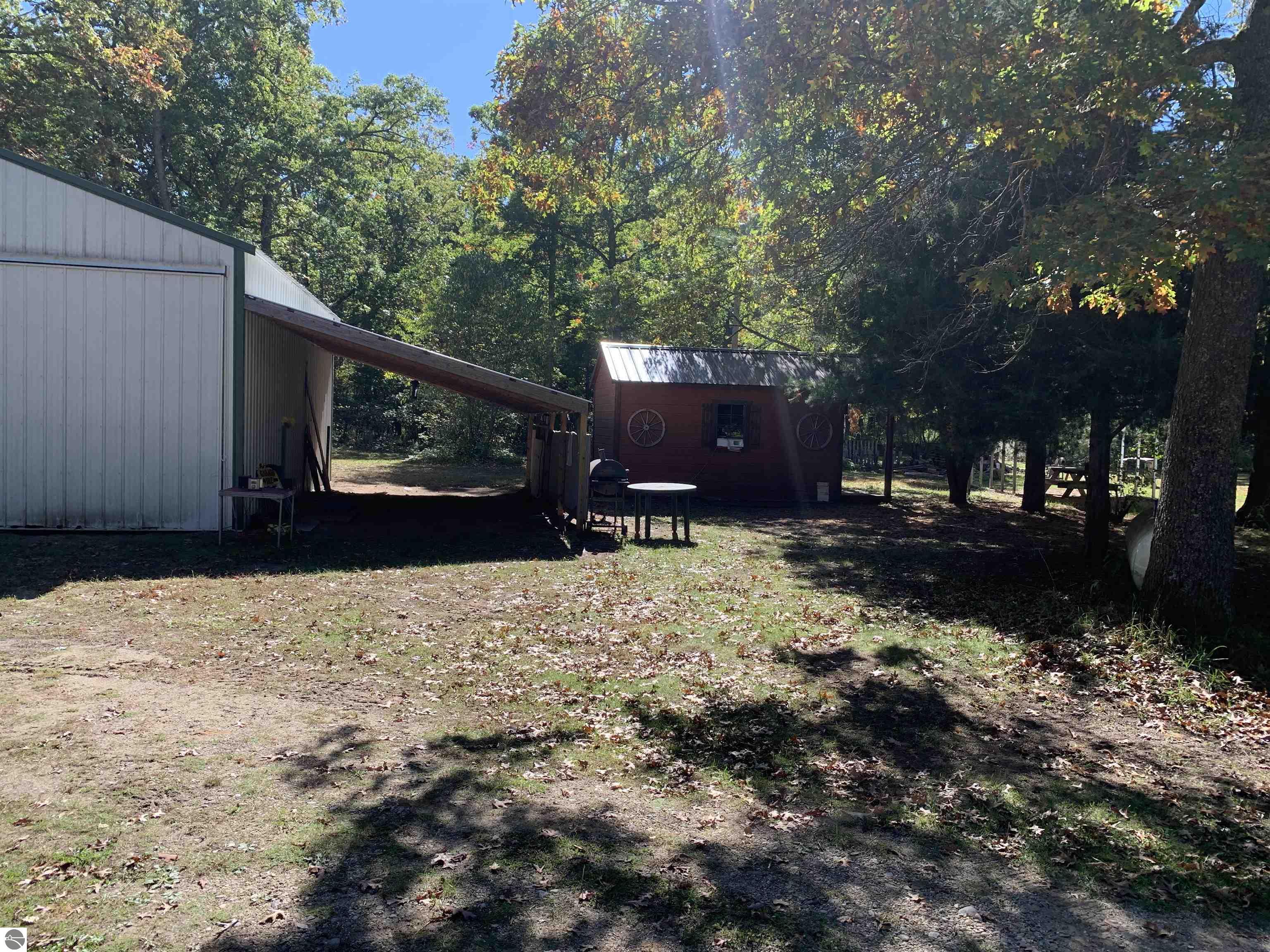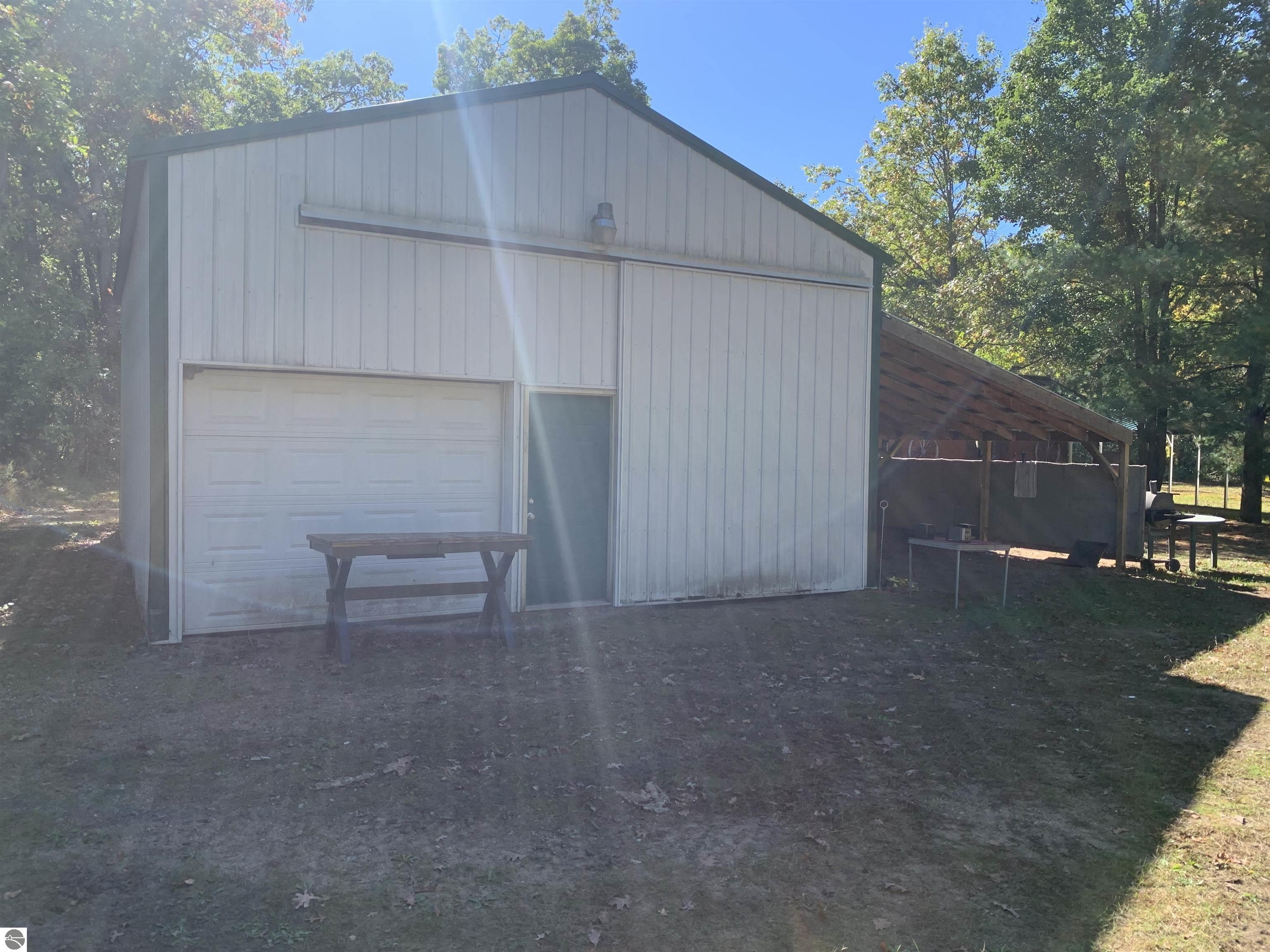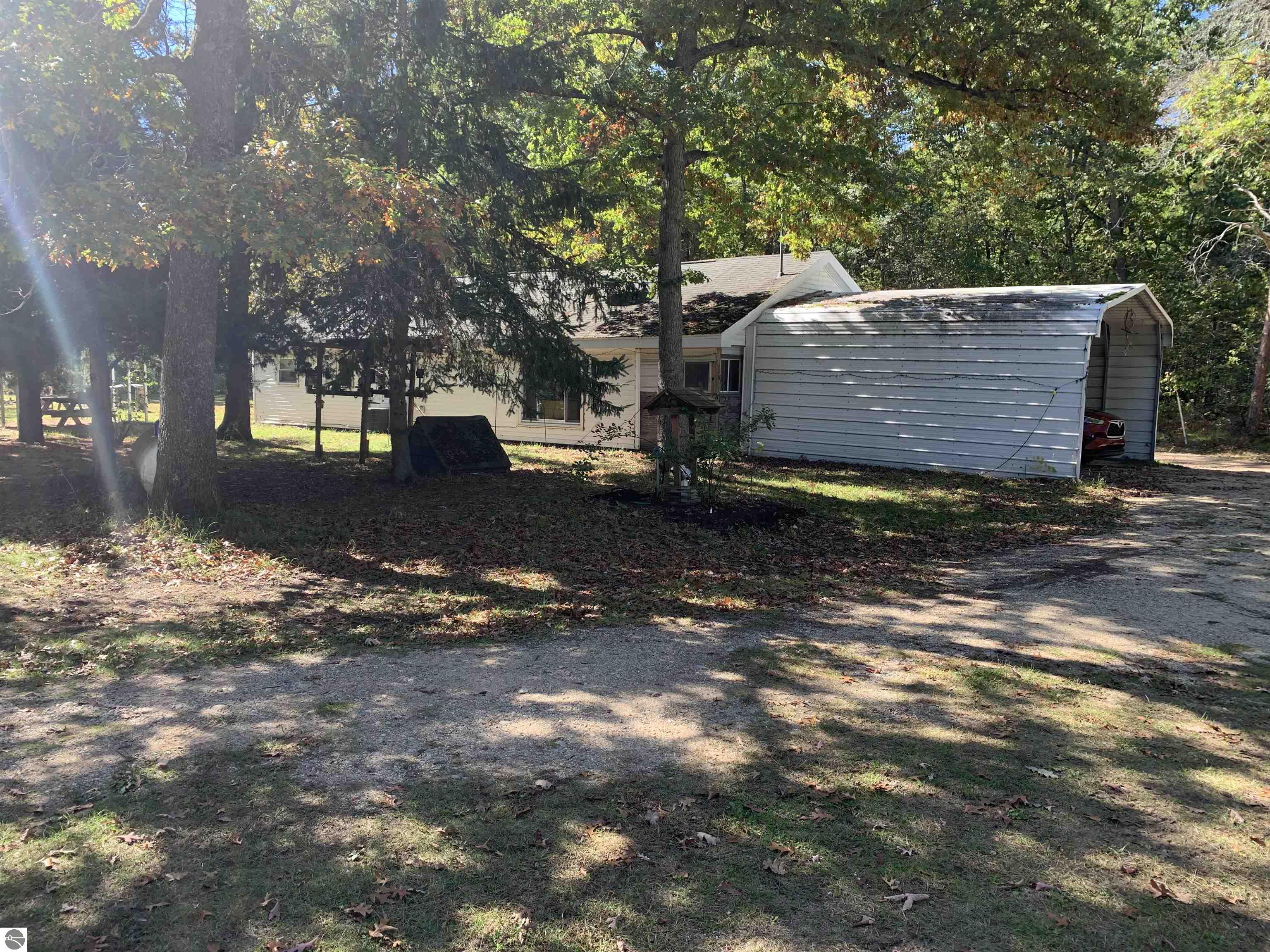 Bring your fishing rods and all other recreational toys to this 3 bedroom, 1 bath home just outside Wellston. The property is a nice level 1+ acre lot on a county maintained paved road close to Tippy Dam, many other rivers, lakes and recreational trails. The home features an open concept kitchen, dining and living room, ceramic tile floors, central air and camper hook-up in the yard. A large utility room holds the mechanicals including newer washer and dryer. The free standing aluminum car port gives protection from Michigan weather. A very large desirable 24x32 pole barn with attached open lean-to has electric and tall ceilings for all storage needs. The level and wooded back yard has an aluminum free standing covered structure (10x12) for gatherings along with a "tiny house" that could be set up for additional guests. And for your convenience the owner installed a new septic system in 2019. Come on up and make this your Up North getaway cabin.