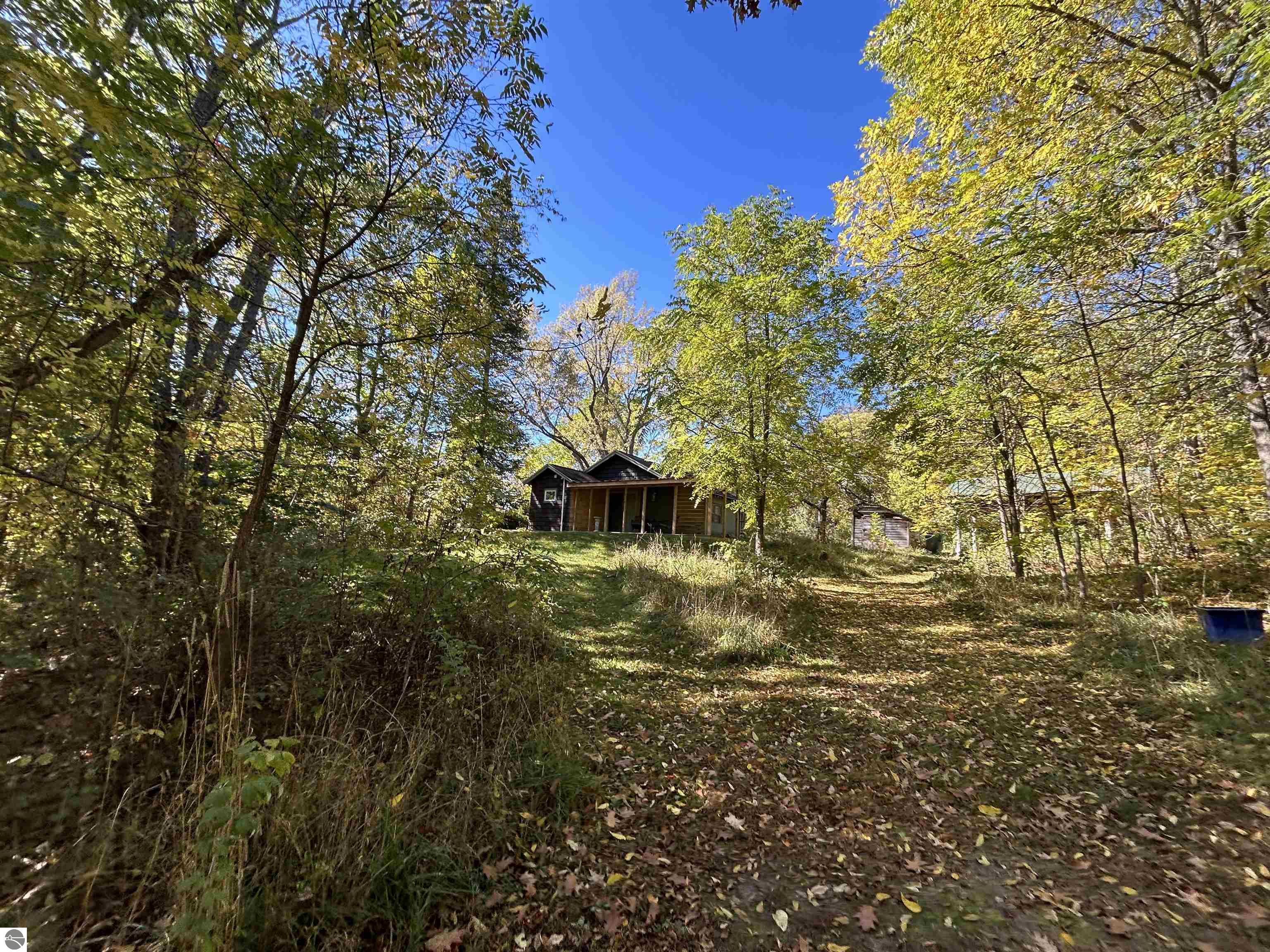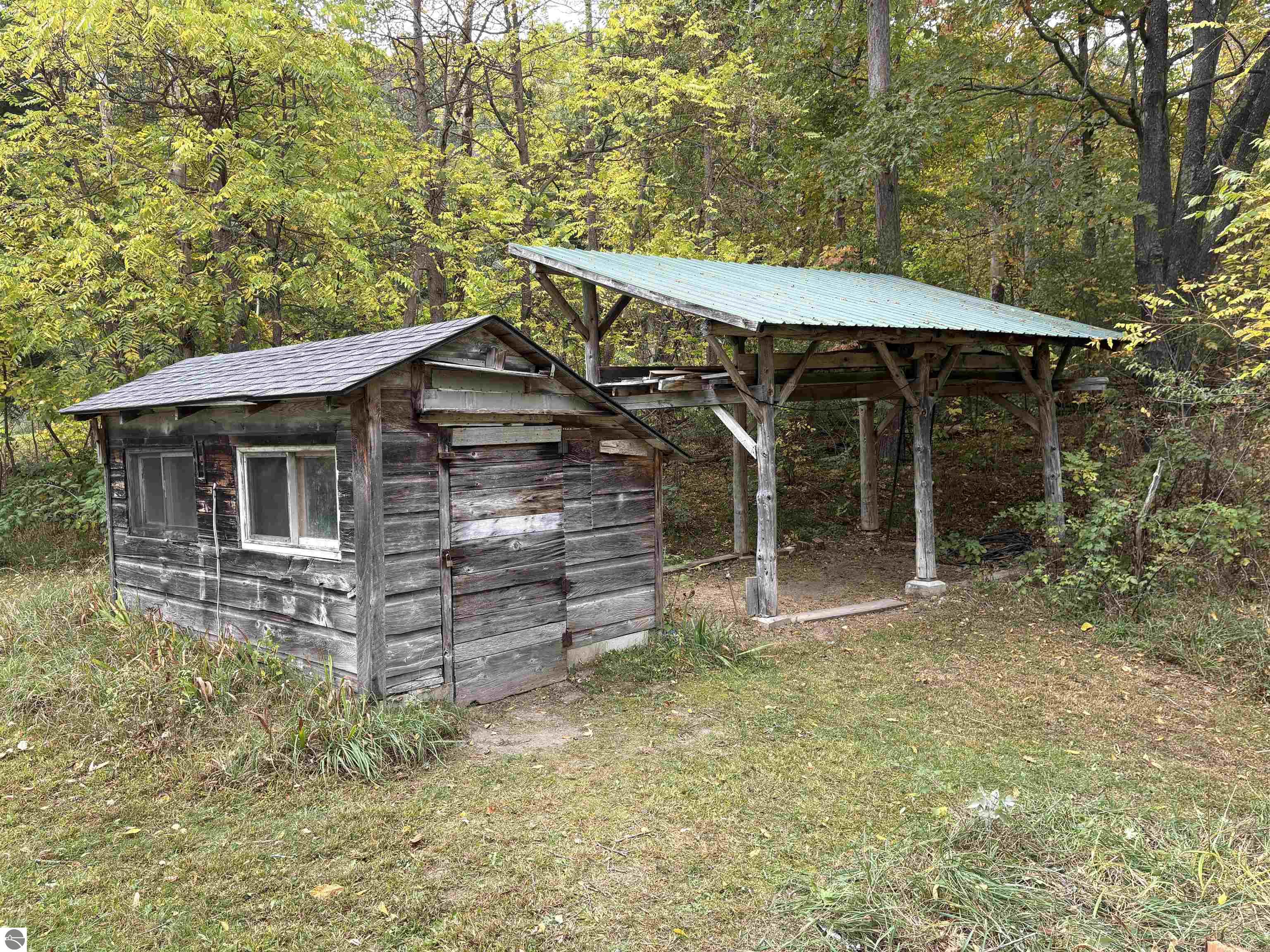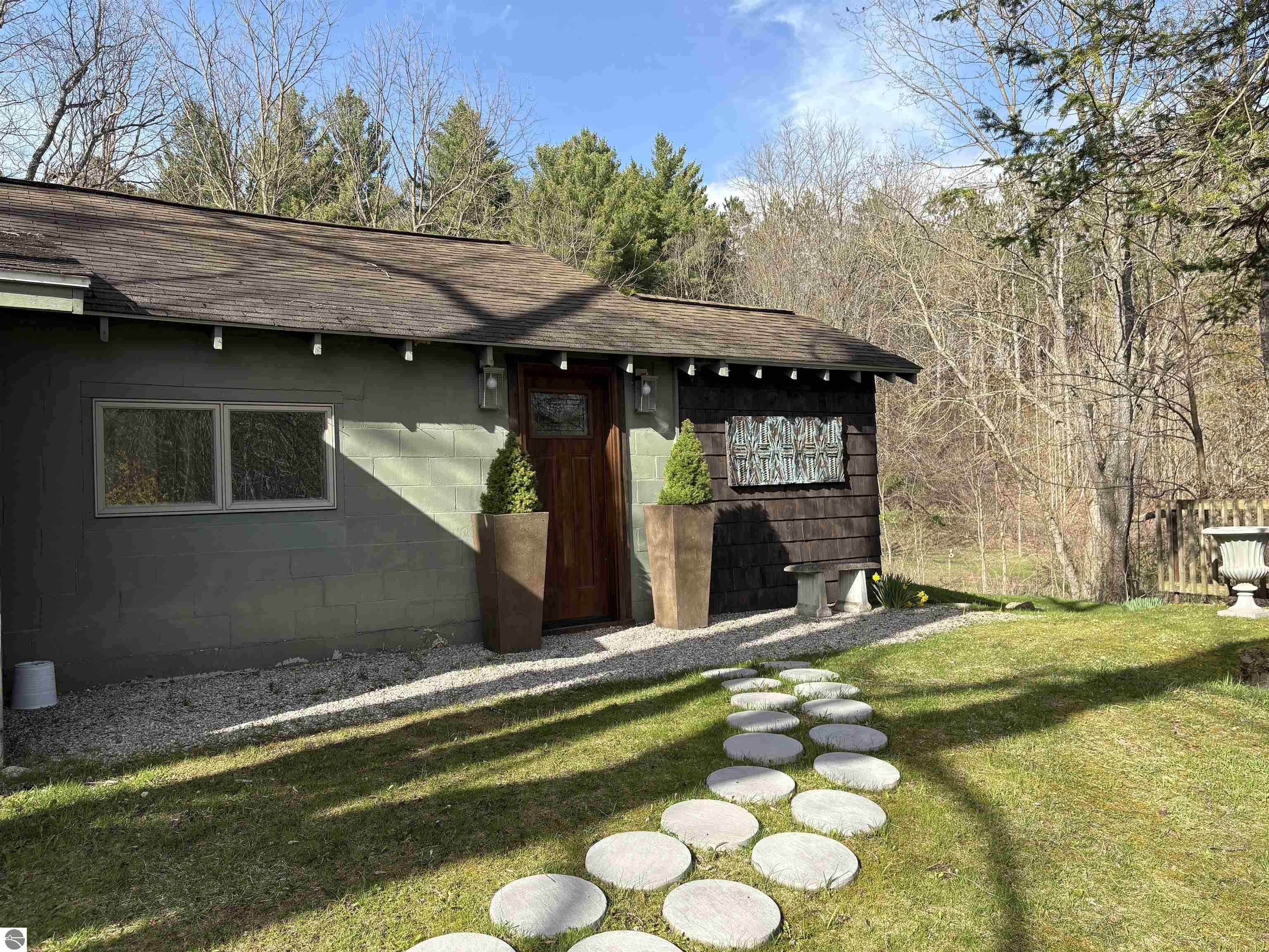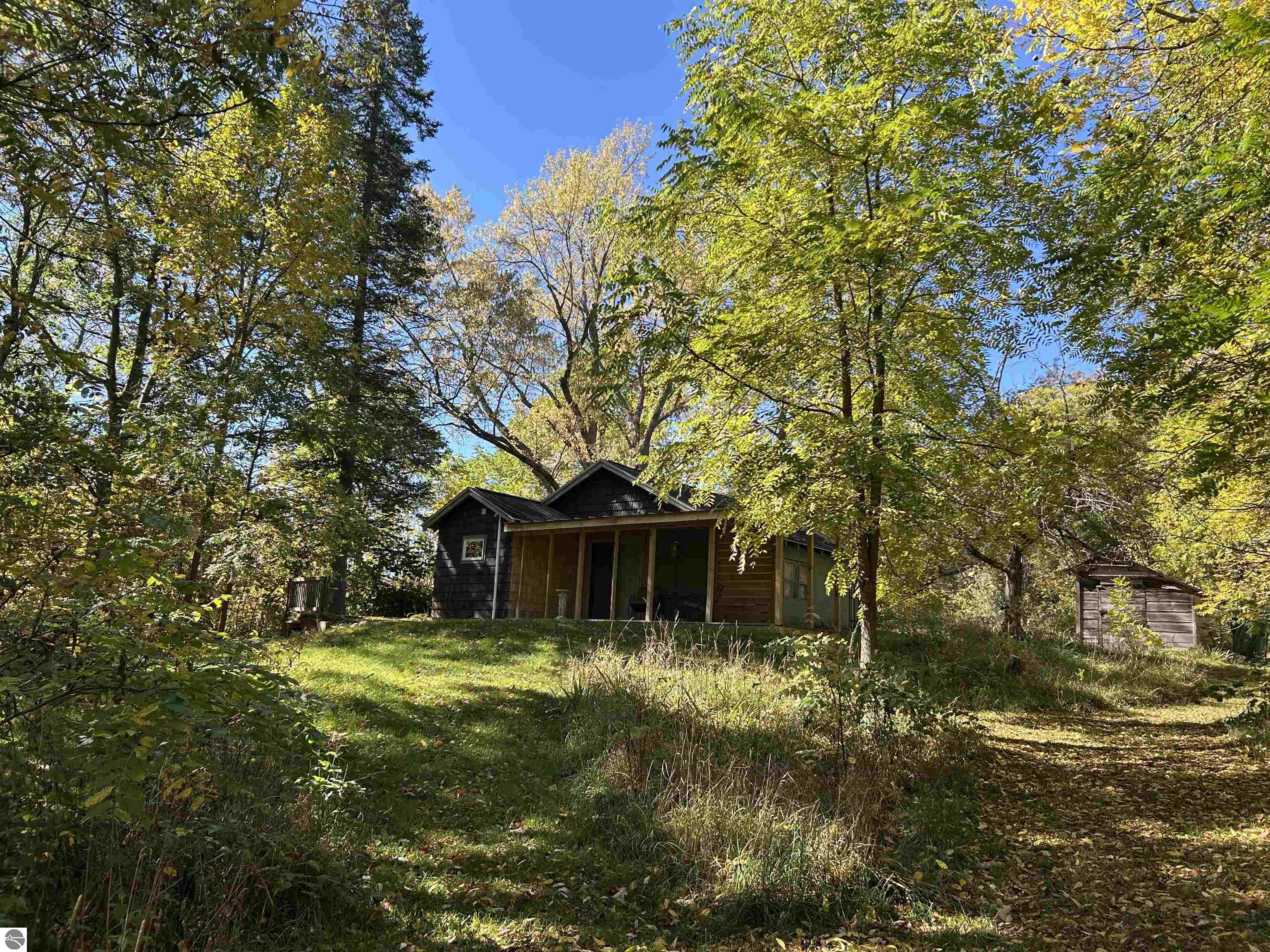 Welcome to your own private slice of Northern Michigan paradise! This beautifully updated 1-bedroom, 1-bath home is nestled on over 8 serene acres, ideal for anyone who loves the outdoors, dreams of homesteading, or simply wants room to breathe. Step inside to discover stylish updates throughout, including engineered maple floors, granite countertops, brand-new cabinetry, modern light fixtures, and updated appliances. The bathroom features a stunning tile and stone shower, offering a spa-like touch. Outside, the property truly shines. The large barn provides endless possibilities, great for a maker's space, woodworking, art, gardening, tinkering, or storing your outdoor equipment. A garden shed with electricity sits nearby the house, ready to be your potting station or cozy crafting retreat. The smaller outbuilding, previously used as an office, could easily serve as storage, a chicken coop, or even a creative studio. The open lean-to has possibilities also. Root Cellar...Yes Please! Spend peaceful mornings watching the sunrise over the barn, or quiet evenings relaxing under the covered porch, surrounded by the sounds of nature. In the winter months, enjoy cross-country skiing, snowshoeing, or snowmobiling, right on your own property or nearby trails. Enjoy the peaceful setting with views of the river's edge from the parcel, just south of Hooker Road. Whether you’re seeking a weekend getaway or a full-time homestead, this property offers the perfect balance of modern comfort and country charm. This property boasts a rustic setting, yet offers modern amenities for year-round living. This home is located just minutes away from the well-known Cherry Bowl Drive-In, approximately 15 minutes from the Sleeping Bear National Lakeshore, 5 minutes to the public access on Little Platte Lake and the Medenbrook Nature Preserve, 30+ minutes from Traverse City, 20 minutes from Frankfort, and more.