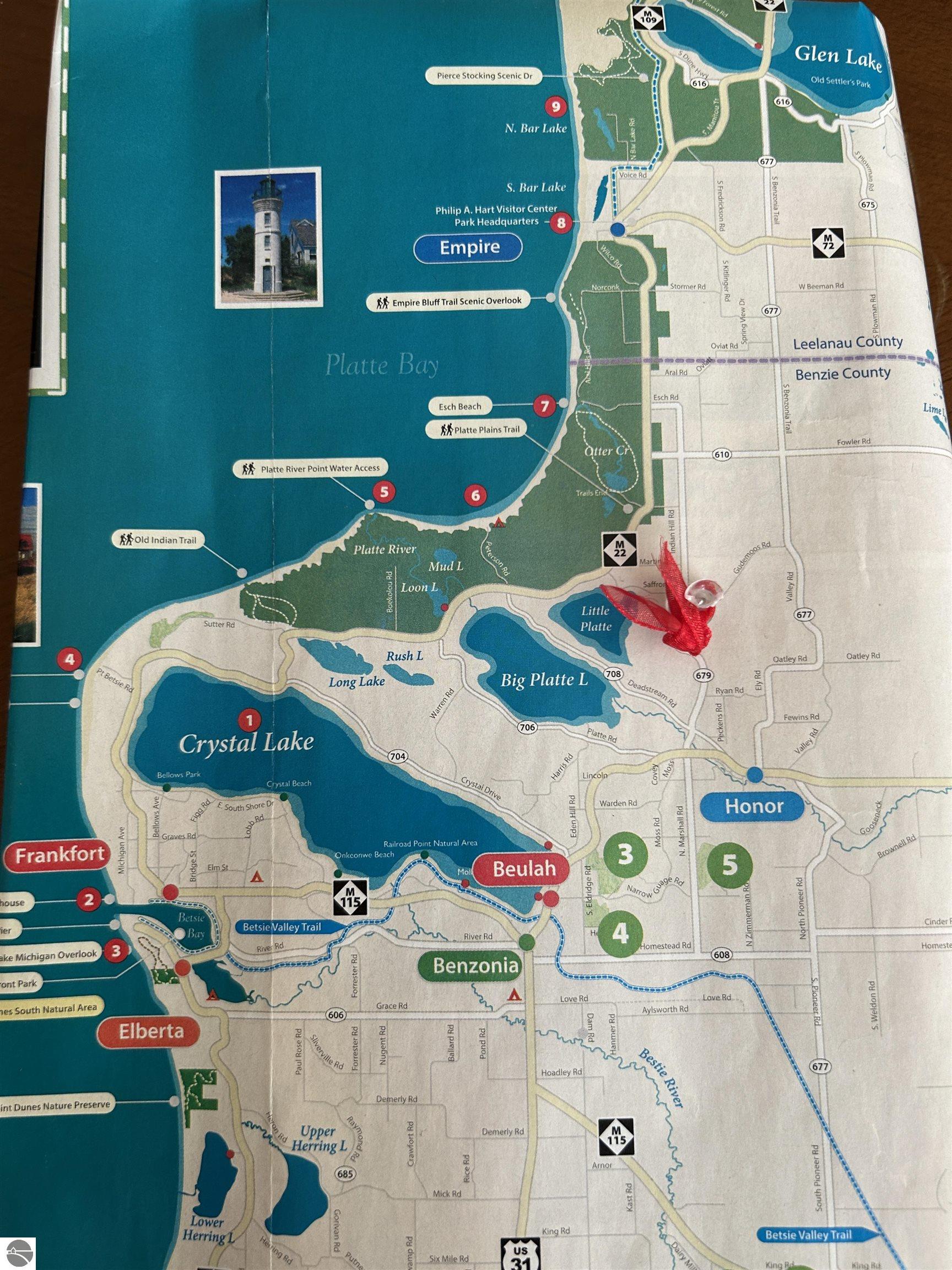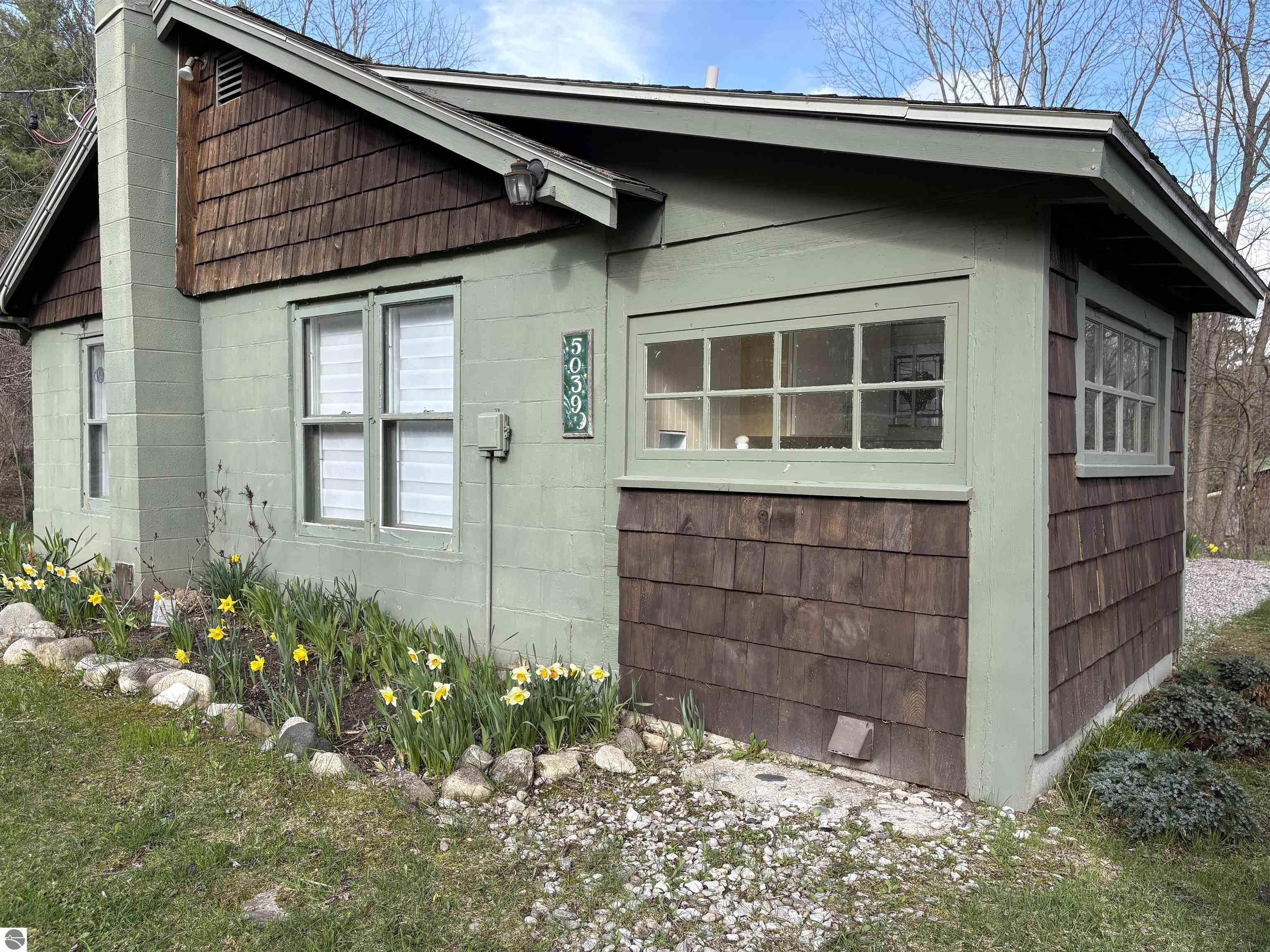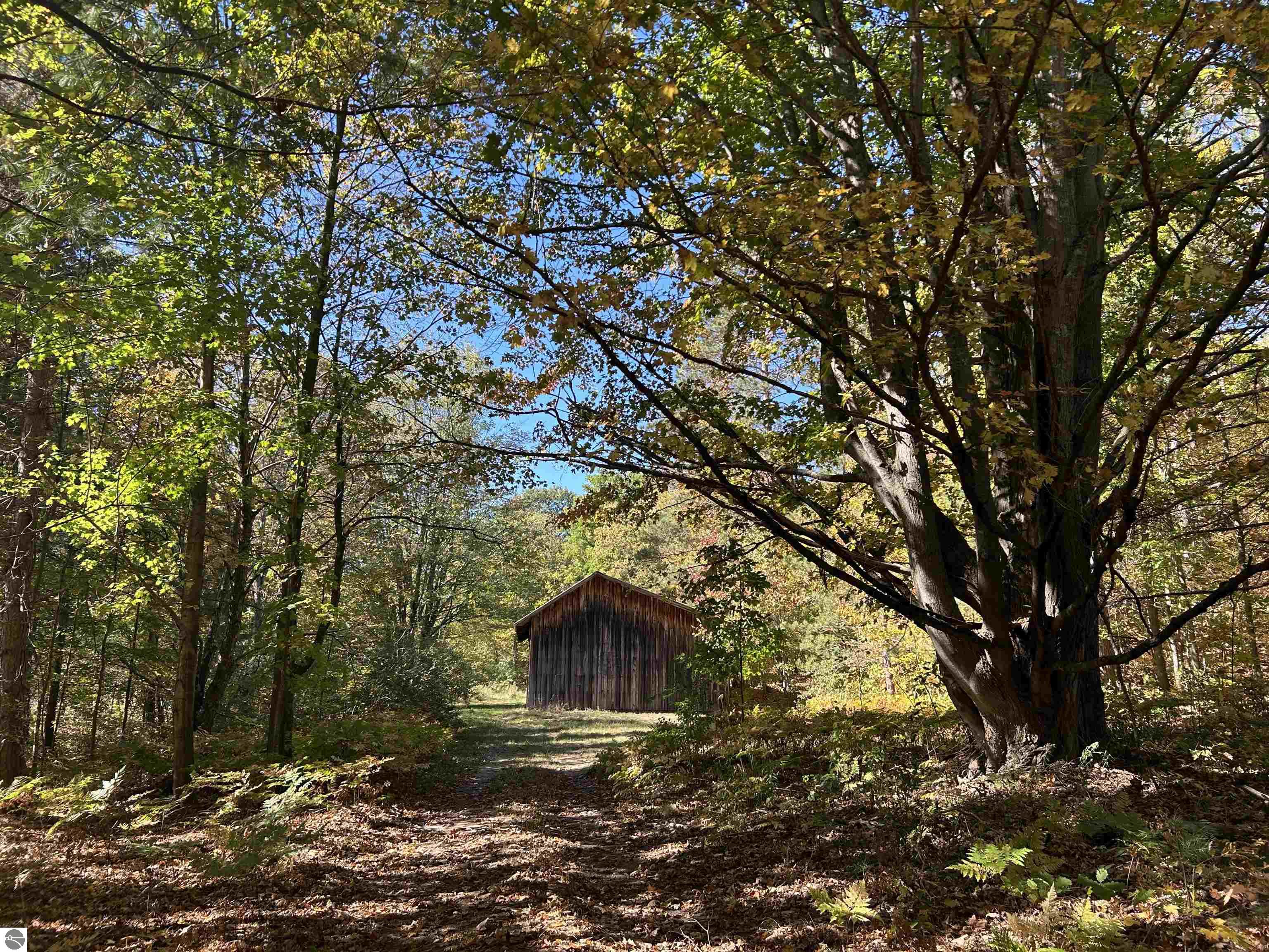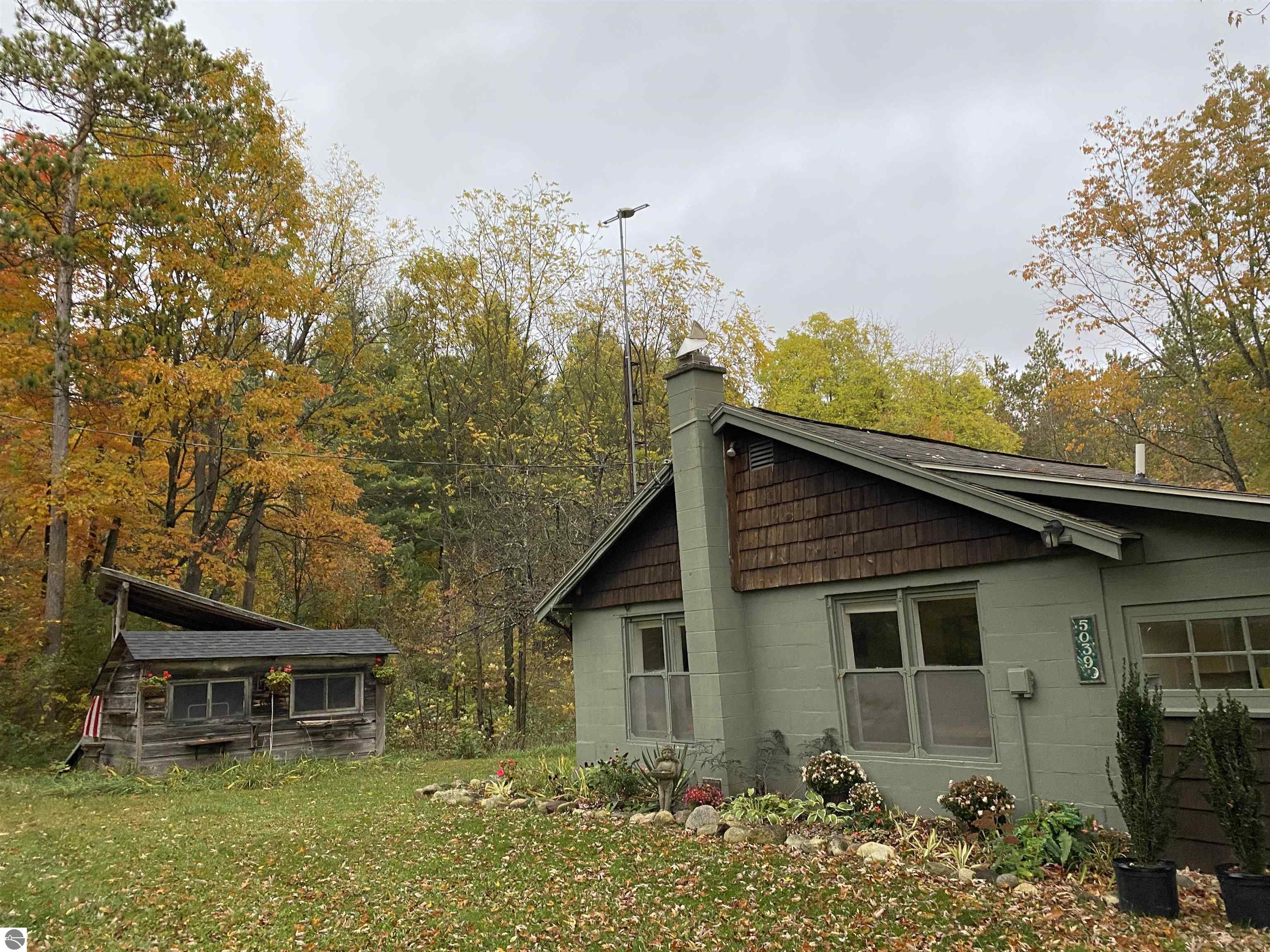 Welcome to your own private slice of Northern Michigan paradise! This beautifully updated 1-bedroom, 1-bath home is nestled on over 8 serene acres, ideal for anyone who loves the outdoors, dreams of homesteading, or simply wants room to breathe. Step inside to discover stylish updates throughout, including engineered maple floors, granite countertops, brand-new cabinetry, modern light fixtures, and updated appliances. The bathroom features a stunning tile and stone shower, offering a spa-like touch. Outside, the property truly shines. The large barn provides endless possibilities, great for a maker's space, woodworking, art, gardening, tinkering, or storing your outdoor equipment. A garden shed with electricity sits nearby the house, ready to be your potting station or cozy crafting retreat. The smaller outbuilding, previously used as an office, could easily serve as storage, a chicken coop, or even a creative studio. The open lean-to has possibilities also. Root Cellar...Yes Please! Spend peaceful mornings watching the sunrise over the barn, or quiet evenings relaxing under the covered porch, surrounded by the sounds of nature. In the winter months, enjoy cross-country skiing, snowshoeing, or snowmobiling, right on your own property or nearby trails. Enjoy the peaceful setting with views of the river's edge from the parcel, just south of Hooker Road. Whether you’re seeking a weekend getaway or a full-time homestead, this property offers the perfect balance of modern comfort and country charm. This property boasts a rustic setting, yet offers modern amenities for year-round living. This home is located just minutes away from the well-known Cherry Bowl Drive-In, approximately 15 minutes from the Sleeping Bear National Lakeshore, 5 minutes to the public access on Little Platte Lake and the Medenbrook Nature Preserve, 30+ minutes from Traverse City, 20 minutes from Frankfort, and more.