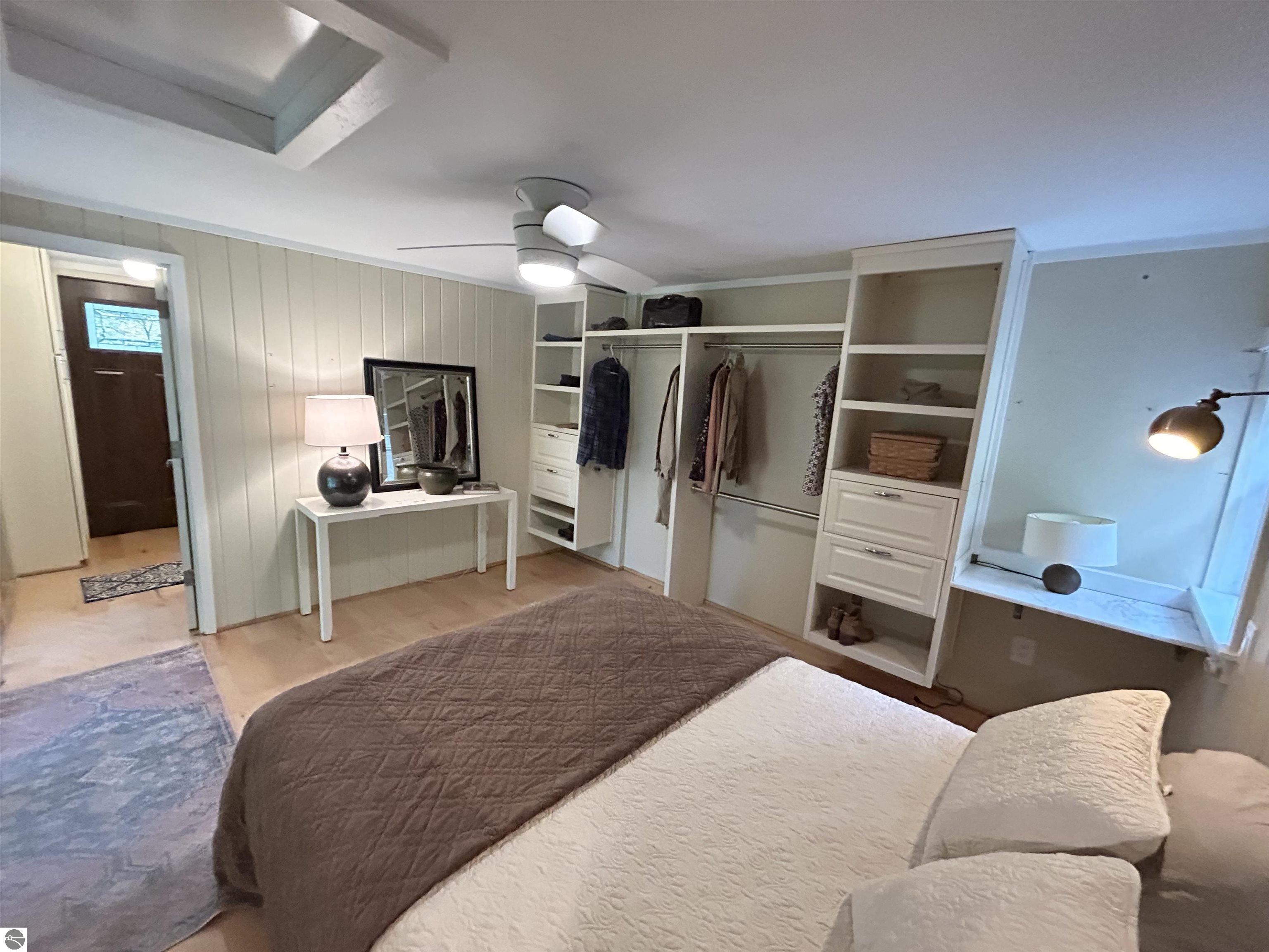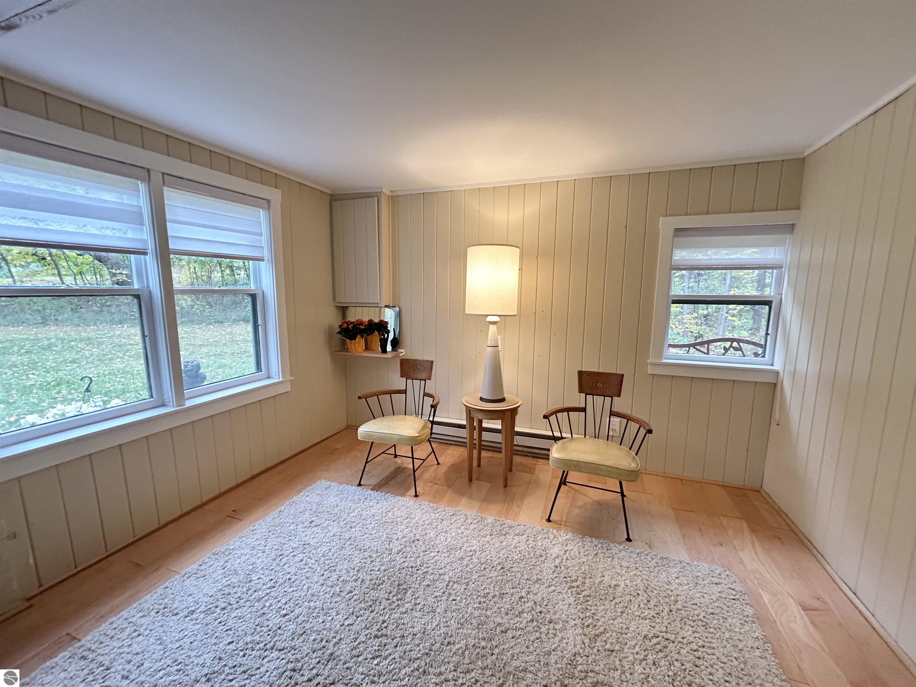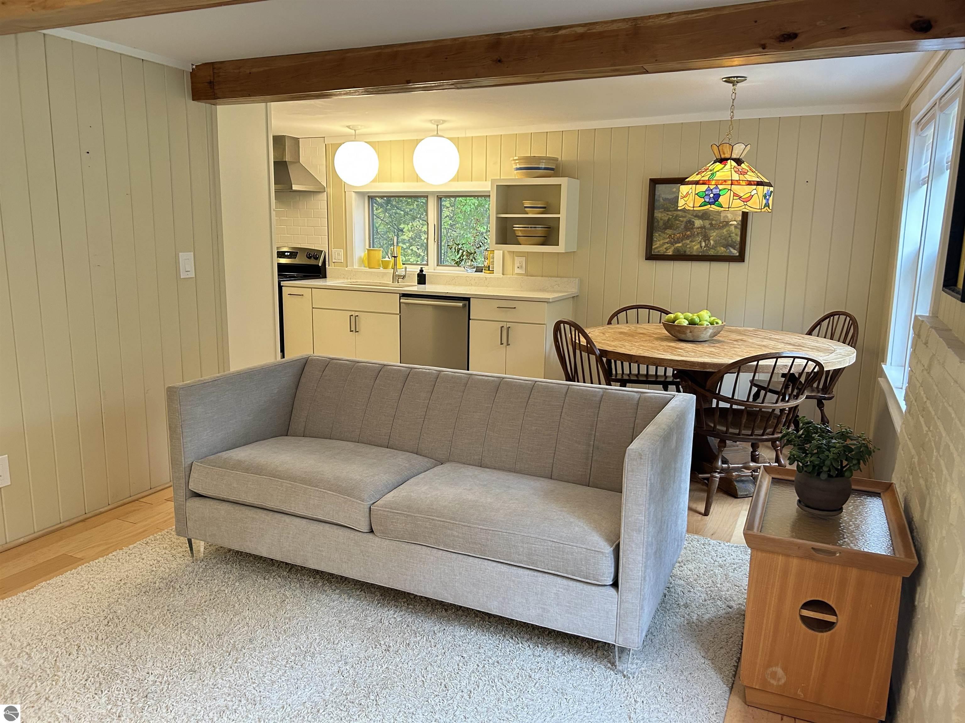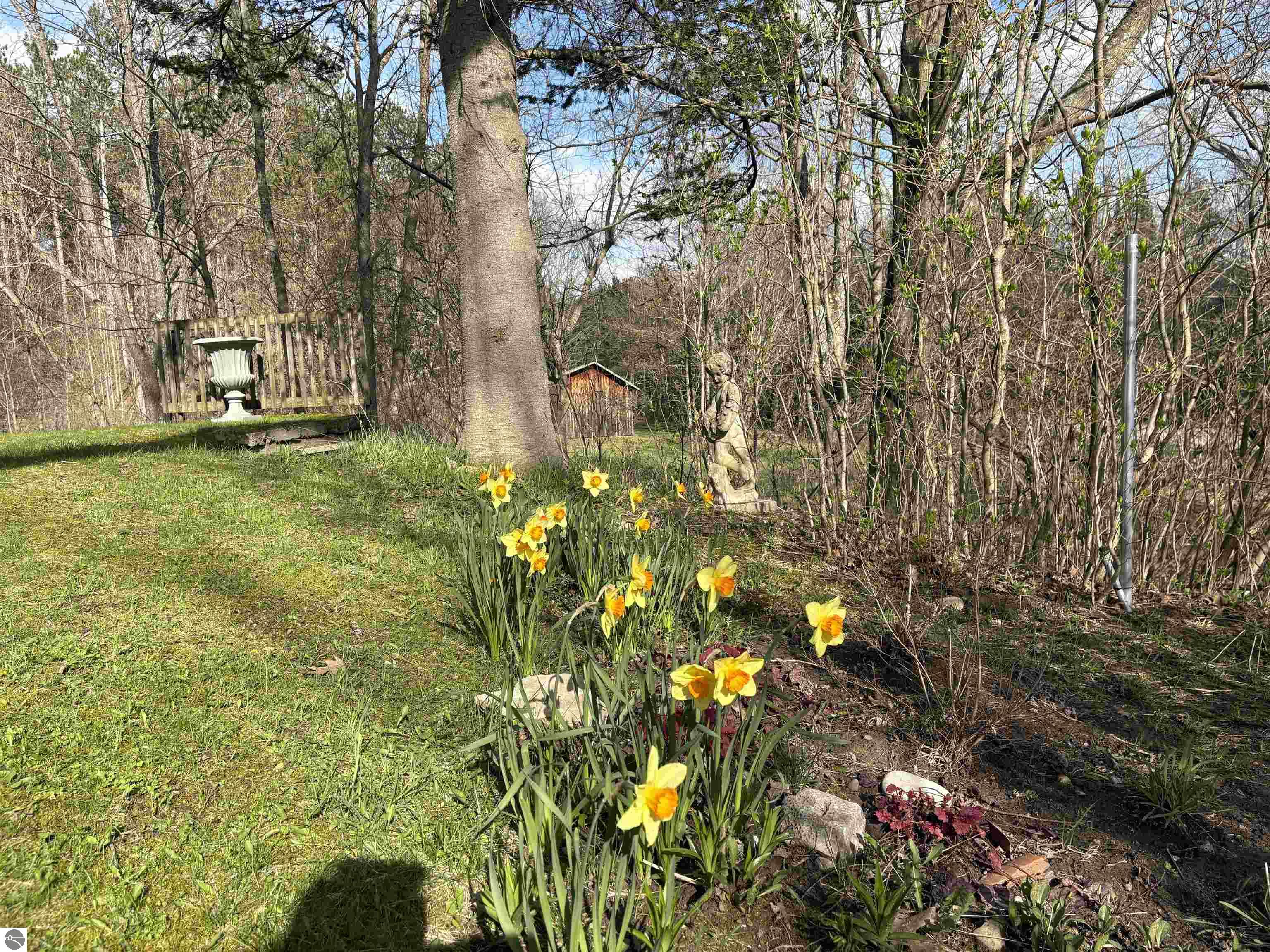 Welcome to your own private slice of Northern Michigan paradise! This beautifully updated 1-bedroom, 1-bath home is nestled on over 8 serene acres, ideal for anyone who loves the outdoors, dreams of homesteading, or simply wants room to breathe. Step inside to discover stylish updates throughout, including engineered maple floors, granite countertops, brand-new cabinetry, modern light fixtures, and updated appliances. The bathroom features a stunning tile and stone shower, offering a spa-like touch. Outside, the property truly shines. The large barn provides endless possibilities, great for a maker's space, woodworking, art, gardening, tinkering, or storing your outdoor equipment. A garden shed with electricity sits nearby the house, ready to be your potting station or cozy crafting retreat. The smaller outbuilding, previously used as an office, could easily serve as storage, a chicken coop, or even a creative studio. The open lean-to has possibilities also. Root Cellar...Yes Please! Spend peaceful mornings watching the sunrise over the barn, or quiet evenings relaxing under the covered porch, surrounded by the sounds of nature. In the winter months, enjoy cross-country skiing, snowshoeing, or snowmobiling, right on your own property or nearby trails. Enjoy the peaceful setting with views of the river's edge from the parcel, just south of Hooker Road. Whether you’re seeking a weekend getaway or a full-time homestead, this property offers the perfect balance of modern comfort and country charm. This property boasts a rustic setting, yet offers modern amenities for year-round living. This home is located just minutes away from the well-known Cherry Bowl Drive-In, approximately 15 minutes from the Sleeping Bear National Lakeshore, 5 minutes to the public access on Little Platte Lake and the Medenbrook Nature Preserve, 30+ minutes from Traverse City, 20 minutes from Frankfort, and more.
