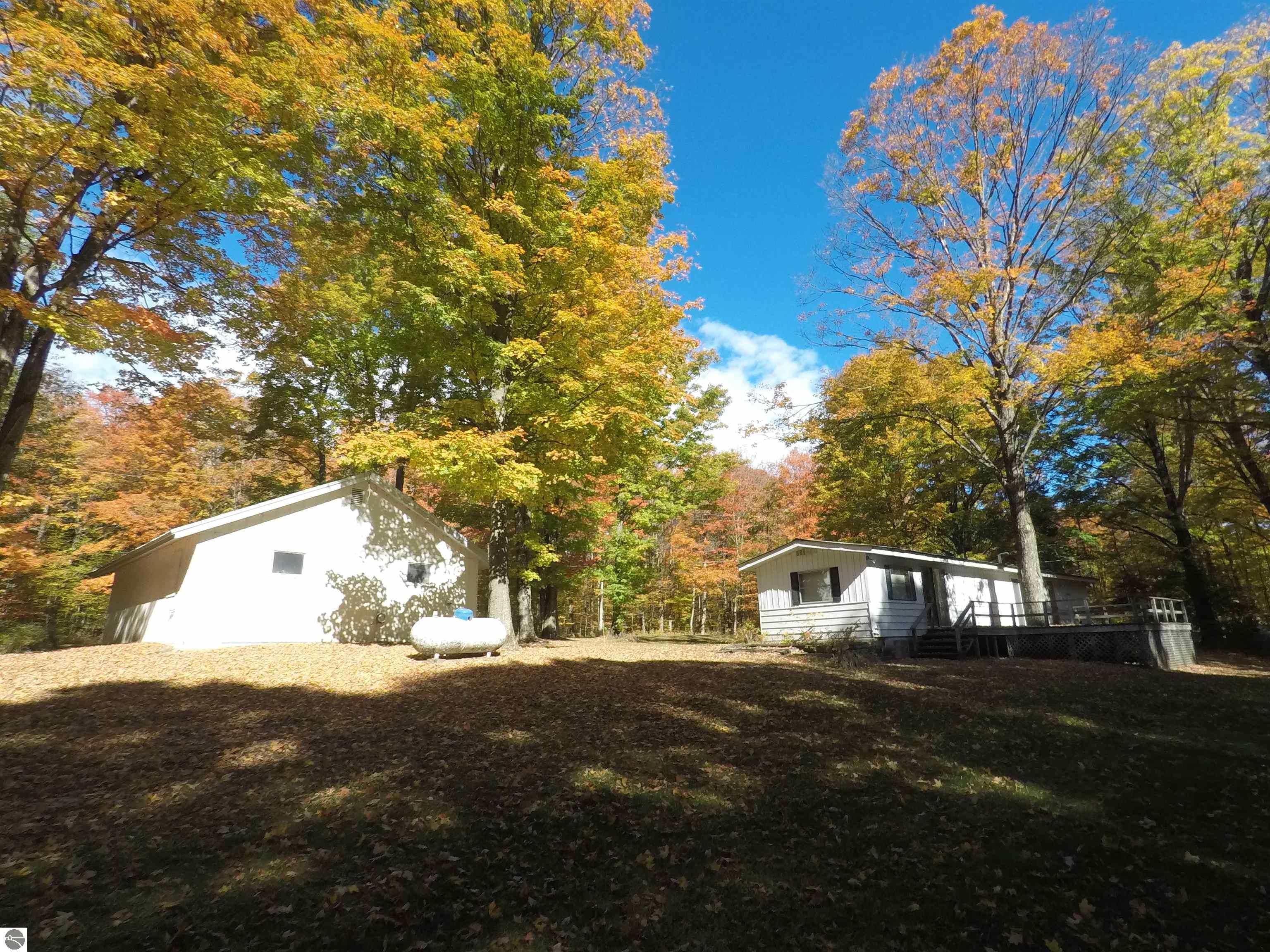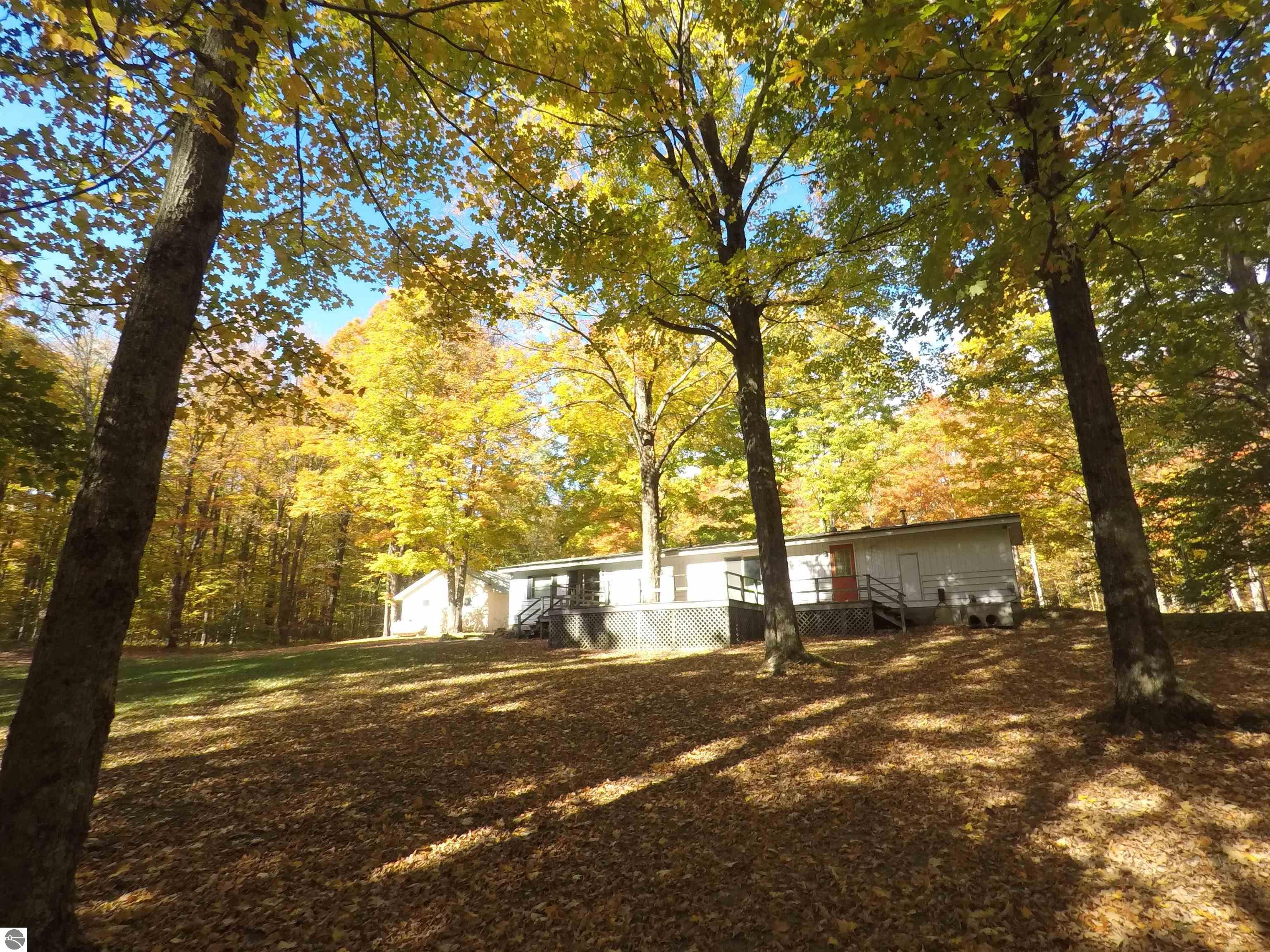 Escape to the beautiful Harrietta Hills in northern Michigan! This charming 2-bedroom, 1-bath 1976 mobile home sits on 2.75 wooded acres surrounded by hardwoods with the Manistee National Forest right across the road. Enjoy the peace and privacy in this serene setting with abundant wildlife and rolling hills. The home (980 sf) and the insulated 2-car garage (25x31) are both in good condition with metal roofs. Nice large deck overlooking the property to the south (200x600) and the garage has a heated workshop (10x25). Seller has lived here for 30 years and was able to finance the home back in 2006. The home sits on a block foundation and the title has been retired.