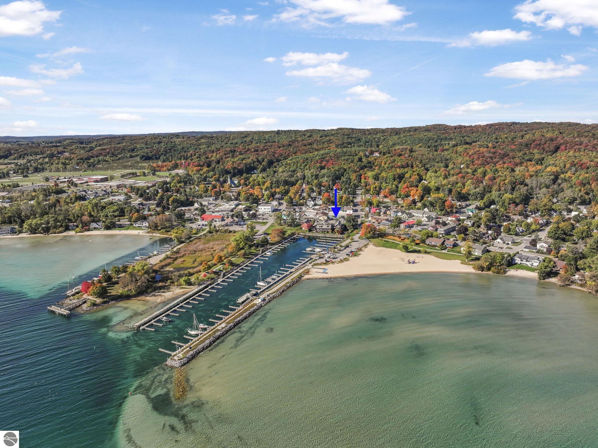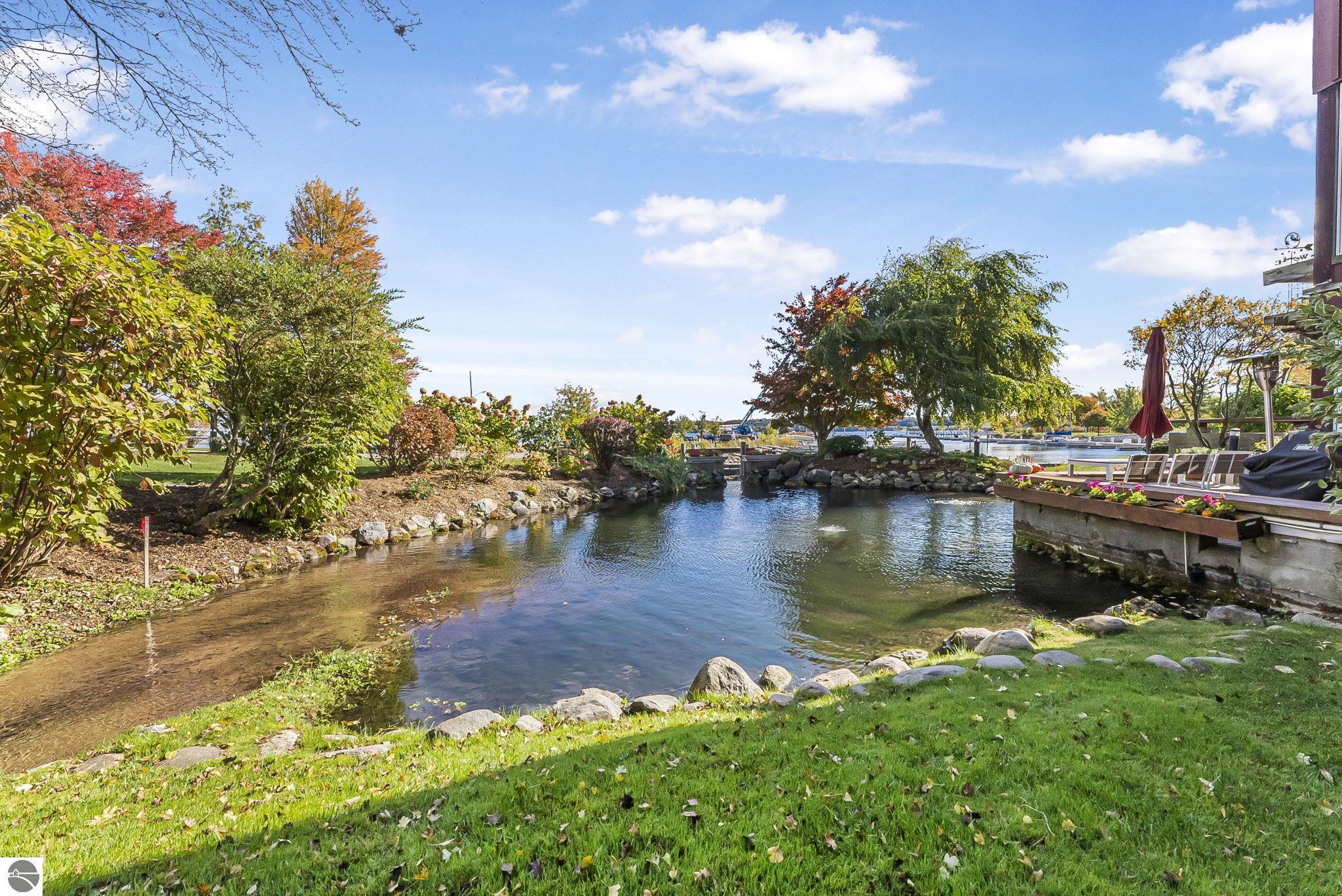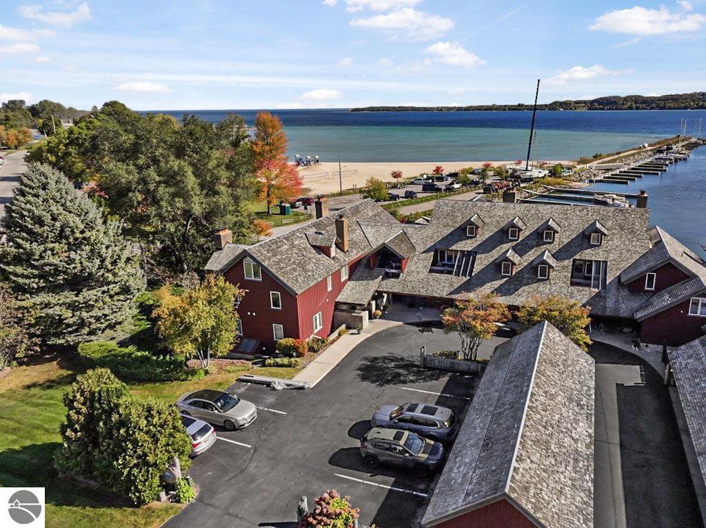 Experience downtown & waterfront living in Suttons Bay premium Barkentine Condo overlooking the marina and beach park. This unique building offers timeless architectural design with an abundance of light and warmth. This specific 995sqft unit offers water & beach views with 2 bedrooms and 2 baths. Enjoy the fireplace and the gorgeous sunrises from your private covered deck. Listen to the spring fed waterfall and feed the brook trout in the pond which was the original mill pond throughout Suttons Bays rich history. Easy Living & Prime Location The $435 per month HOA dues make living easy, covering heat, water, internet, basic cable, exterior maintenance, snow removal and more. A carport and separate storage unit are included. Located right behind The Bay Theater, you will be immersed in village life! Shops, restaurants, and the Leelanau Trail are at your back door. Be in the center of it all with your own private, comfortable beachfront space. HOA permits short term rentals and it has previously been on Airbnb/vrbo. Transient boat slips are available all summer long. The current owner had a view of their boat from the condo. Motivated Sellers, must see this one!