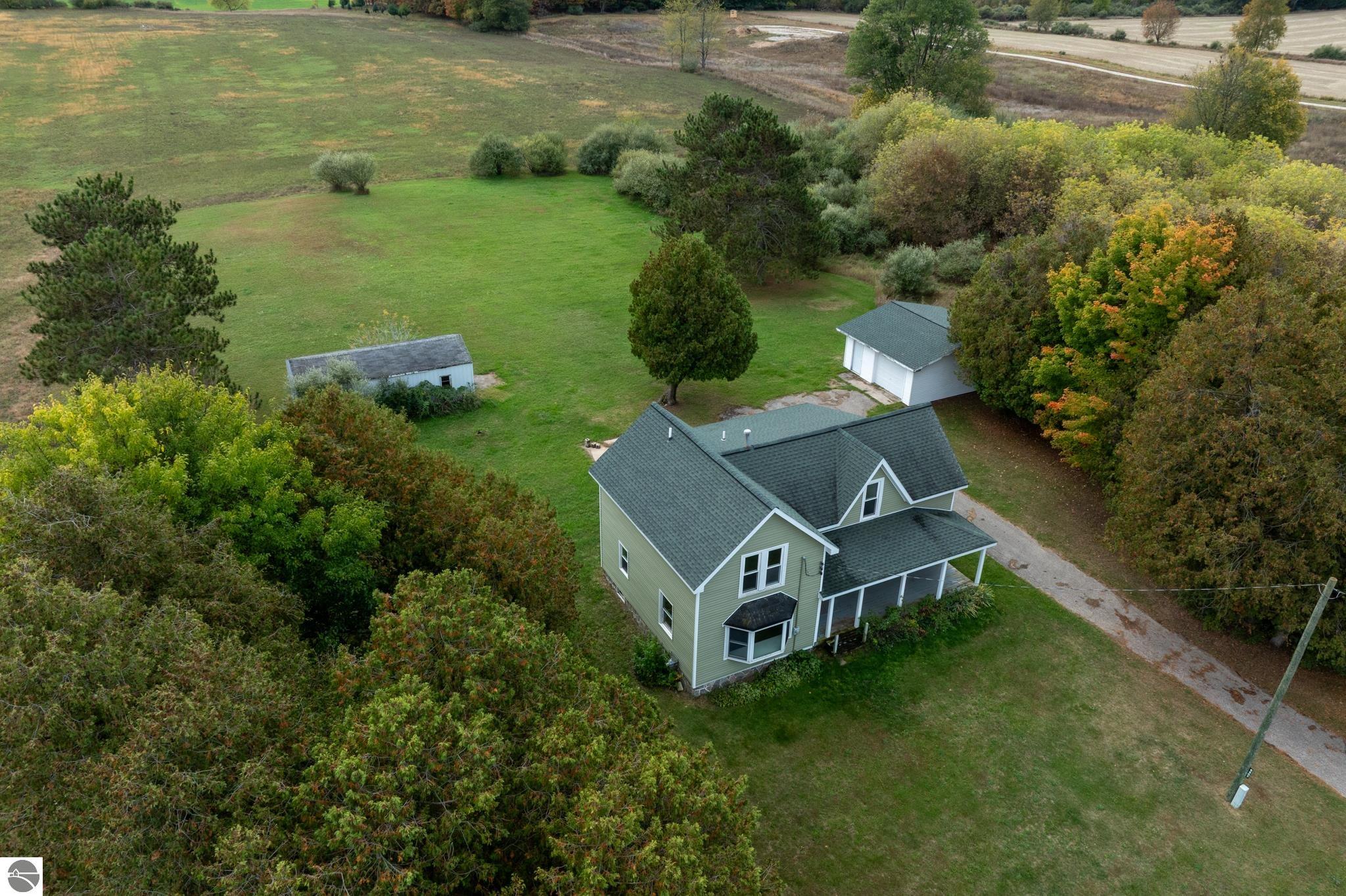 The renovation of this home has been a labor of love for the last 10 years. Step inside from the charming covered front porch and you will see a beautiful wood staircase and an open concept kitchen/dining experience. This is a brand-new kitchen featuring new stainless-steel kitchen appliances, above cabinet accent lighting, custom cabinets and solid surface counters! Main floor also features a large family room, first floor bedroom and full bath plus an open area between the family room and dining room. Second story features a large bedroom with private full bathroom and spacious walk-in closet, a third bedroom and a loft area that offers a nice flex space. Enjoy the peaceful view of your partially wooded 2.5 acres. Plenty of storage with a detached one and a half car garage plus an outbuilding. Roof was new in 2020. It's only about 10 miles outside of the center of Mt. Pleasant and easy access to M-20.