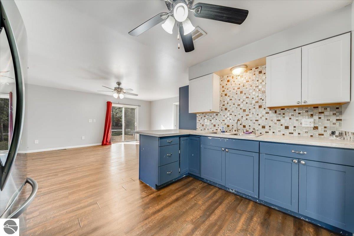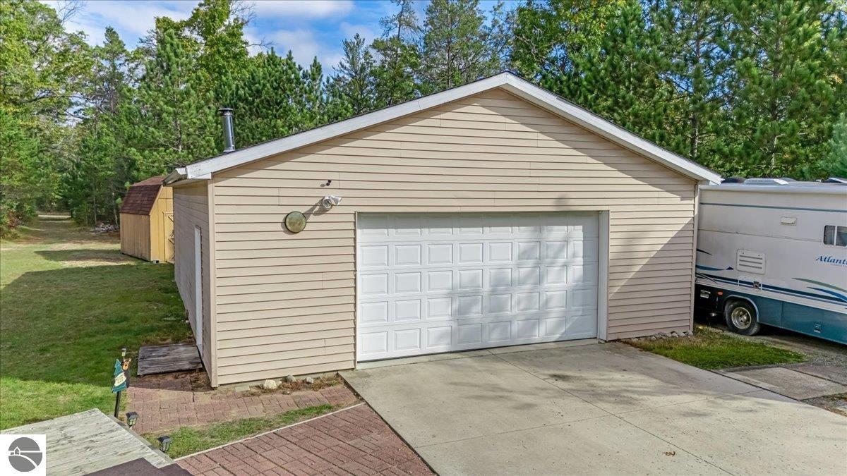 All one level living! Great starter home, retirement home or up north cabin. Basically a newer home. This home has been completely remodeled inside and out over the past few years, all the way down to the studs. This 3bedroom and 1.5 bath home sits on over one acre of land located very close to the Huron National Forest and all of the trail systems. the 30x40 garage. This house is only a few minutes from just about any activity you are looking for. Living room photo virtually staged.
