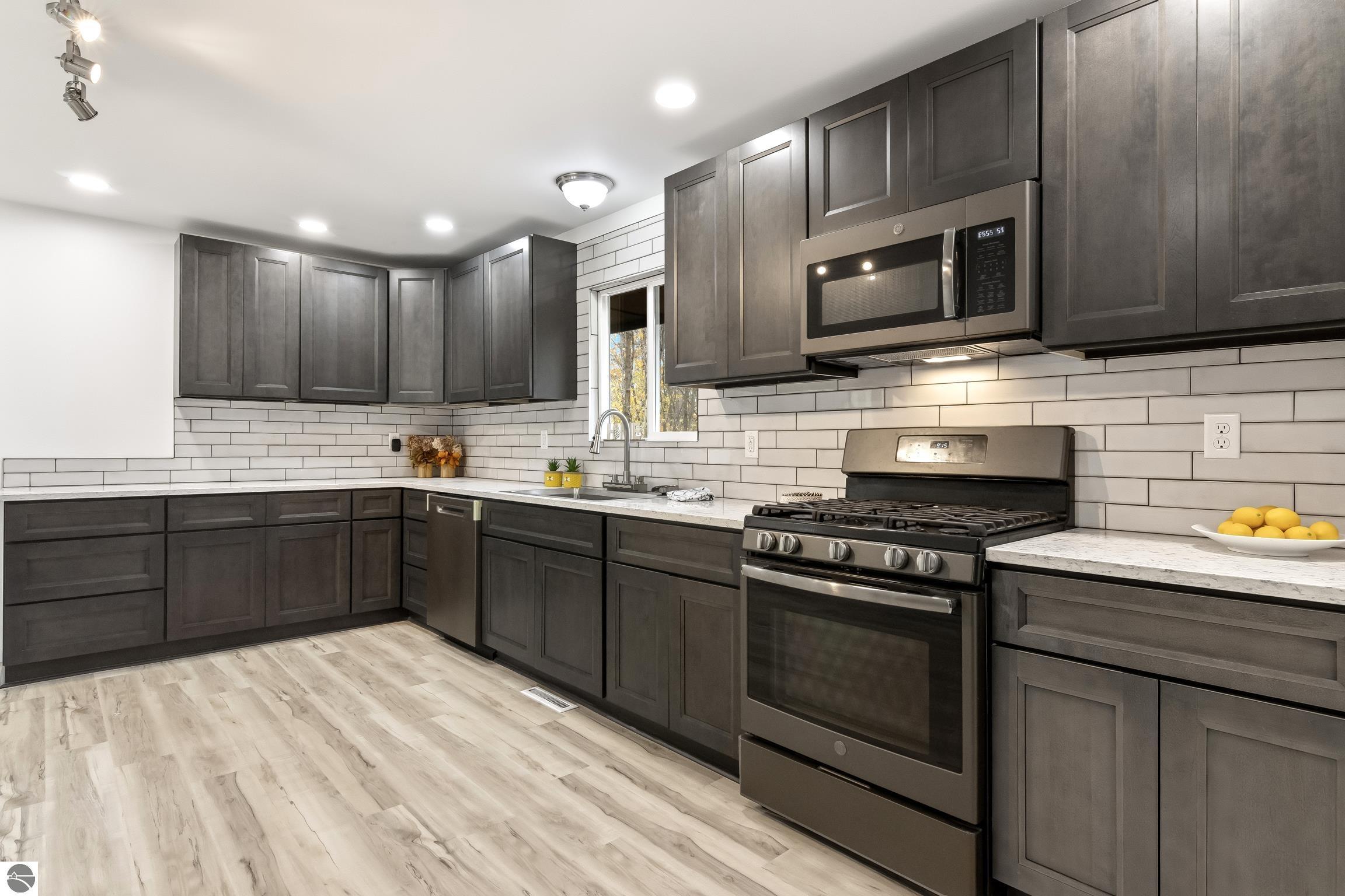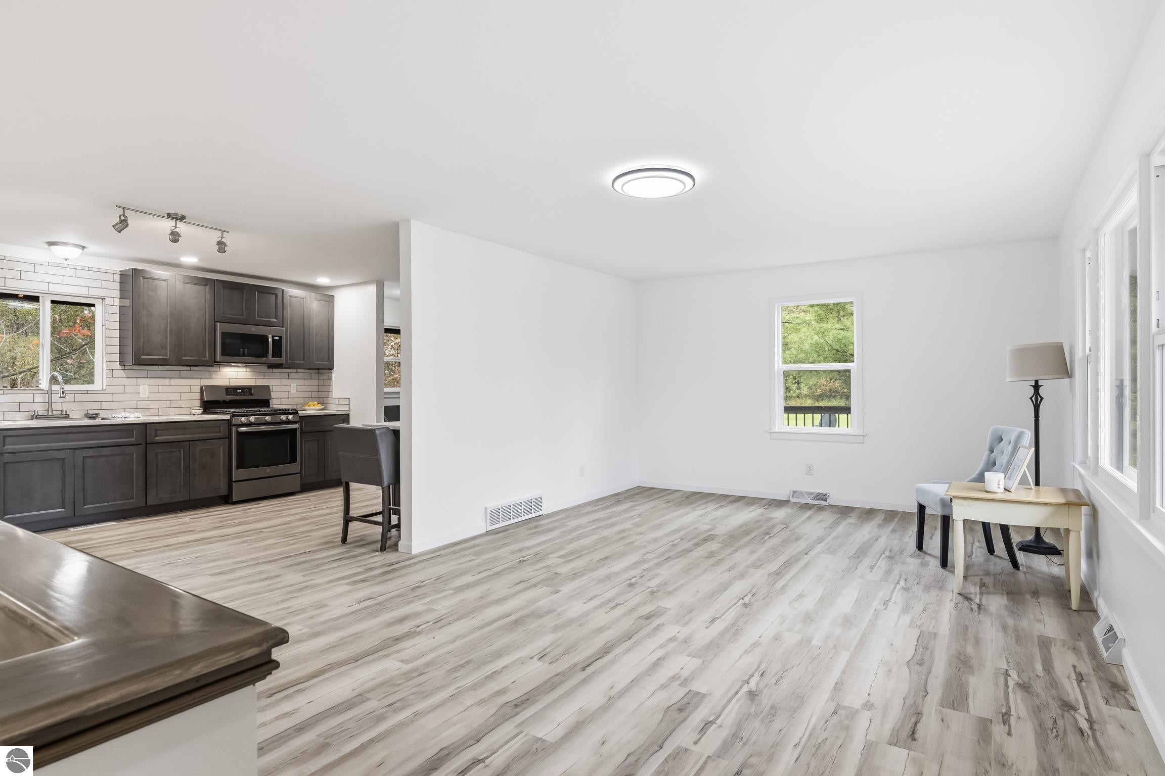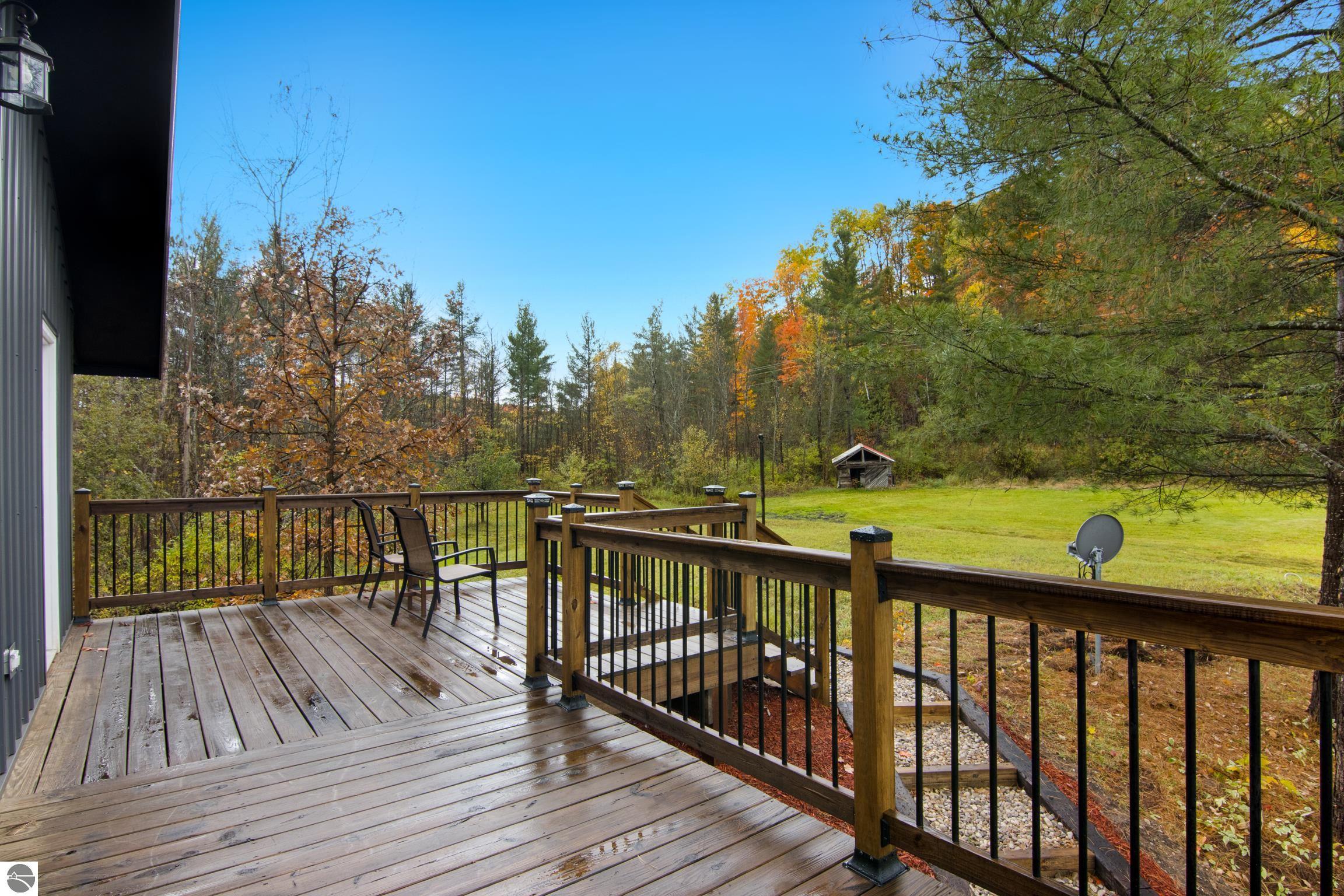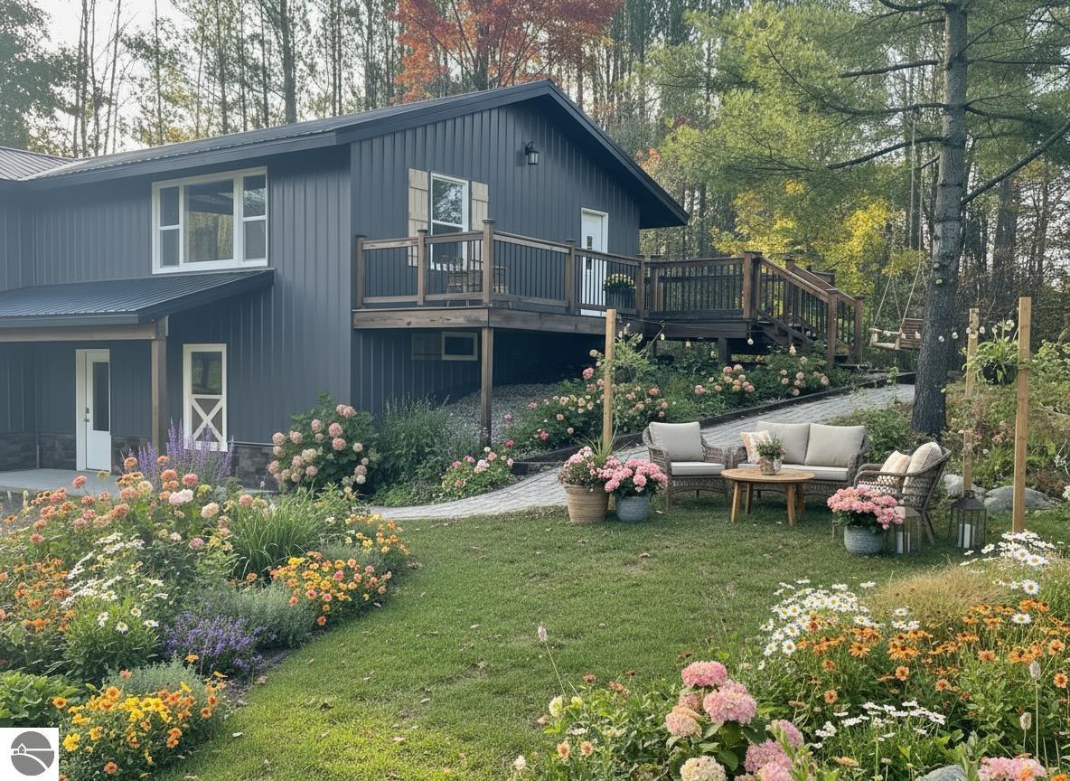 Wow! New, New, New! This contemporary and spacious two story, raised ranch features 4 bedrooms, 3 bathrooms, high speed internet and is situated on 3 acres just 4 miles south of East Jordan and the South Arm of Lake Charlevoix! This may just be the property you have been waiting for. The home is virtually a new build. The original footprint was used, however, it features completely remodeled spaces: 1. New metal roof and siding provide a contemporary look and ease of maintenance; 2. New luxury vinyl plank flooring enhances the living room, stairways and hallways, creating a modern and cohesive look; 3. Three bedrooms and two beautifully tiled baths are located on the main, walk-up level; and 4. The new kitchen includes granite countertops and GE Stainless Steel Appliances with Slate Matte finish that hides fingerprints for easy care. Ample storage is thoughtfully integrated throughout the home with numerous closets and storage areas. The finished basement adds approximately 1,400 square feet of versatile living space, ideal for entertaining or family gatherings. It includes a spacious family room, a fourth (non-conforming) primary bedroom, a tiled bathroom, storage room and new mechanicals. Outdoor living is enhanced by a back deck perfect for dining al fresco. A completely restored, two story outbuilding provides additional storage and functionality. The property has fruit trees, a generous yard, established plantings, and a creek. Located near Snowmobile and Hiking Trails, Webster Bridge and Rogers Bridge End (Jordan River Accesses for kayaking and fishing), Raven Hill Discovery Center, Cosner Preserve, East Jordan, Boyne City, and more. This property combines comfort, space, and outdoors enjoyment in a peaceful Northern Michigan country setting. All information and measurements are deemed reliable, however; should all be verified by the buyer and/or buyer agent.