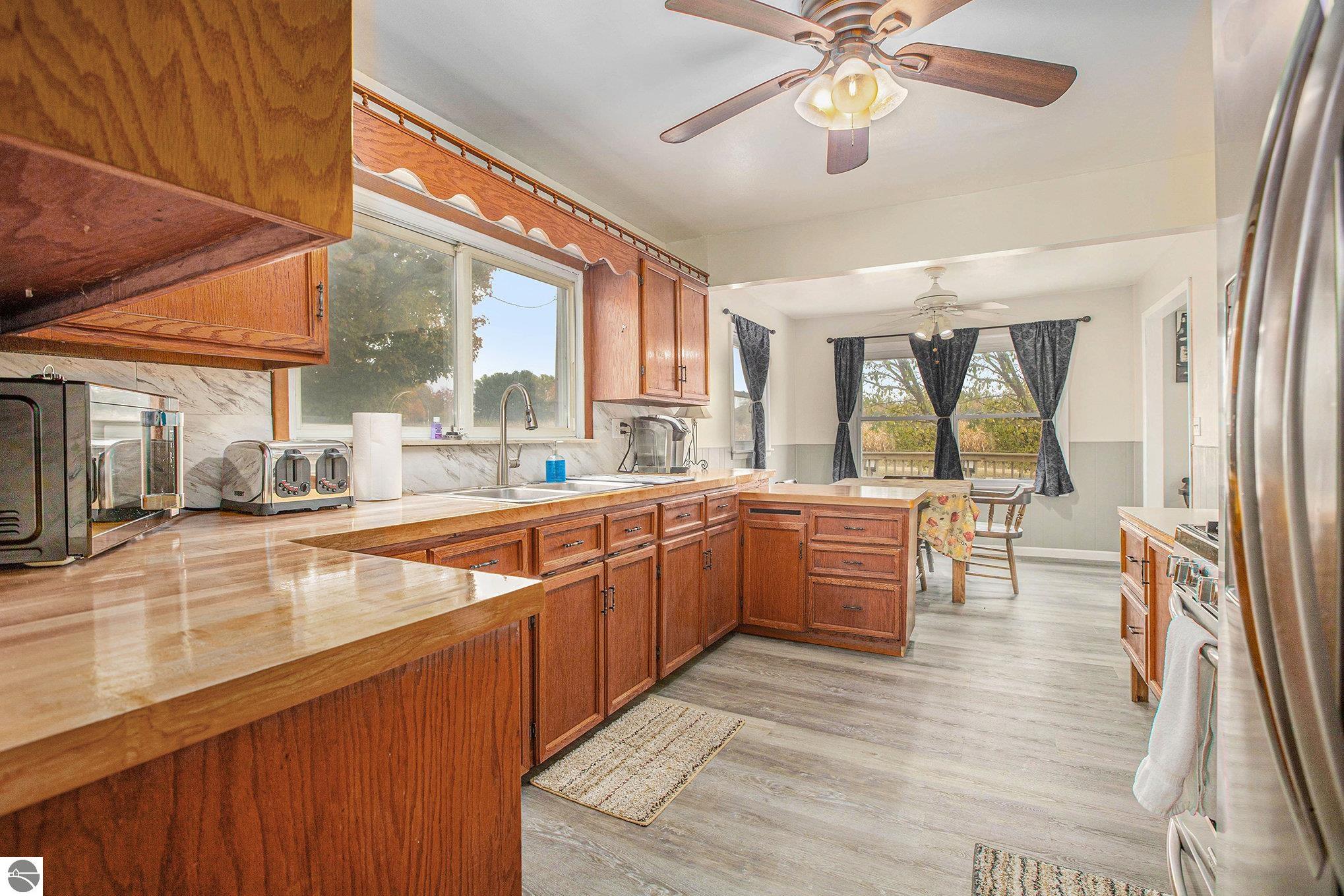 Modern Country Living on 22 Acres with Extra Garage & Workshop! Experience peaceful living in this beautifully maintained ranch home on 22 acres in Harrietta. Updated over the years, this property blends classic craftsmanship with modern comfort and functionality. The home features an inviting open layout with a spacious kitchen, dining, and living area designed for everyday living and entertaining. A four-season porch with heat adds a cozy spot to enjoy the views year-round. The full basement offers plenty of space for recreation, hobbies, or storage—including a pool table that stays with the home. Convenience meets practicality with the main-floor laundry located off the breezeway. Outside, you’ll find exceptional workspace and storage options: 24x40 attached three-stall garage and a 32x24 pole building with overhead door and workshop area, plus a free standing chicken coop. Set in a quiet location surrounded by natural beauty, this property is close to outdoor recreation areas, state and federal land, trails, and excellent fishing spots—perfect for anyone who enjoys the northern Michigan lifestyle.