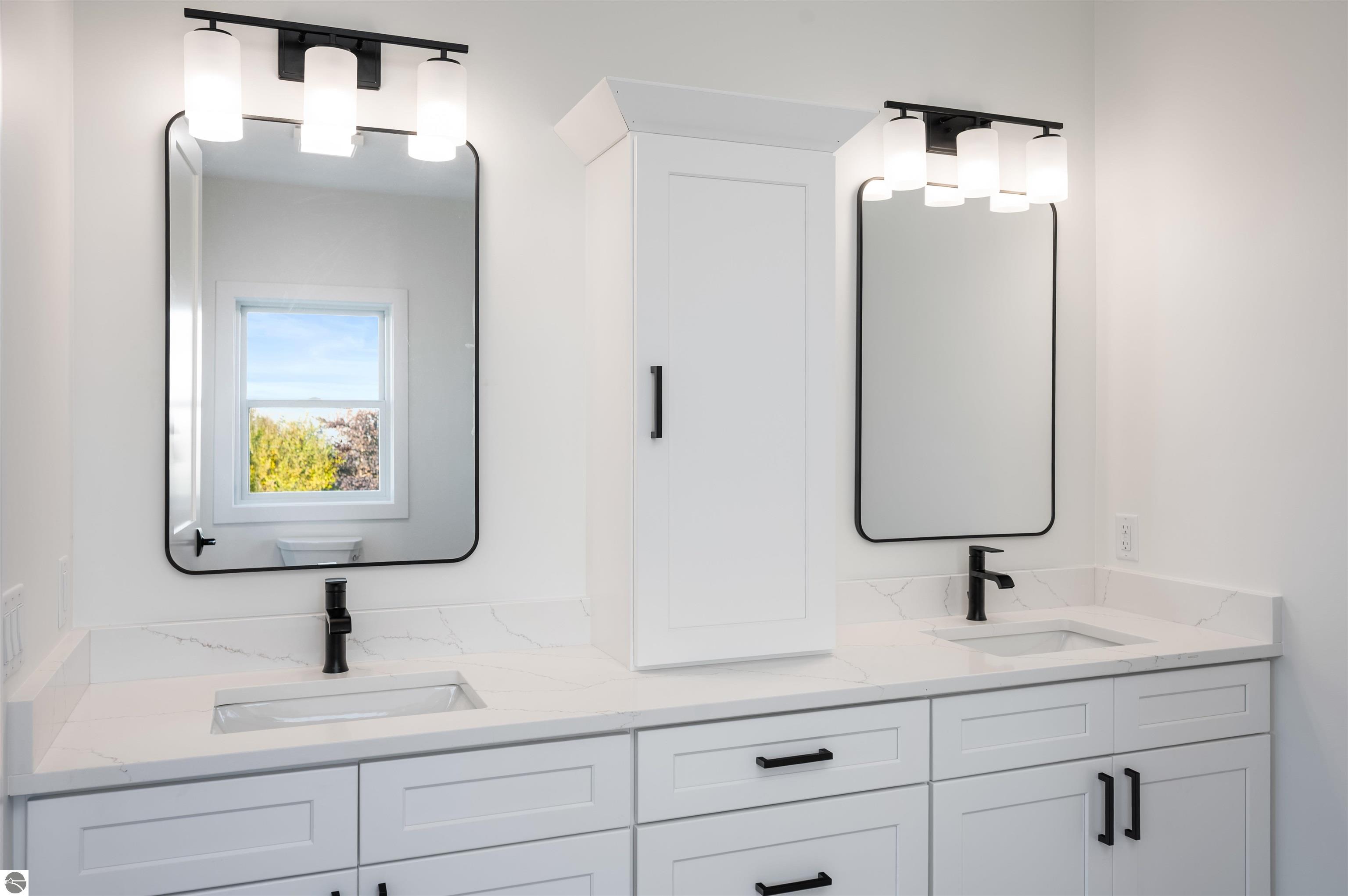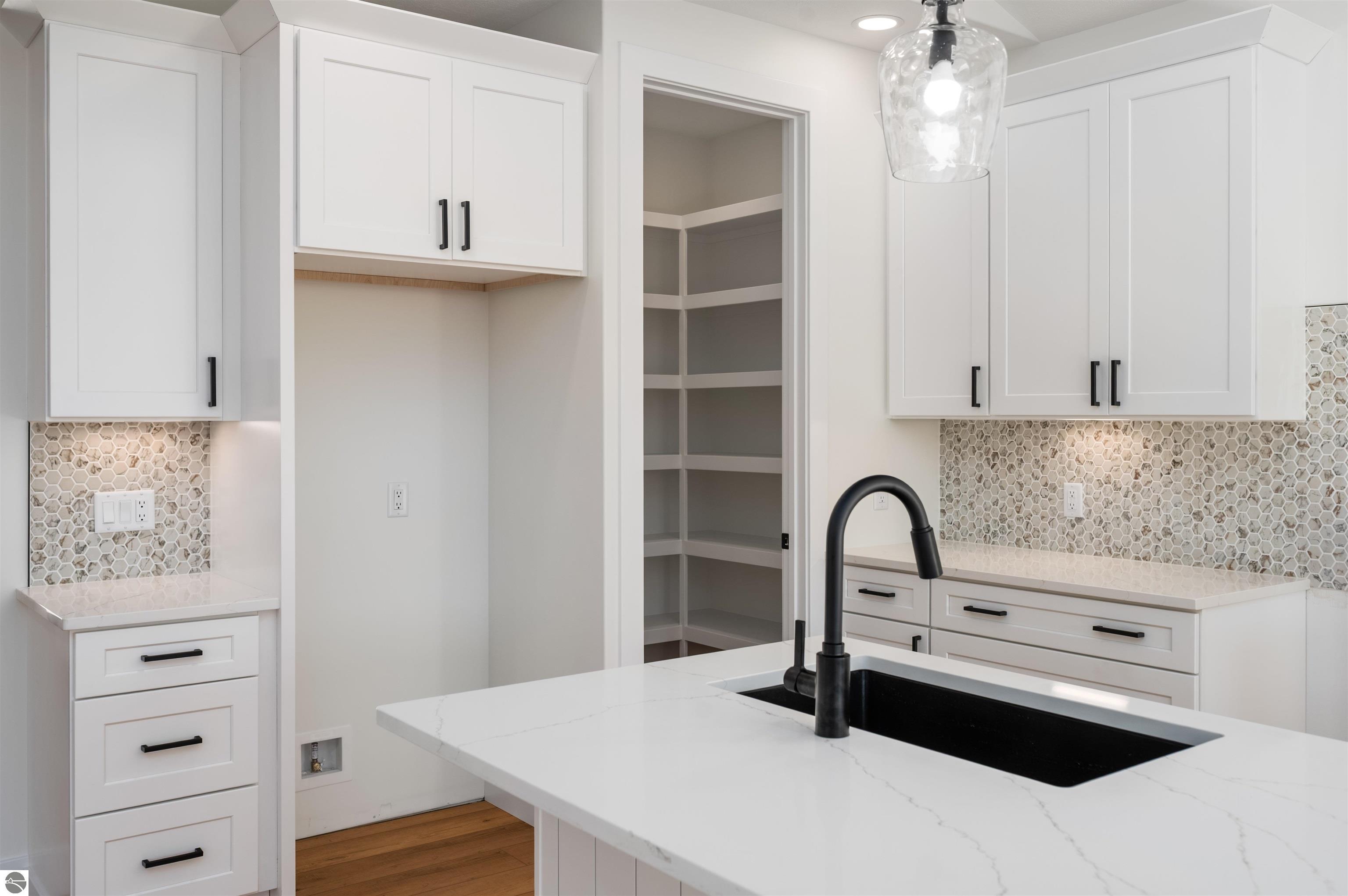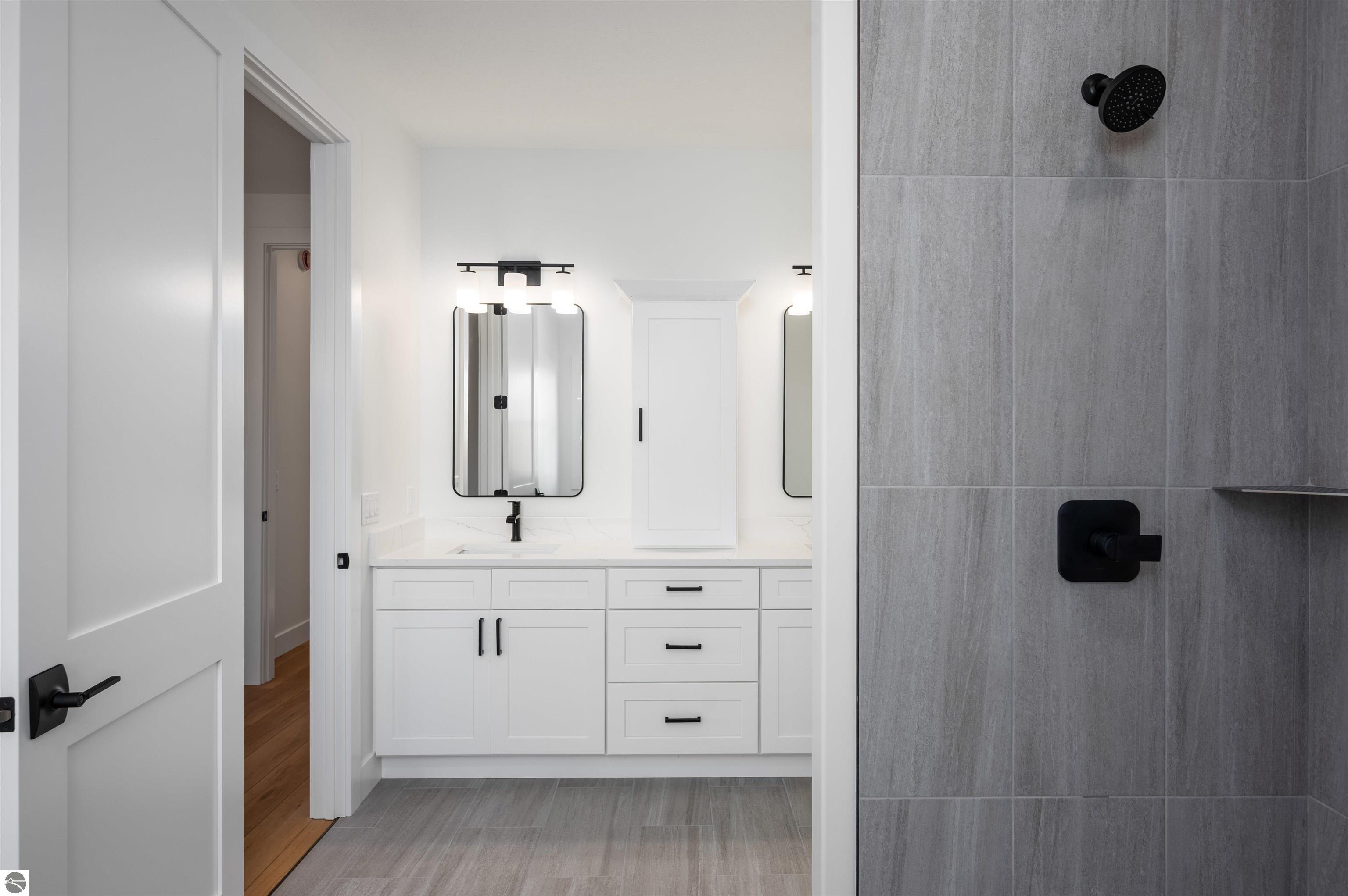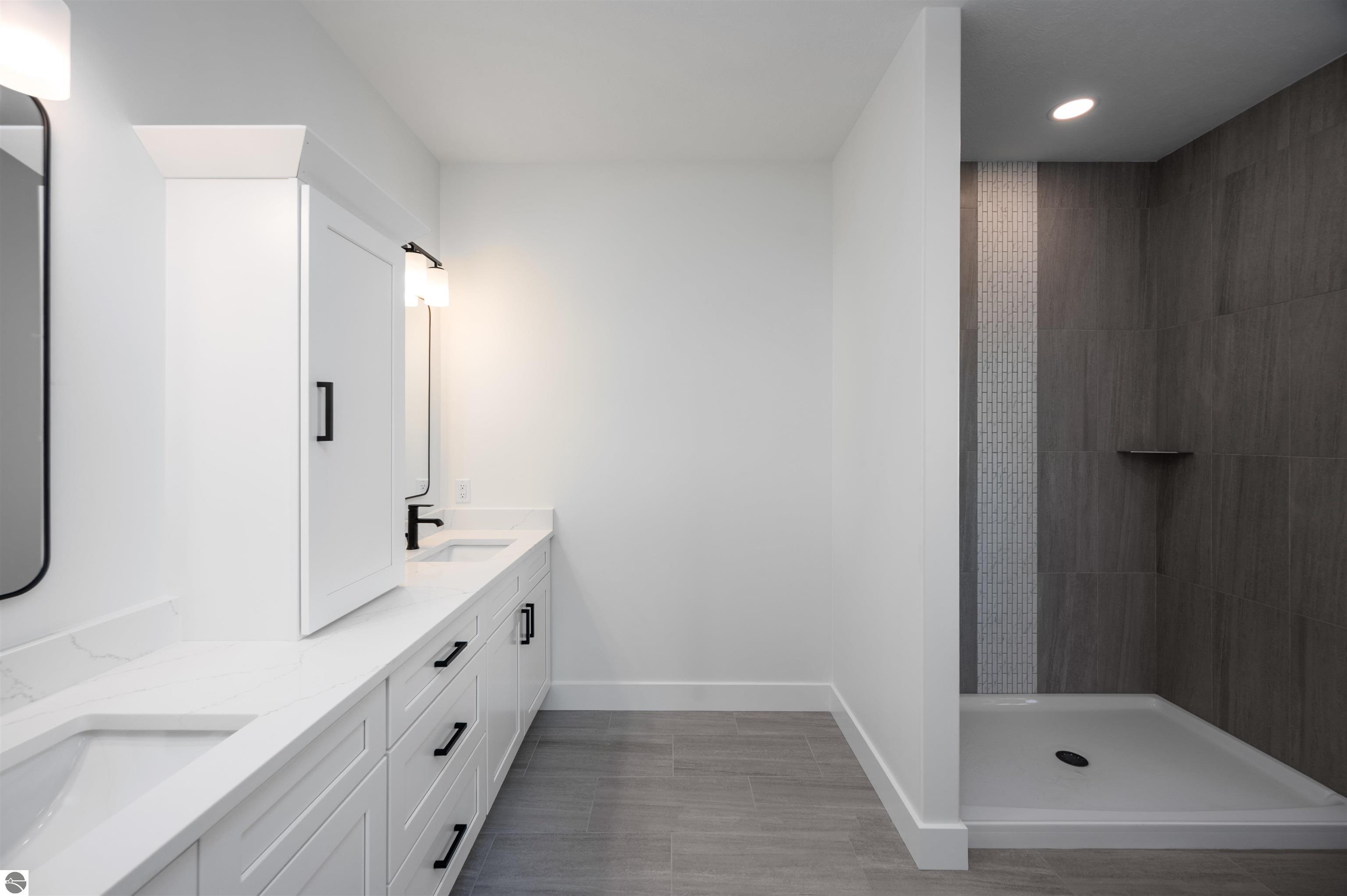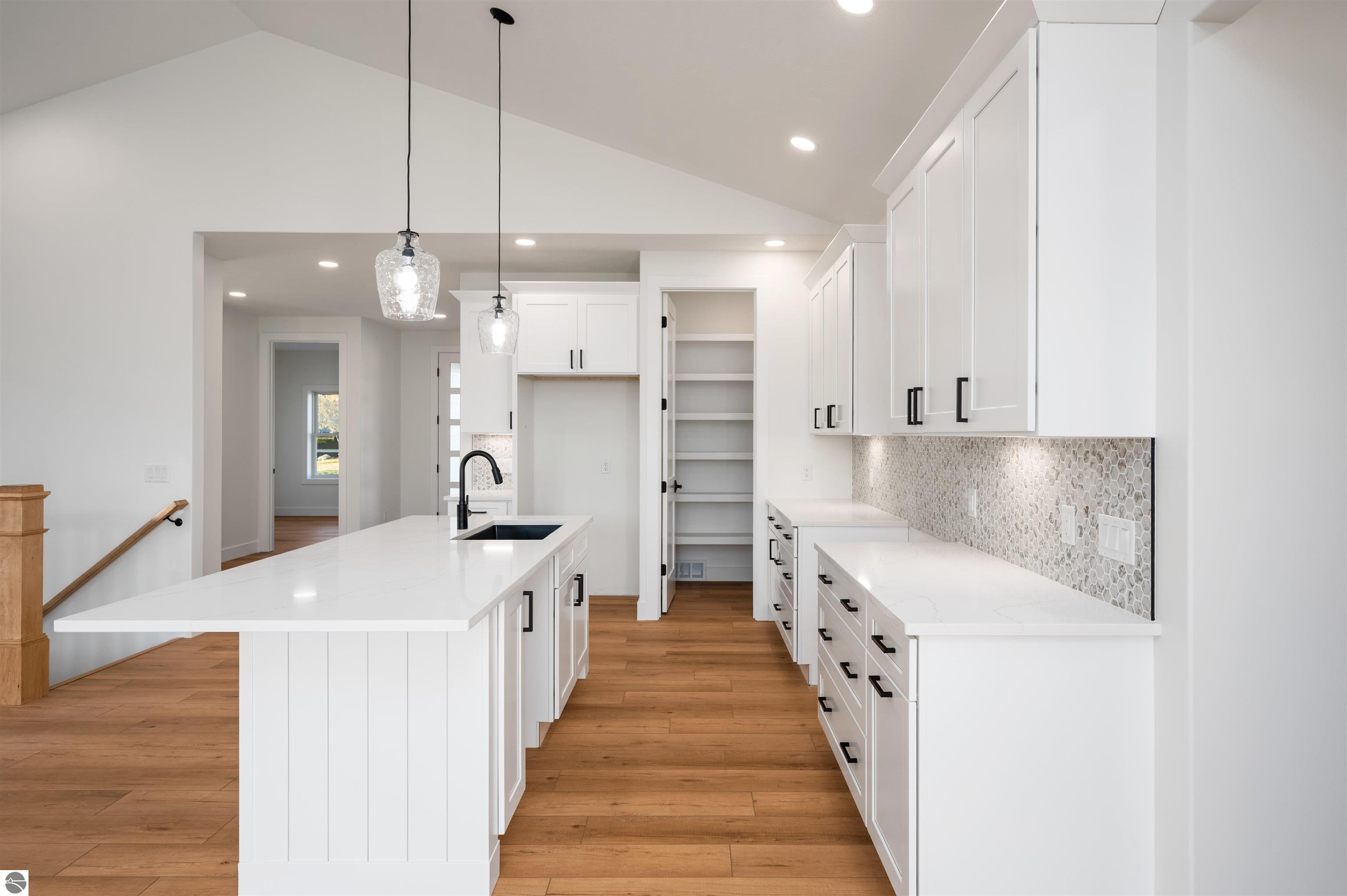 Introducing a brand new modern luxury home on the vibrant west side of Traverse City! The builder just completed this stunning 5-bedroom, 3-bathroom home, complete with a finished 3-car garage. Meticulous attention has been paid to every detail, and the curb appeal is impressive. The home features quartz counters, luxury vinyl plank floors, a shiplap fireplace and island, built-in bookcases, 8-foot doors, LP Smartside trim and siding, central air, a covered concrete front porch, and a maintenance-free composite wood deck. The main floor includes a primary ensuite with tiled floors and a tiled floor-to-ceiling shower, as well as two additional bedrooms and bath. The finished walkout lower level showcases two additional bedrooms, a spacious family room, and a full bath. Municipal water and sewer. Residents can enjoy the walking trails within the Lone Tree community, which even connect to TC West High School. You'll love this close-to-everything location that's just a few miles from downtown!
