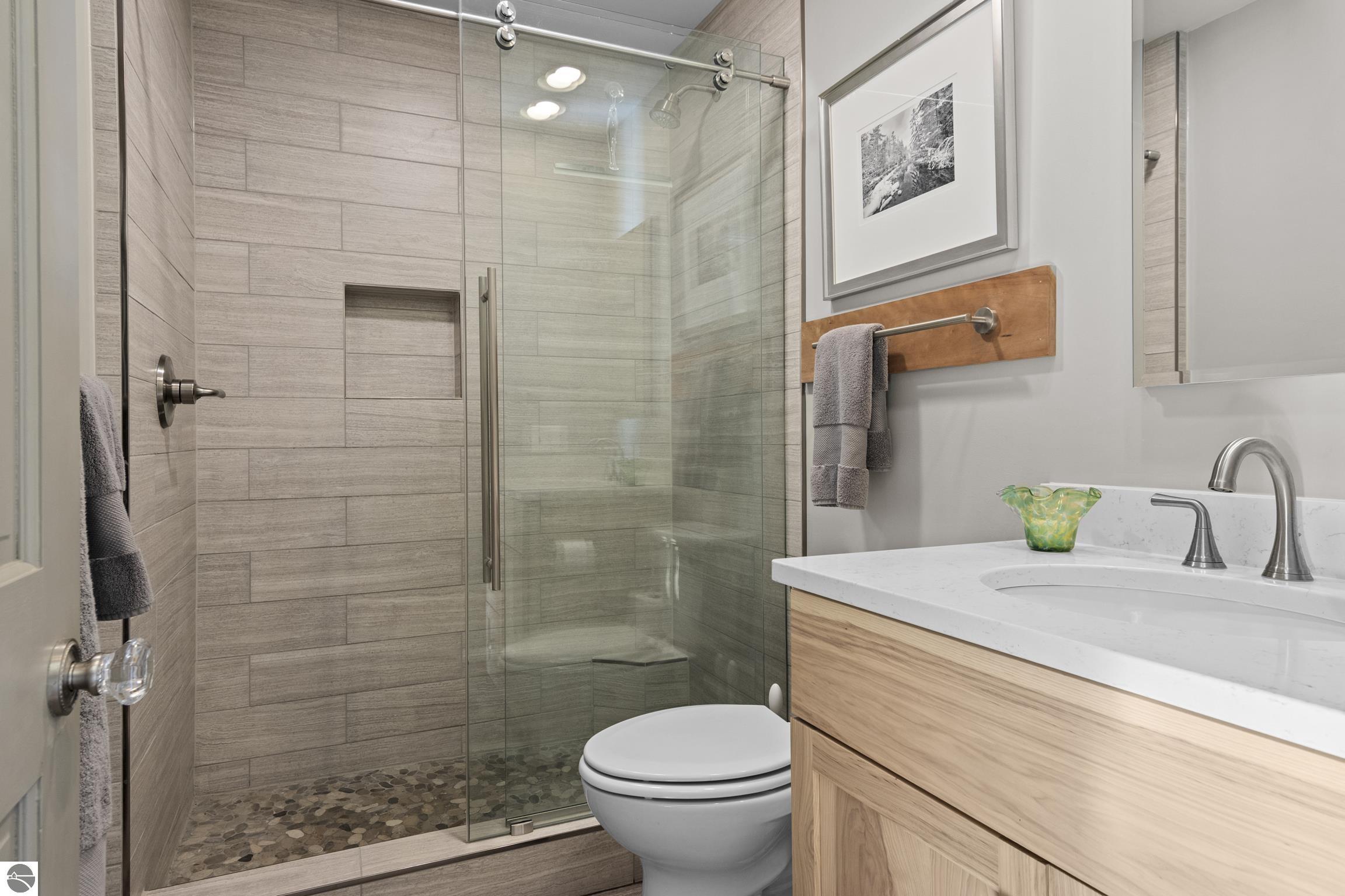 Discover a home where luxury meets tranquility on the north shores of Lime Lake. Here, timeless craftsmanship and lakeside charm blend in perfect harmony. Every detail has been thoughtfully designed and impeccably maintained to create a living experience defined by elegance, comfort, and serenity. Step inside and experience the difference thoughtful design makes. The gourmet kitchen is a chef’s dream—featuring a Wolf 6-burner stove, dual Thermador ovens, Sub-Zero refrigerator, and custom cabinetry that pairs beauty with function. Solid-surface countertops, a trash compactor, and abundant storage make everyday living and entertaining effortless. Beyond the kitchen, the great room showcases soaring ceilings, Alder wood accents, and expansive windows framing idyllic views. Warmth from the gas fireplace and an inviting, open flow make this the perfect space to gather with friends and family. Retreat to the primary suite with its sweeping lake vistas, a spa-inspired bath, and elevated finishes. Upstairs, new carpet, custom hickory cabinetry, a handcrafted railing, and wood-detailed ceilings continue the home’s theme of refined artistry, while remodeled bathrooms extend the blend of comfort and style. The home’s impeccable interior flows effortlessly to the outdoors, where manicured landscaping and expansive deck invite both morning coffee and starlit nights. Behind the scenes, thoughtful upgrades ensure comfort and reliability—dual furnaces, air conditioners, and water heaters, a Generac generator, and an encapsulated crawl space. Additional features include new shingles with heated roof valleys, new windows in key rooms, and a 16’x30’ secondary garage for added storage or workspace. Perfectly positioned in the heart of Leelanau County—just moments from Good Harbor Beach, wineries, golf courses, hiking trails, and the charming towns of Glen Arbor and Leland—this is a rare opportunity to own an exceptional home on one of the most peaceful lakes in Northern Michigan.
