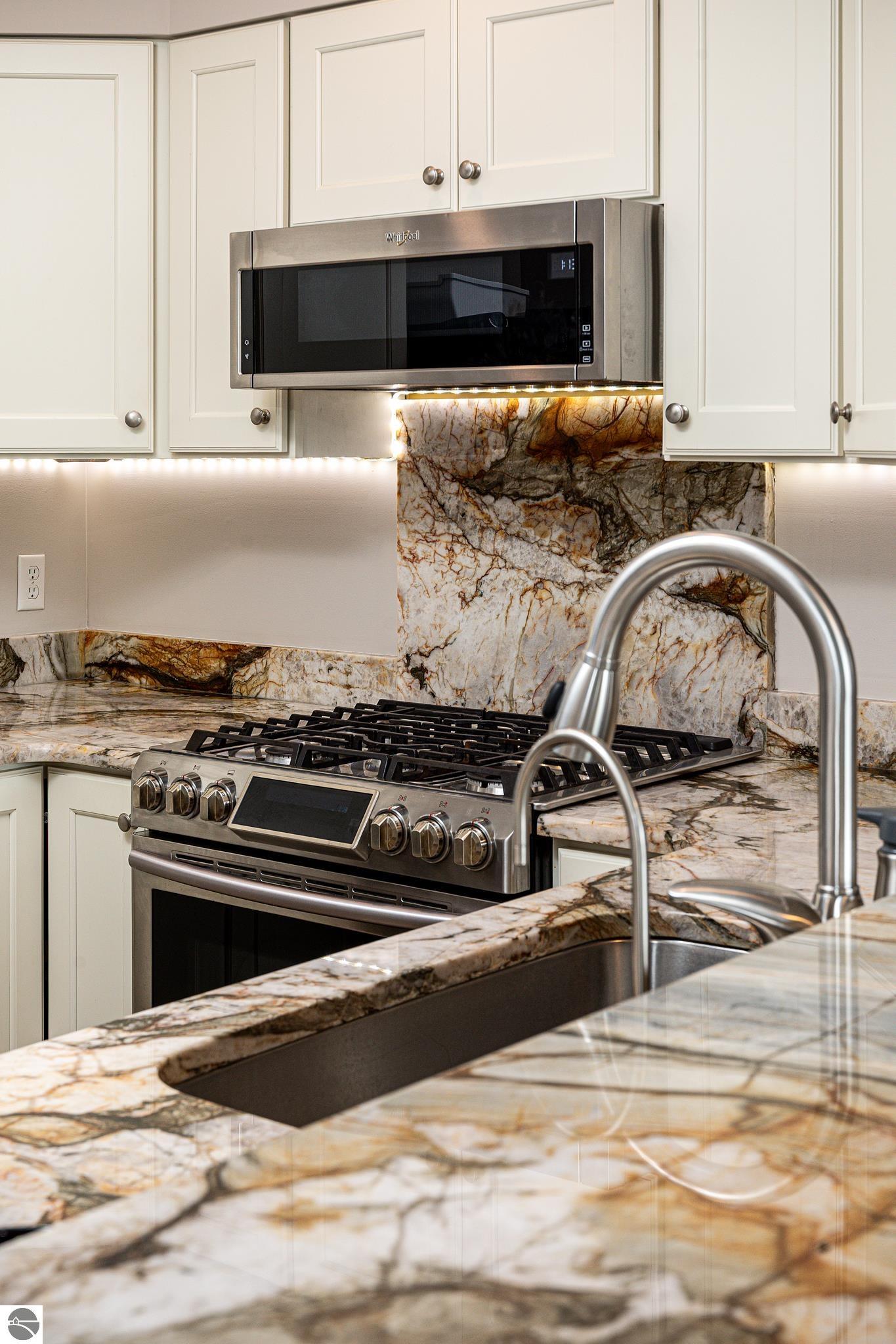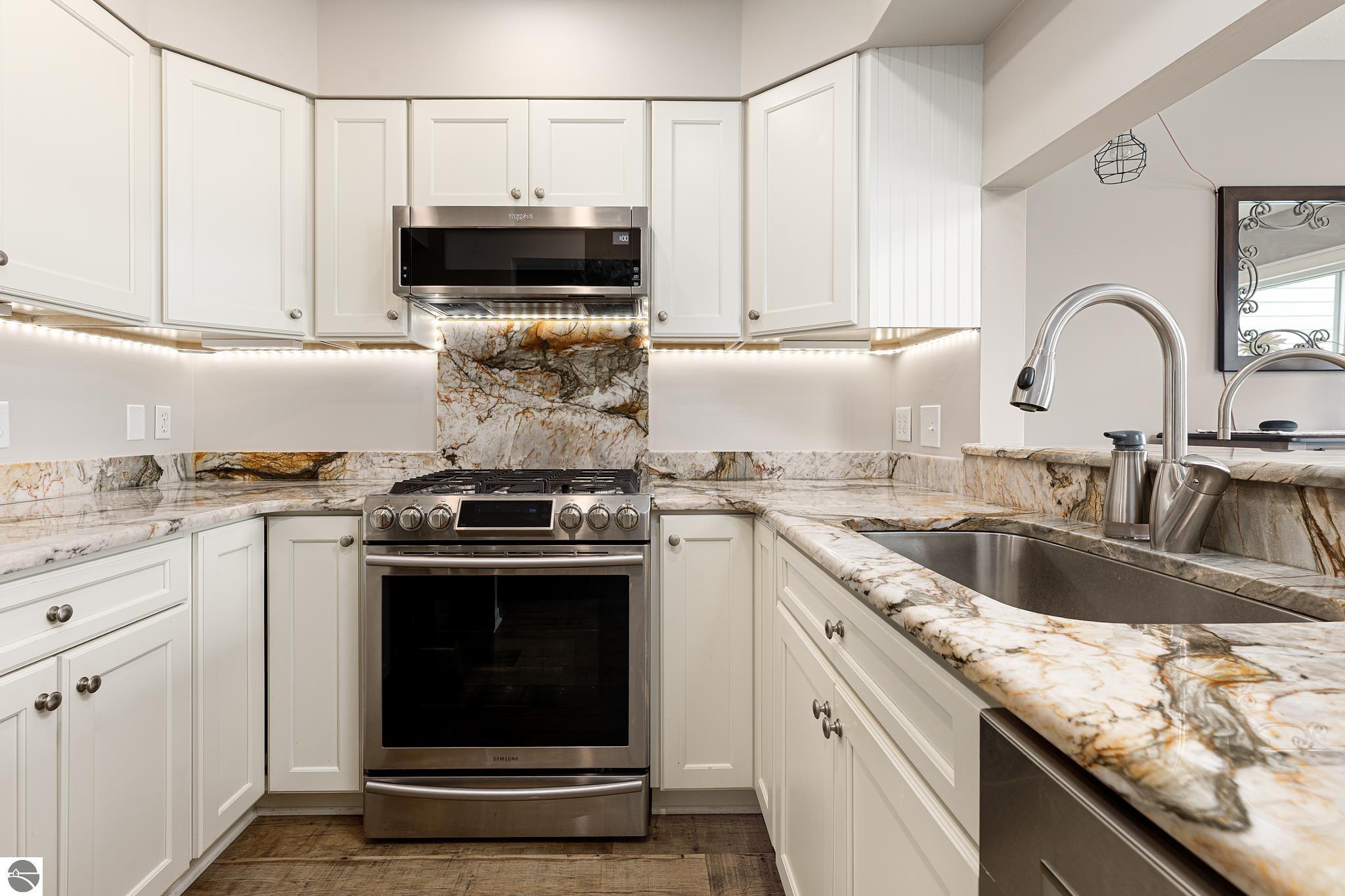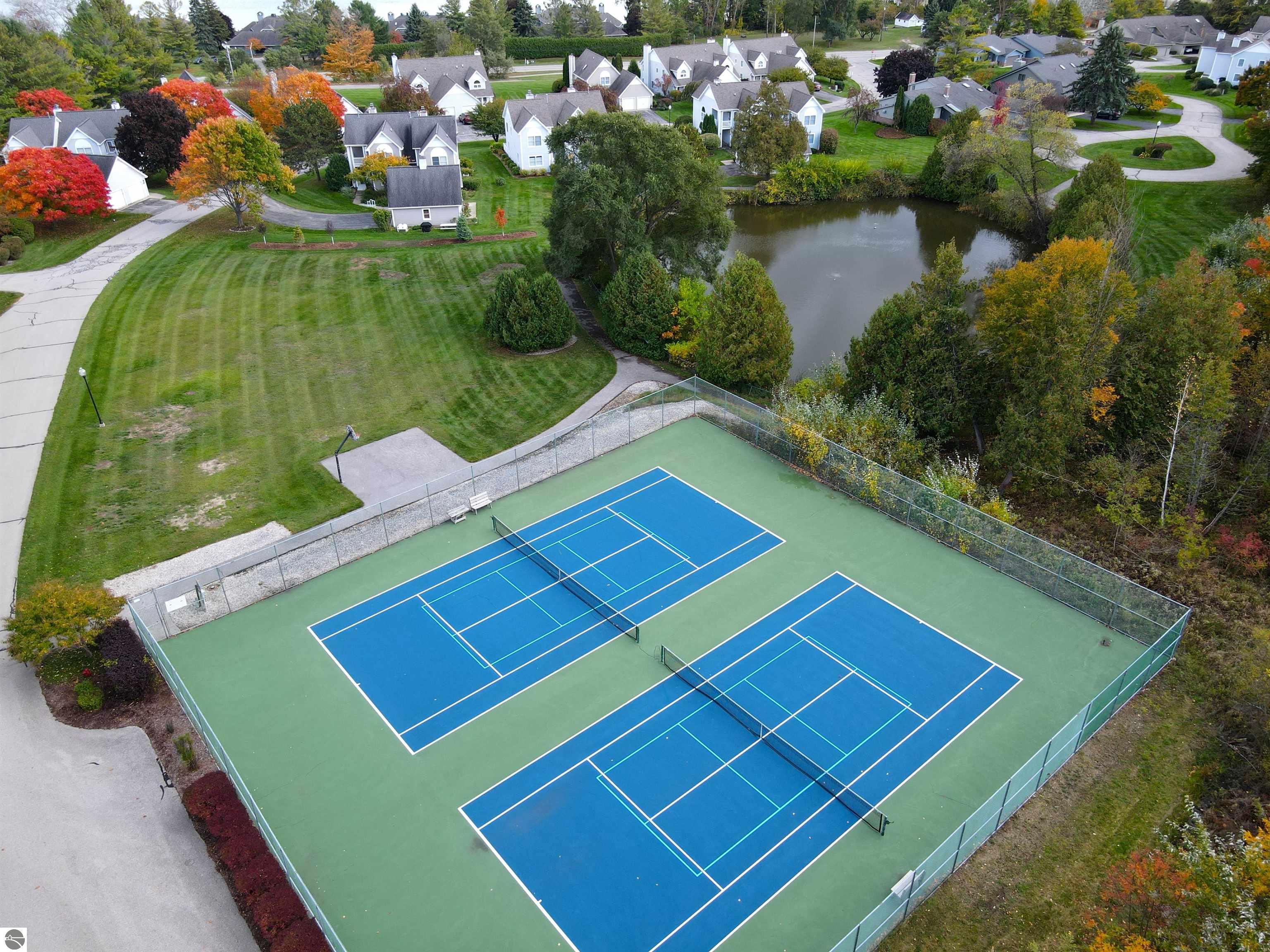 Enjoy easy Suttons Bay living in this beautifully updated 2-bedroom, 2-bath condominium offering partial bay views and access to 1,200 feet of shared waterfront. This bright and open 1,400 sq ft unit features a modern kitchen with granite countertops and stainless steel appliances, a spacious great room with vaulted ceilings and a cozy fireplace, and a private patio for relaxing outdoors. Residents enjoy resort-style amenities including a marina, swimming pool, tennis courts, sandy beach, and scenic walking trails. Conveniently located just minutes from Suttons Bay Village shops, dining, and the TART Trail — the best of Leelanau living without the maintenance.
