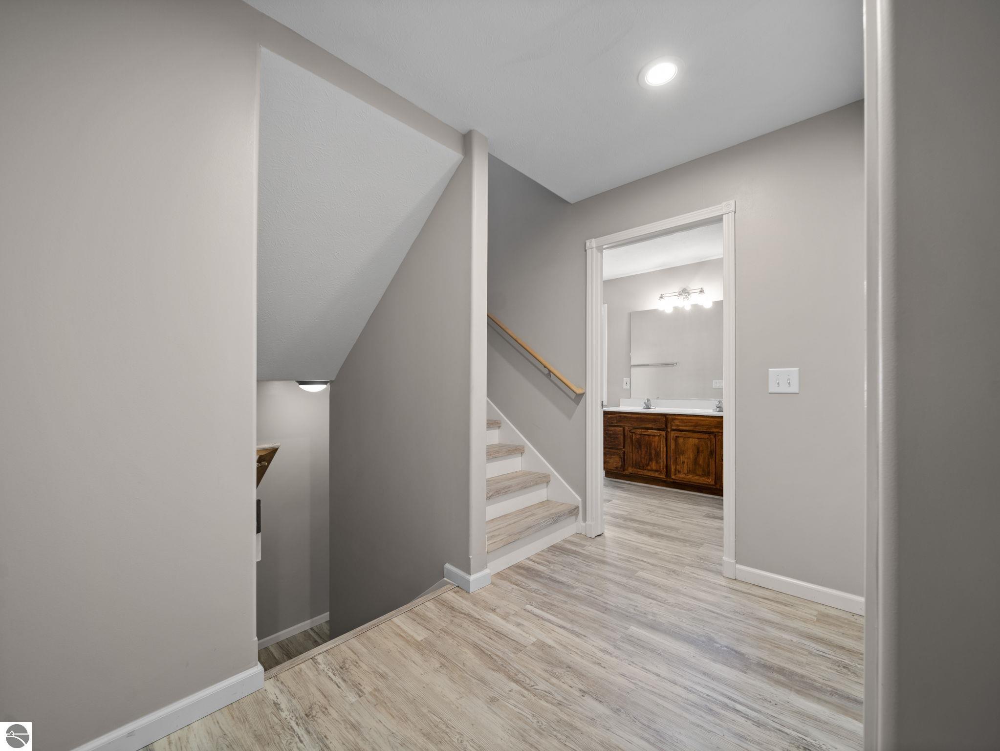 Welcome to 4033 Sherwood Forest, a beautifully updated condo nestled in the peaceful Holiday Hills community of Traverse City. This spacious home features 4 bedrooms, 2.5 baths, and a flexible bonus room perfect for a home office, studio, or guest space. Inside, you’ll find modern, clean updates and reaching natural light in every room. The open-concept main level is inspiring for entertaining or relaxing beside the cozy gas fireplace. Step out onto one of two balconies that overlook a quiet forested area. This condo boarders the edge of the association, allowing privacy and a chance to unplug with the deep nature view. 2 designated parking spaces! One is covered parking space keeping your vehicle protected year-round offering lighter lifting in the winter months. Thoughtful design and fresh finishes make this condo feel both modern, inviting, and move-in ready! With generous square footage, there’s room to share space comfortably or maintain privacy for work-from-home living. The flexible three story layout adapts easily to your lifestyle needs with a unique opportunity for multiple dwelling spaces in a hassle free condo. Located just minutes from downtown Traverse City, you’ll enjoy easy access to beaches, restaurants, nearby skiing and local shops. Tucked among the trees yet close to everything, this condo offers a rare blend of large capacity accommodations, tranquility and convenience.