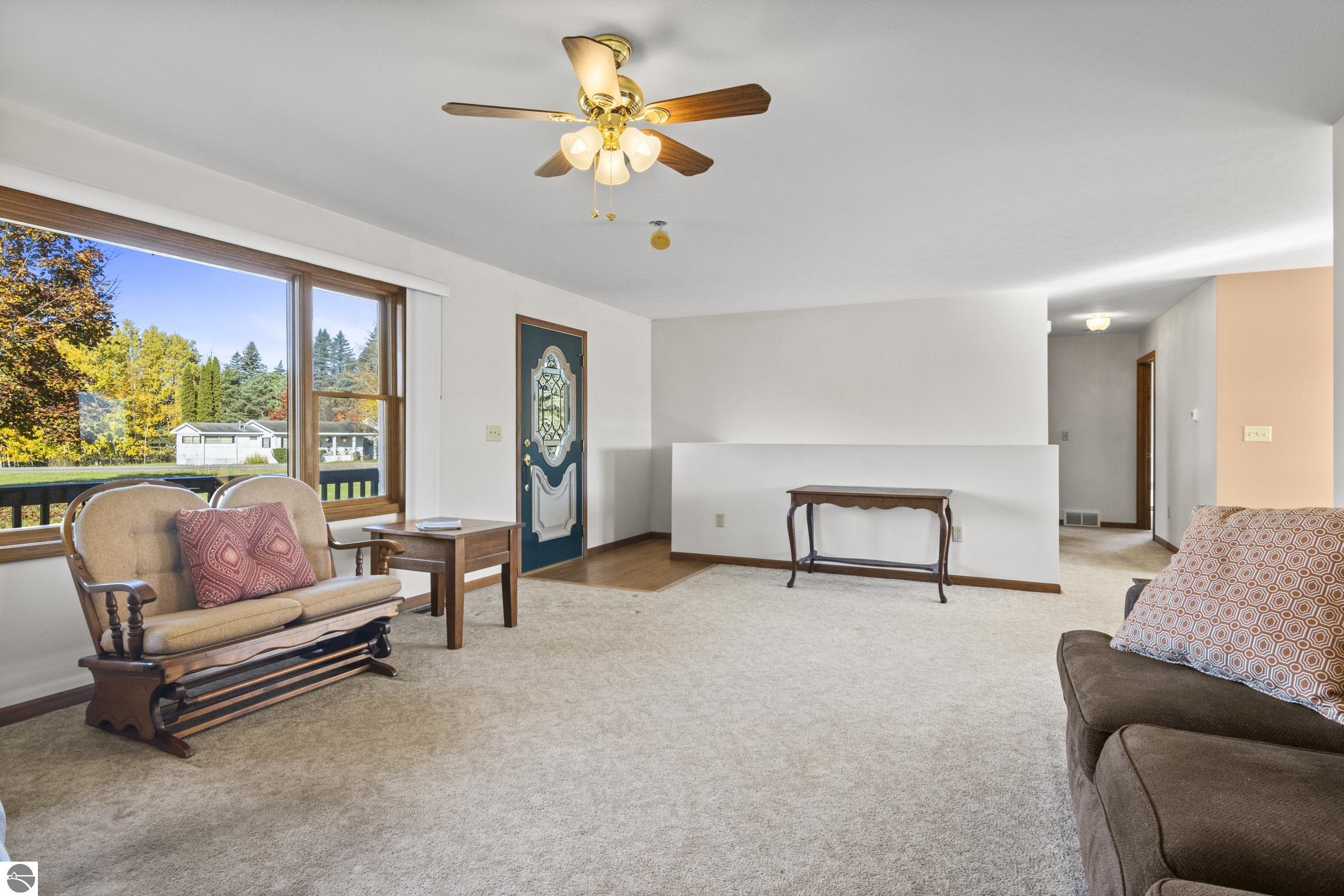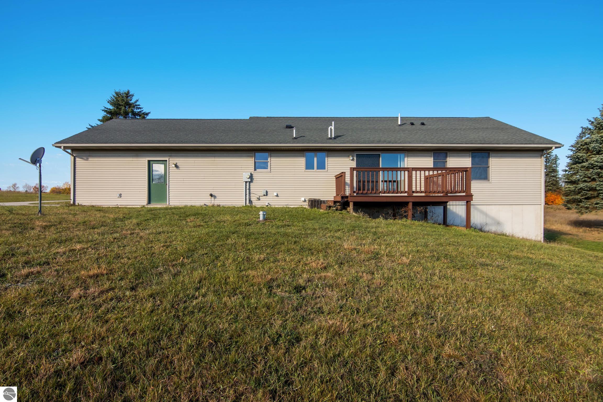 Versatile living space with 5 Acres -This 3 bedroom, 2 ½ bath home features an open concept living room, dining area, and kitchen. The kitchen has a large entry closet, pantry, and breakfast bar. The two bedrooms on the main floor each have large closets, with the primary bedroom offering a private bathroom. The basement includes a sizable third bedroom, an additional living area with a walkout feature, and a half bath. The generous basement has a large unfinished room providing limitless possibilities. Enjoy the covered front porch and watch the wildlife from a large back deck. The attached two-car garage has a finished interior. The property’s location is ideal, just a couple of miles from US 131, offering convenient access for the commute and travel. The land provides space for gardening, room for your pets, and recreational play. The recreational options in the area include golfing, nearby lakes and rivers, and ATV trails. Whether hosting friends, raising a family, or savoring quiet evenings at home, this residence provides a warm country lifestyle.
