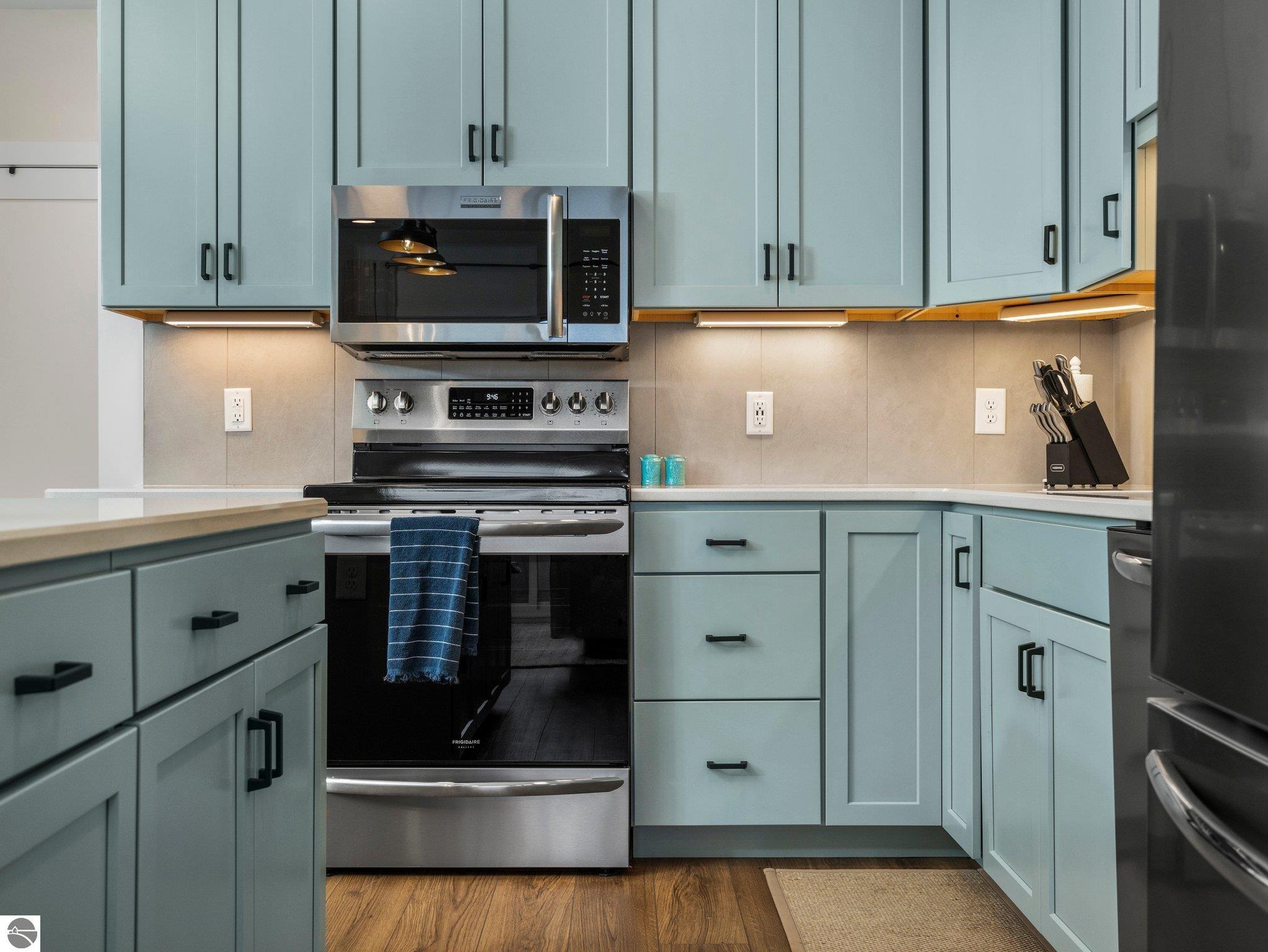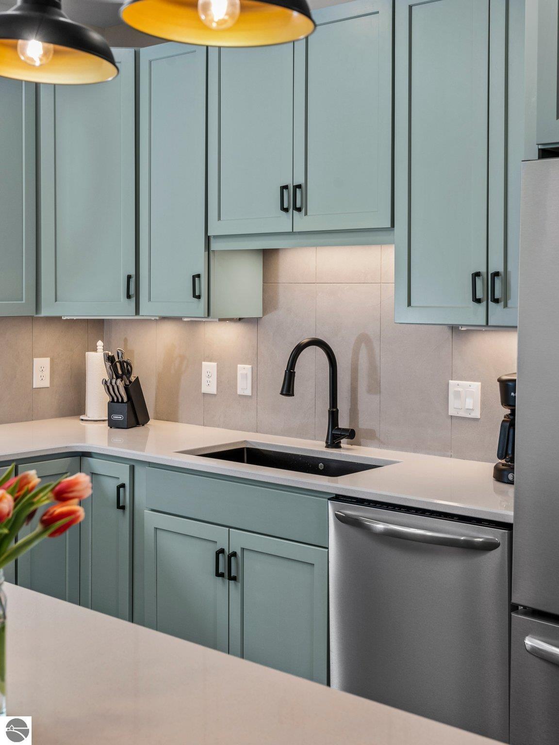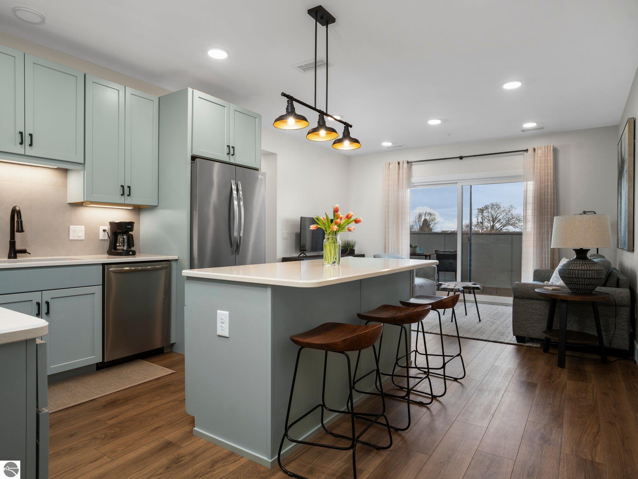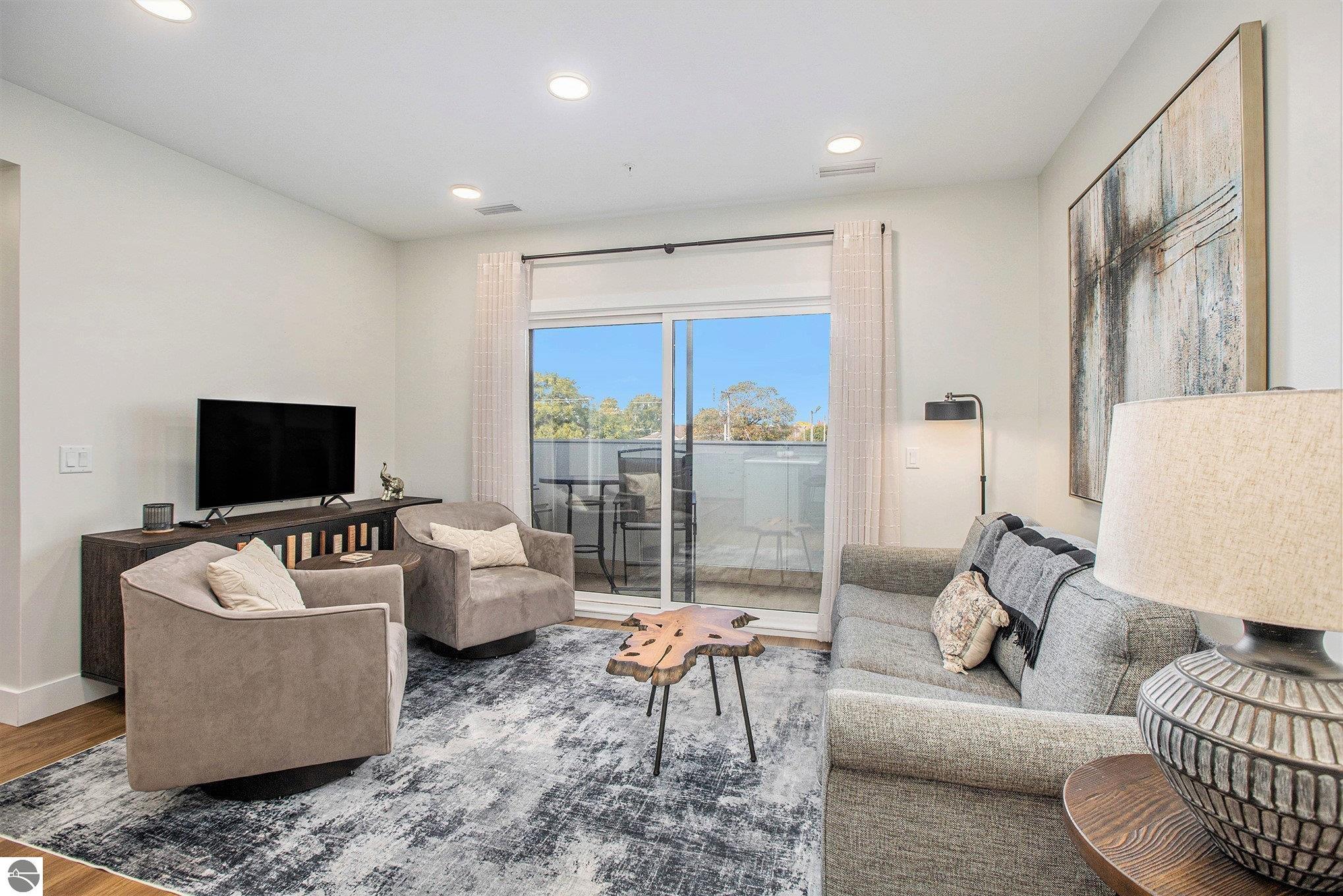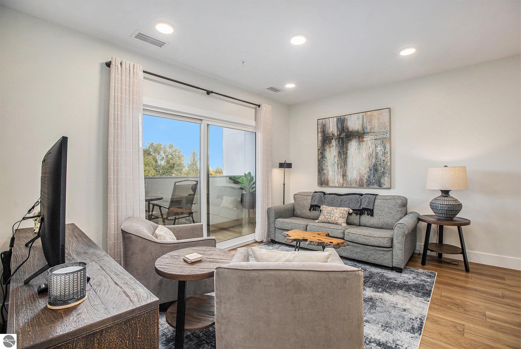 Discover the allure of Randolph's Acqua condominium, a meticulously designed new residence situated in the heart of Traverse City's "slabtown". This fully furnished unit offers a seamless blend of style and functionality, featuring 2 bedrooms and 2 bathrooms on the main floor for effortless living. Luxurious touches abound, including sleek solid surface finishes and the added elegance of luxury vinyl plank flooring throughout. Step outside onto the covered balcony and soak in the breathtaking views of West Bay, providing a serene backdrop to your gatherings. Walkable to West Bay, the TART trail, a nearby dog park, and pickleball/tennis courts, residents can indulge in a lifestyle of outdoor adventure and leisure. Nestled in this highly desirable Traverse City location, residents can relish in the vibrant atmosphere and natural beauty that define the area. With a proven track record of rental success, this property presents a fantastic investment opportunity for short-term rentals. Don't miss out on the chance to own this turnkey investment property in one of Michigan's most sought-after destinations.